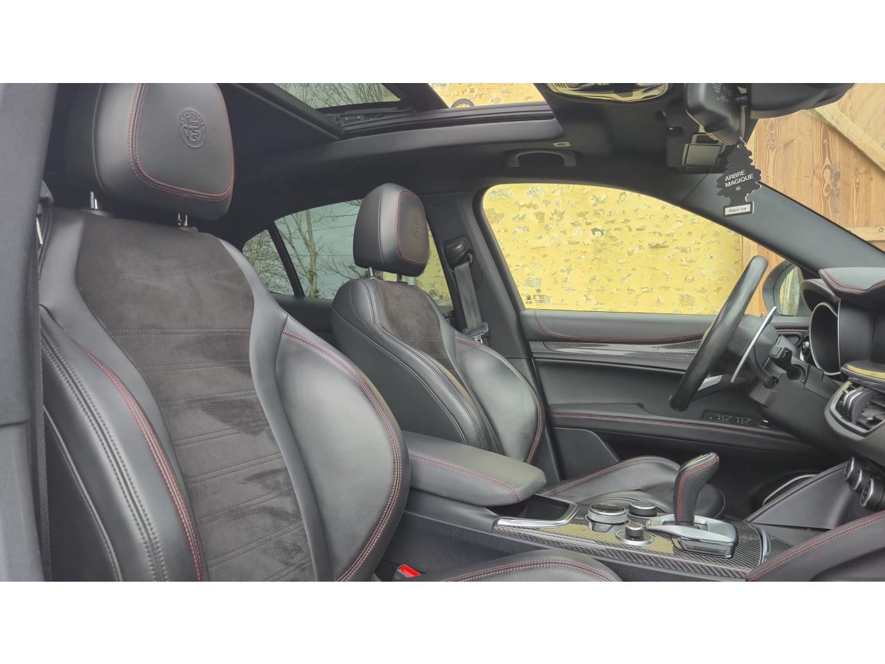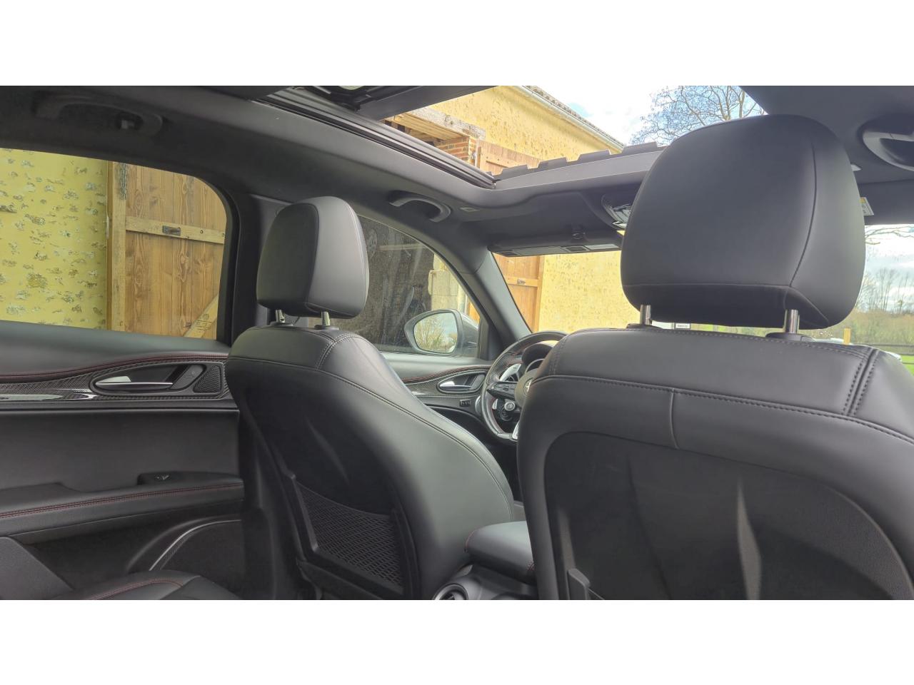 Aide au stationnement avant/arrièreAlfa Connected ServicesApple CarPlay / Google Android AutoAvertisseur de dépassement de ligne blanche (LDW)Bouton démarreur au volantCaméra de recul avec lignes indicatricesCarrosserie peinte en intégralitéChargeur de téléphone portable à inductionClimatisation automatique bi-zone, avec aérateurs à l'arrièreDark Line (Contour vitres Noir laqué)Double sortie d'échappementEclairage diurne (signature lumineuse) à LEDEssuie-glaces avant automatique avec détecteur de pluie et allumage automatique des feuxEtriers de frein jaunesFeux arrière à LEDFreinage d'urgence autonome (AEB)Hayon à ouverture électrique mains-libresInfo TraficInserts en carbone sur planche de bord et tunnel centralInstrumentation de bord 7" TFT couleurKit de réparation "Fix et Go"Lave-pharesOuverture des portes mains libres avec éclairage des poignées de portesPack CarbonePack Driver Assistance PlusPack HiverPack InsonorisationPack PerformancePack Sièges ElectriquesPack Sound TheatrePanneaux de portes cuir surpiquéPare-brise athermiquePare-chocs arrière avec diffuseur spécifiquePédalier Sport AluminiumPlanche de bord en cuir avec surpiqûresPlaque de protection et sorties d'échappement noiresPommeau de levier de vitesses Sport en Cuir perforéPrise 12VPrise 220 V dans le coffrePrise USB frontalePrises USB arrièresProjecteurs antibrouillard avant à LEDProjecteurs Bi-Xénon 35W directionnelsRail de coffre coulissantRéception radio numérique (DAB)Réglage électrique latéral des siègesRétroviseur intérieur électrochromeRétroviseurs extérieurs rabattables électriquementRotary PadSélecteur de vitesse sportSeuils de portes en aluminiumSièges sport en cuir/AlcantaraSystème Alfa Connect (Radio, MP3, Aux-in, Bluetooth) avec écran panoramique 8,8" tactileSystème d'aide à la descenteSystème d'alerte anti-collisions (FWC) avec détection piétonsSystème de contrôle de qualité de l'airSystème de freins integré (IBS)Système de navigation avec cartographie Europe 3DSystème Stop & StartTapis de sol noirToit panoramique ouvrantVitres arrière surteintéesVolant sport cuir