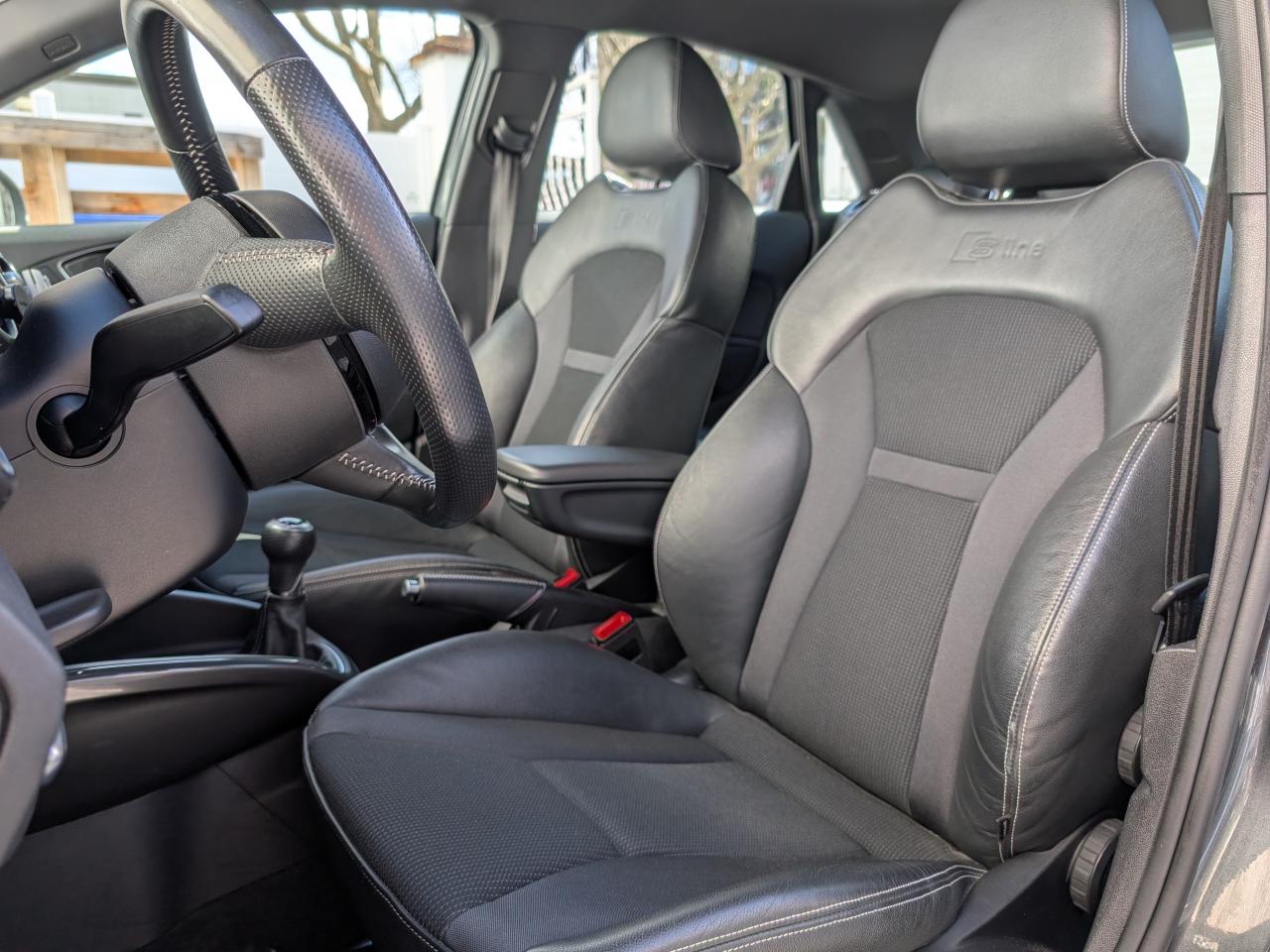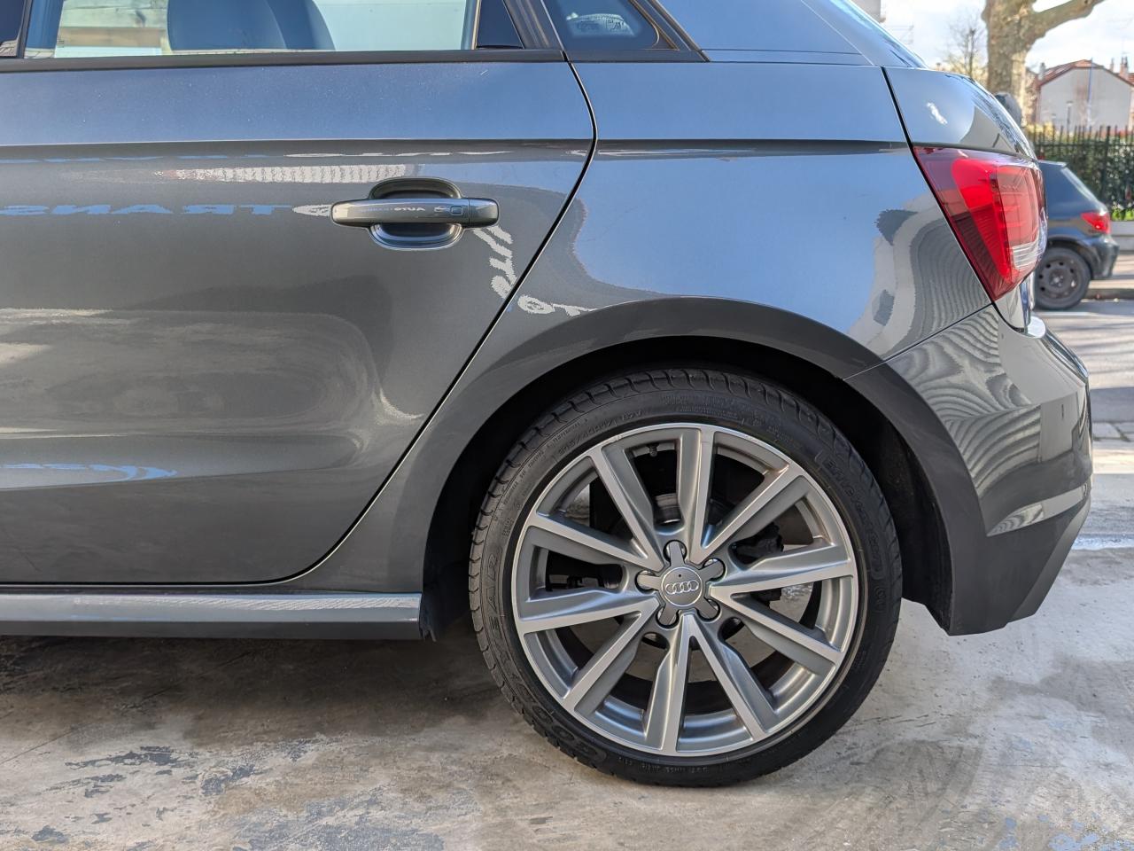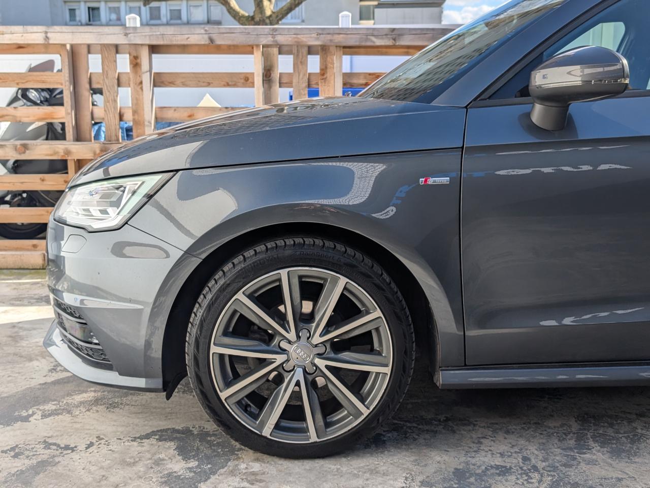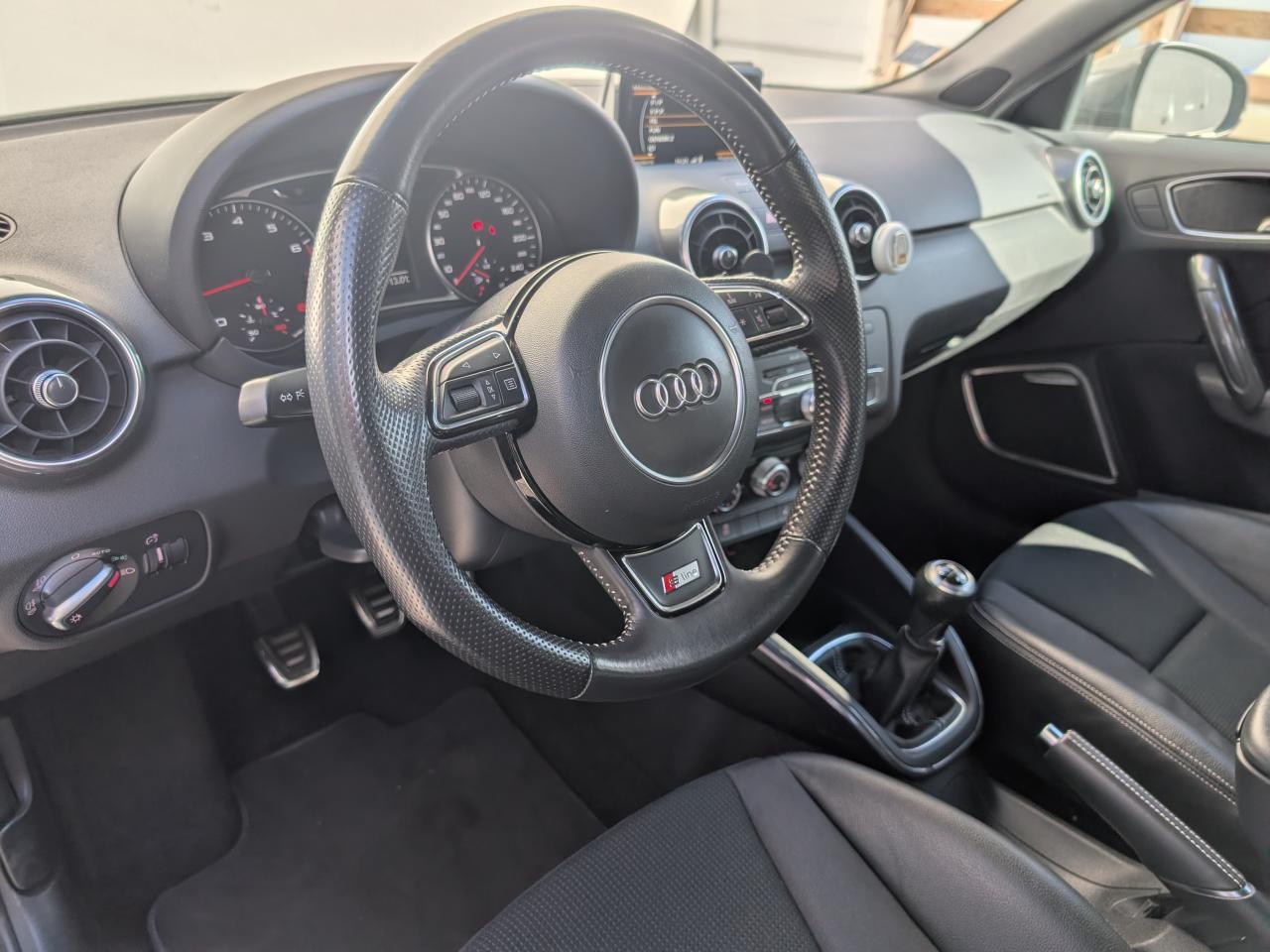 Airbags grand volume pour le conducteur et le passagerAirbags latéraux à l'avant intégrés dans les dossiers des sièges à l'avantAllume-cigare et cendrier sur la console centrale à l'avantAntipatinage électronique ASRAppuie-tête et inclinaison de dossier réglables manuellement et appui lombaire à 2 axes réglable manuellementAppuie-tête réglables à l'avant et à l'arrièreAssistant de freinage en cas de collision, en cas d'accidentBadges S line sur les ailes avantBlocage électronique du différentiel EDL, aide au démarrageBoîte à gants côté passager avant, grand volume, avec éclairageCache-bagages amovibleCarrosserie galvanisée (entièrement galvanisée aux endroits exposés à la corrosion), autoportante, soudée au groupe-plancher, zones de déformation prédéfinies à l'avant et à l'arrièreCeintures de sécurité, trois points automatiques pour toutes les places, à l'avant avec réglage en hauteur et prétensionneurs pyrotechniques ; limiteurs de tension sur toutes les placesChâssis Sport avec suspension et amortissement fermes pour un contact plus direct avec la route et un comportement sportifCiel de pavillon en tissu noirClignotants avec fonction autoroute : une brève impulsion sur le comodo active 3 cycles de clignotementClimatisation automatique "Confort"Colonne de direction de sécuritéConsole centrale avec 2 porte-boissons et vide-poches complémentaireContact d'allumage électronique ; clé de contact pouvant mémoriser différentes données d'entretienContre-portes avec partie centrale en tissu et accoudoir intégréContrôle de ceinture attachée pour toutes les placesContrôle de pression des pneus ( TPMS )Cric dans le coffreDétecteur de pluie et de luminosité incluant bande grise dans la partie supérieure du pare-briseDirection assistée particulièrement sportive et directe avec assistance électromécanique asservie à la vitesse et faible consommation d'énergieDossier de banquette arrière rabattable en deux parties , 1/3, 2/3 ou complétementEclairage intérieur, à temporisation avec contacteurs sur toutes les portières ; éclairage du coffreEcran central avec éclairage réglableEcrous antivolEntourages de diffuseurs d'air noir brillantESP avec blocage transversal électroniqueEssuie-glace deux vitesses avec commande automatiqueFeux arrière rouges, feux de recul blancs, avec feux de brouillard arrière et design d'éclairage innovantFeux de freinage adaptatifs, les feux de détresse clignotent en cas de freinage d'urgence afin de prévenir les voitures qui suivent. Activation des feux de détresse en cas d'arrêtFeux stop et feux arrière à LED et nouveau design tridimensionnelFixations ISOFIX à l'arrièreIdentification du modèle/technologie sur le capot de coffreJantes Audi Sport en aluminium coulé style 10 branches, 7,5 J x 17 avec pneus 215/40 R 17Lave-phares haute pressionLève-vitres électriques, avec protection anti pincement, ouverture/fermeture confort par le verrouillage centralisé, fonction ouverture/fermeture par impulsionLunette arrière dégivrante, avec minuterie; chauffage supplémentaire de l'extrémité inférieure de l'essuie-glace arrièreMMI Radio (Concert), incluant concept de commande MMI avec écran couleurs de 6,5 pouces, lecteur CD et lecteur de cartes SDHC compatibles MP3/WMA et AAC, ainsi que prise AUX-IN et 8 haut-parleurs à l'avant et à l'arrière, puissance totale 80 wattsMoquette en velours de couleur assortie à celle de l'habitacleOEilletons de fixation, quatre dans le coffre, pour maintenir les bagages et objets, points de fixation pour le filet mixte en optionOrdinateur de bord avec écran blanc TFT monochrome de 3,5 poucesOutillage de bord dans le coffrePack aluminium intérieurPack ConnectivityPack Eclairage intérieur à LEDPare-soleil rabattables et pivotants, côtés conducteur et passager avant, avec miroir de courtoisie occultablePédalier en acier inoxydablePoignées de maintien, avec mécanisme amortisseur, rabattables, encastrées dans le pavillonPommeau de levier de vitesses en cuir perforéPrise de courant 12 Volts sur la console centraleProjecteurs antibrouillardProjecteurs Xénon plus avec feux de jour à LED, incluant feux stop, feux arrière et feux d'éclairage de la plaque d'immatriculation arrière à LED avec nouveau design tridimensionnelProtection antidémarrage électronique, intégrée à la gestion du moteur, activation automatique par la clé du véhiculeProtection latérale anticollisionRéception radio numérique (DAB)Récupération en augmentant la tension du générateur, l'énergie cinétique est convertie en énergie électrique utilisable durant les phases de décélération ou de freinageRégulateur de vitesse incluant ordinateur de bord avec programme efficiencyRétroviseur intérieur électrochromeRétroviseurs extérieurs couleur carrosserieRétroviseurs extérieurs dégivrants et escamotables ; buses de lave-glace chauffantesRétroviseurs extérieurs électriquesSécurité enfants mécanique sur les portières arrière, électrique sur les vitres arrière électriquesSellerie mixte en cuir et tissu Sprint avec estampillage S lineSet de réparation pour pneus avec compresseur 12 volts et produit de colmatage pour les pneus, vitesse maximale 80 km/hSeuils de portes en aluminium avec inscription S lineSiège passager avant réglable en hauteurSièges Sport à l'avant avec bourrelets latéraux fortement marqués assurant un meilleur maintien dans les viragesSingleframe, calandre en gris platine avec entretoises horizontales chromées. Avec anneaux Audi chromés au centreSortie d'échappement à gauche, visible simpleSorties d'échappement chroméesSystème d'appuie-tête intégralSystème de ventilation et chauffage réglable sur quatre niveauxSystème Stop & StartTapis complémentaires avant et arrièreTémoins de contrôle pour entre autres : airbags, ABS, ESC/ASR, frein à main serré, électronique EDS, générateur, éclairage, phares, clignotants, circ