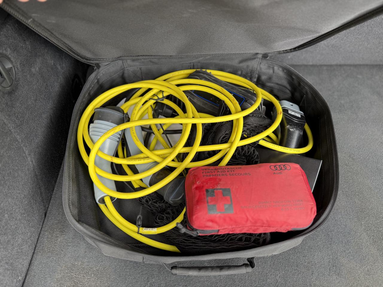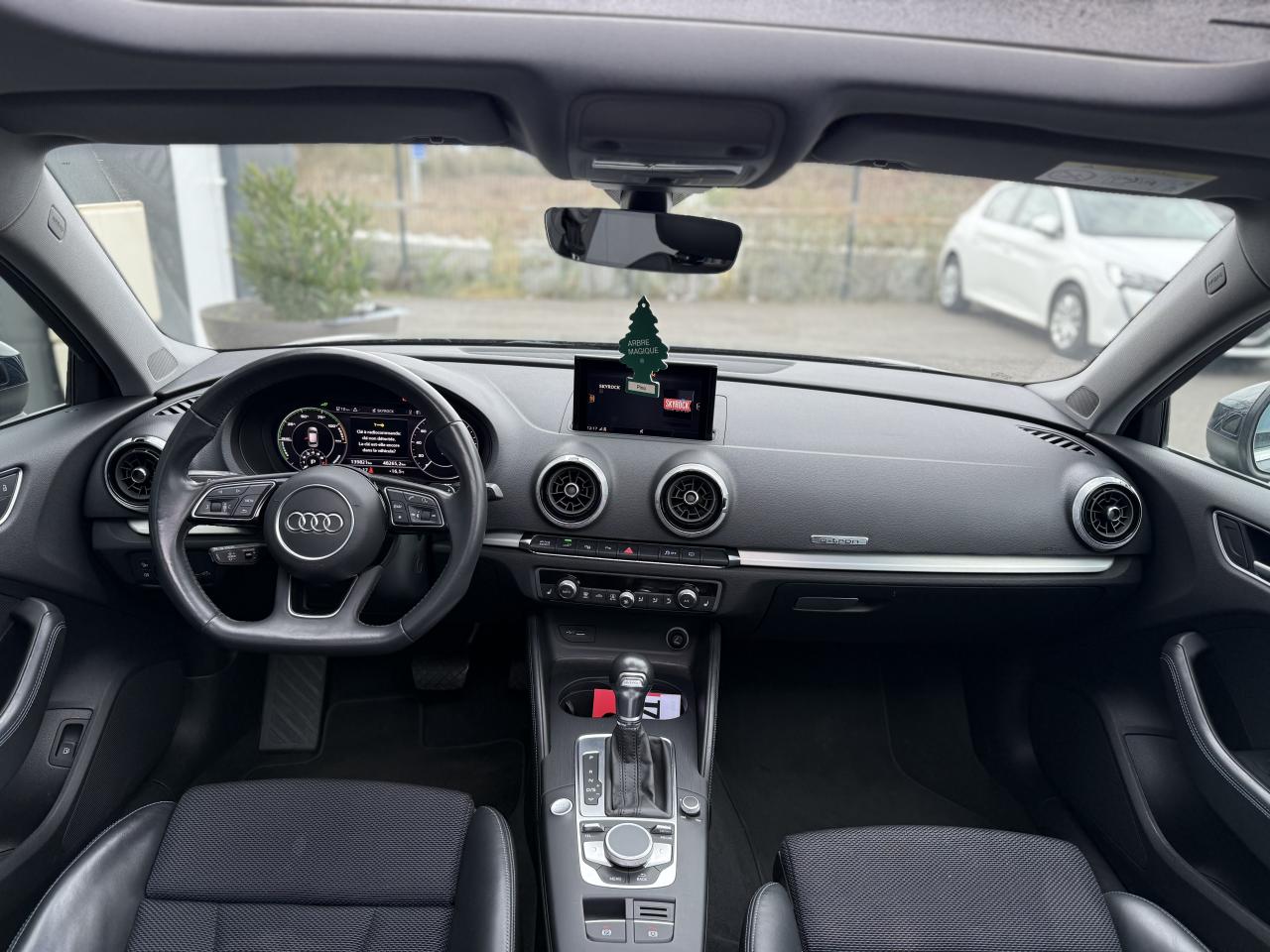 Accoudoir central avantAdvanced Key : système d'autorisation d'accès et de démarrage main libreAirbags frontaux, latéraux et de genoux pour le conducteur et le passager avantAppuie-tête intégraux à l'avant et à l'arrièreASR (antipatinage) pour une motricité et une rigidité transversale optimales. Réduit le patinage des roues motricesAudi drive select, permet différents réglages:Efficience, Confort, Dynamique, Auto et IndividuelAudi Parking SystemBoîte automatique S tronic à 6 vitesses avec moteur électrique intégré : unité intégrée composée d'un embrayage, d'un moteur électrique et d'une boîte séquentielle 6 vitesses à double embrayage avContrôle de la pression des pneumatiquesDétecteur de pluie et allumage automatique des projecteursESC : contrôle électronique de stabilisation. Relie ABS, EBV, ASR et EDSFeux tout-tempsFrein à disque sur les essieux avant et arrièreFrein de stationnement electromécaniqueInterface BluetoothLecteur CD/MP3 avec un slot pour carte SDPare-chocs arrière e-tron : sans sortie d'échappement visible, incluant diffuseur noir mat et réflecteurs latérauxPare-chocs avant e-tron : grilles d'entrée d'air au design résolument sportif avec doubles entretoises chroméesProjecteurs au Xénon Plus avec feux de jour à LEDRégulateur de vitesseSystème ABS avec répartiteur électronique de freinage EBV, programme électronique de stabilisation ESC avec détection de barres de toit et assistance au freinage d’urgenceSystème d'information du conducteur, avec écran couleurSystème de recharge e-tron : ce système comprend, en plus du câble du véhicule et de l'unité de commande, 2 câbles de branchement interchangeablesSystème Start/ Stop avec récupération d'énergie de freinage