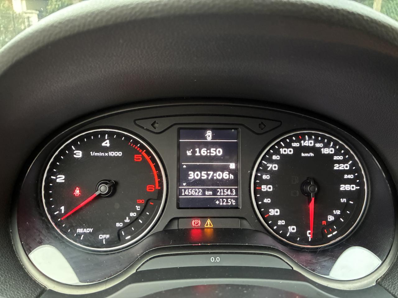 Accoudoir central avant coulissant en longueur, avec vide-poches relevable et inclinaison réglableAirbag genoux conducteurAirbags grand volume pour le conducteur et le passagerAirbags latéraux à l'avant intégrés au dossier des siègesAllume-cigare et cendrier amovible, couvercle chromé avec anneaux AudiAntipatinage (ASR)Audi parking system à l'arrière facilitant le stationnement dans les limites du système à l'aide d'un signal sonoreAudi Singleframe avec encadrement chromé de la calandreBlocage électronique de différentiel (EDS)Boîte à gants grand volume côté passager avant, éclairéeCache-bagages amovibleCarrosserie galvaniséeCeintures de sécurité 3 points automatiques pour toutes les places, prétensionneurs pyrotechniques, réglage des ceintures en hauteur à l'avant ; limiteurs de tension sur toutes les places extérieuresClimatisation automatique Confort avec réglage asservi à la position du soleilContrôle de ceinture attachée pour toutes les placesContrôle de pression des pneus ( TPMS )Contrôle électronique de stabilisation (ESC) avec blocage transversal électroniqueContrôle électronique de stabilisation (ESC) désactivable, avec amplificateur hydraulique de freinage d'urgenceDétecteur de pluie et de luminosité incluant bande grise dans la partie supérieure du pare-briseDirection assistée électromécanique avec assistance asservie à la vitesse (servotronic)Dossier de banquette arrière rabattable en deux parties 40/60 ou complètementEclairage intérieur à l'avant et à l'arrièreEssuie-glace arrière avec déclenchement automatique en marche arrièreJantes en aluminium coulé style 10 branches 6,5 J x 16” avec pneus 205/55 R 16Lave-essuie-glace 2 vitesses, 4 intervalles de balayage réglablesLève-vitres à l'avant et à l'arrière, électriques, avec protection antipincement, ouverture/fermeture par le verrouillage centralisé, fonction ouverture/fermeture par impulsionMMI RadioMoulures de seuil sur les seuils de portesPack connectivityPare-brise acoustique, améliore l'isolation phonique du pare-brise et réduit les bruits extérieursPare-chocs dans la couleur de la carrosseriePare-soleil rabattables et pivotants, côtés conducteur et passager avant, avec miroir de courtoisie occultablePhares antibrouillard halogènes, intégrés à la jupe avantPhares halogènes à surfaces libres sous vitre transparente, réglage électrique du site des phares et commande de feux de stationnement, feux diurnesPoignées de maintien. 4 poignées avec mécanisme amortisseur, rabattables, encastrées dans le pavillonPrise de courant 12 volts sur la console centrale à l'avantProtection latérale anticollision avec barres extrêmement rigides dans les portières et une structure latérale de carrosserie renforcéeRégulateur de vitesseRétroviseur intérieur électrochromeSellerie tissu MarathonSièges à l'avant avec positionnement en longueur et inclinaison de dossier réglables manuellementSièges conducteur et passager avant réglables en hauteurSignal sonore pour oubli d'extinction des feuxSortie d'échappement simpleSystème d'informations du conducteur avec écran monochrome de 3,5” et programme efficiencySystème de freinage avec antiblocage (ABS) et répartiteur électronique de freinage (EBV)Système de ventilation et chauffage 4 diffuseurs d'air rondsTémoins de contrôle pour, entre autres : airbag, ABS, ESC/ASR, frein de stationnement serré, électronique EDS, phares, clignotants, circuit de freinage, pression d'huile moteur, fermeture du coffre, système électrique du moteur, système de pr&eacuVerrouillage centralisé à télécommandeVide-poches sur les habillages des portières ainsi que sur la console centrale avec porte-boissonVolant en cuir multifonction 4 branchesVolant réglable en hauteur et en profondeur