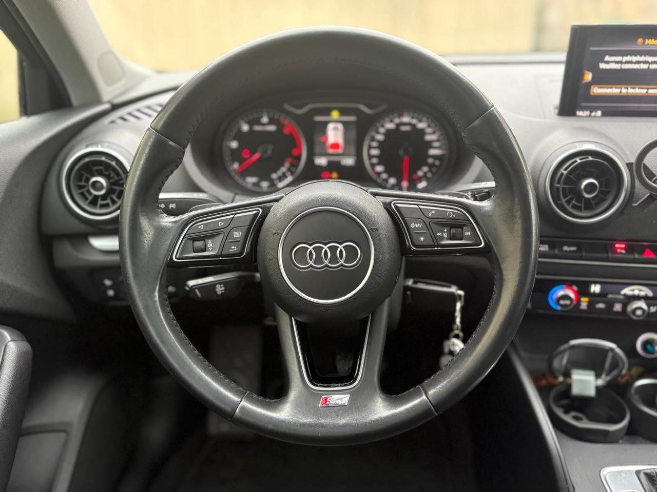Accoudoir central avantAileron de toitAirbag de têteAirbags frontaux, latéraux et de genoux pour le conducteur et le passager avantApplications décoratives en aluminium brossé matAppuie-tête intégraux à l'avant et à l'arrièreASR (antipatinage) pour une motricité et une rigidité transversale optimales. Réduit le patinage des roues motricesAudi drive select, permet différents réglages:Efficience, Confort, Dynamique, Auto et IndividuelAudi Parking SystemAudi Sound SystemBoîtiers de rétroviseurs extérieurs dans la teinte du véhiculeBuses de lave-glace chauffantesChâssis “Sport”Ciel de pavillon en tissu noirClimatisation automatique bi-zoneContrôle de la pression des pneumatiquesDésactivation de l'airbag du passager avantDétecteur de pluie et allumage automatique des projecteursDirection assistée ServotronicEcrous antivolESC : contrôle électronique de stabilisation. Relie ABS, EBV, ASR et EDSFixation pour sièges enfants ISOFIX et Top Tether pour les places arrière extérieuresFrein à disque sur les essieux avant et arrièreFrein de stationnement electromécaniqueIndicateur de niveau de lave-glaceInterface BluetoothJantes en alumiunium Audi Sport 18"Lecteur CD/MP3 avec un slot pour carte SDMMI navigationOutillage de bord et cricPack Aluminium extérieurPack aluminium intérieurPack EclairagePack rangement et coffrePack SmartphonePeinture intégrale uniePhares à LED avec clignotants arrière à LED dynamiquesRégulateur de vitesseRétroviseur intérieur électrochromeRétroviseurs extérieurs avec clignotants à LED intégrésRétroviseurs extérieurs réglables, dégivrants et rabattables électriquement avec position automatique pour manoeuvre de stationnementRoue de secours compacteSécurité enfants électriqueSellerie Tissu Séquence / CuirSièges avant sportSystème ABS avec répartiteur électronique de freinage EBV, programme électronique de stabilisation ESC avec détection de barres de toit et assistance au freinage d’urgenceSystème Start/ Stop avec récupération d'énergie de freinageTapis de sol avant et arrièreTrousse de secours avec triangle de présignalisationVitres avant avec isolation phoniqueVitres latérales et arrière athermiqueVolant réglable manuellement en hauteur et en profondeurVolant Sport multifonction 3 branches en cuir avec méplat et palettes de changement de vitesses