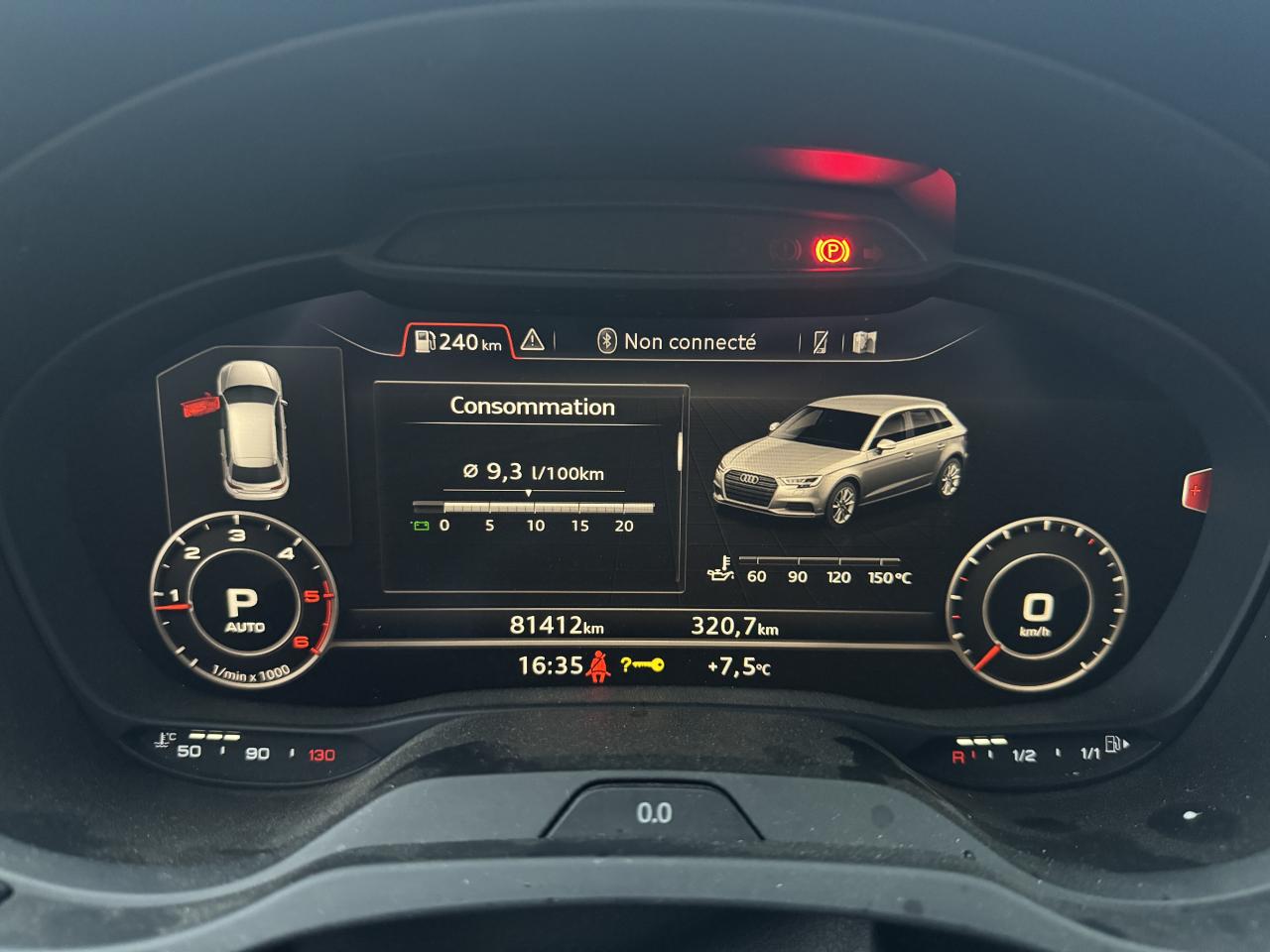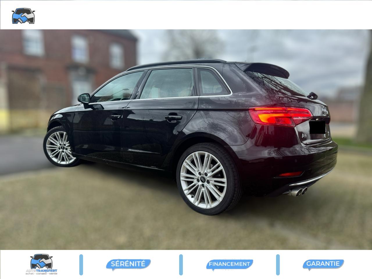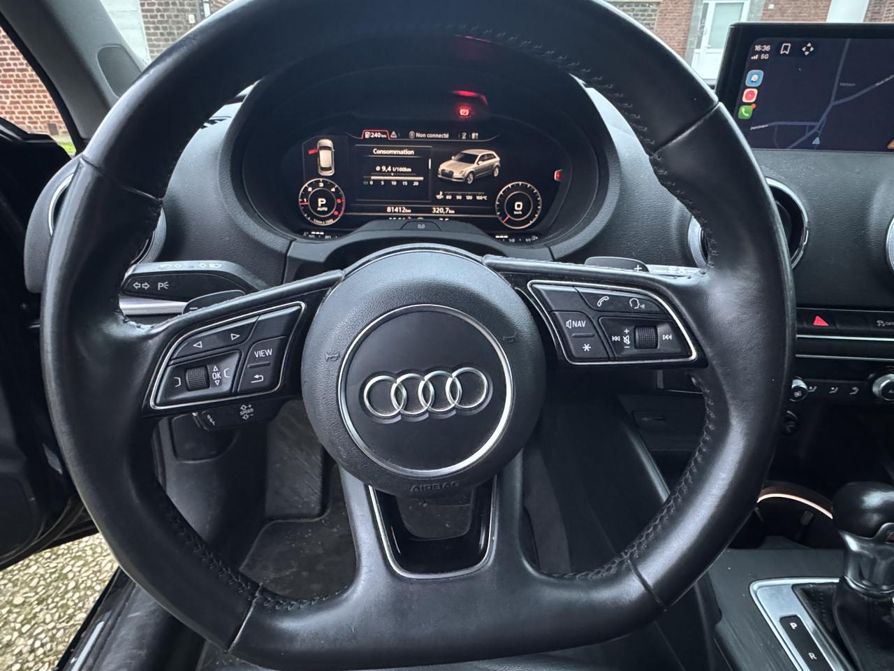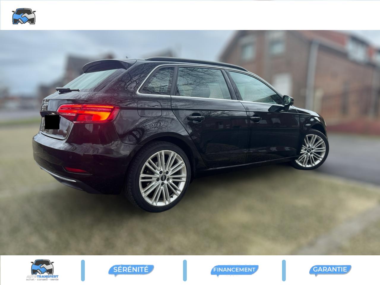 Accoudoir central avantAdvanced Key : système d'autorisation d'accès et de démarrage main libreAileron de toitAirbag de têteAirbags frontaux, latéraux et de genoux pour le conducteur et le passager avantApplications décoratives Aluminium MistralAppuie-tête intégraux à l'avant et à l'arrièreASR (antipatinage) pour une motricité et une rigidité transversale optimales. Réduit le patinage des roues motricesAudi connect 36 moisAudi drive select, permet différents réglages:Efficience, Confort, Dynamique, Auto et IndividuelAudi Parking System plus avec affichage sélectifAudi sound system : 10 haut-parleurs incluant un haut-parleur central et un subwoofer ; amplificateur à 6 canaux avec une puissance totale de 180 wattsAudi virtual cockpitBoîtiers de rétroviseurs extérieurs dans la teinte du véhiculeBuses de lave-glace chauffantesCaméra de reculChâssis normalCiel de pavillon en tissu gris rocheClimatisation automatique bi-zoneContrôle de la pression des pneumatiquesDésactivation de l'airbag du passager avantIndicateur de niveau de lave-glaceDétecteur de pluie et allumage automatique des projecteursDirection assistée ServotronicEcrous antivolESC : contrôle électronique de stabilisation. Relie ABS, EBV, ASR et EDSFixation pour sièges enfants ISOFIX et Top Tether pour les places arrière extérieuresFrein à disque sur les essieux avant et arrièreFrein de stationnement electromécaniqueInterface BluetoothJantes en aluminium coulé Audi Sport 10 branches en D, style titane mat tournées brill., dim. 7,5J x 18 avec pneus 225/40 R18Lecteur CD/MP3 avec un slot pour carte SDNavigation MMI plus avec MMI touchOutillage de bord et cricPack Aluminium extérieurPack aluminium intérieurPack EclairagePack rangement et coffrePack SmartphonePare-brise avec isolation acoustiquePeinture intégrale uniePhares à LED avec clignotants arrière à LED dynamiquesRégulateur de vitesseRétroviseur intérieur électrochromeRétroviseurs extérieurs avec clignotants à LED intégrésRétroviseurs extérieurs réglables, dégivrants et rabattables électriquement avec position automatique pour manoeuvre de stationnementRoue de secours compacteSécurité enfants électriqueSellerie en cuir MilanoSièges avant sportSystème ABS avec répartiteur électronique de freinage EBV, programme électronique de stabilisation ESC avec détection de barres de toit et assistance au freinage d’urgenceSystème Start/ Stop avec récupération d'énergie de freinageTapis de sol avant et arrièreTrousse de secours avec triangle de présignalisationVitres latérales et arrière athermiqueVolant réglable manuellement en hauteur et en profondeurVolant Sport multifonction 3 branches en cuir avec méplat et palettes de changement de vitesses