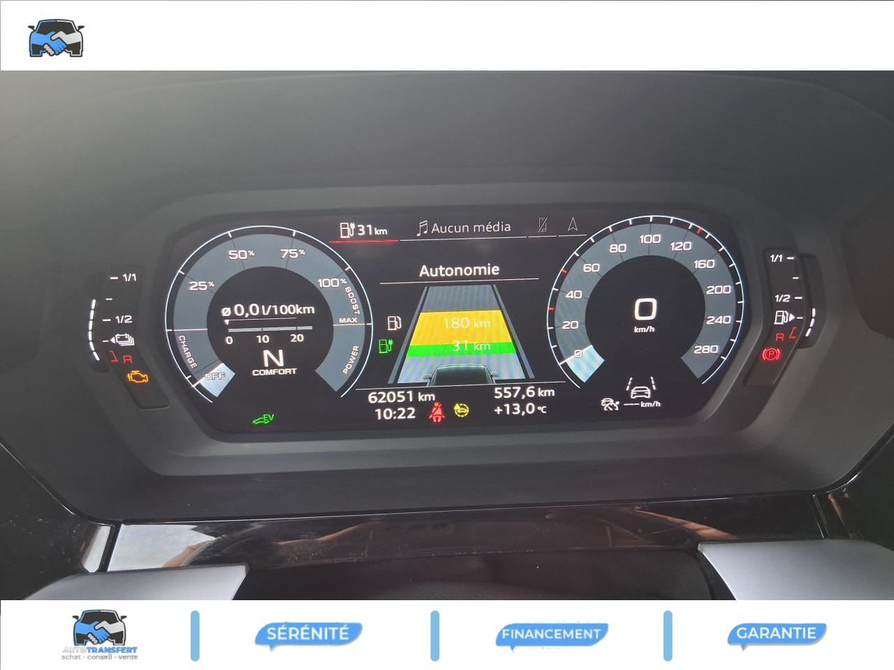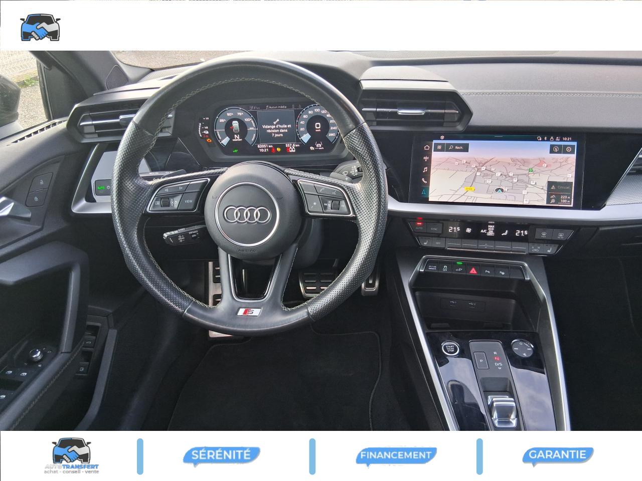 Audi connect navigation et divertissement en combinaison avec MMI navigation plus avec MMI touchAudi Drive SelectAudi Park AssistAudi smartphone interfaceAudi virtual cockpit : combiné d'instruments entièrement numérique de 10,25"Avertissement de sortie de voieCâble de recharge HH Type E (8 A)Caméra de reculClé à fréquence radio (sans safelock)Climatisation automatique confort 2 zonesContrôle de la pression des pneumatiquesDétecteur de pluie et allumage automatique des projecteursDirection assistée électromécanique asservie à la vitesseInterface BluetoothJantes en alliage léger, 5 branches en Y, Gris Graphite, tournées brillantes, dimension 8,0J x 18 avec pneus 225/40 R18Kit anticrevaison (compresseur et produit de colmatage)Limiteur de vitesseOutillage de bordPack Intérieur S lineRéception radio numérique (DAB)Régulateur de vitesse