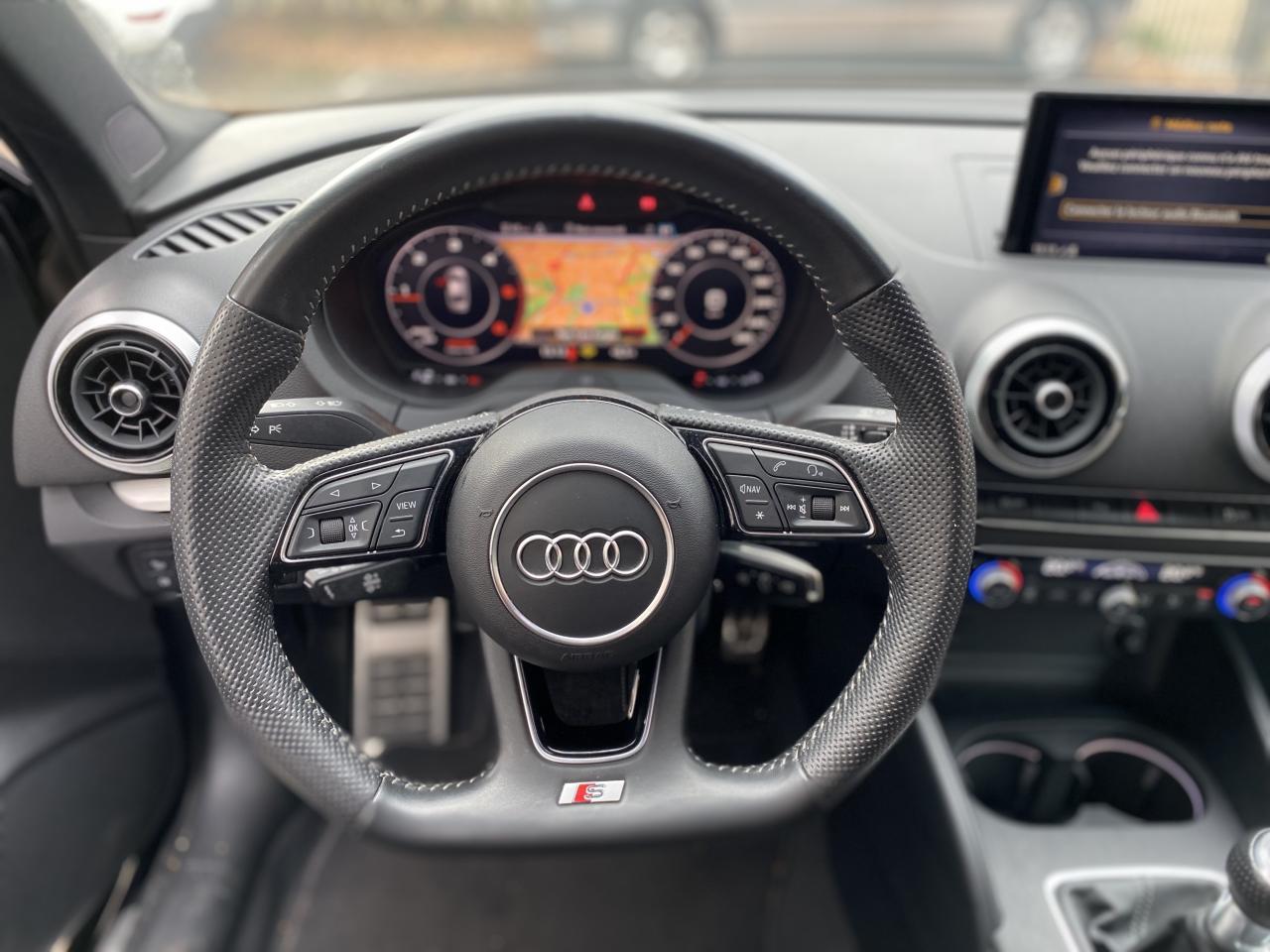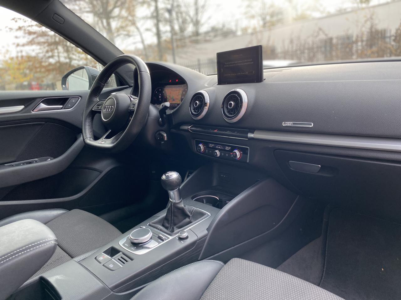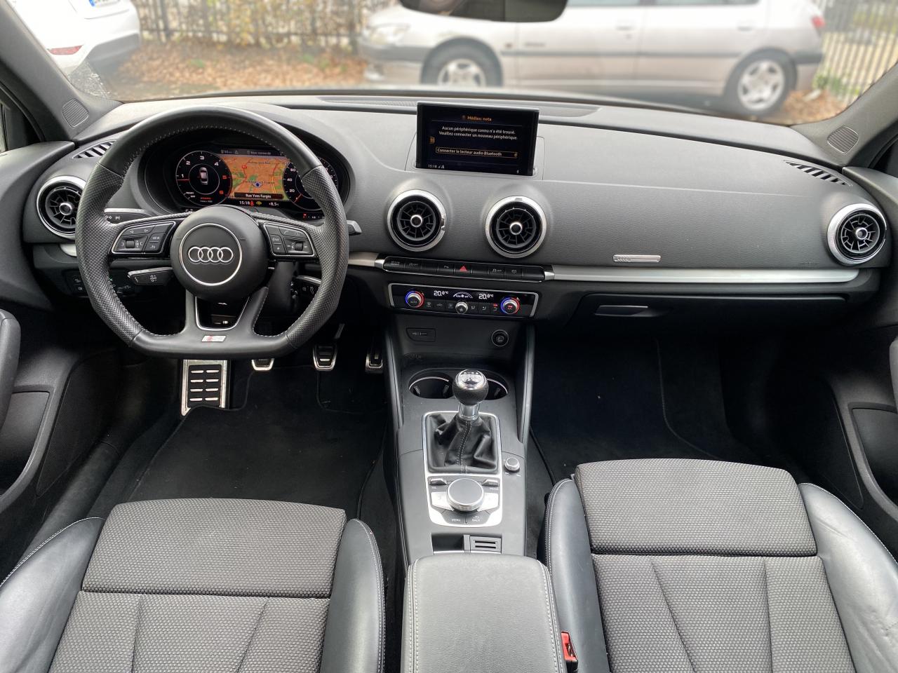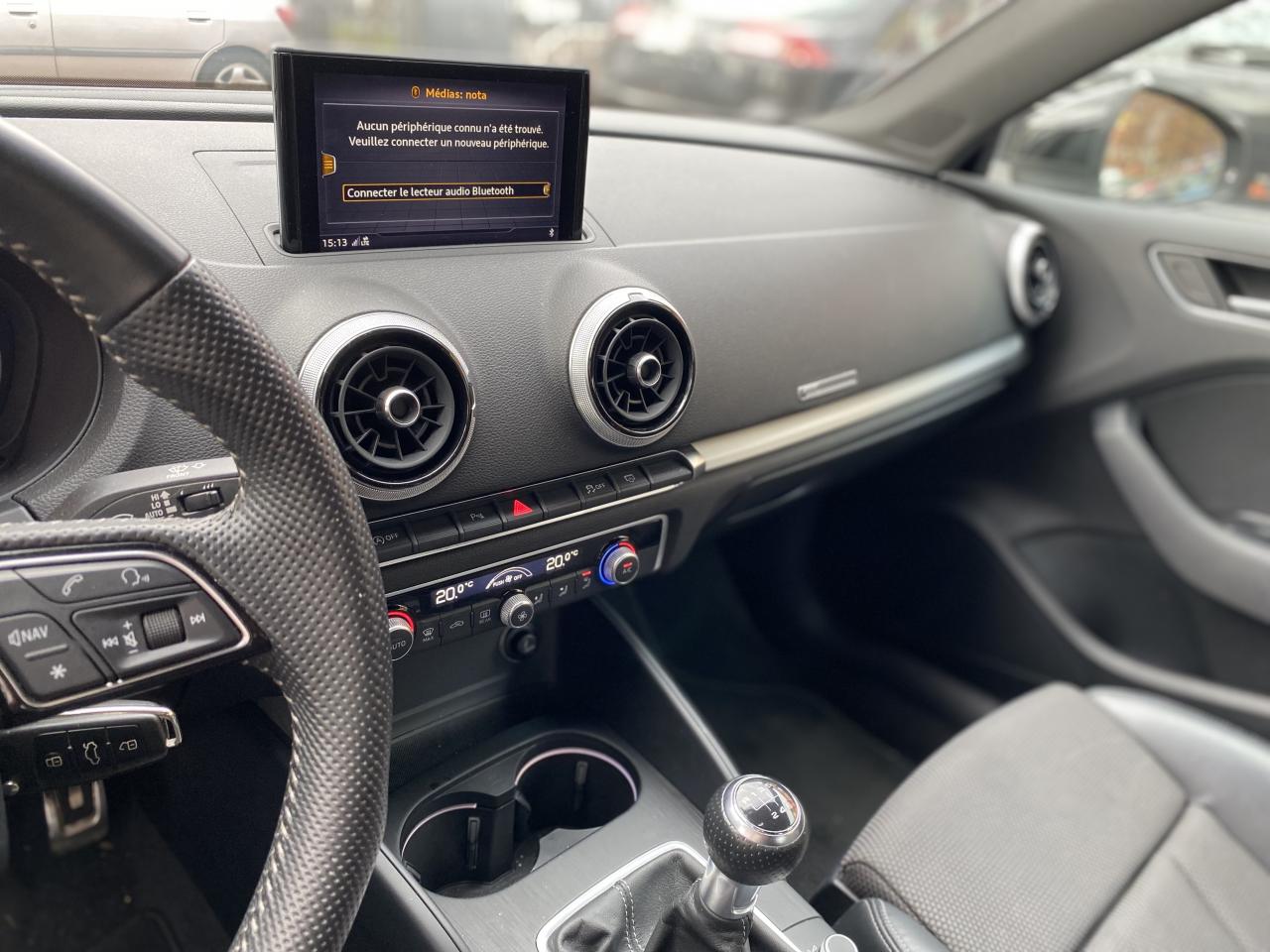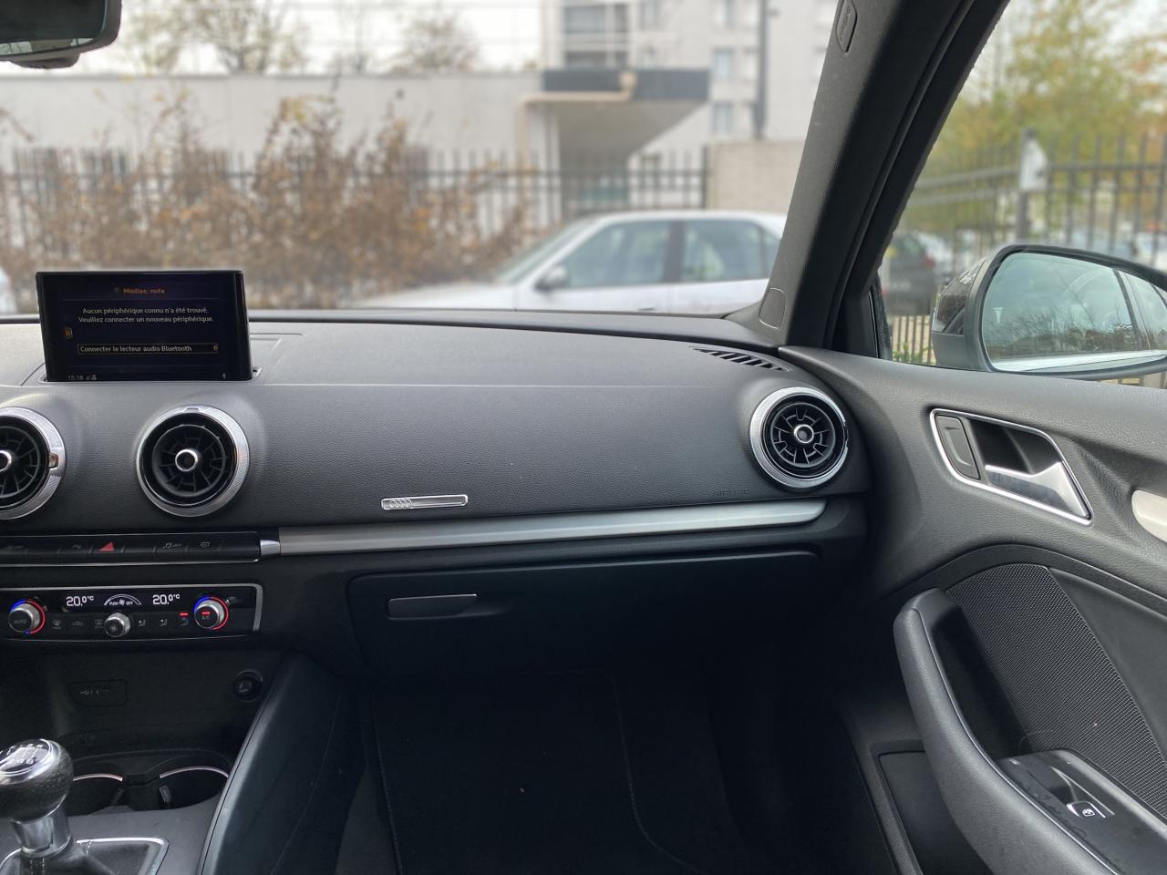 Accoudoir central avantAirbag de têteAirbags frontaux, latéraux et de genoux pour le conducteur et le passager avantApplications décoratives en aluminium brossé matAppuie-tête intégraux à l'avant et à l'arrièreASR (antipatinage) pour une motricité et une rigidité transversale optimales. Réduit le patinage des roues motricesAudi drive select, permet différents réglages:Efficience, Confort, Dynamique, Auto et IndividuelAudi Hold AssistAudi Parking SystemAudi sound system : 10 haut-parleurs incluant un haut-parleur central et un subwoofer ; amplificateur à 6 canaux avec une puissance totale de 180 wattsBoîtiers de rétroviseurs extérieurs dans la teinte du véhiculeBuses de lave-glace chauffantesCâbles de recharge pour téléphone portable, compatibles iPhone et AndroidChâssis “Sport”Ciel de pavillon en tissu noirClimatisation automatique bi-zoneContrôle de la pression des pneumatiquesDésactivation de l'airbag du passager avantDétecteur de pluie et allumage automatique des projecteursDirection assistée ServotronicEcrous antivolESC : contrôle électronique de stabilisation. Relie ABS, EBV, ASR et EDSFixation pour sièges enfants ISOFIX et Top Tether pour les places arrière extérieuresFrein à disque sur les essieux avant et arrièreFrein de stationnement electromécaniqueInterface BluetoothJantes en aluminium coulé style 5 branches parallèles, partiellement polies avec pneus 225/40 R18Kit anticrevaison (compresseur et produit de colmatage)Lecteur CD/MP3 avec un slot pour carte SDMMI navigationPack Aluminium extérieurPack aluminium intérieurPack EclairagePack rangement et coffrePack SmartphonePare-brise avec isolation acoustiquePeinture intégrale uniePhares à LED avec clignotants arrière à LED dynamiquesRégulateur de vitesseRétroviseur intérieur électrochromeRétroviseurs extérieurs avec clignotants à LED intégrésRétroviseurs extérieurs réglables, dégivrants et rabattables électriquement avec position automatique pour manoeuvre de stationnementSécurité enfants électriqueSellerie Tissu Séquence / CuirSièges avant sportSystème ABS avec répartiteur électronique de freinage EBV, programme électronique de stabilisation ESC avec détection de barres de toit et assistance au freinage d’urgenceSystème d'information du conducteur, avec écran couleurSystème Start/ Stop avec récupération d'énergie de freinageTapis de sol avant et arrièreTrousse de secours avec triangle de présignalisationVitres latérales et arrière athermiqueVolant réglable manuellement en hauteur et en profondeurVolant Sport 3 branches multifonction en cuir avec méplat