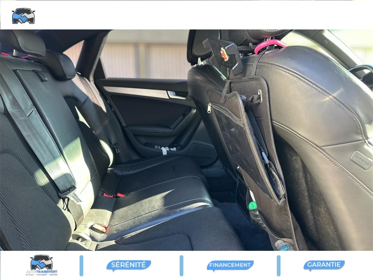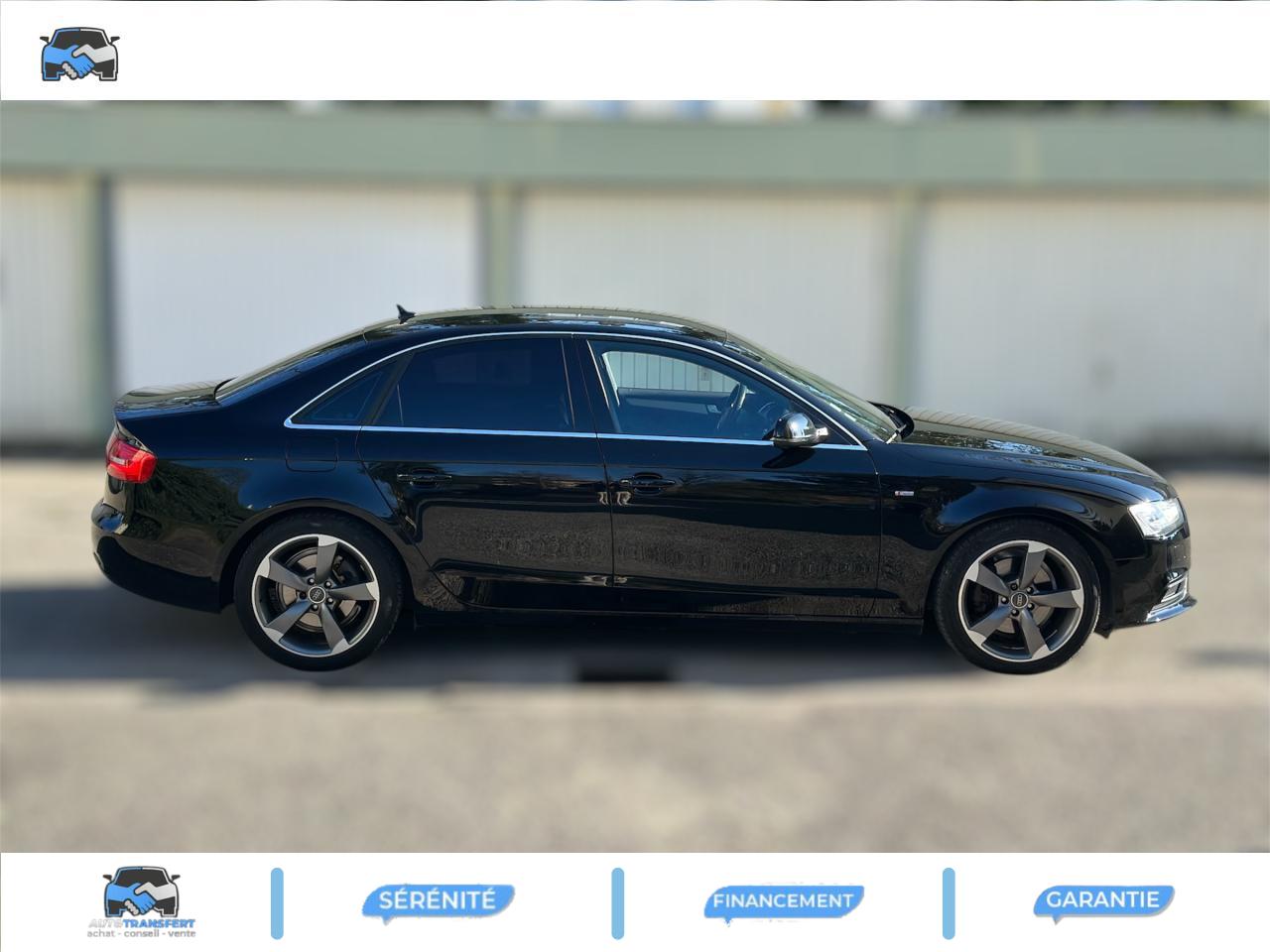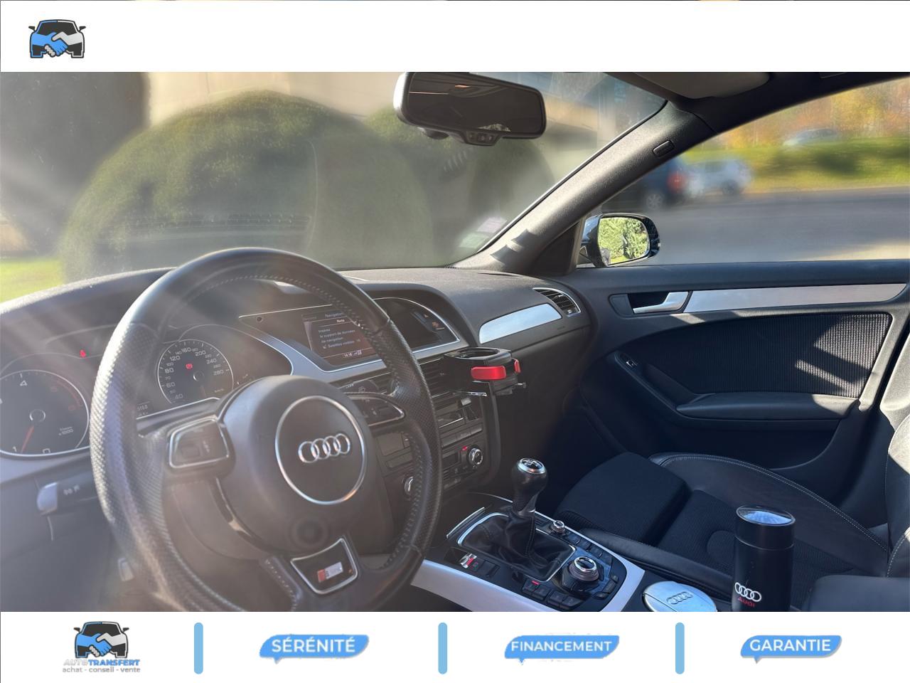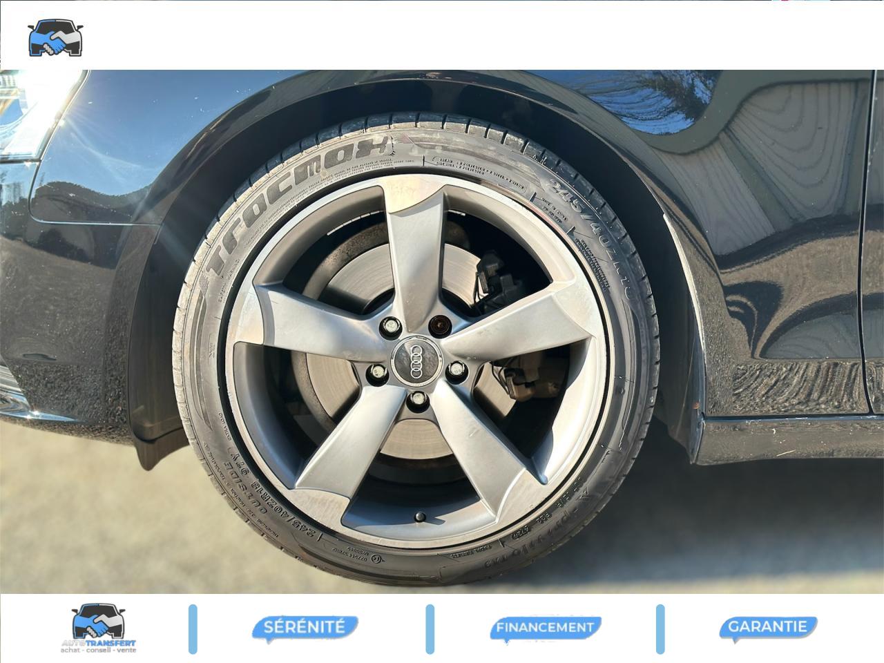 4 jantes Audi exclusive en aluminium coulé style 5 branches doubles, 8 J x 18”, avec pneus 245/40 R 18Accoudoir central avant relevable avec vide-poches fermé par abattant ; 2 prises 12 V dans la console centraleAccoudoir central, dans le dossier des sièges arrière, rabattableAirbags grand volume pour conducteur et passager avant avec détecteur de la position d'assise ; airbag adaptatif pour le conducteur et passager avantAirbags latéraux (airbag thorax et bassin à l'avant)Allume-cigare intégré dans le cendrier avantAntipatinage électronique ASRApplications décoratives en aluminium brossé matApplications décoratives en vernis rétro-réfléchissant sur le tableau de bordAppuie-tête, réglables à l'avant et à l'arrièreAudi Backguard, en cas de collision arrière, la conception du siège permet l'amortissement du haut du corps et le soutien plus précoce de la têteAvertisseur deux tons avec commande au centre du volantBlocage électronique de diff érentiel EDS, aide au démarrage intervenant jusqu'à une vitesse d'environ 100 km/hCalandre Singleframe de couleur gris platineCapot de coffre à ouverture automatiqueCarrosserie galvaniséeCeintures de sécurité, automatiques à trois points pour tous les sièges, contrôle de port de ceinture à l'avant, couleur assortie à celle de l'habitacleCendriers dans la console centrale à l'avant et à l'arrièreChangeur 6 CD compatible MP3 et WMA dans la boîte à gantsChâssis DynamiqueChâssis Sport avec amortissement plus ferme et suspensions renforcéesCiel de pavillon en tissu noirClimatisation automatique Confort Plus 3 zonesColonne de direction de sécurité : contient un système mécanique de déplacement avec fonction d'amortissement qui complète le potentiel de sécurité de la ceinture et de l'airbagContact d'allumage électronique ; clé de contact pouvant mémoriser différentes données d'entretienContrôle de pression des pneus : vérifie durant la marche la pression de chacune des roues en serviceCric dans le coffreDésactivation de l'airbag passager (désactive aussi l'airbag latéral passager)Détecteur de pluie et allumage automatique des projecteursDirection asservie à la vitesse servotronicDossier des sièges arrière rabattable séparément 2/3 - 1/3, avec déverrouillage à distance des dossiers depuis le coffreEclairage intérieur à extinction temporisée et contacteurs sur toutes les portièresEcran 6,5” couleur sur le tableau de bord pour l'affi chage des fonctions radio, climatisation et menu du véhicule, ainsi que de l'heureEcran central avec affichage monochrome, pour l'affichage de la température extérieure, de la portée et de la fréquence radioEcrous antivolÉtui à lunettes, dans le module d'éclairage intérieur avant, au-dessus du rétroviseur intérieurFonction Start/Stop : coupure et redémarrage automatiques du moteur en cas d'arrêt prolongé au point mort, désactivable par un bouton sur la console centraleFrein de stationnement electromécaniqueGPS PlusIndicateur d'usure des disques à l'avant, affi chage sur le système d'information du conducteurIndicateur de rapport de vitesse dans le système d'information du conducteur : apporte assistance au conducteur dans le choix du rapport de vitesse adaptéIndicateur de température extérieure dans le système d'information du conducteur, en cas de températures inférieures à +5 °CInscriptions S line sur ailes avant et seuils de portesInstrumentation à éclairage réglable, tachymètre électronique avec compteur kilométrique totalisateur et journalier, compte-tours, horloge, indicateur de température du liquide de refroidissement et jauge de carburantLave-glace, deux vitesses, réglage d'intermittence sur 4 niveaux, commande de balayage coup par coup, lavage-balayage automatiqueLave-phares haute pressionLève-vitres électriques à l'avant et à l'arrière avec protection antipincement et fonction ouverture/fermeture Confort par impulsionLimiteurs d'effort des ceintures de sécurité avantLunette arrière dégivrante, avec minuterieOrdinateur de bord couleur et système de contrôle AutocheckOutillage de bord dans le coffrePack brillanceParking SystemPhares antibrouillard intégrés dans le pare-chocs avantPhares halogènes à projecteur ellipsoïdal sous vitre transparente, réglage électrique du site des phares et commande d'éclairage de stationnement, feux diurnes avec réflecteurs séparésPoignées de maintien, amorties, rabattables dans les deux sens, dans le ciel de pavillonPoignées de portières extérieures laquées dans la couleur de carrosserie, poignées cintrées agréables à utiliserPommeau de levier de vitesses en cuir perforé, surpiqûres de soufflet de levier de vitesses argentPorte-boissons, double dans la console centralePré-équipement attelagePréparation audio Basic Plus : amplificateur 4 canaux, 8 HP, puissance totale 80 WPréparation ISOFIX pour sièges latéraux arrière et siège passager avantPréparation téléphone 2 W bi-bande (D et E)Prétensionneurs des ceintures de sécurité avantProgramme électronique de stabilisation ESP, relie ABS, ASR et EDSProtection antidémarrage électronique, intégrée à la gestion du moteur, activation automatique par la clé du véhiculeQuatre oeilletons de fixation, pour maintenir les bagages et objets dans le coffre, points de suspension pour le filet mixteRangements dans les contre-portes à l'avant avec casier de rangement pour boissons, rangements dans les contre-portes arrièreRéglage d'appuis lombaires électriques sur 4 plans pour sièges avantRégulateur de vitesse électronique actif dès 30 km/h. Inclut fonction de freinage. Affichage de la vitesse paramétrée sur l'écran de l'ordinateur de bordRéservoir avec protection contre les erreurs de ravitaillementRétroviseur intérieur jour/nuit automatique. Bande grise de pare-brise incluseRétroviseurs extérieurs avec clignotants latéraux intégrés à diodes, réglables électriquement, boîtie