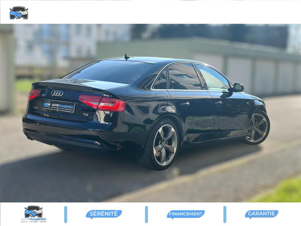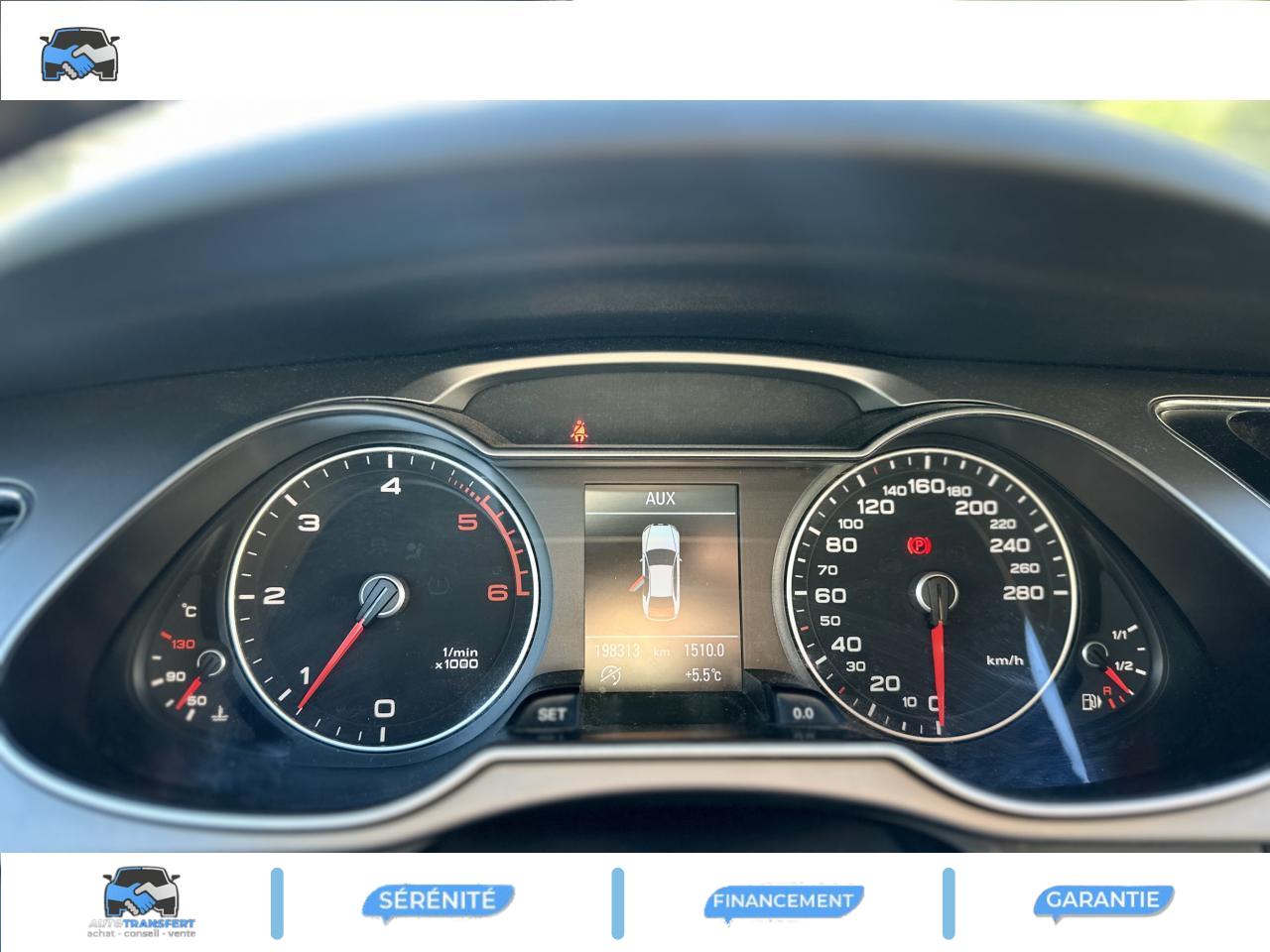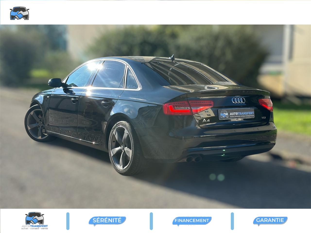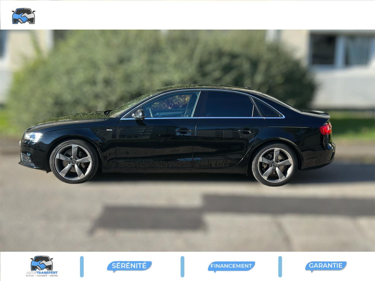 4 jantes Audi exclusive en aluminium coulé style 5 branches doubles, 8 J x 18”, avec pneus 245/40 R 18Accoudoir central avant relevable avec vide-poches fermé par abattant ; 2 prises 12 V dans la console centraleAccoudoir central, dans le dossier des sièges arrière, rabattableAirbags grand volume pour conducteur et passager avant avec détecteur de la position d'assise ; airbag adaptatif pour le conducteur et passager avantAirbags latéraux (airbag thorax et bassin à l'avant)Allume-cigare intégré dans le cendrier avantAntipatinage électronique ASRApplications décoratives en aluminium brossé matApplications décoratives en vernis rétro-réfléchissant sur le tableau de bordAppuie-tête, réglables à l'avant et à l'arrièreAudi Backguard, en cas de collision arrière, la conception du siège permet l'amortissement du haut du corps et le soutien plus précoce de la têteAvertisseur deux tons avec commande au centre du volantBlocage électronique de diff érentiel EDS, aide au démarrage intervenant jusqu'à une vitesse d'environ 100 km/hCalandre Singleframe de couleur gris platineCapot de coffre à ouverture automatiqueCarrosserie galvaniséeCeintures de sécurité, automatiques à trois points pour tous les sièges, contrôle de port de ceinture à l'avant, couleur assortie à celle de l'habitacleCendriers dans la console centrale à l'avant et à l'arrièreChangeur 6 CD compatible MP3 et WMA dans la boîte à gantsChâssis DynamiqueChâssis Sport avec amortissement plus ferme et suspensions renforcéesCiel de pavillon en tissu noirClimatisation automatique Confort Plus 3 zonesColonne de direction de sécurité : contient un système mécanique de déplacement avec fonction d'amortissement qui complète le potentiel de sécurité de la ceinture et de l'airbagContact d'allumage électronique ; clé de contact pouvant mémoriser différentes données d'entretienContrôle de pression des pneus : vérifie durant la marche la pression de chacune des roues en serviceCric dans le coffreDésactivation de l'airbag passager (désactive aussi l'airbag latéral passager)Détecteur de pluie et allumage automatique des projecteursDirection asservie à la vitesse servotronicDossier des sièges arrière rabattable séparément 2/3 - 1/3, avec déverrouillage à distance des dossiers depuis le coffreEclairage intérieur à extinction temporisée et contacteurs sur toutes les portièresEcran 6,5” couleur sur le tableau de bord pour l'affi chage des fonctions radio, climatisation et menu du véhicule, ainsi que de l'heureEcran central avec affichage monochrome, pour l'affichage de la température extérieure, de la portée et de la fréquence radioEcrous antivolÉtui à lunettes, dans le module d'éclairage intérieur avant, au-dessus du rétroviseur intérieurFonction Start/Stop : coupure et redémarrage automatiques du moteur en cas d'arrêt prolongé au point mort, désactivable par un bouton sur la console centraleFrein de stationnement electromécaniqueGPS PlusIndicateur d'usure des disques à l'avant, affi chage sur le système d'information du conducteurIndicateur de rapport de vitesse dans le système d'information du conducteur : apporte assistance au conducteur dans le choix du rapport de vitesse adaptéIndicateur de température extérieure dans le système d'information du conducteur, en cas de températures inférieures à +5 °CInscriptions S line sur ailes avant et seuils de portesInstrumentation à éclairage réglable, tachymètre électronique avec compteur kilométrique totalisateur et journalier, compte-tours, horloge, indicateur de température du liquide de refroidissement et jauge de carburantLave-glace, deux vitesses, réglage d'intermittence sur 4 niveaux, commande de balayage coup par coup, lavage-balayage automatiqueLave-phares haute pressionLève-vitres électriques à l'avant et à l'arrière avec protection antipincement et fonction ouverture/fermeture Confort par impulsionLimiteurs d'effort des ceintures de sécurité avantLunette arrière dégivrante, avec minuterieOrdinateur de bord couleur et système de contrôle AutocheckOutillage de bord dans le coffrePack brillanceParking SystemPhares antibrouillard intégrés dans le pare-chocs avantPhares halogènes à projecteur ellipsoïdal sous vitre transparente, réglage électrique du site des phares et commande d'éclairage de stationnement, feux diurnes avec réflecteurs séparésPoignées de maintien, amorties, rabattables dans les deux sens, dans le ciel de pavillonPoignées de portières extérieures laquées dans la couleur de carrosserie, poignées cintrées agréables à utiliserPommeau de levier de vitesses en cuir perforé, surpiqûres de soufflet de levier de vitesses argentPorte-boissons, double dans la console centralePré-équipement attelagePréparation audio Basic Plus : amplificateur 4 canaux, 8 HP, puissance totale 80 WPréparation ISOFIX pour sièges latéraux arrière et siège passager avantPréparation téléphone 2 W bi-bande (D et E)Prétensionneurs des ceintures de sécurité avantProgramme électronique de stabilisation ESP, relie ABS, ASR et EDSProtection antidémarrage électronique, intégrée à la gestion du moteur, activation automatique par la clé du véhiculeQuatre oeilletons de fixation, pour maintenir les bagages et objets dans le coffre, points de suspension pour le filet mixteRangements dans les contre-portes à l'avant avec casier de rangement pour boissons, rangements dans les contre-portes arrièreRéglage d'appuis lombaires électriques sur 4 plans pour sièges avantRégulateur de vitesse électronique actif dès 30 km/h. Inclut fonction de freinage. Affichage de la vitesse paramétrée sur l'écran de l'ordinateur de bordRéservoir avec protection contre les erreurs de ravitaillementRétroviseur intérieur jour/nuit automatique. Bande grise de pare-brise incluseRétroviseurs extérieurs avec clignotants latéraux intégrés à diodes, réglables électriquement, boîtie