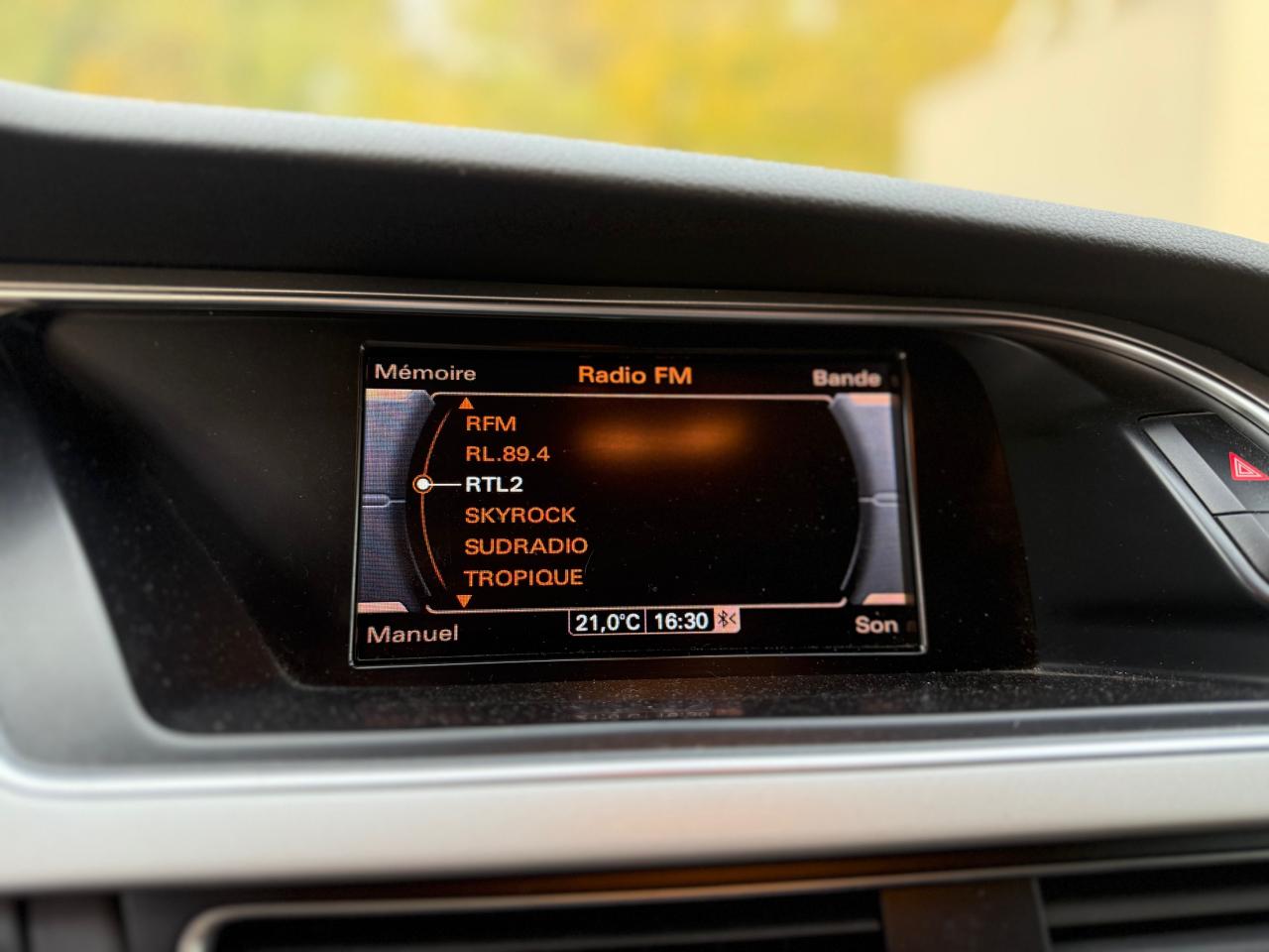 Accoudoir central avant avec vide-poches et 2 prises 12 V dans la console centraleAdvanced Key : système d'autorisation d'accès et de démarrage main libreAirbags grand volume pour conducteur et passager avant avec détecteur de la position d'assise ; airbag adaptatif pour le conducteur et passager avantAirbags latérauxAllume-cigare intégré dans le cendrier avantAntipatinage ASR pour une motricité optimale, empêche le patinage des roues motricesApplications en aluminium Trigon sur contre portes et console centraleAppuie-têtes réglables à l'avant et à l'arrièreAudi Hold Assist : maintient le véhicule à l'arrêt en côte comme en descente, sans limite de temps. Le système est activé par pression sur une touche et permet au conducteur un redémarrage confortable sans actionner le frein à mainAudi Music InterfaceAvertisseur deux tons avec commande au centre du volantBanquette arrière 3 placesBlocage électronique de différentiel EDSCalandre Singleframe avec lamelles horizontales noires brillantesCapot de coffre à déverrouillage par la télécommande ou par actionnement de la touche douce sur le capot du coffreCarrosserie galvaniséeCeintures de sécurité, automatiques à 3 points pour les 5 places, contrôle de port de ceinture, couleur assortie à celle de l'habitacleCendrier dans la console centrale à l'avant et à l'arrièreChâssis DynamiqueCiel de pavillon en tissu, selon la couleur choisie, argent lunaire, noir ou beige pashminaClimatisation automatique Confort Plus 3 zones à fonctionnalités étendues et affichage numériqueColonne de direction de sécuritéContact d'allumage électronique ; clé de contact pouvant mémoriser différentes données d'entretienContrôle de pression des pneus, vérifie durant la marche la pression de chacune des roues en serviceContrôle électronique de stabilisation ESC, relie ABS, ASR et EDS à ses propres capteursCric dans le coffreDésactivation de l'airbag passager (désactive aussi l'airbag latéral passager)Détecteur de pluie et allumage automatique des projecteursDirection asservie à la vitesse servotronicDossier des sièges arrière rabattable séparément 2/3 - 1/3, avec déverrouillage à distance des dossiers depuis le coffreEclairage intérieur à extinction temporisée et contacteurs sur toutes les portières ; éclairage coffre, conducteur passager avant et arrière, deux spots de lecture à l'avant, éclairage intérieur de l'arrière, miroir de cEcrous antivolEntourages de vitre en aluminium, revêtement noir brillant sur les montants de pavillon centraux et les triangles des portières arrièreÉtui à lunettes, dans le module d'éclairage intérieur avant, au-dessus du rétroviseur intérieurFonction Start/StopFrein de stationnement electromécaniqueGPS AdvancedIndicateur d'usure des disques à l'avantIndicateur de température extérieure dans le système d'information du conducteurInstrumentation à éclairage réglable, tachymètre électronique avec compteur kilométrique totalisateur et journalier, compte-tours, horloge, indicateur de température du liquide de refroidissement et jauge de carburantJantes Audi Sport en aluminium coulé style 10 branches fines, 8,5 J x 18”, avec pneus 245/40 R 18Lave-glace, deux vitesses, réglage d'intermittence sur 4 niveaux, commande de balayage coup par coup, lavage-balayage automatiqueLave-phares haute pressionLève-vitres électriques à l'avant et à l'arrière avec protection antipincement et fonction ouverture/fermeture Confort par impulsionLimiteurs d'effort des ceintures de sécurité avantLunette arrière dégivrante avec minuterieOrdinateur de bord couleur et système de contrôle AutocheckOutillage de bord dans le coffrePack EclairagePack RangementParking System Plus avec caméra de recul : signal acoustique et visuel d'aide au stationnement avant et arrière avec caméra de recul permettant de visualiser l'arrière du véhicule sur l'écran couleur du MMI.Phares antibrouillard intégrés dans le pare-chocsPoignées de maintien, amorties, rabattables dans les deux sens, dans le ciel de pavillonPoignées de portières extérieures laquées dans la couleur de carrosserie, poignées cintrées agréables à utiliserPré-équipement attelagePréparation ISOFIX pour sièges latéraux arrière et siège passager avantPréparation téléphone 2 W bi-bande (D et E), sans support pour adaptateur ni antenne de toit, commande sur volant multifonction, mains libres, interface BluetoothPrétensionneurs des ceintures de sécurité avantProtection antidémarrage électronique, intégrée à la gestion du moteur, activation automatique par la clé du véhiculeQuatre oeilletons de fixation, pour maintenir les bagages et objets dans le coffre, points de suspension pour le filet mixteRangements dans les contre-portes à l'avant avec casier de rangement pour boissons, rangements à l'arrière sur les côtés du siège et dans les garnitures latérales arrièreRéglage d'appuis lombaires électriques sur 4 plans pour sièges avantRégulateur de vitesse électronique actif dès 30 km/h. Inclut fonction de freinage. Affichage de la vitesse paramétrée sur l'écran de l'ordinateur de bordRéservoir avec protection contre les erreurs de ravitaillementRétroviseur intérieur jour/nuit automatique incluant une bande grise en haut du pare-briseRétroviseurs extérieurs avec clignotant latéral intégré à diodes, réglable électriquement, boîtiers dans la couleur de la carrosserie, miroir asphériqueRétroviseurs extérieurs et buses de lave-glace chauffantsRoue de secours temporaireSellerie, appuie-tête et accoudoir central avant en cuir MilanoSideguard, système d'airbags de tête grand formatSièges avant chauffants : chauffe-dossier et assise y compris partie latérale des siègesSièges avant électriques et conducteur à mémoire 2 combinaisons + rétroviseurs extérieurs jour/nuit automatiques, rétroviseurs extérieurs à mémoire dégivrants, escamotablesSortie d'échappe
