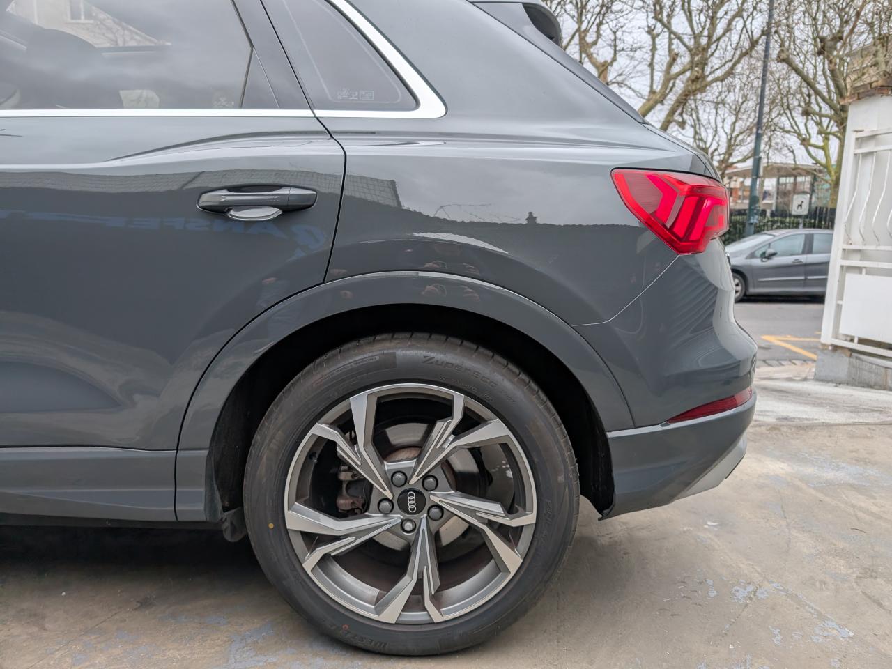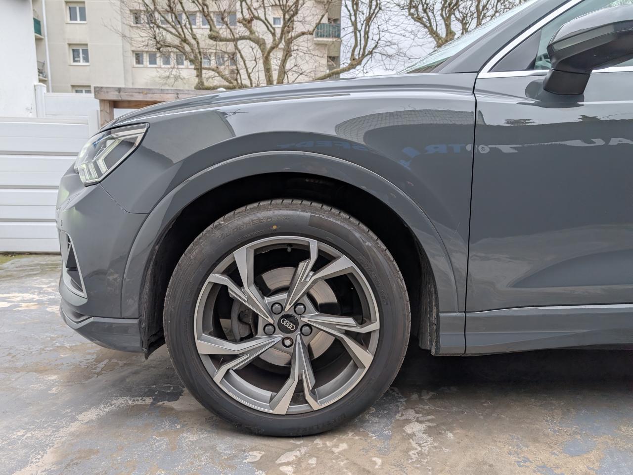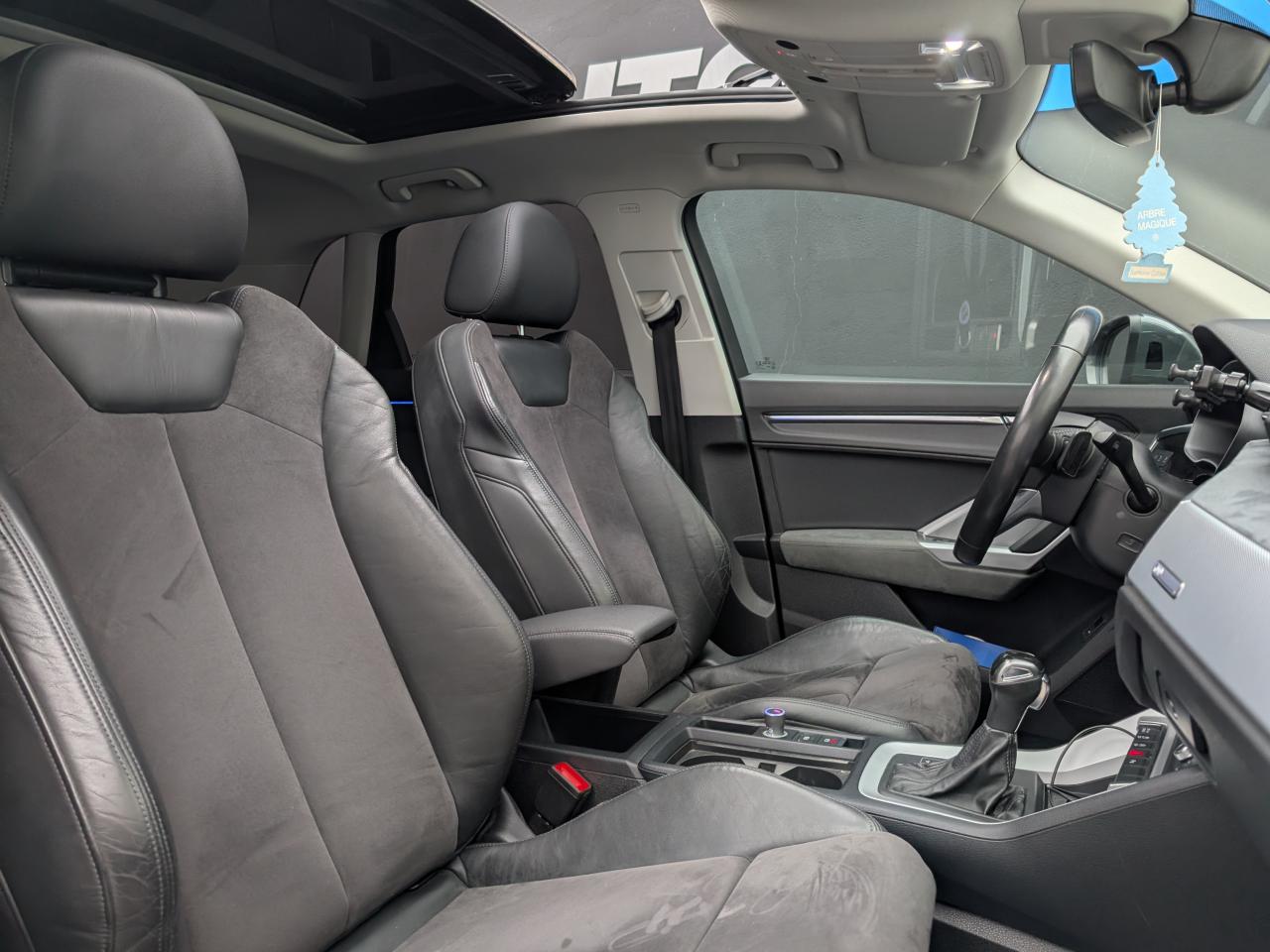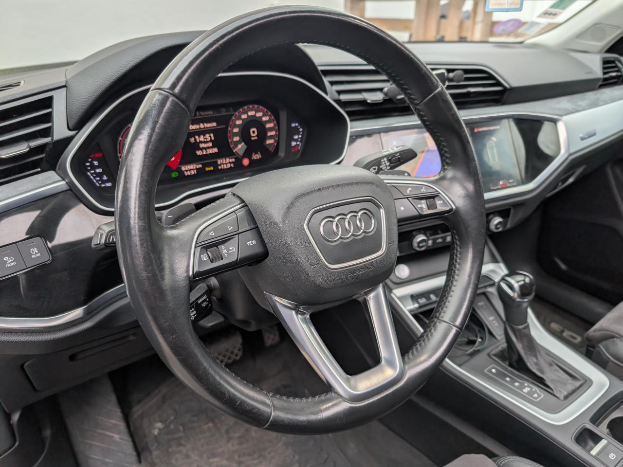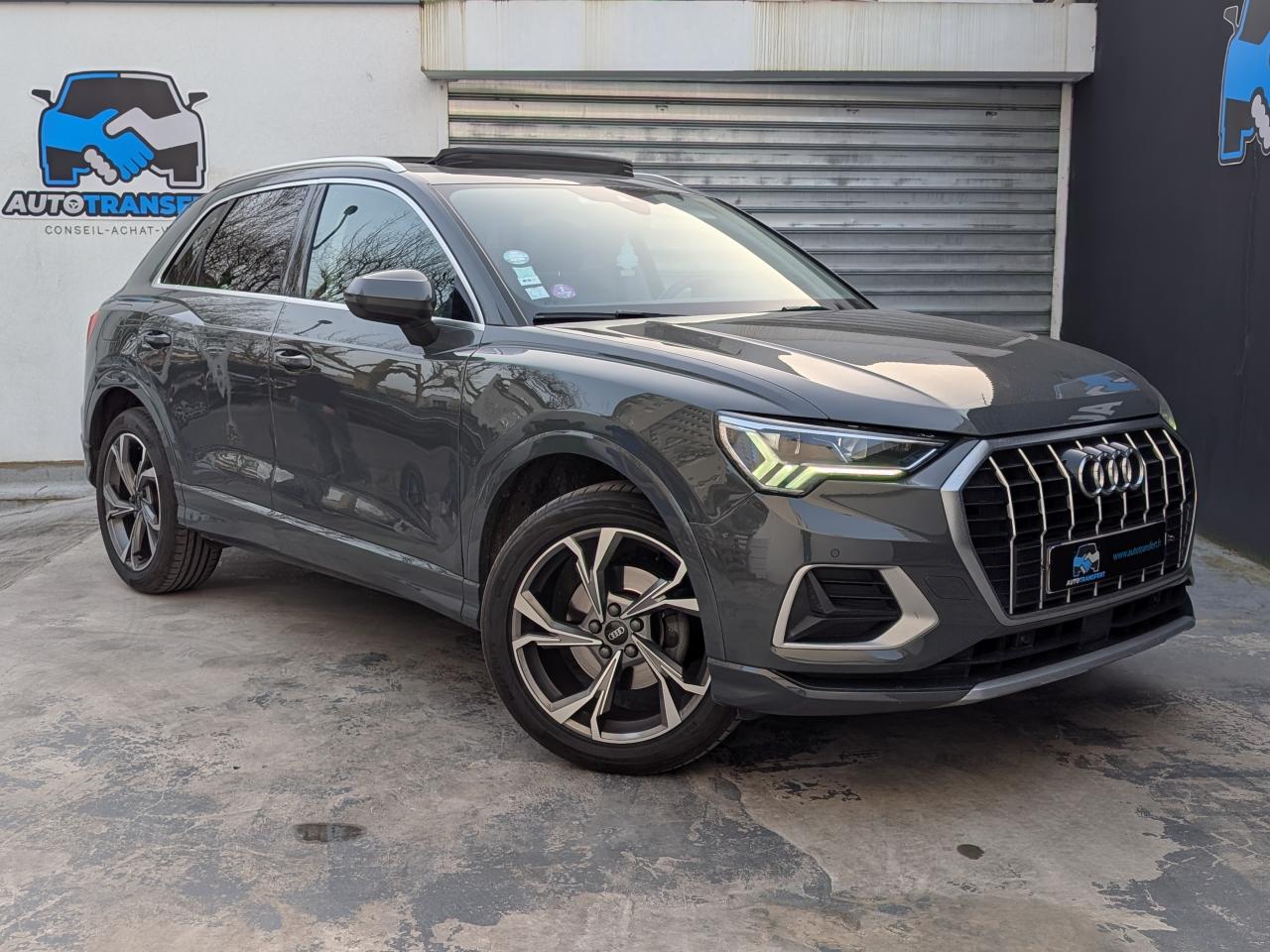 Audi Q3 1.5 TFSI 150 ch S-tronic Design Luxe de 2019, avec 64 000 km. SUV confortable et élégant, équipé d’une boîte automatique, d’un toit ouvrant, d’un hayon électrique mains libres, de radars avant/arrière, d’une caméra de recul et d’Apple CarPlay / Android Auto.