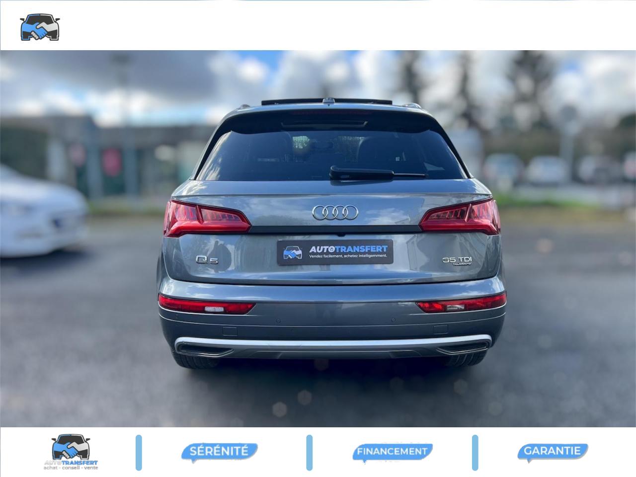 Accoudoir central avantAffichage du contrôle de la pression des pneumatiquesAffichage tête hauteAirbags grand volume pour le conducteur et le passagerAirbags latéraux à l'avant et système d'airbags de têteAntipatinage ASR pour une motricité optimale, empêche le patinage des roues motricesApplications décoratives en bois de chêne grisAppui lombaire à 4 axes pour les sièges avant, réglage électrique, horizontal et verticalAudi connectAudi connect "Sécurité et Service"Audi Drive SelectAudi Hold AssistAudi parking system plus : signal acoustique et visuel d'aide au stationnement avant et arrière par pictogrammes sur l'écranAudi Phone BoxAudi pre sense cityAudi smartphone interfaceAudi Sound SystemAudi virtual cockpit : système d'information du conducteur avec écran haute résolution de 12,3"Banquette arrière plusBarres de toit finition aluminium anodiséBlocage électronique de différentiel (EDS)Câbles de recharge pour téléphone portable, compatibles iPhone et AndroidCaméra de reculCapot de coffre à ouverture et fermeture électriquesCeintures de sécurité, automatiques à trois points pour tous les sièges, contrôle de port de ceinture à l'avant, couleur assortie à celle de l'habitacleChâssis DynamiqueClimatisation automatique confort 3 zonesDéverrouillage et ouverture du hayon par un mouvement de piedDirection assistée électromécaniqueDossier de banquette arrière rabattable à distance et en trois parties 40 : 20 : 40 ou complètementEclairage intérieur à extinction temporisée et contacteurs sur toutes les portièresEcrous antivolEléments de l'habitacle en similicuir, partie inférieure de la console centrale (repose-genoux) et accoudoirs de portières en similicuir de couleurESC (contrôle électronique de stabilisation)Frein de stationnement électromécanique ; comprend la fonction de frein de stationnement à l'arrêt, l'assistance au démarrage par désactivation lors du démarrage et fonction de freinage d'urgence sur les quatre rouesIdentification du modèle/technologie sur le capot de coffreInscription quattro sur la calandre, le capot de coffre et le tableau de bord côté passagerInterface BluetoothJantes en aluminium coulé style 5 branches dynamiques, partiellement polies 8 J x 19 avec pneus 235/55 R 19Keyless Entry et Keyless GoLimitateur et régulateur de vitesseMMI radio plus, inclut radios AM/FM, lecteur de cartes SDCX, prise d'entrée AUX, lecteur CD, interface USB avec fonction de charge, commande MMI et 8 haut-parleurs passifs (4 à l'avant + 4 à l'arrière)Moulures de seuil avec insert en aluminium dans les ouvertures des portières avantNavigation MMI plus avec MMI touchOutillage de bordPack Audi Side AssistPack Brillance ExtérieurPack EclairagePack RangementPare-brise acoustiquePeinture intégralePeinture verniePhares Audi Matrix LED avec clignotants dynamiques à l’avant et à l’arrièrePréparation pour crochet d'attelageQuattro avec technologie ultraRéception radio numérique (DAB)Réglage en hauteur des ceintures de sécuritéRéservoir AdBlue de 12 LRétroviseur intérieur électrochrome sans contourS tronic : boîte séquentielle 7 vitesses à double embrayageSellerie cuir MilanoSet de réparation pour pneus avec compresseur 12 volts et produit de colmatage pour les pneus, vitesse maximale 80 km/hSièges avant chauffantsSièges avant réglables électriquement avec fonction mémoire pour le siège conducteur + rétroviseurs extérieurs réglables et escamotables électriquement, jour/nuit automatique, dégivrants des deux côtés et buses de lavSièges Sport à l'avantSystème de lecture des panneaux de signalisation par caméraSystème Start/Stop réduit la consommation de carburant ainsi que les émissions de CO2Tapis de coffreTapis de sol AV et ARVitrage acoustique pour les vitres de portières avantVitres athermiquesVitres surteintées (vitrage Privacy) lunette arrière et vitres latérales arrière surteintéesVolant 3 branches multifonction plus en cuir avec application chromée sur la branche inférieure avec palettes de changement de vitesse