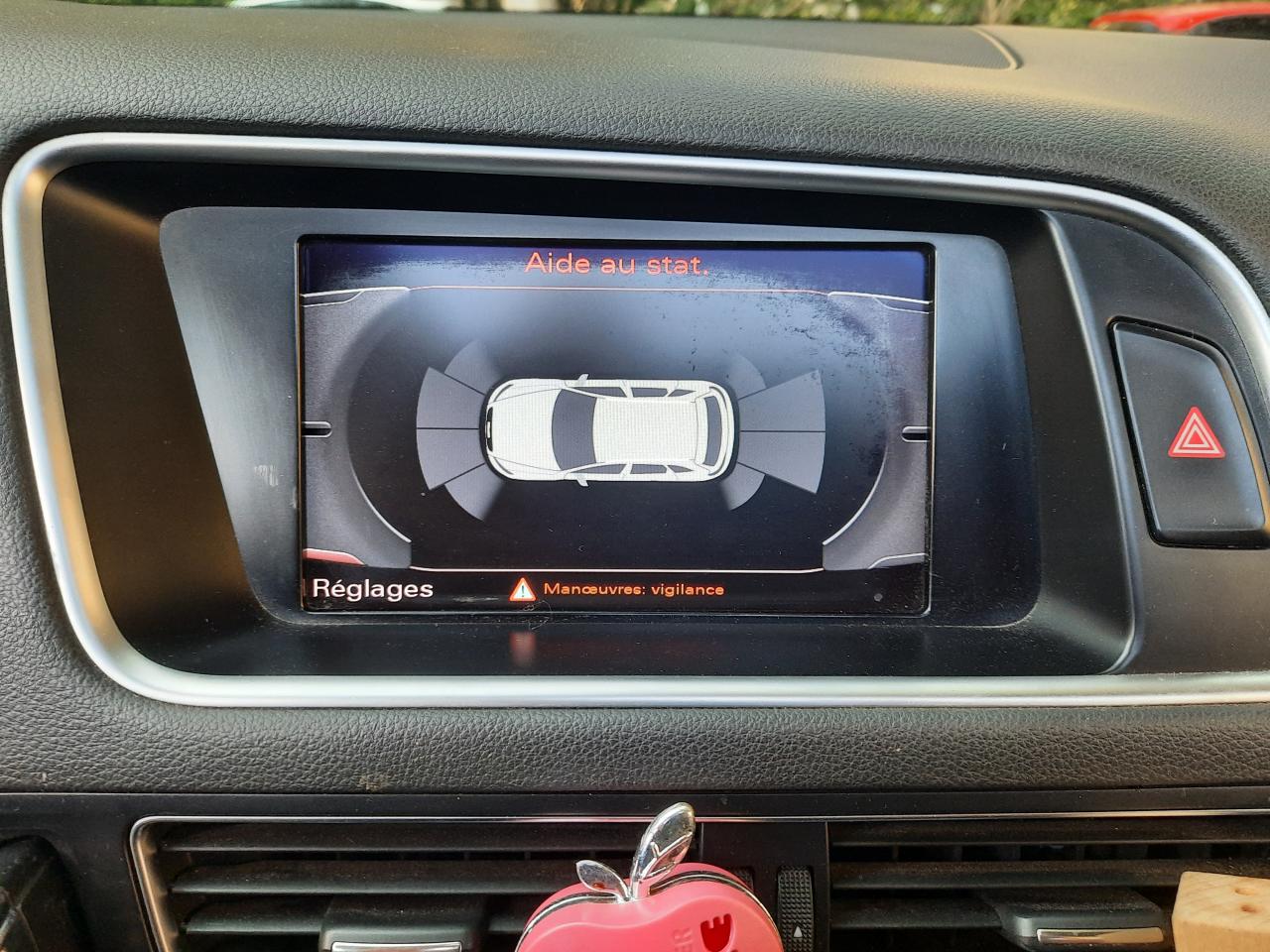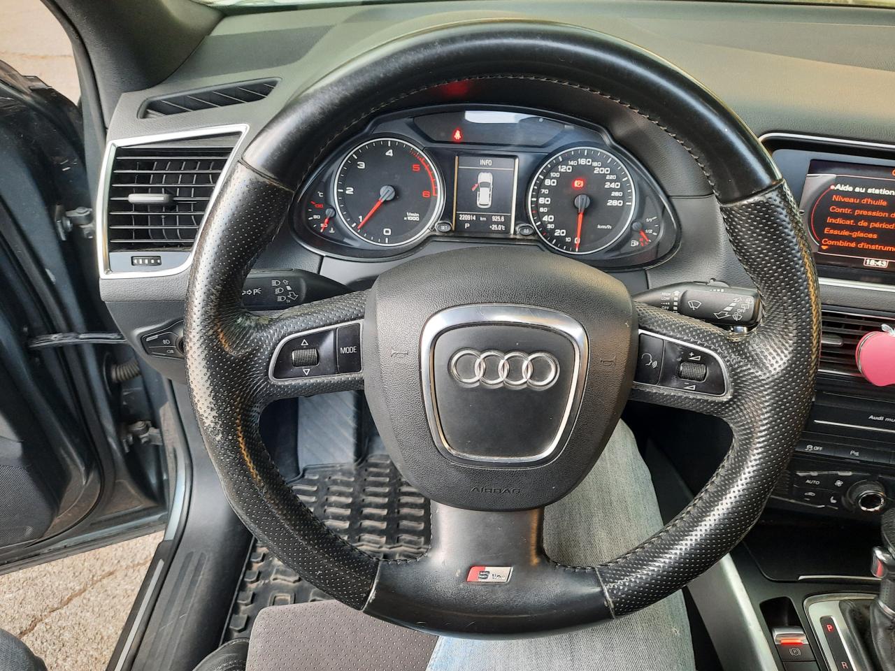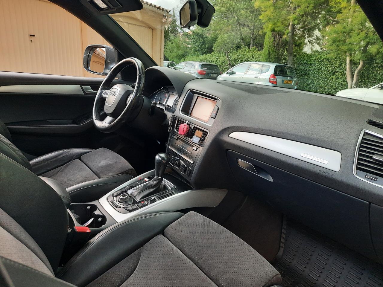 Accoudoir central à l'avant, pour conducteur et passager avant, coulissant en longueur de 65 mm, inclinaison réglable rabattable, avec vide-poches sous l'accoudoir central, incluant deux porte-boissons et prise de 12 V dans la console centraleAccoudoir central avant avec vide-poches et 2 prises 12 VAccoudoir central, dans le dossier des sièges arrière, rabattableAirbag grand volume conducteur et le passager avant, détection de la position du siège, airbag adaptatif conducteur et passager avantAirbags latéraux (airbag thorax et bassin à l'avant)Anti-démarrage électronique intégré à la commande du moteur, activation automatique avec clé du véhiculeAntipatinage ASR : empêche le patinage des roues motrices ; assure une motricité optimaleApplications décoratives S line en aluminium brossé matAppuie-têtes, réglables à l'avant et à l'arrièreAudi BackguardAvertisseur deux tons sur le moyeu du volantBanquette arrière rabattable 60/40, déverrouillage à distance des dossiers via un levier dans la garniture latérale du coffreCeintures de sécurité trois points à enrouleur pour tous les sièges, avec contrôle du port à l'avant, assorties à la couleur de l'habitacleCendrier, dans la console centrale à l'avant et à l'arrière, allume-cigare à l'avantChangeur 6 CD/MP3/WMA pour GPS PlusChâssis DynamiqueClimatisation automatique confort 3 zonesClimatisation automatique Confort Plus 3 zones à fonctionnalités étendues et affi chage numériqueColonne de direction de sécurité, complète le potentiel de protection de la ceinture et de l'airbagConsole centrale, surélevée, avec compartiment de rangement et volet roulantContact d'allumage électronique, clé de contact mémorisant différentes données d'entretienContrôle de pression des pneus : vérifie durant la marche la pression de chacune des rouesCouvre-bagages coulissant automatiquement par glissière le long du montant DDétecteur de pluie et allumage automatique des projecteursDéverrouillage de coffre par touche douceDirection assistéeEcran 6,5 pouces couleur sur le tableau de bord pour l'affichage des fonctions radio, climatisation et menu du véhicule, ainsi que de l'heureEssuie-glace arrière avec déclenchement automatique en marche arrièreEssuie-glace deux vitesses : réglage d'intermittence sur 4 niveaux, commande de balayage coup par coup, lavage-balayage automatiqueÉtui à lunettes, dans le module d'éclairage intérieur avant, au-dessus du rétroviseur intérieurFeux arrière, rouges, avec feux de recul blancs, feux arrière de brouillard intégrés, avec capot de coffre ouvert : fonction feux arrière dans le bandeau d'éclairage du pare-chocsFilet de séparation, vertical, amovibleFrein de stationnement electromécaniqueGPS Plus : système de navigation GPSHill Descent Control (HDC) : contrôle de descente qui permet de maintenir une vitesse stabiliséeIndicateur de rapport de vitesse dans le système d'information du conducteur : apporte assistance au conducteur dans le choix du rapport de vitesse adaptéIndication de l'usure des garnitures de frein à l'avant, affchage sur l'écran centralInscription “S line” sur les ailes avantInstrumentation, avec éclairage réglableLève-vitres avant et arrière électriques avec protection antipincement et fonction confort d'ouverture/fermeture par impulsionLimiteurs d'effort des ceintures de sécurité avantLunette arrière dégivrante, avec minuterieMiroir de courtoisieMoulures de seuil avec inscription S line, protection du seuil de chargement supplémentaire en acier inoxydableOrdinateur de bord couleur et contrôle AutocheckPare-chocs, laqués dans la couleur de carrosserie, bas de pare-chocs avant et arrière ainsi que bandeaux de portières en bas, noir, matPare-soleil, rabattables et pivotants, côté conducteur et passager avantParking System : système acoustique d'aide au stationnement arrièrePoignées de maintien avec mécanisme amortisseurPoignées de portes couleur carrosseriePommeau de levier de vitesses en cuir perforéPorte-boissons, double dans la console centralePréparation pour siège enfant ISOFIX pour sièges latéraux arrièreProgramme de stabilité électronique (ESP)Projecteurs antibrouillardProjecteurs halogènes à surfaces libres sous vitre transparenteQuattro : transmission intégrale permanente avec répartition asymétrique et dynamique de coupleRéglage d'appuis lombaires électriques sur 4 plans pour sièges avantRégulateur de vitesseRétroviseur intérieur électrochromeRétroviseurs extérieurs : avec clignotants à diodes intégrés, réglables et rabattable électriquement, dégivrants avec coques laquées dans la couleur de carrosserie, miroir asphérique à gaucheRétroviseurs extérieurs dégivrants et rabattables électriquementSellerie mixte en cuir/Alcantara perforé avec estampillage S lineSièges avant avec réglage manuel de la hauteur, de la longueur et des appuie-tête, ainsi que réglage de l‘inclinaison du dossierSièges avant Sport incluant supports lombaires électriquesStyle aluminium, dans l'habitacle sur les diffuseurs d'air, enjoliveur autour de l'écran central, commutateurs d'éclairage, bouton de réglage des rétroviseurs extérieurs, frein de stationnement électromécanique, volet roulant de laSystème audiophonique AudiSystème de freinage à double circuit en diagonaleTriangle de présignalisation avec fixation sur la face interne du couvercle de coffreVerrouillage centralisé avec fonction Autolock et télécommande à fréquence radioVerrouillage électrique de la colonne de directionVide-poches dans les contre-portes à l'avant et à l'arrière pouvant contenir une bouteille de 1,5 litreVitres arrière et lunette arrière surteintéesVitres arrière surteintées : revêtement foncé des vitres de portières arrière et latérales arrière ainsi que de la lunette arrièreVitres athermiques teintées vertes, pare-brise en verre feuilletéVolant airbag multifonctions Sport 3 branches