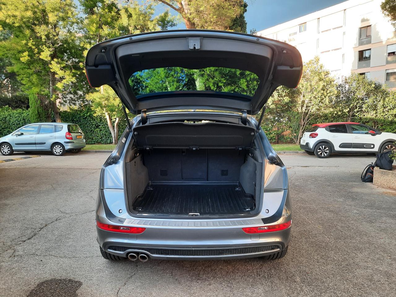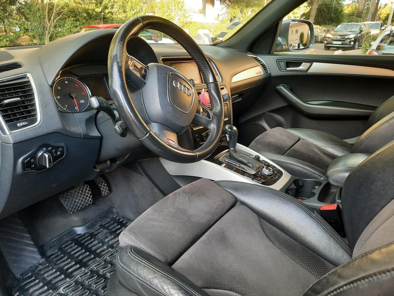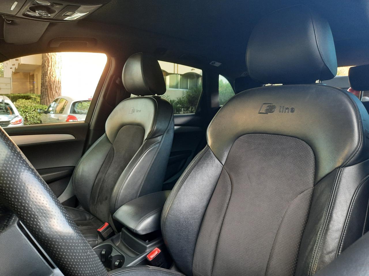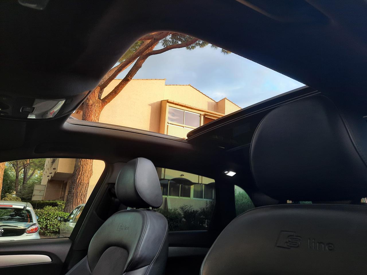Accoudoir central à l'avant, pour conducteur et passager avant, coulissant en longueur de 65 mm, inclinaison réglable rabattable, avec vide-poches sous l'accoudoir central, incluant deux porte-boissons et prise de 12 V dans la console centraleAccoudoir central avant avec vide-poches et 2 prises 12 VAccoudoir central, dans le dossier des sièges arrière, rabattableAirbag grand volume conducteur et le passager avant, détection de la position du siège, airbag adaptatif conducteur et passager avantAirbags latéraux (airbag thorax et bassin à l'avant)Anti-démarrage électronique intégré à la commande du moteur, activation automatique avec clé du véhiculeAntipatinage ASR : empêche le patinage des roues motrices ; assure une motricité optimaleApplications décoratives S line en aluminium brossé matAppuie-têtes, réglables à l'avant et à l'arrièreAudi BackguardAvertisseur deux tons sur le moyeu du volantBanquette arrière rabattable 60/40, déverrouillage à distance des dossiers via un levier dans la garniture latérale du coffreCeintures de sécurité trois points à enrouleur pour tous les sièges, avec contrôle du port à l'avant, assorties à la couleur de l'habitacleCendrier, dans la console centrale à l'avant et à l'arrière, allume-cigare à l'avantChangeur 6 CD/MP3/WMA pour GPS PlusChâssis DynamiqueClimatisation automatique confort 3 zonesClimatisation automatique Confort Plus 3 zones à fonctionnalités étendues et affi chage numériqueColonne de direction de sécurité, complète le potentiel de protection de la ceinture et de l'airbagConsole centrale, surélevée, avec compartiment de rangement et volet roulantContact d'allumage électronique, clé de contact mémorisant différentes données d'entretienContrôle de pression des pneus : vérifie durant la marche la pression de chacune des rouesCouvre-bagages coulissant automatiquement par glissière le long du montant DDétecteur de pluie et allumage automatique des projecteursDéverrouillage de coffre par touche douceDirection assistéeEcran 6,5 pouces couleur sur le tableau de bord pour l'affichage des fonctions radio, climatisation et menu du véhicule, ainsi que de l'heureEssuie-glace arrière avec déclenchement automatique en marche arrièreEssuie-glace deux vitesses : réglage d'intermittence sur 4 niveaux, commande de balayage coup par coup, lavage-balayage automatiqueÉtui à lunettes, dans le module d'éclairage intérieur avant, au-dessus du rétroviseur intérieurFeux arrière, rouges, avec feux de recul blancs, feux arrière de brouillard intégrés, avec capot de coffre ouvert : fonction feux arrière dans le bandeau d'éclairage du pare-chocsFilet de séparation, vertical, amovibleFrein de stationnement electromécaniqueGPS Plus : système de navigation GPSHill Descent Control (HDC) : contrôle de descente qui permet de maintenir une vitesse stabiliséeIndicateur de rapport de vitesse dans le système d'information du conducteur : apporte assistance au conducteur dans le choix du rapport de vitesse adaptéIndication de l'usure des garnitures de frein à l'avant, affchage sur l'écran centralInscription “S line” sur les ailes avantInstrumentation, avec éclairage réglableLève-vitres avant et arrière électriques avec protection antipincement et fonction confort d'ouverture/fermeture par impulsionLimiteurs d'effort des ceintures de sécurité avantLunette arrière dégivrante, avec minuterieMiroir de courtoisieMoulures de seuil avec inscription S line, protection du seuil de chargement supplémentaire en acier inoxydableOrdinateur de bord couleur et contrôle AutocheckPare-chocs, laqués dans la couleur de carrosserie, bas de pare-chocs avant et arrière ainsi que bandeaux de portières en bas, noir, matPare-soleil, rabattables et pivotants, côté conducteur et passager avantParking System : système acoustique d'aide au stationnement arrièrePoignées de maintien avec mécanisme amortisseurPoignées de portes couleur carrosseriePommeau de levier de vitesses en cuir perforéPorte-boissons, double dans la console centralePréparation pour siège enfant ISOFIX pour sièges latéraux arrièreProgramme de stabilité électronique (ESP)Projecteurs antibrouillardProjecteurs halogènes à surfaces libres sous vitre transparenteQuattro : transmission intégrale permanente avec répartition asymétrique et dynamique de coupleRéglage d'appuis lombaires électriques sur 4 plans pour sièges avantRégulateur de vitesseRétroviseur intérieur électrochromeRétroviseurs extérieurs : avec clignotants à diodes intégrés, réglables et rabattable électriquement, dégivrants avec coques laquées dans la couleur de carrosserie, miroir asphérique à gaucheRétroviseurs extérieurs dégivrants et rabattables électriquementSellerie mixte en cuir/Alcantara perforé avec estampillage S lineSièges avant avec réglage manuel de la hauteur, de la longueur et des appuie-tête, ainsi que réglage de l‘inclinaison du dossierSièges avant Sport incluant supports lombaires électriquesStyle aluminium, dans l'habitacle sur les diffuseurs d'air, enjoliveur autour de l'écran central, commutateurs d'éclairage, bouton de réglage des rétroviseurs extérieurs, frein de stationnement électromécanique, volet roulant de laSystème audiophonique AudiSystème de freinage à double circuit en diagonaleTriangle de présignalisation avec fixation sur la face interne du couvercle de coffreVerrouillage centralisé avec fonction Autolock et télécommande à fréquence radioVerrouillage électrique de la colonne de directionVide-poches dans les contre-portes à l'avant et à l'arrière pouvant contenir une bouteille de 1,5 litreVitres arrière et lunette arrière surteintéesVitres arrière surteintées : revêtement foncé des vitres de portières arrière et latérales arrière ainsi que de la lunette arrièreVitres athermiques teintées vertes, pare-brise en verre feuilletéVolant airbag multifonctions Sport 3 branches