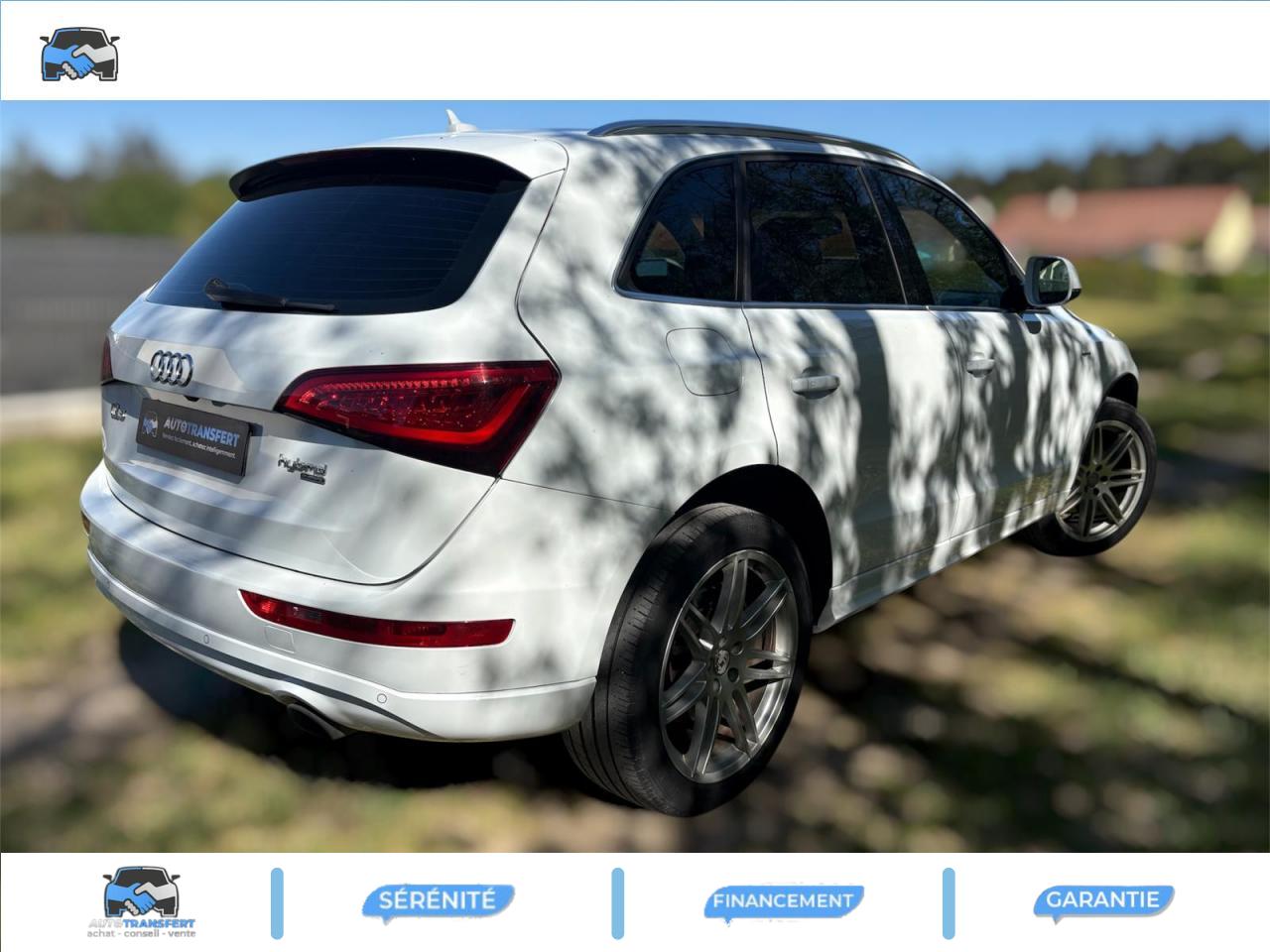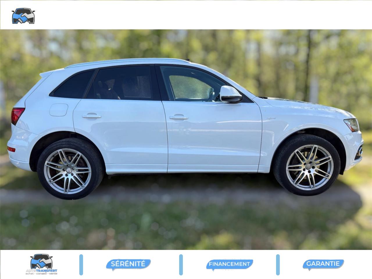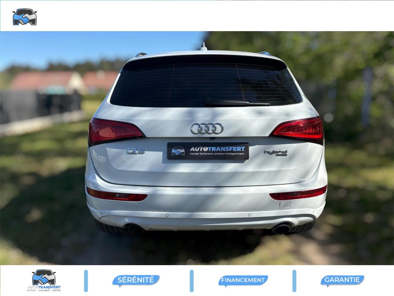 Accoudoir central à l'avant, pour conducteur et passager avant, coulissant en longueur de 65 mm, inclinaison réglable rabattable, avec vide-poches sous l'accoudoir central, incluant deux porte-boissons et prise de 12 V dans la console centraleÉtui à lunettes, dans le module d'éclairage intérieur avant, au-dessus du rétroviseur intérieurAccoudoir central avant avec vide-poches et 2 prises 12 VAccoudoir central, dans le dossier des sièges arrière, rabattableAirbag grand volume conducteur et le passager avant, détection de la position du siège, airbag adaptatif conducteur et passager avantAirbags latéraux (airbag thorax et bassin à l'avant)Anti-démarrage électronique intégré à la commande du moteur ; activation automatique par la clé du véhiculeAntipatinage électronique ASR : pour une bonne traction, empêche le patinage des roues motricesApplications décoratives S line en aluminium brossé matAppuie-têtes, réglables à l'avant et à l'arrièreBang & Olufsen Sound SystemBanquette arrière rabattable 60/40, déverrouillage à distance des dossiers via un levier dans la garniture latérale du coffreClimatisation automatique Confort PlusColonne de direction de sécurité : complète le potentiel de protection de la ceinture de sécurité et de l'airbagContrôle électronique de stabilisation ESC 8.1 avec détection de barres de toitContrôle de pression des pneus ( TPMS )Démarrage sans clé et avec cléDétecteur de pluie et de luminosité incluant rétroviseur intérieur jour/nuit automatiqueDéverrouillage de coffre par touche douce : déverrouillage avec assistance électriqueDirection assistée électromécanique, direction à crémaillère sans entretien avec asistance asservie à la vitesseEcrous de roues antivol ; ne s'enlèvent qu'au moyen de l'adaptateur fourniFonction EV : le bouton EV placé sur la console centrale permet au conducteur d'activer la conduite purement électrique dans les limites du systèmeFrein de stationnement électromécanique : comprend la fonction de frein de secours sur les quatre roues durant la marcheHauteur de châssis abaissée de 25 mm pour optimiser l'aérodynamique et renforcer visuellement le positionnement sportif du Q5 hybridIndication de l'usure des garnitures de frein à l'avant ; affichage sur l'écran centralInstrumentation de bord et ordinateur de bord spécifiques avec logo «hybrid»Interface BluetoothLogos personnalisés « hybrid » sur les ailes, le hayon et le cache-moteurOrdinateur de bord couleur et système de contrôle AutocheckOutillage de bord dans le coffreParking System arrièrePeinture intégrale : pare-chocs avant et arrière et bas de caisse en couleur carrosseriePhares antibrouillard intégrés dans le bouclier avantPréparation pour crochet d'attelagePréparation pour siège enfant ISOFIX pour sièges latéraux arrièreProjecteurs Xénon Plus incluant lave-phares, feux de jour à LEDQuattro®, transmission intégrale permanente avec répartition asymétrique et dynamique de couple, différentiel central autobloquant, blocage électronique de différentiel EDS par intervention sur les freins des roues motricesRéglage d'appuis lombaires électriques sur 4 plans pour sièges avantRégulateur de vitesseRétroviseurs extérieurs : avec clignotants à diodes intégrés, réglables et rabattable électriquement, dégivrants avec coques laquées dans la couleur de carrosserie, miroir asphérique à gaucheRétroviseurs extérieurs dégivrants et rabattables électriquementSellerie cuirSièges avant avec électrique / Mémoire de PositionSièges avant Sport incluant les appuis lombaires électriquesSièges Chauffants Avant et ArrièreSystème de freinage à double circuit en diagonaleToit Ouvrant Panoramique Verrouillage électrique de la colonne de directionVerrouillage centralisé avec fonction Autolock et télécommande à fréquence radio intégrée dans la clé du véhiculeVitres arrière surteintées : revêtement foncé des vitres de portières arrière et latérales arrière ainsi que de la lunette arrièreVitres athermiques teintées vertes, pare-brise en verre feuilletéVolant airbag 3 branches multifonction badgé S line avec palettes de changement de vitesse