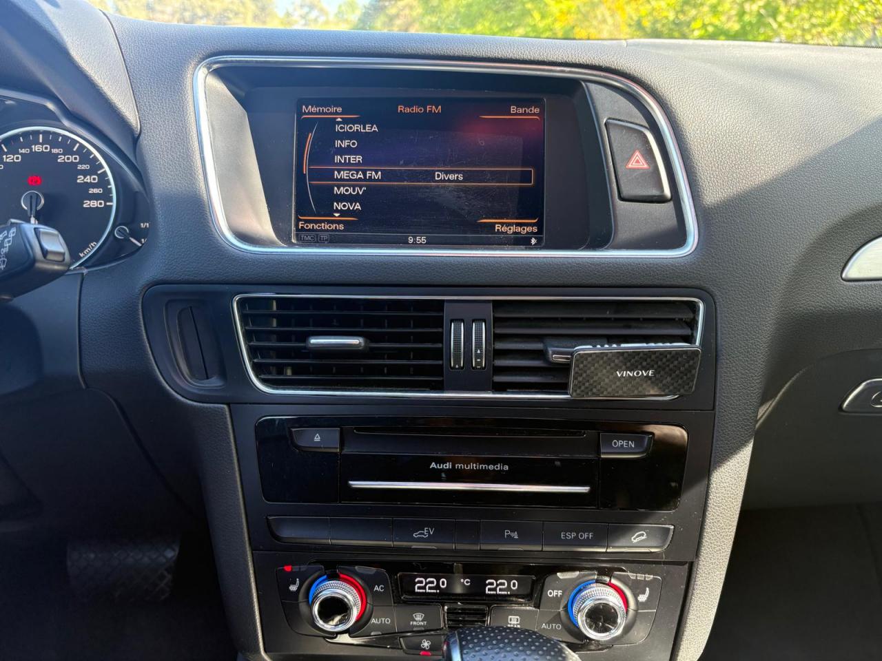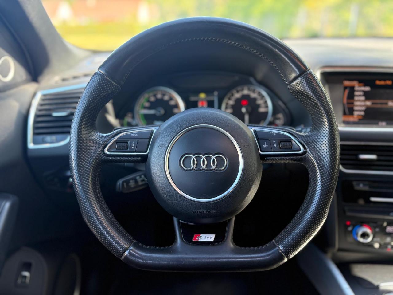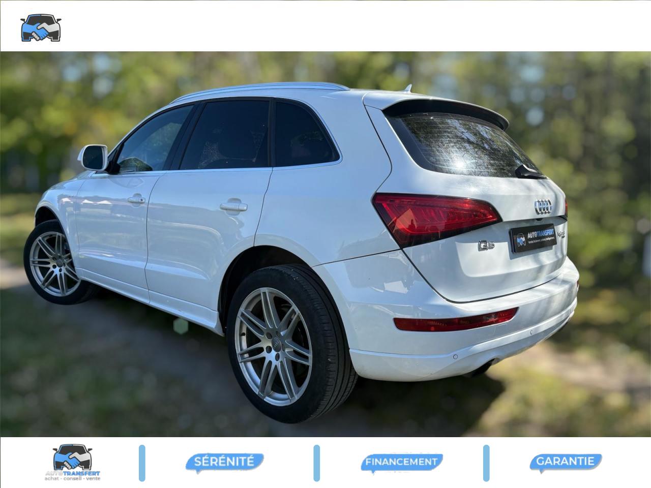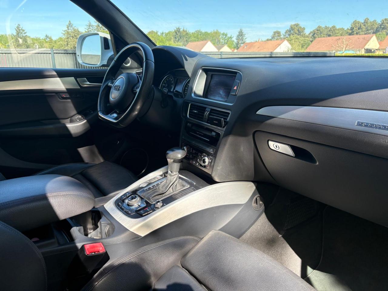 Accoudoir central à l'avant, pour conducteur et passager avant, coulissant en longueur de 65 mm, inclinaison réglable rabattable, avec vide-poches sous l'accoudoir central, incluant deux porte-boissons et prise de 12 V dans la console centraleÉtui à lunettes, dans le module d'éclairage intérieur avant, au-dessus du rétroviseur intérieurAccoudoir central avant avec vide-poches et 2 prises 12 VAccoudoir central, dans le dossier des sièges arrière, rabattableAirbag grand volume conducteur et le passager avant, détection de la position du siège, airbag adaptatif conducteur et passager avantAirbags latéraux (airbag thorax et bassin à l'avant)Anti-démarrage électronique intégré à la commande du moteur ; activation automatique par la clé du véhiculeAntipatinage électronique ASR : pour une bonne traction, empêche le patinage des roues motricesApplications décoratives S line en aluminium brossé matAppuie-têtes, réglables à l'avant et à l'arrièreBang & Olufsen Sound SystemBanquette arrière rabattable 60/40, déverrouillage à distance des dossiers via un levier dans la garniture latérale du coffreClimatisation automatique Confort PlusColonne de direction de sécurité : complète le potentiel de protection de la ceinture de sécurité et de l'airbagContrôle électronique de stabilisation ESC 8.1 avec détection de barres de toitContrôle de pression des pneus ( TPMS )Démarrage sans clé et avec cléDétecteur de pluie et de luminosité incluant rétroviseur intérieur jour/nuit automatiqueDéverrouillage de coffre par touche douce : déverrouillage avec assistance électriqueDirection assistée électromécanique, direction à crémaillère sans entretien avec asistance asservie à la vitesseEcrous de roues antivol ; ne s'enlèvent qu'au moyen de l'adaptateur fourniFonction EV : le bouton EV placé sur la console centrale permet au conducteur d'activer la conduite purement électrique dans les limites du systèmeFrein de stationnement électromécanique : comprend la fonction de frein de secours sur les quatre roues durant la marcheHauteur de châssis abaissée de 25 mm pour optimiser l'aérodynamique et renforcer visuellement le positionnement sportif du Q5 hybridIndication de l'usure des garnitures de frein à l'avant ; affichage sur l'écran centralInstrumentation de bord et ordinateur de bord spécifiques avec logo «hybrid»Interface BluetoothLogos personnalisés « hybrid » sur les ailes, le hayon et le cache-moteurOrdinateur de bord couleur et système de contrôle AutocheckOutillage de bord dans le coffreParking System arrièrePeinture intégrale : pare-chocs avant et arrière et bas de caisse en couleur carrosseriePhares antibrouillard intégrés dans le bouclier avantPréparation pour crochet d'attelagePréparation pour siège enfant ISOFIX pour sièges latéraux arrièreProjecteurs Xénon Plus incluant lave-phares, feux de jour à LEDQuattro®, transmission intégrale permanente avec répartition asymétrique et dynamique de couple, différentiel central autobloquant, blocage électronique de différentiel EDS par intervention sur les freins des roues motricesRéglage d'appuis lombaires électriques sur 4 plans pour sièges avantRégulateur de vitesseRétroviseurs extérieurs : avec clignotants à diodes intégrés, réglables et rabattable électriquement, dégivrants avec coques laquées dans la couleur de carrosserie, miroir asphérique à gaucheRétroviseurs extérieurs dégivrants et rabattables électriquementSellerie cuirSièges avant avec électrique / Mémoire de PositionSièges avant Sport incluant les appuis lombaires électriquesSièges Chauffants Avant et ArrièreSystème de freinage à double circuit en diagonaleToit Ouvrant Panoramique Verrouillage électrique de la colonne de directionVerrouillage centralisé avec fonction Autolock et télécommande à fréquence radio intégrée dans la clé du véhiculeVitres arrière surteintées : revêtement foncé des vitres de portières arrière et latérales arrière ainsi que de la lunette arrièreVitres athermiques teintées vertes, pare-brise en verre feuilletéVolant airbag 3 branches multifonction badgé S line avec palettes de changement de vitesse