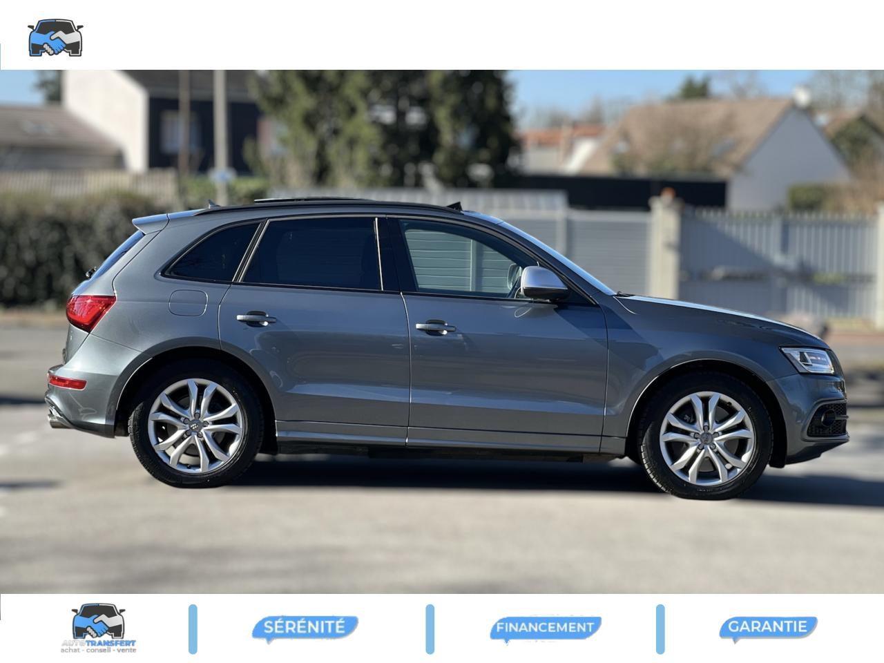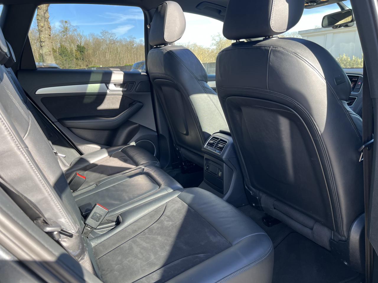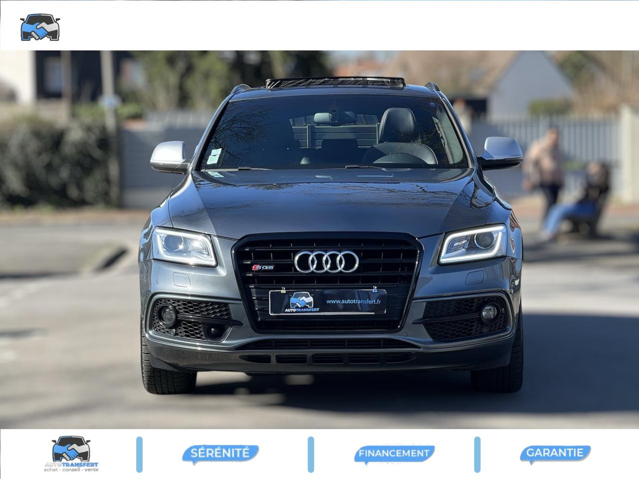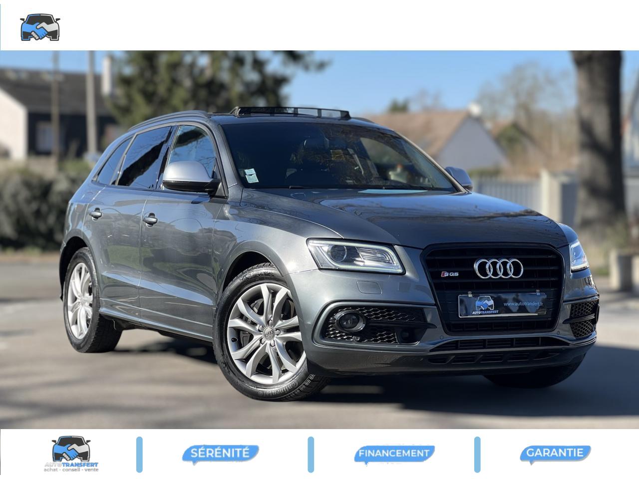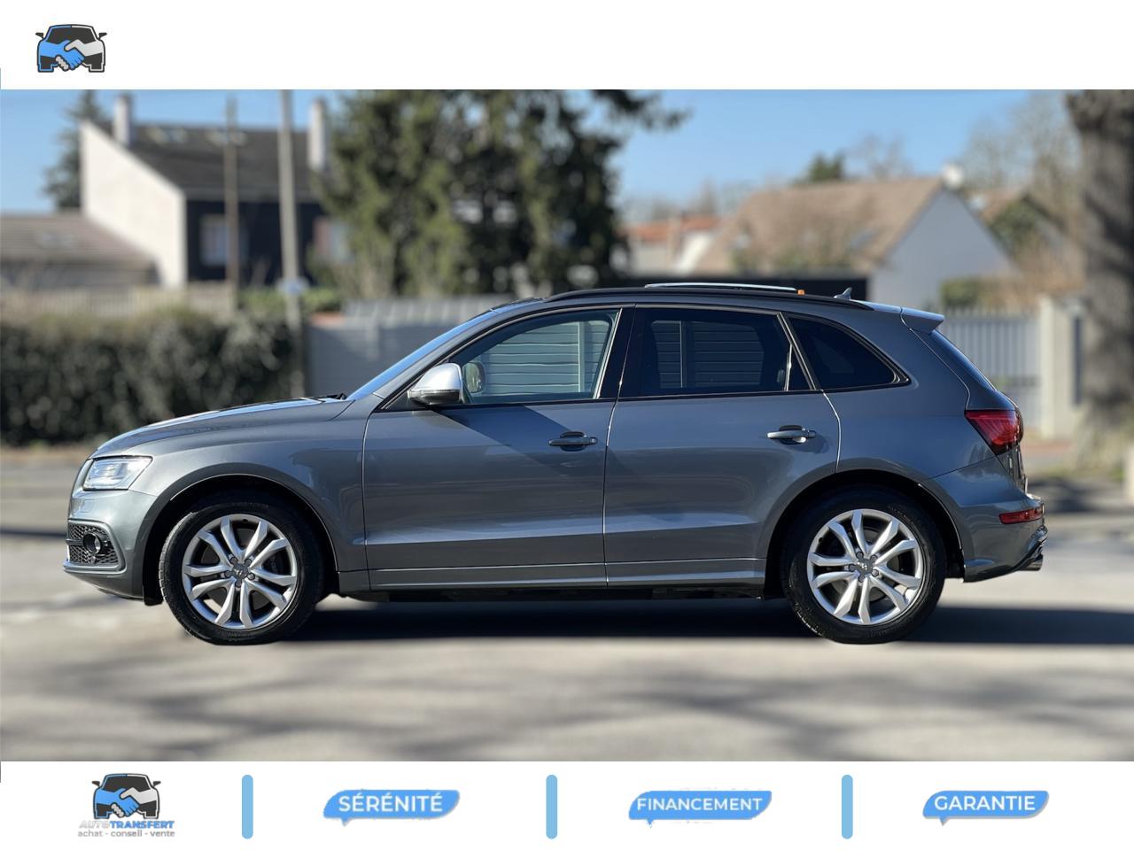 Accoudoir central à l'avant, pour conducteur et passager avant, coulissant en longueur de 65 mm, inclinaison réglable rabattable, avec vide-poches sous l'accoudoir central, incluant deux porte-boissons et prise de 12 V dans la console centraleAccoudoir central avant avec vide-poches et 2 prises 12 VAccoudoir central dans le dossier des sièges arrière, rabattableAdaptive Light : projecteurs directionnelsAdvanced Key : système d'autorisation d'accès et de démarrage main libreAirbag grand volume conducteur et le passager avant, détection de la position du siège, airbag adaptatif conducteur et passager avantAirbags latéraux (airbag thorax et bassin à l'avant)Antidémarrage électronique intégré à la commande du moteur ; activation automatique par la clé du véhiculeAntipatinage électronique ASRApplications décoratives en aluminium brossé matAppuie-tête, réglables à l'avant et à l'arrièreAssistance au freinage d'urgence, amplificateurs de freins en tandemAudi BackguardAudi connect (inclut GPS Advanced et préparation téléphone 8W)Audi Hold AssistAudi Music InterfaceAudi Sound System (180 W)Audi Tracking SystemAvertisseur de freinage d'urgence et fonction de séchage de disques de freins automatiqueAvertisseur deux tons sur le moyeu du volantBadges “V6T” sur les ailes avant et emblème “SQ5” sur les étriers de freinsBanquette arrière rabattable 60/40, déverrouillage à distance des dossiers via un levier dans la garniture latérale du coffreBecquet de pavillonBoîte à gants éclairéeCarrosserie galvanisée: autoportante, soudée au groupe-plancher, zones de déformation définies à l'avant et à l'arrièreCeintures de sécurité : ceintures trois points à enrouleur pour tous les sièges, avec contrôle du port à l'avant, assorties à la couleur de l'habitacleCendrier dans la console centrale à l'avant et à l'arrière, allume-cigare à l'avantCendrier éclairé à l'avantChâssis DynamiqueClimatisation automatique confort 3 zonesCoffre et hayon éclairésColonne de direction de sécuritéConsole centrale, surélevée, avec compartiment de rangement et volet roulantContact d'allumage électroniqueContrôle de pression des pneus ( TPMS )Contrôle électronique de stabilisation (ESC) avec détection de barres de toit et mode offroadDétecteur de pluie et de luminosité incluant rétroviseur intérieur jour/nuit automatiqueDéverrouillage de coffre par touche douce : déverrouillage avec assistance électriqueDirection assistée électromécanique, direction à crémaillère sans entretien avec asistance asservie à la vitesseEclairage intérieur, à temporisation avec contacteur sur toutes les portièresEcran central avec affichage en couleurEcrous antivolEssuie-glace arrière avec déclenchement automatique en marche arrièreEssuie-glace deux vitesses : réglage d'intermittence sur 4 niveaux, commande de balayage coup par coup, lavage-balayage automatiqueÉtui à lunettes, dans le module d'éclairage intérieur avant, au-dessus du rétroviseur intérieurFeux arrière, rouges, avec feux de recul blancs, feux arrière de brouillard intégrés, avec capot de coffre ouvert : fonction feux arrière dans le bandeau d'éclairage du pare-chocsFeux de route assistés : gestion automatique du passage de feux de croisement à pleins phares et inversementFilet de séparation, vertical, amovibleFrein de stationnement electromécaniqueHayon assisté électriquement pour l'ouverture et la fermetureIdentification du modèle à l'arrière, inscription “SQ5” à l'arrière, sur la calandre et sur l'embase du volantIndicateur de rapport de vitesse dans le système d'information du conducteurIndication de l'usure des garnitures de freins à l'avant ; affichage sur l'écran centralInstrumentation, avec éclairage réglable : tachymètre électronique avec compteur kilométrique totalisateur et journalier, compte-tours, heure, affichage de la température du liquide de refroidissement et de la réserve de carburantJantes en aluminium coulé style 5 branches double S, 8,5 J x 20” avec pneus 255/45 R20 100WLampe à l'avant avec deux spots de lecture supplémentairesLampes à l'arrière avec fonction spots de lectureLève-vitres électriques à l'avant et à l'arrière avec protection antipincement et fonction ouverture/fermeture Confort par impulsionLimiteurs d'effort sur les ceintures de sécurité avantLunette arrière dégivrante avec minuterieMiroir de courtoisieOEilletons de fixation, quatre oeilletons dans le coffre pour arrimer le chargementOrdinateur de bord couleur, système de contrôle Autocheck et programme efficiencyOutillage de bord dans le coffrePack Aluminium extérieurPack Éclairage intérieurPack RangementPare-soleil, rabattables et pivotants, côté conducteur et passager avantParking System Plus avec caméra de reculPeinture intégrale : pare-chocs avant et arrière et bas de caisse en couleur carrosseriePhares antibrouillard intégrés dans le bouclier avantPoignées de maintien avec mécanisme amortisseur : quatre poignées encastrées dans le ciel de pavillonPoignées de portes couleur carrosseriePorte-boissons double dans la console centralePréparation pour crochet d'attelagePréparation pour siège enfant ISOFIX pour sièges latéraux arrièrePrétensionneurs des ceintures de sécurité avantProjecteurs antibrouillardProjecteurs Xénon Plus incluant lave-phares, feux de jour à LEDQuattro, transmission intégrale permanente avec répartition asymétrique et dynamique de couple, différentiel central autobloquant, blocage électronique de différentiel EDS par intervention sur les freins des roues motricesRampes de pavillon en aluminium poli incluant barres de toit transversalesRégulateur de vitesseRéservoir avec protection contre les erreurs de ravitaillementRétroviseurs extérieurs : avec clignotants à diodes intégrés, réglables et rabattable électriquement, dégivrants avec coques laquées dans la couleur de carrosserie, miroir asphéri