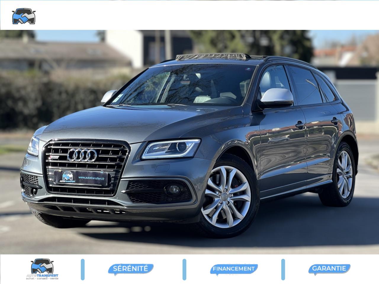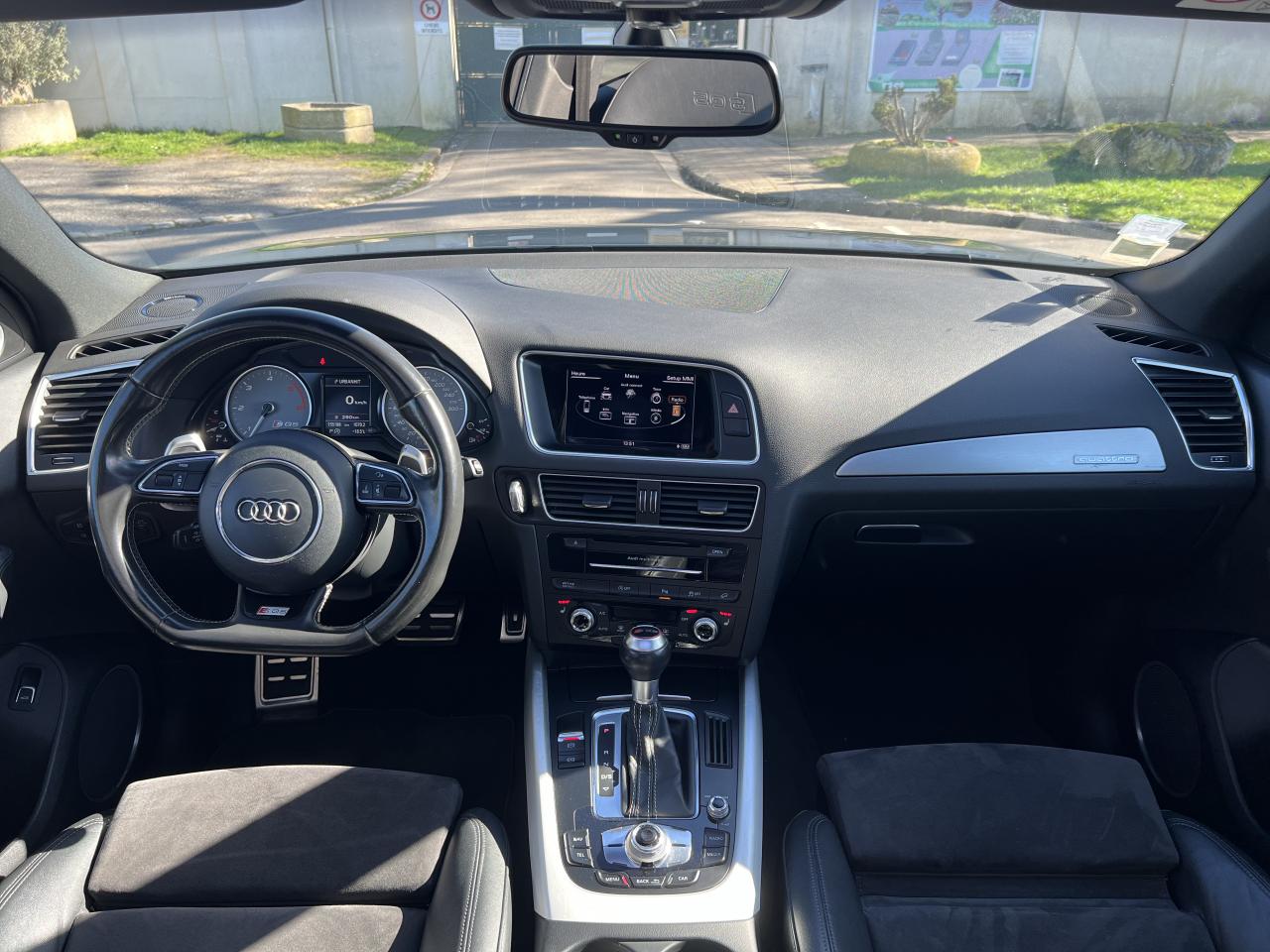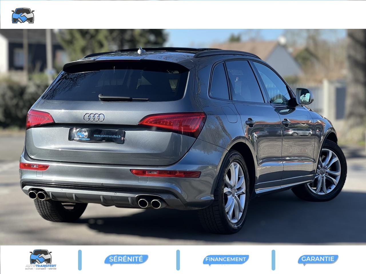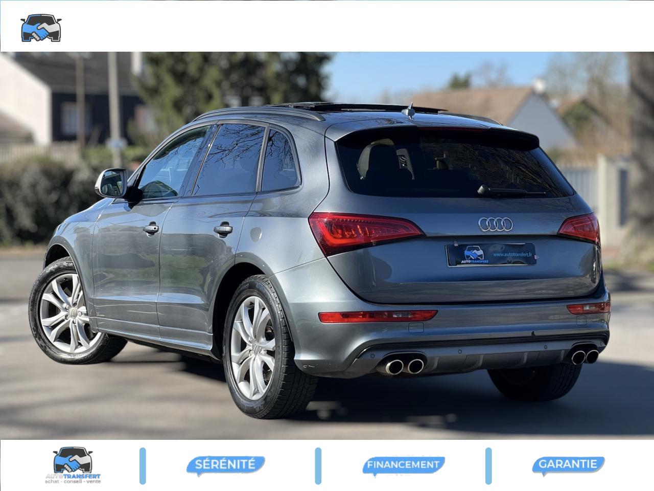Accoudoir central à l'avant, pour conducteur et passager avant, coulissant en longueur de 65 mm, inclinaison réglable rabattable, avec vide-poches sous l'accoudoir central, incluant deux porte-boissons et prise de 12 V dans la console centraleAccoudoir central avant avec vide-poches et 2 prises 12 VAccoudoir central dans le dossier des sièges arrière, rabattableAdaptive Light : projecteurs directionnelsAdvanced Key : système d'autorisation d'accès et de démarrage main libreAirbag grand volume conducteur et le passager avant, détection de la position du siège, airbag adaptatif conducteur et passager avantAirbags latéraux (airbag thorax et bassin à l'avant)Antidémarrage électronique intégré à la commande du moteur ; activation automatique par la clé du véhiculeAntipatinage électronique ASRApplications décoratives en aluminium brossé matAppuie-tête, réglables à l'avant et à l'arrièreAssistance au freinage d'urgence, amplificateurs de freins en tandemAudi BackguardAudi connect (inclut GPS Advanced et préparation téléphone 8W)Audi Hold AssistAudi Music InterfaceAudi Sound System (180 W)Audi Tracking SystemAvertisseur de freinage d'urgence et fonction de séchage de disques de freins automatiqueAvertisseur deux tons sur le moyeu du volantBadges “V6T” sur les ailes avant et emblème “SQ5” sur les étriers de freinsBanquette arrière rabattable 60/40, déverrouillage à distance des dossiers via un levier dans la garniture latérale du coffreBecquet de pavillonBoîte à gants éclairéeCarrosserie galvanisée: autoportante, soudée au groupe-plancher, zones de déformation définies à l'avant et à l'arrièreCeintures de sécurité : ceintures trois points à enrouleur pour tous les sièges, avec contrôle du port à l'avant, assorties à la couleur de l'habitacleCendrier dans la console centrale à l'avant et à l'arrière, allume-cigare à l'avantCendrier éclairé à l'avantChâssis DynamiqueClimatisation automatique confort 3 zonesCoffre et hayon éclairésColonne de direction de sécuritéConsole centrale, surélevée, avec compartiment de rangement et volet roulantContact d'allumage électroniqueContrôle de pression des pneus ( TPMS )Contrôle électronique de stabilisation (ESC) avec détection de barres de toit et mode offroadDétecteur de pluie et de luminosité incluant rétroviseur intérieur jour/nuit automatiqueDéverrouillage de coffre par touche douce : déverrouillage avec assistance électriqueDirection assistée électromécanique, direction à crémaillère sans entretien avec asistance asservie à la vitesseEclairage intérieur, à temporisation avec contacteur sur toutes les portièresEcran central avec affichage en couleurEcrous antivolEssuie-glace arrière avec déclenchement automatique en marche arrièreEssuie-glace deux vitesses : réglage d'intermittence sur 4 niveaux, commande de balayage coup par coup, lavage-balayage automatiqueÉtui à lunettes, dans le module d'éclairage intérieur avant, au-dessus du rétroviseur intérieurFeux arrière, rouges, avec feux de recul blancs, feux arrière de brouillard intégrés, avec capot de coffre ouvert : fonction feux arrière dans le bandeau d'éclairage du pare-chocsFeux de route assistés : gestion automatique du passage de feux de croisement à pleins phares et inversementFilet de séparation, vertical, amovibleFrein de stationnement electromécaniqueHayon assisté électriquement pour l'ouverture et la fermetureIdentification du modèle à l'arrière, inscription “SQ5” à l'arrière, sur la calandre et sur l'embase du volantIndicateur de rapport de vitesse dans le système d'information du conducteurIndication de l'usure des garnitures de freins à l'avant ; affichage sur l'écran centralInstrumentation, avec éclairage réglable : tachymètre électronique avec compteur kilométrique totalisateur et journalier, compte-tours, heure, affichage de la température du liquide de refroidissement et de la réserve de carburantJantes en aluminium coulé style 5 branches double S, 8,5 J x 20” avec pneus 255/45 R20 100WLampe à l'avant avec deux spots de lecture supplémentairesLampes à l'arrière avec fonction spots de lectureLève-vitres électriques à l'avant et à l'arrière avec protection antipincement et fonction ouverture/fermeture Confort par impulsionLimiteurs d'effort sur les ceintures de sécurité avantLunette arrière dégivrante avec minuterieMiroir de courtoisieOEilletons de fixation, quatre oeilletons dans le coffre pour arrimer le chargementOrdinateur de bord couleur, système de contrôle Autocheck et programme efficiencyOutillage de bord dans le coffrePack Aluminium extérieurPack Éclairage intérieurPack RangementPare-soleil, rabattables et pivotants, côté conducteur et passager avantParking System Plus avec caméra de reculPeinture intégrale : pare-chocs avant et arrière et bas de caisse en couleur carrosseriePhares antibrouillard intégrés dans le bouclier avantPoignées de maintien avec mécanisme amortisseur : quatre poignées encastrées dans le ciel de pavillonPoignées de portes couleur carrosseriePorte-boissons double dans la console centralePréparation pour crochet d'attelagePréparation pour siège enfant ISOFIX pour sièges latéraux arrièrePrétensionneurs des ceintures de sécurité avantProjecteurs antibrouillardProjecteurs Xénon Plus incluant lave-phares, feux de jour à LEDQuattro, transmission intégrale permanente avec répartition asymétrique et dynamique de couple, différentiel central autobloquant, blocage électronique de différentiel EDS par intervention sur les freins des roues motricesRampes de pavillon en aluminium poli incluant barres de toit transversalesRégulateur de vitesseRéservoir avec protection contre les erreurs de ravitaillementRétroviseurs extérieurs : avec clignotants à diodes intégrés, réglables et rabattable électriquement, dégivrants avec coques laquées dans la couleur de carrosserie, miroir asphéri