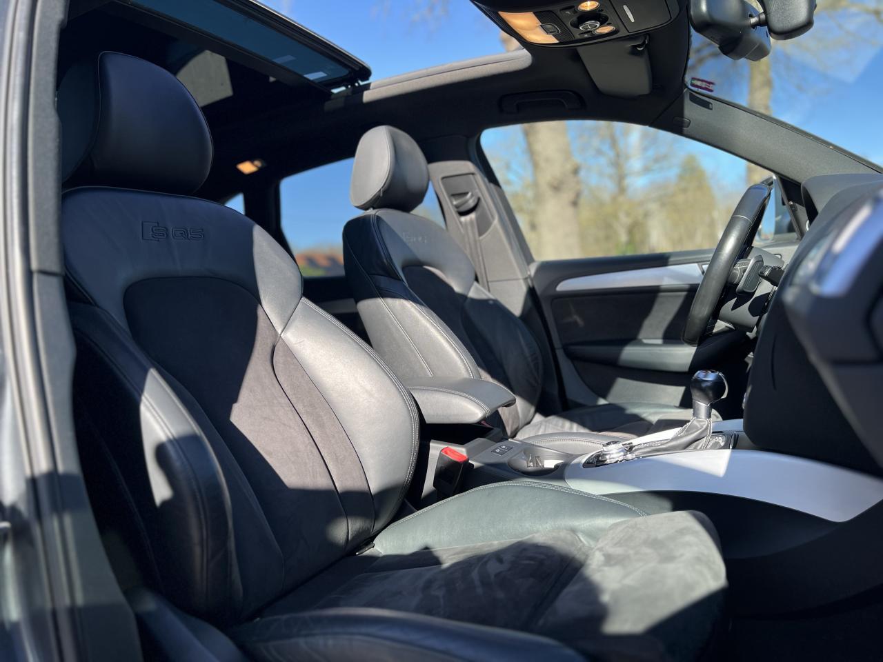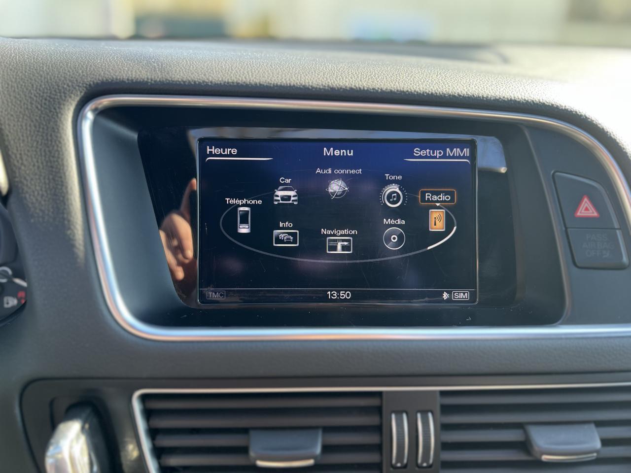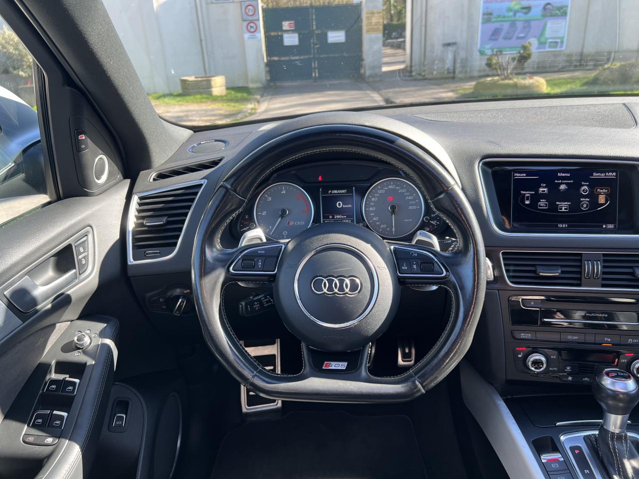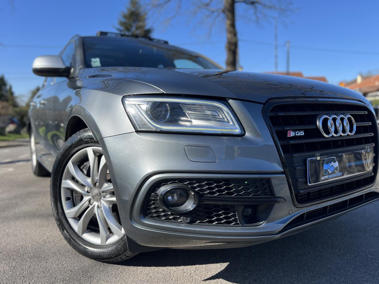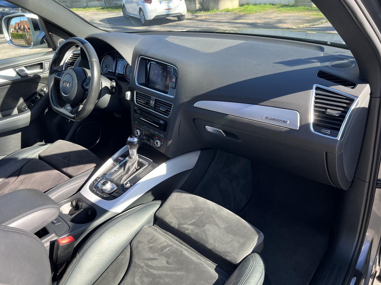 Accoudoir central à l'avant, pour conducteur et passager avant, coulissant en longueur de 65 mm, inclinaison réglable rabattable, avec vide-poches sous l'accoudoir central, incluant deux porte-boissons et prise de 12 V dans la console centraleAccoudoir central avant avec vide-poches et 2 prises 12 VAccoudoir central dans le dossier des sièges arrière, rabattableAdaptive Light : projecteurs directionnelsAdvanced Key : système d'autorisation d'accès et de démarrage main libreAirbag grand volume conducteur et le passager avant, détection de la position du siège, airbag adaptatif conducteur et passager avantAirbags latéraux (airbag thorax et bassin à l'avant)Antidémarrage électronique intégré à la commande du moteur ; activation automatique par la clé du véhiculeAntipatinage électronique ASRApplications décoratives en aluminium brossé matAppuie-tête, réglables à l'avant et à l'arrièreAssistance au freinage d'urgence, amplificateurs de freins en tandemAudi BackguardAudi connect (inclut GPS Advanced et préparation téléphone 8W)Audi Hold AssistAudi Music InterfaceAudi Sound System (180 W)Audi Tracking SystemAvertisseur de freinage d'urgence et fonction de séchage de disques de freins automatiqueAvertisseur deux tons sur le moyeu du volantBadges “V6T” sur les ailes avant et emblème “SQ5” sur les étriers de freinsBanquette arrière rabattable 60/40, déverrouillage à distance des dossiers via un levier dans la garniture latérale du coffreBecquet de pavillonBoîte à gants éclairéeCarrosserie galvanisée: autoportante, soudée au groupe-plancher, zones de déformation définies à l'avant et à l'arrièreCeintures de sécurité : ceintures trois points à enrouleur pour tous les sièges, avec contrôle du port à l'avant, assorties à la couleur de l'habitacleCendrier dans la console centrale à l'avant et à l'arrière, allume-cigare à l'avantCendrier éclairé à l'avantChâssis DynamiqueClimatisation automatique confort 3 zonesCoffre et hayon éclairésColonne de direction de sécuritéConsole centrale, surélevée, avec compartiment de rangement et volet roulantContact d'allumage électroniqueContrôle de pression des pneus ( TPMS )Contrôle électronique de stabilisation (ESC) avec détection de barres de toit et mode offroadDétecteur de pluie et de luminosité incluant rétroviseur intérieur jour/nuit automatiqueDéverrouillage de coffre par touche douce : déverrouillage avec assistance électriqueDirection assistée électromécanique, direction à crémaillère sans entretien avec asistance asservie à la vitesseEclairage intérieur, à temporisation avec contacteur sur toutes les portièresEcran central avec affichage en couleurEcrous antivolEssuie-glace arrière avec déclenchement automatique en marche arrièreEssuie-glace deux vitesses : réglage d'intermittence sur 4 niveaux, commande de balayage coup par coup, lavage-balayage automatiqueÉtui à lunettes, dans le module d'éclairage intérieur avant, au-dessus du rétroviseur intérieurFeux arrière, rouges, avec feux de recul blancs, feux arrière de brouillard intégrés, avec capot de coffre ouvert : fonction feux arrière dans le bandeau d'éclairage du pare-chocsFeux de route assistés : gestion automatique du passage de feux de croisement à pleins phares et inversementFilet de séparation, vertical, amovibleFrein de stationnement electromécaniqueHayon assisté électriquement pour l'ouverture et la fermetureIdentification du modèle à l'arrière, inscription “SQ5” à l'arrière, sur la calandre et sur l'embase du volantIndicateur de rapport de vitesse dans le système d'information du conducteurIndication de l'usure des garnitures de freins à l'avant ; affichage sur l'écran centralInstrumentation, avec éclairage réglable : tachymètre électronique avec compteur kilométrique totalisateur et journalier, compte-tours, heure, affichage de la température du liquide de refroidissement et de la réserve de carburantJantes en aluminium coulé style 5 branches double S, 8,5 J x 20” avec pneus 255/45 R20 100WLampe à l'avant avec deux spots de lecture supplémentairesLampes à l'arrière avec fonction spots de lectureLève-vitres électriques à l'avant et à l'arrière avec protection antipincement et fonction ouverture/fermeture Confort par impulsionLimiteurs d'effort sur les ceintures de sécurité avantLunette arrière dégivrante avec minuterieMiroir de courtoisieOEilletons de fixation, quatre oeilletons dans le coffre pour arrimer le chargementOrdinateur de bord couleur, système de contrôle Autocheck et programme efficiencyOutillage de bord dans le coffrePack Aluminium extérieurPack Éclairage intérieurPack RangementPare-soleil, rabattables et pivotants, côté conducteur et passager avantParking System Plus avec caméra de reculPeinture intégrale : pare-chocs avant et arrière et bas de caisse en couleur carrosseriePhares antibrouillard intégrés dans le bouclier avantPoignées de maintien avec mécanisme amortisseur : quatre poignées encastrées dans le ciel de pavillonPoignées de portes couleur carrosseriePorte-boissons double dans la console centralePréparation pour crochet d'attelagePréparation pour siège enfant ISOFIX pour sièges latéraux arrièrePrétensionneurs des ceintures de sécurité avantProjecteurs antibrouillardProjecteurs Xénon Plus incluant lave-phares, feux de jour à LEDQuattro, transmission intégrale permanente avec répartition asymétrique et dynamique de couple, différentiel central autobloquant, blocage électronique de différentiel EDS par intervention sur les freins des roues motricesRampes de pavillon en aluminium poli incluant barres de toit transversalesRégulateur de vitesseRéservoir avec protection contre les erreurs de ravitaillementRétroviseurs extérieurs : avec clignotants à diodes intégrés, réglables et rabattable électriquement, dégivrants avec coques laquées dans la couleur de carrosserie, miroir asphéri