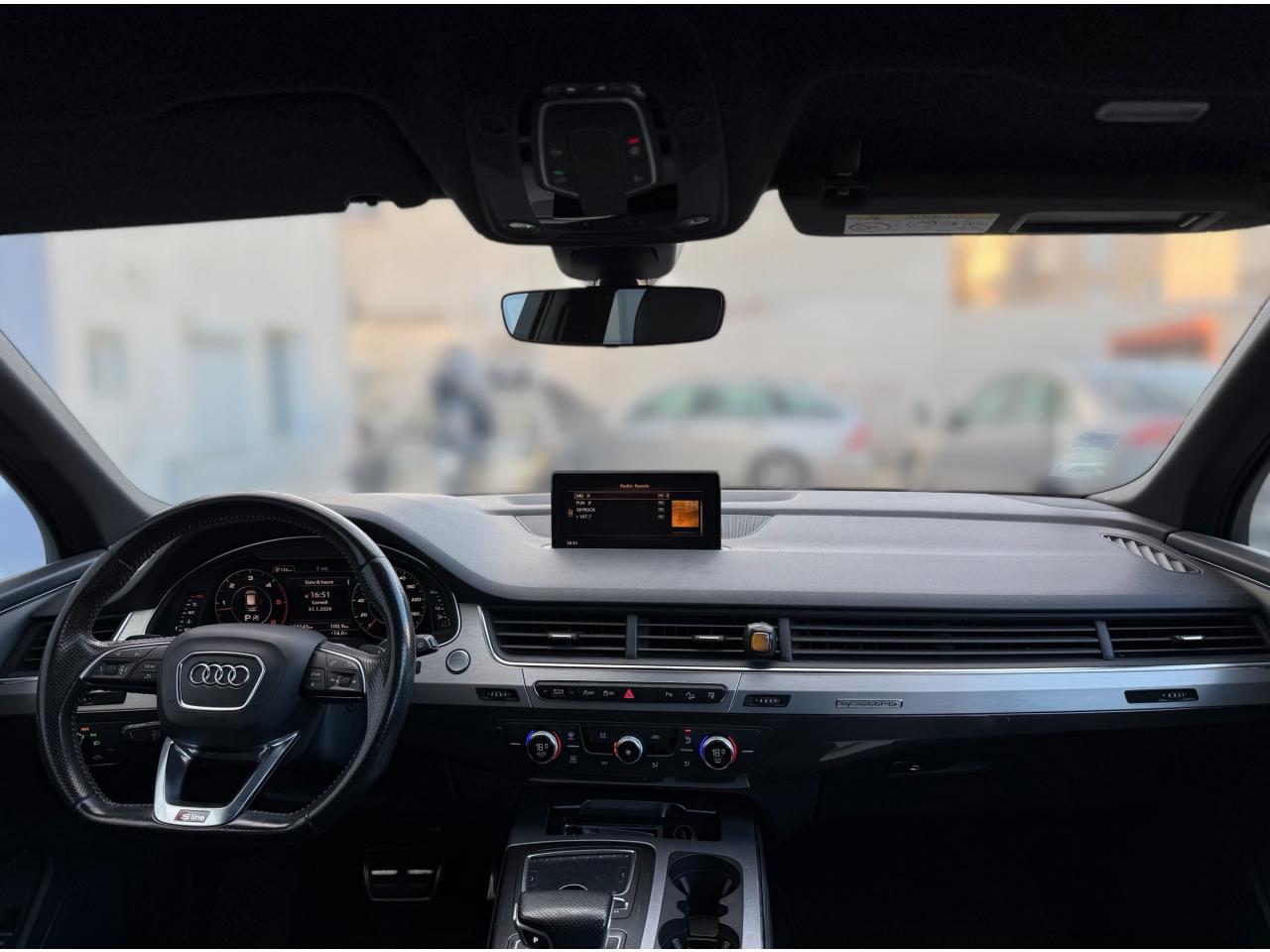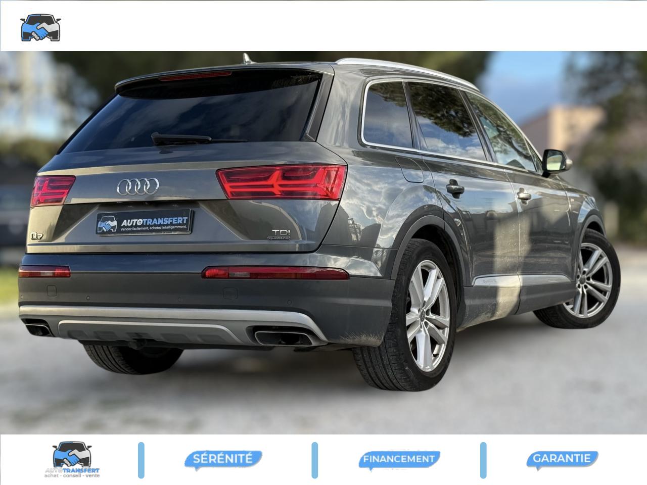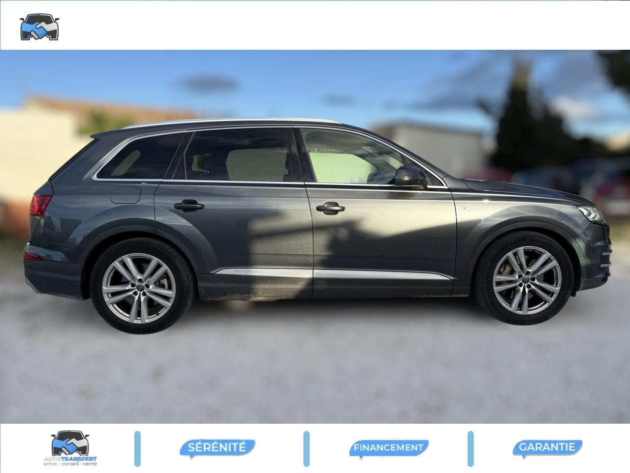Accoudoir central avant ConfortAirbags grand volume pour le conducteur et le passagerAirbags latéraux (thorax et bassin) pour le conducteur et le passager avant avec airbags de tête intégrésApplications décoratives Supérieures en Aluminium brossé sono/ Applications décoratives inférieures Laque chromée gris ardoiseAppuie-tête intégraux à l'avant et à l'arrièreASR (Système Anti-patinage)Audi connectAudi connect "Sécurité et Service"Audi drive select : réglage des caractéristiques individuelles du véhicule selon les modes disponibles : auto, confort, dynamic, efficiency, offroad et individualAudi Hold AssistAudi Music InterfaceAudi pre sense cityAudi sound system 10 haut-parleurs 180 wattsAudi Tracking SystemAudi virtual cockpitBaguettes de seuils avec inscription S lineBanquette arrière "plus" : les sièges de la 2ème rangée se règlent séparément et manuellement en longueur et en inclinaison de dossier selon un rapport 35 / 30 / 35Becquet de toit avec 3e feu stopCiel de pavillon en tissu noirClimatisation automatique bi-zoneCoffre avec plancher de chargement réversible et couvre-bagagesContrôle de la pression des pneus avec signaux acoustique et visuel de perte de pressionDésactivation de l'airbag du passager avantDétecteur de pluie et allumage automatique des projecteursDirection électromécanique à assistance variableEcrous antivol pour les rouesESC : contrôle électronique de stabilisation. Relie ABS, EBV, ASR et EDSFeux arrière à technologie LED sauf feux de reculFilet de séparation ARFixation ISOFIX sur siège passager avantFixations ISOFIX Top Tether pour les places latérales arrièreFrein de stationnement électromécanique avec fonction Hold Assist, désactivation automatique au démarrage et fonction frein de secours sur les quatre roues durant la marcheFreins à disques ventilés à l'avant et à l'arrièreHayon de coffre à ouverture et fermeture électriquesInscription “S line” sur les ailes avantInterface BluetoothJantes en aluminium coulé style 5 branches parallèles (style S), 9 J x 20'', pneus 285/45 R 20 112 Y xlKeyless go : Bouton start/stop pour le démarrage/arrêt du moteur sur le tableau de bord et verrouillage/déverrouillage central du véhicule via le clé télécommandéeKit de réparation de pneusMoulures de seuils avec inscription « S line »Navigation MMI plus avec MMI touchPack brillancePack éclairage intérieur à LEDPack FumeurPare-brise, vitres latérales et lunette arrière en verre athermiqueParking System Plus avant et arrièrePommeau de levier de vitesse en cuir perforéPréparation pour écrans arrièresProjecteurs Xénon plus et feux de jour à LEDProtection du seuil de chargement supplémentaire en acier inoxydableQuattro: transmission intégrale permanente avec répartition asymétrique et dynamique de coupleRampes de pavillon chroméesRétroviseur intérieur électrochromeRétroviseurs extérieurs asphériquesRétroviseurs extérieurs dégivrants et rabattables électriquementSellerie combinée Alcantara perforé/cuir noir avec estampillage S sur le dossier des sièges avantSièges avant réglables électriquement. Comprend support lombaire à réglage électrique 4 voiesSièges avant sportSièges de la 3ème rangée levables et rabattables électriquementSystème antiblocage ABS avec répartiteur électronique de freinage EBVSystème Start/ Stop avec récupération d'énergie de freinageTapis de sol avant et arrièreVersion 7 places (avec 3ème rangée de sièges)Volant airbag Sport en cuir style 3 branches multifonction et palettes de changement de vitesse badgé S lineVolant réglable manuellement en hauteur et en profondeur