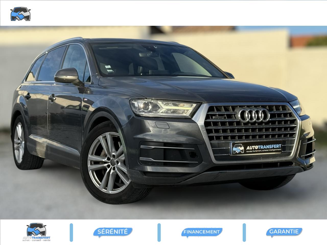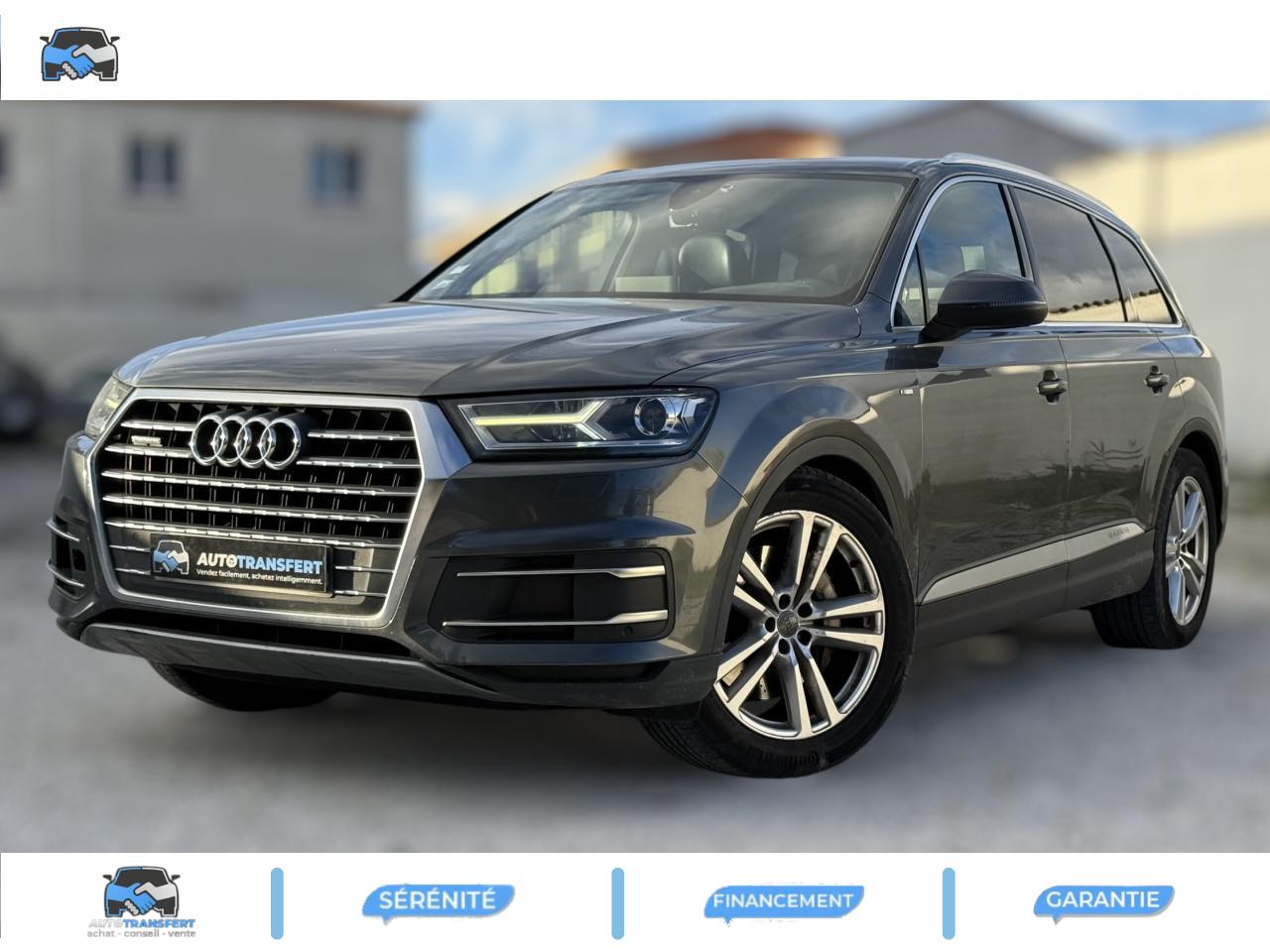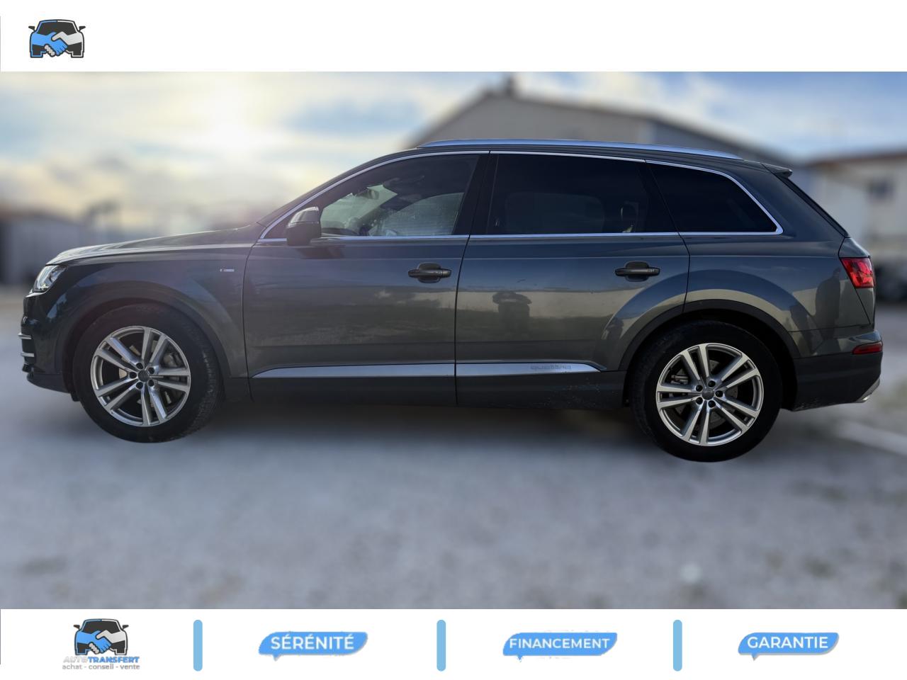 Accoudoir central avant ConfortAirbags grand volume pour le conducteur et le passagerAirbags latéraux (thorax et bassin) pour le conducteur et le passager avant avec airbags de tête intégrésApplications décoratives Supérieures en Aluminium brossé sono/ Applications décoratives inférieures Laque chromée gris ardoiseAppuie-tête intégraux à l'avant et à l'arrièreASR (Système Anti-patinage)Audi connectAudi connect "Sécurité et Service"Audi drive select : réglage des caractéristiques individuelles du véhicule selon les modes disponibles : auto, confort, dynamic, efficiency, offroad et individualAudi Hold AssistAudi Music InterfaceAudi pre sense cityAudi sound system 10 haut-parleurs 180 wattsAudi Tracking SystemAudi virtual cockpitBaguettes de seuils avec inscription S lineBanquette arrière "plus" : les sièges de la 2ème rangée se règlent séparément et manuellement en longueur et en inclinaison de dossier selon un rapport 35 / 30 / 35Becquet de toit avec 3e feu stopCiel de pavillon en tissu noirClimatisation automatique bi-zoneCoffre avec plancher de chargement réversible et couvre-bagagesContrôle de la pression des pneus avec signaux acoustique et visuel de perte de pressionDésactivation de l'airbag du passager avantDétecteur de pluie et allumage automatique des projecteursDirection électromécanique à assistance variableEcrous antivol pour les rouesESC : contrôle électronique de stabilisation. Relie ABS, EBV, ASR et EDSFeux arrière à technologie LED sauf feux de reculFilet de séparation ARFixation ISOFIX sur siège passager avantFixations ISOFIX Top Tether pour les places latérales arrièreFrein de stationnement électromécanique avec fonction Hold Assist, désactivation automatique au démarrage et fonction frein de secours sur les quatre roues durant la marcheFreins à disques ventilés à l'avant et à l'arrièreHayon de coffre à ouverture et fermeture électriquesInscription “S line” sur les ailes avantInterface BluetoothJantes en aluminium coulé style 5 branches parallèles (style S), 9 J x 20'', pneus 285/45 R 20 112 Y xlKeyless go : Bouton start/stop pour le démarrage/arrêt du moteur sur le tableau de bord et verrouillage/déverrouillage central du véhicule via le clé télécommandéeKit de réparation de pneusMoulures de seuils avec inscription « S line »Navigation MMI plus avec MMI touchPack brillancePack éclairage intérieur à LEDPack FumeurPare-brise, vitres latérales et lunette arrière en verre athermiqueParking System Plus avant et arrièrePommeau de levier de vitesse en cuir perforéPréparation pour écrans arrièresProjecteurs Xénon plus et feux de jour à LEDProtection du seuil de chargement supplémentaire en acier inoxydableQuattro: transmission intégrale permanente avec répartition asymétrique et dynamique de coupleRampes de pavillon chroméesRétroviseur intérieur électrochromeRétroviseurs extérieurs asphériquesRétroviseurs extérieurs dégivrants et rabattables électriquementSellerie combinée Alcantara perforé/cuir noir avec estampillage S sur le dossier des sièges avantSièges avant réglables électriquement. Comprend support lombaire à réglage électrique 4 voiesSièges avant sportSièges de la 3ème rangée levables et rabattables électriquementSystème antiblocage ABS avec répartiteur électronique de freinage EBVSystème Start/ Stop avec récupération d'énergie de freinageTapis de sol avant et arrièreVersion 7 places (avec 3ème rangée de sièges)Volant airbag Sport en cuir style 3 branches multifonction et palettes de changement de vitesse badgé S lineVolant réglable manuellement en hauteur et en profondeur
