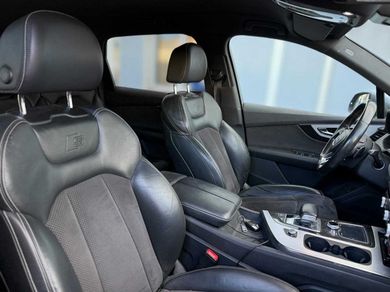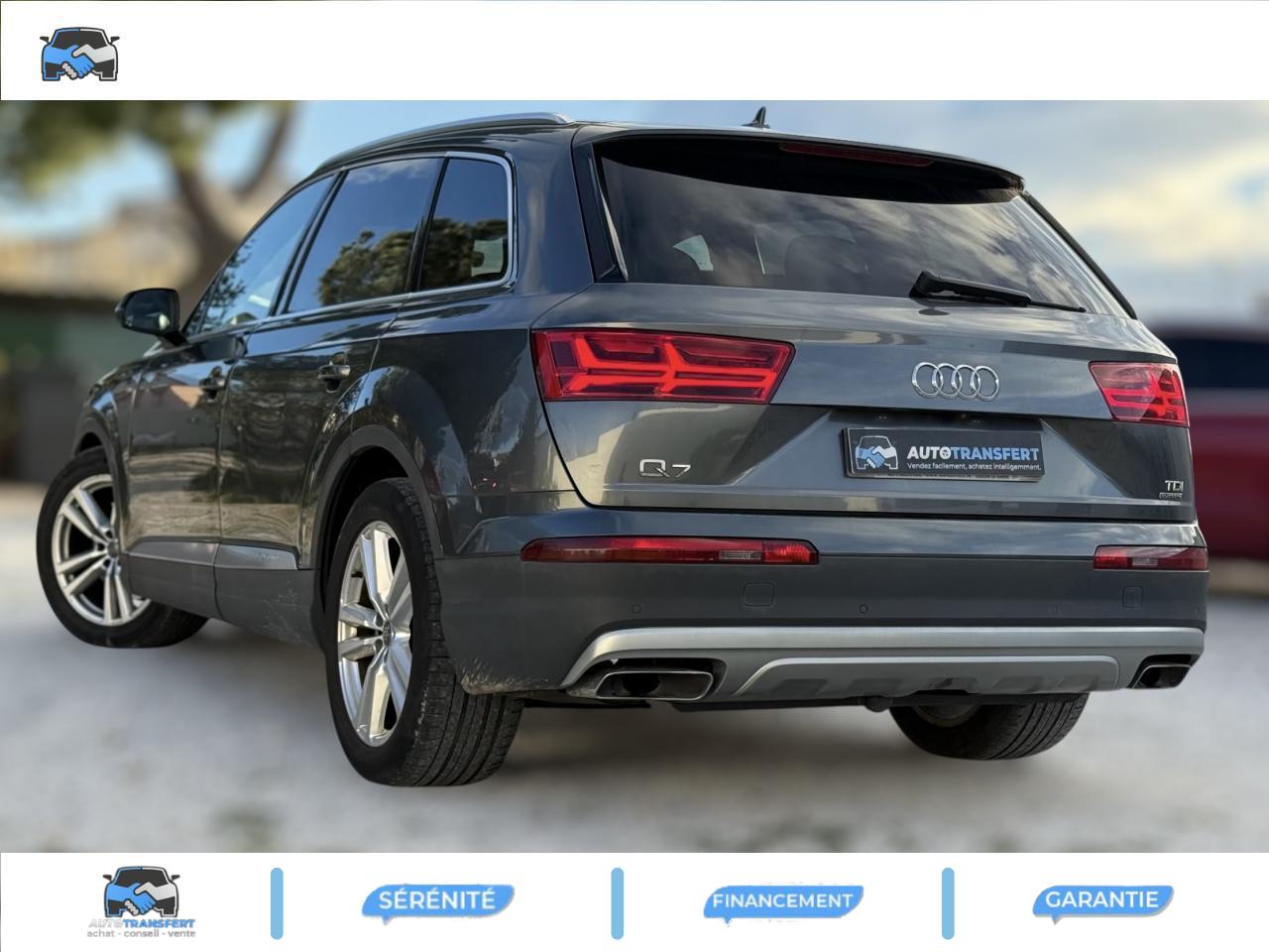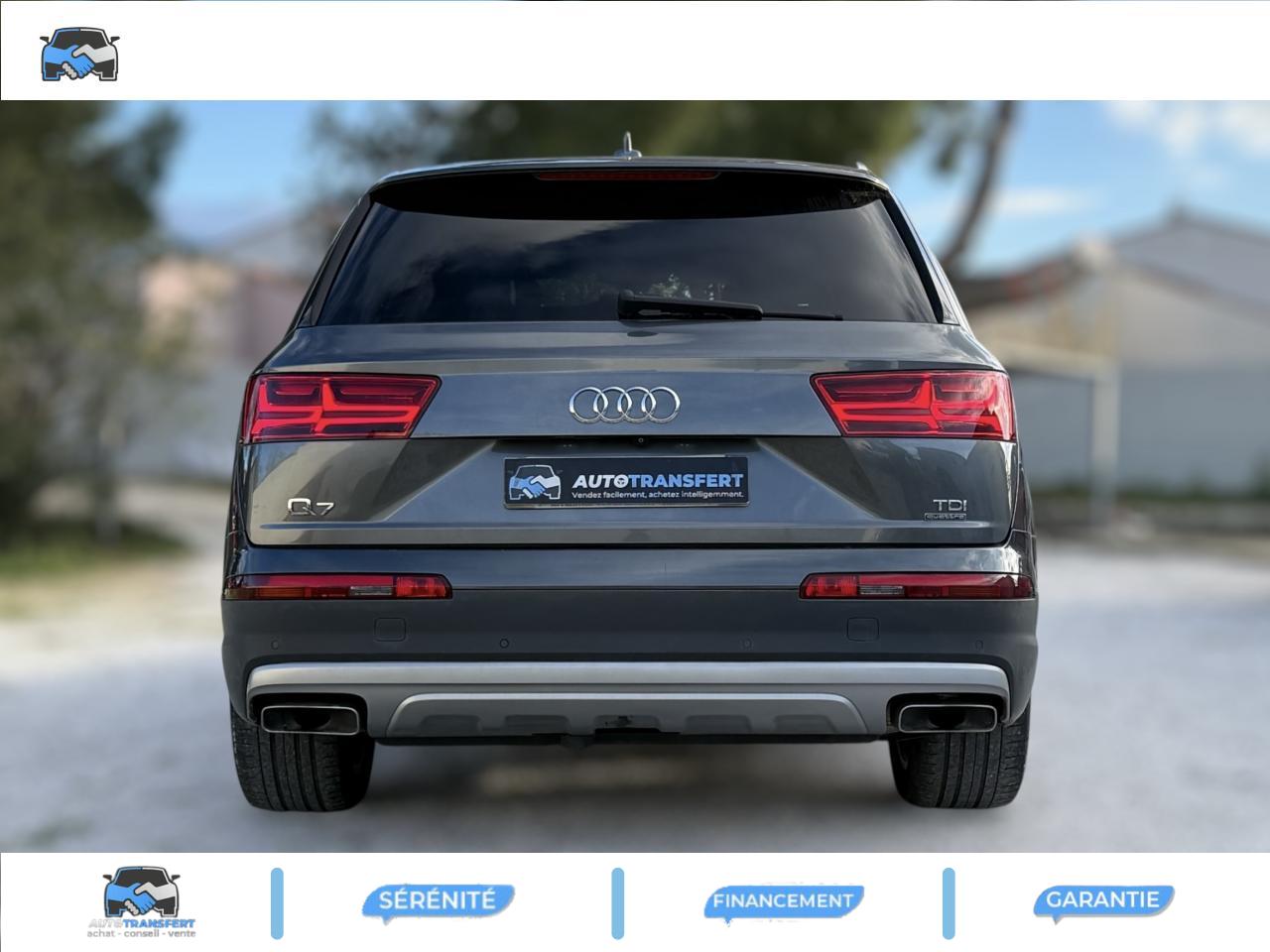 Accoudoir central avant ConfortAirbags grand volume pour le conducteur et le passagerAirbags latéraux (thorax et bassin) pour le conducteur et le passager avant avec airbags de tête intégrésApplications décoratives Supérieures en Aluminium brossé sono/ Applications décoratives inférieures Laque chromée gris ardoiseAppuie-tête intégraux à l'avant et à l'arrièreASR (Système Anti-patinage)Audi connectAudi connect "Sécurité et Service"Audi drive select : réglage des caractéristiques individuelles du véhicule selon les modes disponibles : auto, confort, dynamic, efficiency, offroad et individualAudi Hold AssistAudi Music InterfaceAudi pre sense cityAudi sound system 10 haut-parleurs 180 wattsAudi Tracking SystemAudi virtual cockpitBaguettes de seuils avec inscription S lineBanquette arrière "plus" : les sièges de la 2ème rangée se règlent séparément et manuellement en longueur et en inclinaison de dossier selon un rapport 35 / 30 / 35Becquet de toit avec 3e feu stopCiel de pavillon en tissu noirClimatisation automatique bi-zoneCoffre avec plancher de chargement réversible et couvre-bagagesContrôle de la pression des pneus avec signaux acoustique et visuel de perte de pressionDésactivation de l'airbag du passager avantDétecteur de pluie et allumage automatique des projecteursDirection électromécanique à assistance variableEcrous antivol pour les rouesESC : contrôle électronique de stabilisation. Relie ABS, EBV, ASR et EDSFeux arrière à technologie LED sauf feux de reculFilet de séparation ARFixation ISOFIX sur siège passager avantFixations ISOFIX Top Tether pour les places latérales arrièreFrein de stationnement électromécanique avec fonction Hold Assist, désactivation automatique au démarrage et fonction frein de secours sur les quatre roues durant la marcheFreins à disques ventilés à l'avant et à l'arrièreHayon de coffre à ouverture et fermeture électriquesInscription “S line” sur les ailes avantInterface BluetoothJantes en aluminium coulé style 5 branches parallèles (style S), 9 J x 20'', pneus 285/45 R 20 112 Y xlKeyless go : Bouton start/stop pour le démarrage/arrêt du moteur sur le tableau de bord et verrouillage/déverrouillage central du véhicule via le clé télécommandéeKit de réparation de pneusMoulures de seuils avec inscription « S line »Navigation MMI plus avec MMI touchPack brillancePack éclairage intérieur à LEDPack FumeurPare-brise, vitres latérales et lunette arrière en verre athermiqueParking System Plus avant et arrièrePommeau de levier de vitesse en cuir perforéPréparation pour écrans arrièresProjecteurs Xénon plus et feux de jour à LEDProtection du seuil de chargement supplémentaire en acier inoxydableQuattro: transmission intégrale permanente avec répartition asymétrique et dynamique de coupleRampes de pavillon chroméesRétroviseur intérieur électrochromeRétroviseurs extérieurs asphériquesRétroviseurs extérieurs dégivrants et rabattables électriquementSellerie combinée Alcantara perforé/cuir noir avec estampillage S sur le dossier des sièges avantSièges avant réglables électriquement. Comprend support lombaire à réglage électrique 4 voiesSièges avant sportSièges de la 3ème rangée levables et rabattables électriquementSystème antiblocage ABS avec répartiteur électronique de freinage EBVSystème Start/ Stop avec récupération d'énergie de freinageTapis de sol avant et arrièreVersion 7 places (avec 3ème rangée de sièges)Volant airbag Sport en cuir style 3 branches multifonction et palettes de changement de vitesse badgé S lineVolant réglable manuellement en hauteur et en profondeur