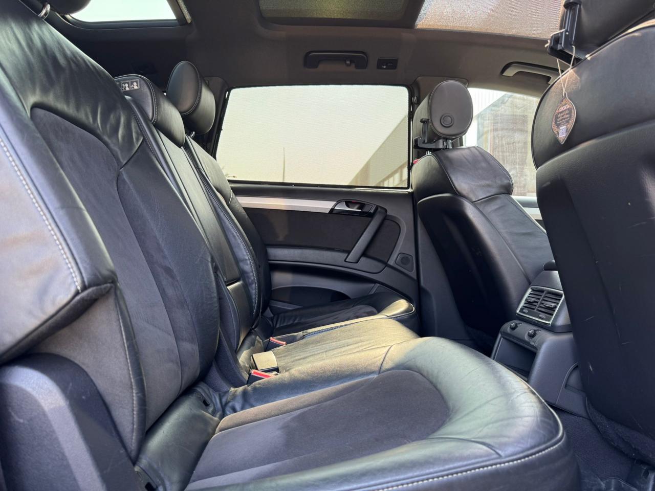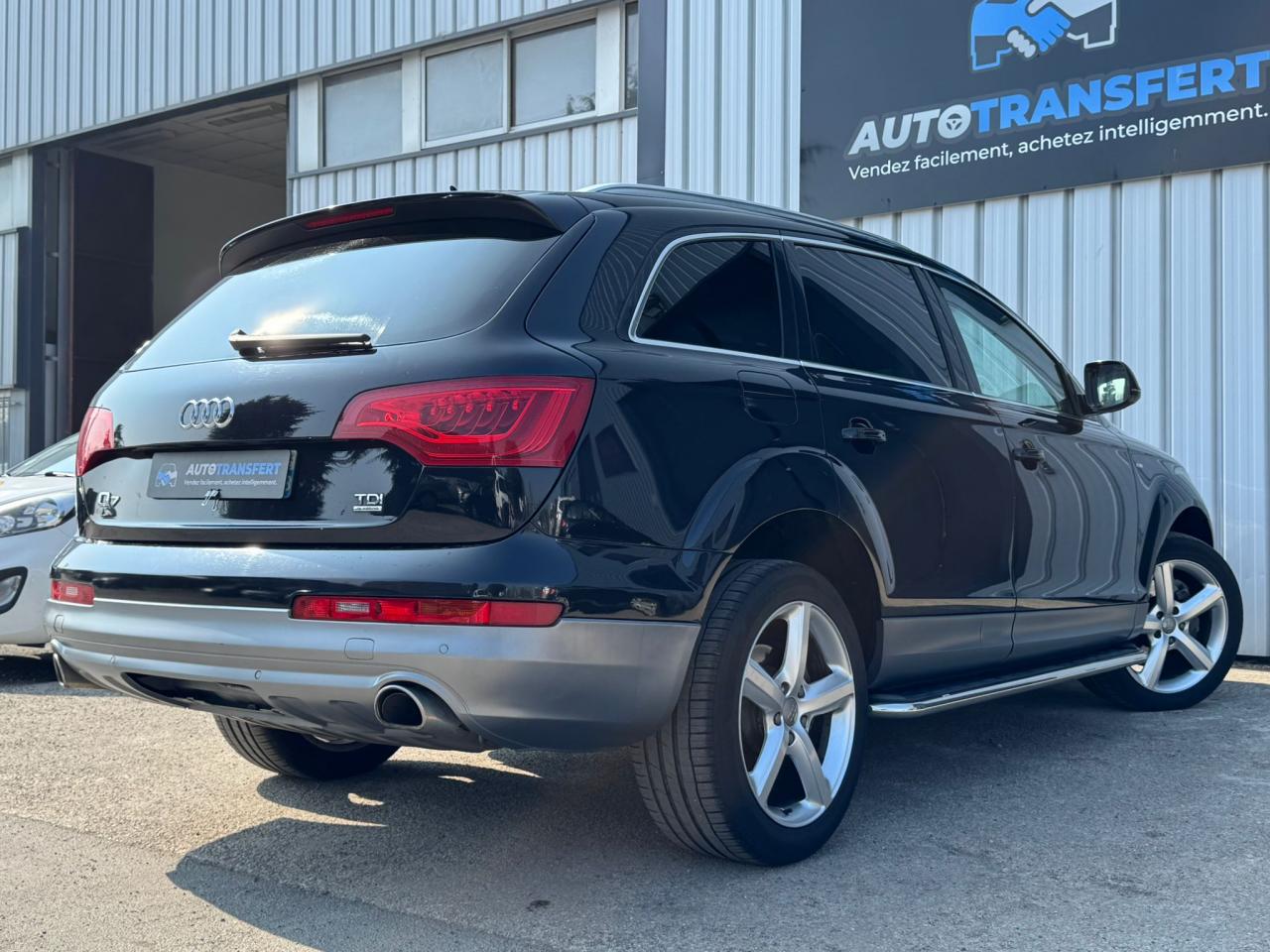 2e rangée coulissante manuellement sur 120 mm avec fonction Easy Entry pour faciliter l'accès à la 3e rangée3e rangée rabattable en 50/50Accoudoir central arrière dans le dossier de banquette arrière, rabattable, avec deux porte-boissonsAccoudoir central avant Confort, séparé pour conducteur et passager avantAide au stationnement arrièreAirbags : airbags grand volume pour le conducteur et le passager avant, deux niveaux de gonflement suivant la gravité du choc ; airbags latéraux avant intégrés aux dossiers de sièges ; airbags de tête sideguard recouvrant la totalité des parois lat&eacAllume-cigares sur la console centrale à l'avant et à l'arrièreAntipatinage ASRApplications décoratives en aluminium brossé matAppuie-tête à toutes les places, réglables manuellement à l'avant et à l'arrière, rabattables à l'arrièreAudi Tracking SystemAutoradio, intégré au MMIAvertisseur deux tons avec commande au centre du volantBlocage électronique de différentiel (EDS)Boîte à gants côté passager avant, éclairée ; commande d'ouverture sur le tableau de bordBuses de lave-glace chauffantesCache-bagages coulissant se manoeuvrant d'une seule main, amovible, avec couvre-joint en deux partiesCache-bagages repliable : coulissant, amovible, repliable par le milieu en combinaison avec la climatisation 4 zonesCapteur de pluieCarrosserie galvanisée, autoportante, soudée au groupe plancherCatadioptres de portières avant et arrière passifsCeintures de sécuritéCendrier sur la console centrale et les contre-portes arrière gauche et droiteChangeur 6 CD compatible MP3 ou WMA pour MMI Basic Plus ou GPS PlusChâssis dynamique avec essieux avant et arrière à doubles bras transversauxCiel de pavillon en tissu noirClignotants avec fonction autoroute : une brève impulsion sur le comodo active 3 cycles de clignotementClimatisation automatique Confort PlusCoffre grand volume avec grande largeur de chargement, facile à chargerColonne de direction de sécurité : complète la protection des ceintures de sécurité et des airbagsConsole centrale avec commande de la climatisation, cendrier, levier de vitesse, terminal MMI, porte-monnaie, allume-cigares et prise de courant 12VContre-portes avec panneau de tissu, accoudoir intégré, assorties à la couleur intérieureContrôle de port de ceinture sur siège conducteur et passager avant ; un signal sonore et visuel invite à mettre les ceinturesContrôle de pression des pneus ( TPMS )Contrôle électronique de stabilisation ESC, avec amplificateur hydraulique de freinage d'urgenceDétecteur de luminositéDéverrouillage de coffre par touche douceDossier de banquette arrière rabattable en deux parties , 1/3, 2/3 ou complétementEclairage au niveau des pieds à l'avant et dans le coffreEclairage intérieur à temporisation avec contacteurs sur toutes les portièresEclaireurs de portes à l'avantEssuie-glace arrière avec commande de lavage-balayage automatiqueEssuie-glace deux vitesses avec commande automatiqueEtui à lunettes sur le module de pavillonFeux arrière à diodes, clignotants, feu arrière et feu de freinage à diodes, économes en énergie, feux de recul blancs, feux antibrouillard et, avec capot de coffre ouvert, fonction feux arrière dans le bandeau d'éclairage du pare-chocsFeux stopFilet dans la zone des pieds côté passager avantFilet de séparationFixation pour sièges enfants ISOFIX à l'arrièreFrein de stationnement commandé au piedFreins à disques ventilés de 18” à l'avant et freins à disques ventilés de 17” à l'arrièreGestionnaire de batterieGPS PlusIdentification du modèle à l'arrière, inscription « quattro » à l'arrière, sur la calandre et sur le tableau de bord côté passager avantInscription S line sur calandre, ailes avant et seuils de porteInstrumentation à éclairage réglableJantes Audi exclusive en aluminium coulé style 5 branches, 9 J x 20”, avec pneus 275/45 R 20Lecteur simple CD sur le tableau de bord, pilotable par MMI BasicLunette arrière dégivrante, avec minuterieMiroir de courtoisie côté conducteur et passager avant éclairéMMI Basic PlusMoquette, couleur assortie à celle de l'habitacleOEilletons de fixation, quatre oeilletons dans le coffre pour arrimer le chargementOrdinateur de bord couleurOutillage de bord dans le coffrePack EclairagePack EsthétiquePare-brise en verre feuilleté athermique avec bande grise sur la partie supérieurePare-soleil rabattables et pivotants côtés conducteur et passager avant, avec miroir de courtoisie éclairé et occultablePatères à vêtement : deux patères sur le pavillon à l'arrière et deux sur les montants de pavillon centrauxPeintures contrastées, bas de pare-chocs avant et arrière ainsi que bandeaux de portières laquésPhares : projecteurs halogènes à surfaces libres sous vitre transparentePhares antibrouillard intégrés dans le bouclier avantPlancher de chargement, double, avec volume de rangement derrière la 2e rangée de sièges sur véhicule sans 3e rangée de sièges, facile à nettoyerPoignées de maintien : quatre poignées rabattables avec mécanisme d'amortissement, encastrées dans le ciel de pavillonPoignées de portières extérieures laquées dans la couleur de carrosserie, poignées cintrées agréables à utiliserPoignées de portières intérieures et encadrement style aluminium, éclairé ; commande intérieure de verrouillage centralisé sur la portière conducteurPommeau de levier de vitesse en cuir perforéPorte-boissons : deux porte-boissons sur la console centrale à l'avant, deux sur l'accoudoir central arrière et deux dans les habillages latéraux au niveau de la 3e rangée de siègesPorte-bouteilles pouvant accueillir des bouteilles de 1,5 litre maximum dans les contre-portes avant et arrière, quatre bouteilles en toutPrise de courant 12 volts, simple sur la console centrale à l'avant, double sur la console centrale à l'arrière, simple dans le coffreProtection antidémarrage électroniq