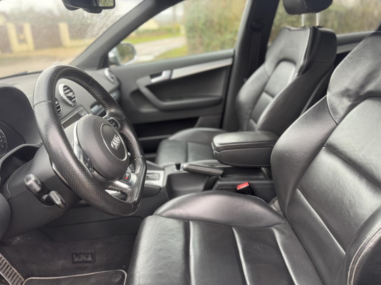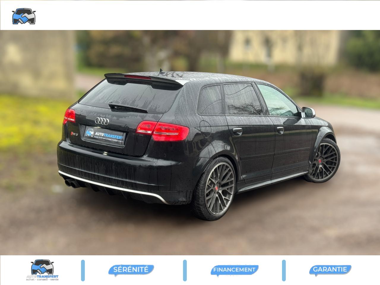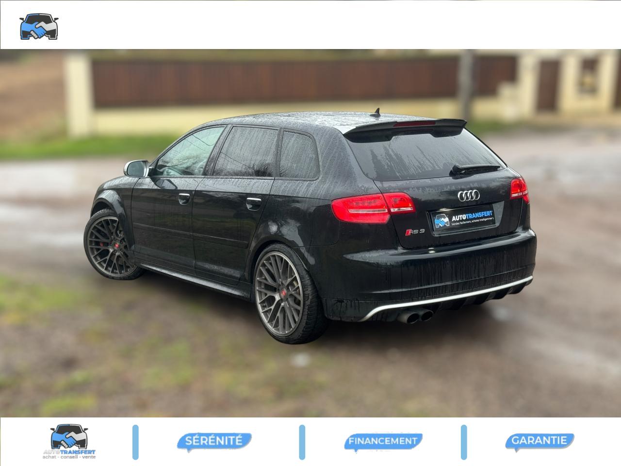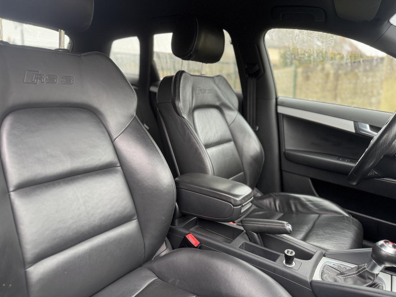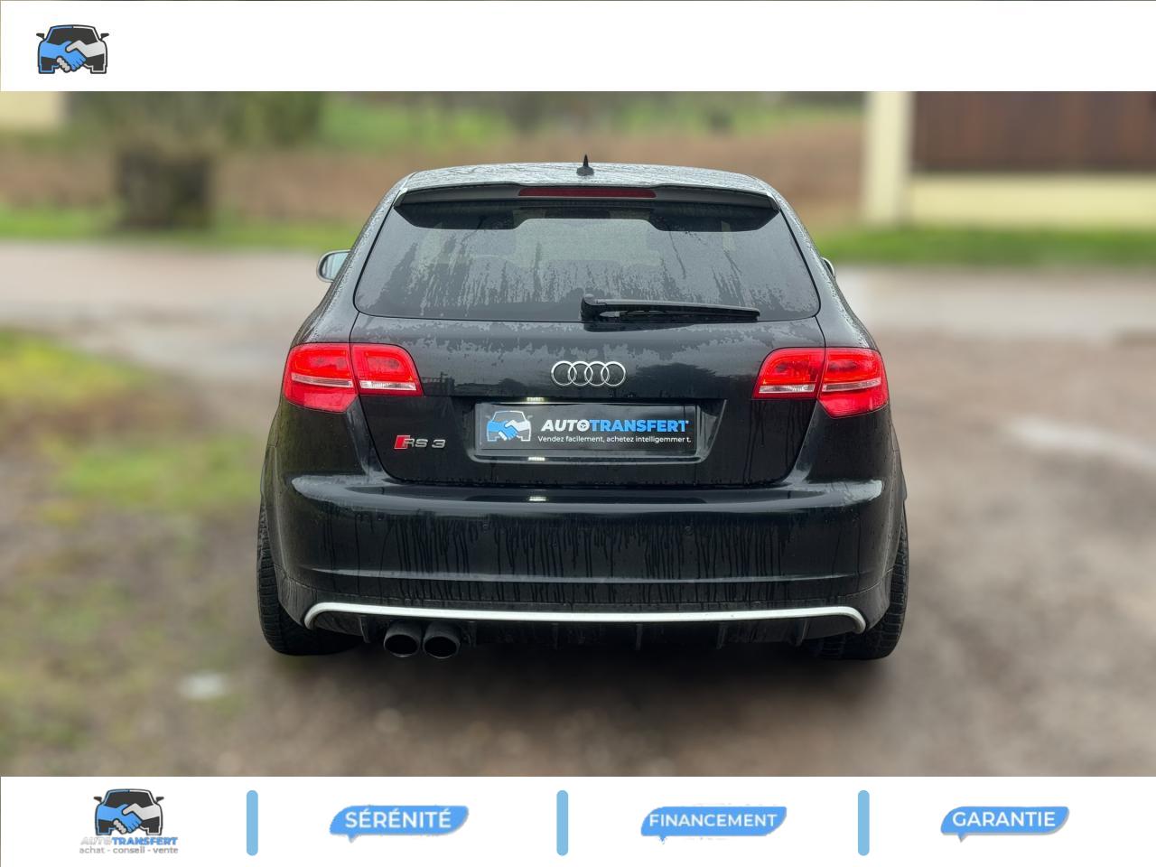 ABS (Antiblocage de roues)Accoudoir central avant en une seule partie et rabattable avec vide-pochesAirbags : airbags grand volume côtés conducteur et passager avant, deux niveaux de gonflement, airbag passager avant désactivable ; airbags latéraux (tête/thorax) à l'avant, intégrés au dossier des siègesAlarme antivol, avec protection antiremorquage, incluant protection volumétrique de l'habitacleApplications décoratives en piano laqué noir sur les contre-portes et la console centraleAppuie-têtes à toutes les places, actifs à l'avant ; réglables à l'avant et à l'arrièreASR (antipatinage)Audi BackguardAudi Hill Hold AssistAudi Premium Tracking System : système de localisation et d'immobilisation par satellite couplé à l'alarme antivolAudi SingleframeAutoradio symphony, avec changeur 6 CD en façade et compatibilité MP3, prise AUX-INAvertisseur ''2 tons''Baguettes latérales dans la couleur de la carrosserieBAS : amplificateur hydraulique de freinage d'urgenceBecquet de pavillon RS 3 sur le hayonBoîte à gants grand volume côté passager avant, éclairéeBose Sound SystemCache-bagagesCarrosserie galvaniséeCatadioptres de portière passifsCeintures de sécurité : ceintures trois points à enrouleur à toutes les places, avec prétensionneurs et limiteurs de tension à l'avantChâssis Sport RS 3 avec suspension et amortisseurs dynamiques et cinématique élastique adaptéeCiel de pavillon en tissu noirClimatisation automatique Confort avec réglage asservi à la position du soleil, réglage de température gauche/droite séparéColonne de direction de sécurité, complète le potentiel de protection de la ceinture et de l'airbagCommande des feux pour feux de stationnement, feux de route et feu arrière de brouillardConsole centrale avec commandes du chauffage et vide-pochesContre-portes avec partie centrale en Alcantara et accoudoirs intégrésCrochets pour sacs à gauche et à droite dans le coffreDétecteur d'occupation du siège conducteurDétecteur de luminositéDéverrouillage du coffre par touche assistée électriquement, commande supplémentaire pour déverrouiller le coffre depuis la place conducteurDiffuseurs d'air ronds avec cerclage style aluminiumDirection assistée électromécanique, assistance asservie à la vitesse, avec rappel de direction actif, correction automatique de trajectoire en ligne droiteDirection électromécanique à assistance variableEBV : Répartiteur électronique de freinageEclairage blanc, réglable, sur les instruments ; éclairage rouge sur les commandes et le tableau de la climatisationEclairage dans le coffreEclairage intérieur à temporisation avec contacteur sur toutes les portières ; éclairage pour le conducteur, le passager avant et dans le coffreEcrous antivolEDS (blocage électronique de différentiel)Essuie-glace arrière avec commande de lavage-balayage automatiqueEssuie-glace deux vitessesExtensions de passage de roue à l'avant en plastique renforcé de fibres de carboneFeux arrière rouges, avec auréole de lumière continue en tubes de fi bre optique éclairés par LED, feu de recul blanc, avec feu arrière de brouillardInscription RS 3 sur la calandre, le capot de coffre, les baguettes des seuils de portes, les étriers de freins avant, le volant Sport, le pommeau de levier de vitesses et le compte-toursInstrumentation avec cadrans noirsInstrumentation style RSJantes en aluminium coulé style 5 branches en hélice finition titane, polies brillant, 8 J x 19” avec pneus 225/35 R 19” à l'arrièreJantes en aluminium coulé style 5 branches en hélice finition titane, polies brillant, 8 J x 19” avec pneus 235/35 R 19” à l'avantLunette arrière dégivrante avec minuterie, dégivrage complémentaire en fi n de balayage de l'essuie-glaceMiroir de courtoisie côté conducteur et passagerOeilletons de fixation dans le coffreOutillage de bordPack EclairagePare-chocs arrière spécifique avec diffuseur d'air de couleur noirePare-chocs avant spécifique avec larges prises d'air à l'avantPare-chocs dans la couleur de la carrosseriePare-soleil gauche et droite rabattables et pivotants, avec miroir de courtoisie occultable, troisième pare-soleil rabattable au-dessus du rétroviseur intérieurPare-soleil pour la lunette arrièrePatères sur les montants de pavillon centraux, 2 patèresPédalier en aluminiumPoignées de maintien, rabattables avec amortisseur, intégrées au pavillon, 4 poignéesPoignées de portières affleurantes dans la couleur de carrosseriePommeau de levier de vitesses RS 3 en cuir perforé avec anneau décoratif style aluminiumPorte-boissons avant avec jalousie, double, sur le tunnel centralPréparation pour iPodPréparation pour téléphone 2 W bi-bande (D et E)Prise de courant à l'avant, avec vide-poches sur la console centraleProgramme électronique de stabilisation ESP avec mode Sport, désactivable sur 2 niveaux, assure davantage de stabilité en agissant de manière ciblée sur le freinage individuel des roues et sur la gestion du moteurProtection anticollision latérale dans les portières, constituée de profilés d'aluminium rigidesProtection antidémarrage intégrée à la commande du moteur, activation automatique par la clé de contactProtection durable sous le plancher et dans les passages de roueQuattro : transmission intégrale permanente avec répartition asymétrique et dynamique de coupleRécupération durant les phases de décélération et de freinage, l'énergie cinétique est convertie en énergie électrique utilisable ; cette énergie permet de soulager l'alternateur lorsque la voiture accélèreRégulateur de vitesseRepose-piedRéservoir situé dans une zone protégéeRétroviseurs extérieurs style aluminium mat avec rappels de clignotant à diodes, asphérique côté conducteur, convexe côté passager avant, dégivrants et escamotables électriquementSeuils de portes avec inserts en aluminium et emblème RS 3Sideguard, système d'airbags de tête grand format, se d