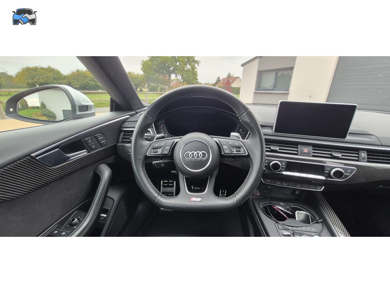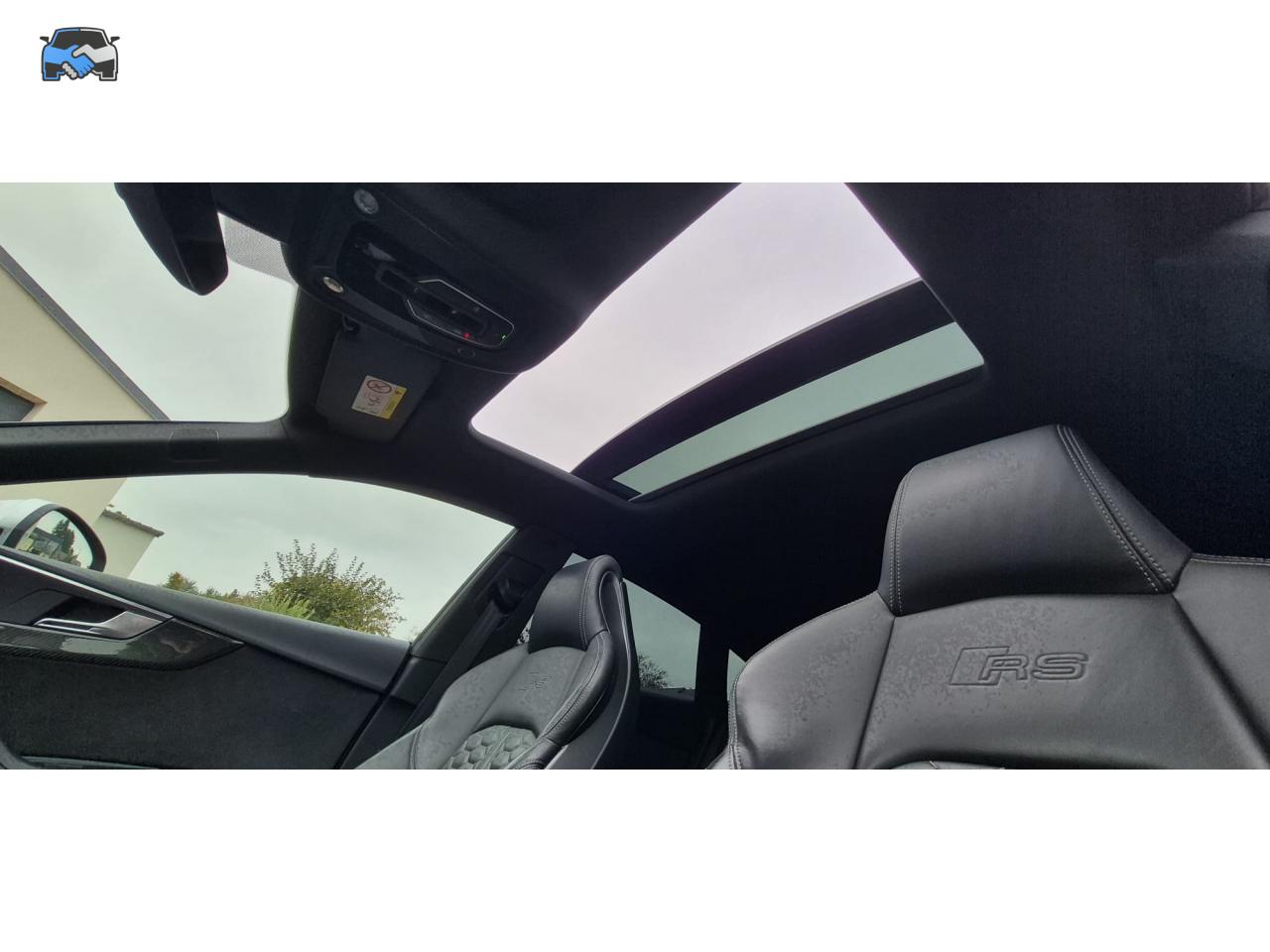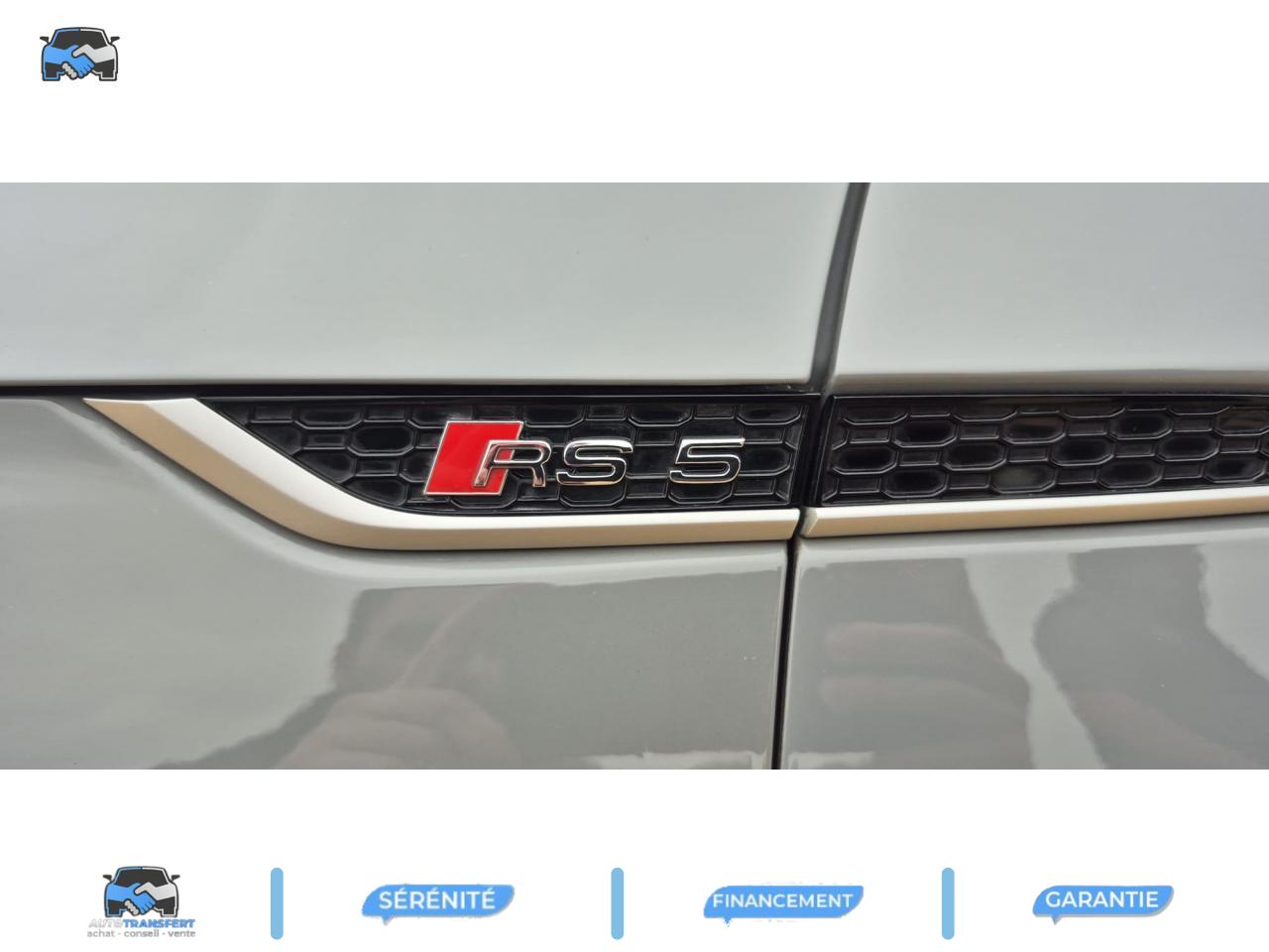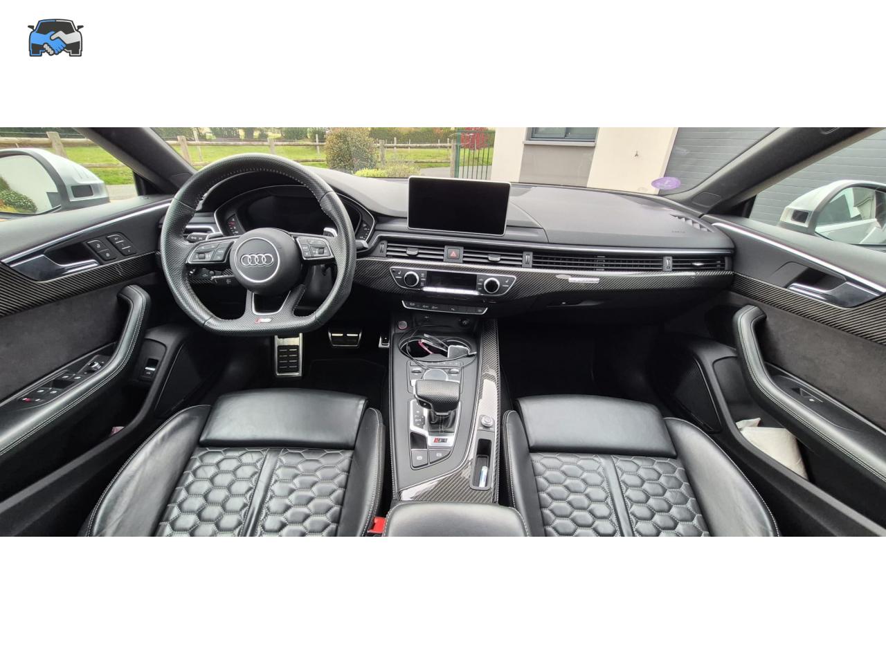 Accès ConfortAccoudoir central confort à l'avant avec inclinaison réglable et coulissant en longueurAffichage du contrôle de la pression des pneumatiquesAirbags grand volume pour le conducteur et le passagerAirbags latéraux à l'avant et système d'airbags de têteAntipatinage ASR pour une motricité optimale, empêche le patinage des roues motricesApplications décoratives en aluminium RacingAudi connectAudi connect "Sécurité et Service"Audi Drive SelectAudi Hold AssistAudi phone box avec chargeur sans filAudi smartphone interfaceAudi sound system : 10 haut-parleurs incluant un haut-parleur central et un subwoofer ; amplificateur à 6 canaux avec une puissance totale de 180 wattsAudi Tracking System : système d'immobilisation et de localisation du véhicule par satelliteAudi virtual cockpit avec menu spécifique RSBanquette arrière 3 placesBlocage électronique de différentiel (EDS)Câbles de recharge pour téléphone portable, compatibles iPhone et AndroidCalandre singleframe structure nid d'abeilles noir brillant avec cadre en aluminium mat, inscription quattro en noir et logo RS 5Ceinture de sécurité réglable en hauteurCeintures de sécurité automatiques à trois points pour tous les sièges et contrôle de port de ceinture à l’avantChâssis Sport RSCiel de pavillon en tissu noirClé confortClimatisation automatique Confort Plus 3 zones à fonctionnalités étendues et affichage numériqueColonne de direction de sécurité, contient un système mécanique de déplacement avec fonction d'amortissement qui complète le potentiel de sécurité de la ceinture et de l'airbagContrôle électronique de stabilisation (ESC) avec mode SportCoques de rétroviseurs extérieurs en aluminiumDésactivation de l'airbag du passager avantDétecteur de pluie et allumage automatique des projecteursDirection assistée électromécaniqueDossier de banquette arrière 2 places, rabattable à distance et en trois parties 40 : 20 : 40 ou complètementEcrous antivolFixation pour sièges enfants ISOFIX et Top Tether pour les places arrière extérieuresFrein de stationnement electromécaniqueGrilles d'entrée d'air latérales et applications en aluminium mat, spoiler avant noir, baguettes latérales en noir, diffuseur arrière noir et baguette horizontale en aluminium matHayon à ouverture et fermeture automatiquesInscriptions RS 5 sur les ailes avantInterface BluetoothJantes aluminium forgé 10 branches, 19''Lave-pharesLimiteur de vitesse réglable et régulateur de vitesseNavigation MMI plus avec MMI touchPack Assistance CityPack EclairagePare-chocs spécifiques RS style dynamique et sportifPare-soleilPhares à LED avec clignotants arrière à LED dynamiquesProjecteurs avant et phares arrière foncésQuattro : transmission intégrale permanente avec répartition asymétrique et dynamique de coupleRétroviseur intérieur électrochrome sans contourRétroviseurs extérieurs avec clignotants à LED intégrésRétroviseurs extérieurs réglables et escamotables électriquement, jour/nuit automatique, dégivrants des deux côtés et buses de lave-glaces dégivrantesRecommandation de repos qui analyse le comportement routier au moyen de différents capteursSellerie cuir / Alcantara avec surpiqûres contrastées et embossé RSSièges AV avec massage lombaireSièges avant chauffantsSièges avant réglables électriquement avec fonction mémoires pour le siège conducteurSièges Sport RS à l'avant avec appuie-tête intégrésSorties d'échappement chromées doubles, une à gauche et une à droiteSystème Stop & StartTapis complémentaires à l'avant et à l'arrièreTeinte vernie Gris NardoTiptronic : boîte automatique 8 rapports avec programme de commande dynamique (DSP)Tire Mobility System : compresseur et produit de colmatage en cas de crevaisonTriangle de présignalisation et trousse de secoursVitres athermiquesVolant 3 branches multifonctions plus en cuir avec méplat avec logo RS