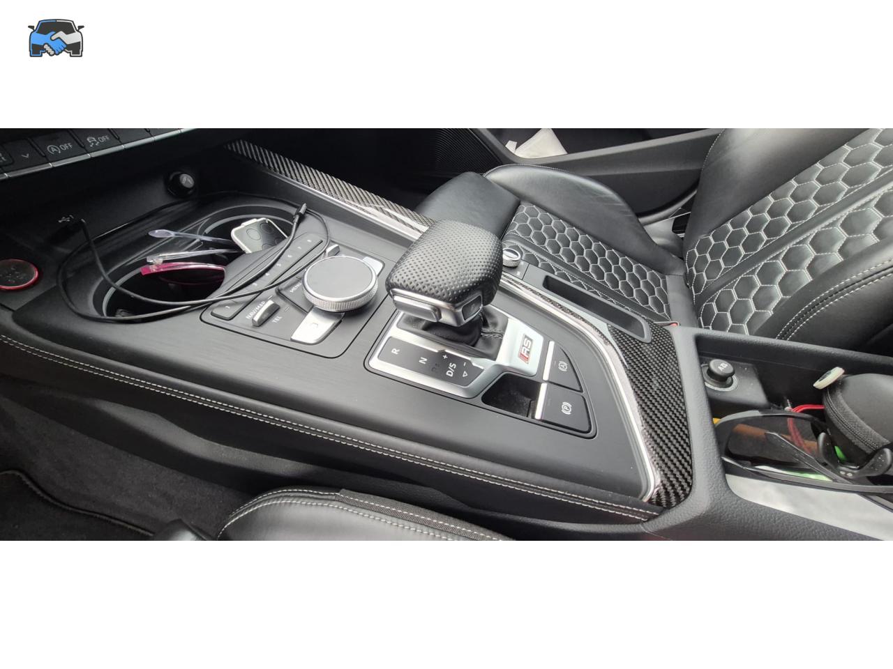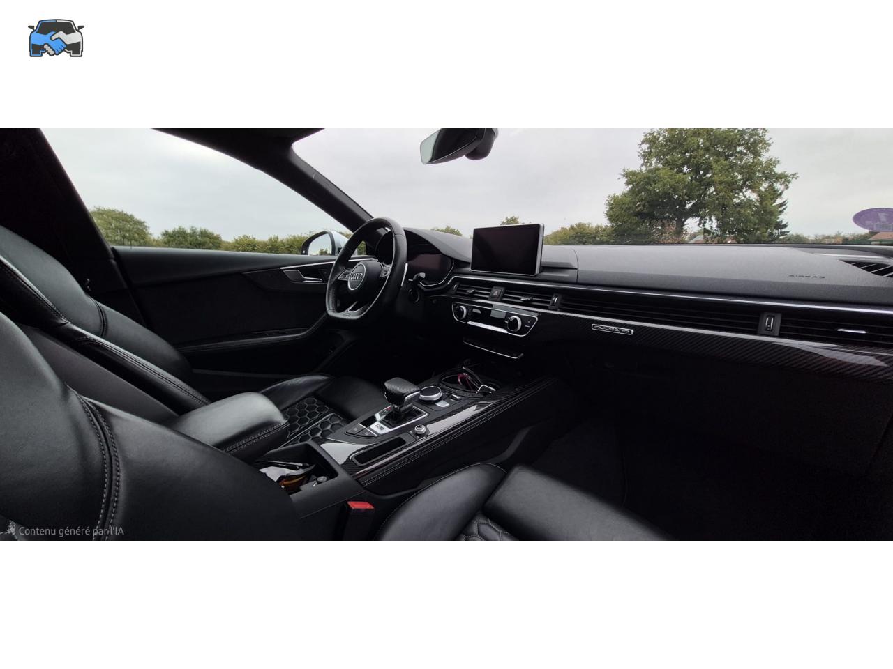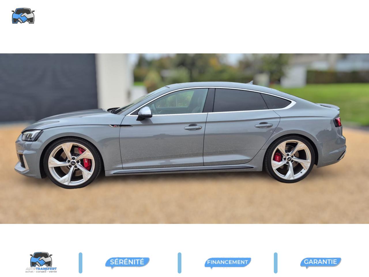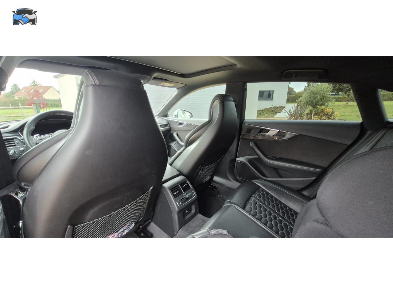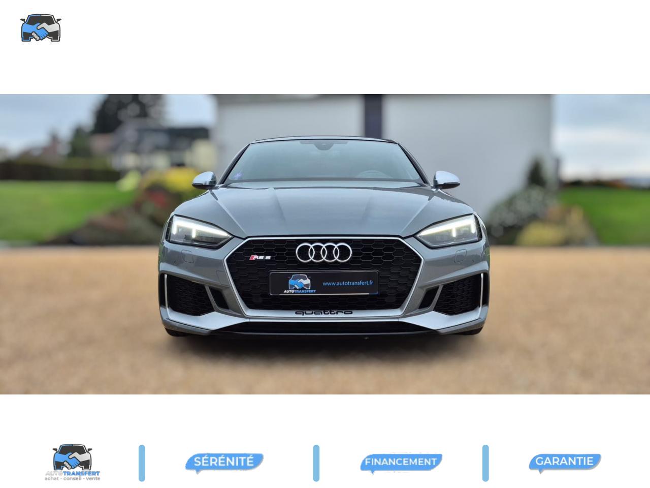 Accès ConfortAccoudoir central confort à l'avant avec inclinaison réglable et coulissant en longueurAffichage du contrôle de la pression des pneumatiquesAirbags grand volume pour le conducteur et le passagerAirbags latéraux à l'avant et système d'airbags de têteAntipatinage ASR pour une motricité optimale, empêche le patinage des roues motricesApplications décoratives en aluminium RacingAudi connectAudi connect "Sécurité et Service"Audi Drive SelectAudi Hold AssistAudi phone box avec chargeur sans filAudi smartphone interfaceAudi sound system : 10 haut-parleurs incluant un haut-parleur central et un subwoofer ; amplificateur à 6 canaux avec une puissance totale de 180 wattsAudi Tracking System : système d'immobilisation et de localisation du véhicule par satelliteAudi virtual cockpit avec menu spécifique RSBanquette arrière 3 placesBlocage électronique de différentiel (EDS)Câbles de recharge pour téléphone portable, compatibles iPhone et AndroidCalandre singleframe structure nid d'abeilles noir brillant avec cadre en aluminium mat, inscription quattro en noir et logo RS 5Ceinture de sécurité réglable en hauteurCeintures de sécurité automatiques à trois points pour tous les sièges et contrôle de port de ceinture à l’avantChâssis Sport RSCiel de pavillon en tissu noirClé confortClimatisation automatique Confort Plus 3 zones à fonctionnalités étendues et affichage numériqueColonne de direction de sécurité, contient un système mécanique de déplacement avec fonction d'amortissement qui complète le potentiel de sécurité de la ceinture et de l'airbagContrôle électronique de stabilisation (ESC) avec mode SportCoques de rétroviseurs extérieurs en aluminiumDésactivation de l'airbag du passager avantDétecteur de pluie et allumage automatique des projecteursDirection assistée électromécaniqueDossier de banquette arrière 2 places, rabattable à distance et en trois parties 40 : 20 : 40 ou complètementEcrous antivolFixation pour sièges enfants ISOFIX et Top Tether pour les places arrière extérieuresFrein de stationnement electromécaniqueGrilles d'entrée d'air latérales et applications en aluminium mat, spoiler avant noir, baguettes latérales en noir, diffuseur arrière noir et baguette horizontale en aluminium matHayon à ouverture et fermeture automatiquesInscriptions RS 5 sur les ailes avantInterface BluetoothJantes aluminium forgé 10 branches, 19''Lave-pharesLimiteur de vitesse réglable et régulateur de vitesseNavigation MMI plus avec MMI touchPack Assistance CityPack EclairagePare-chocs spécifiques RS style dynamique et sportifPare-soleilPhares à LED avec clignotants arrière à LED dynamiquesProjecteurs avant et phares arrière foncésQuattro : transmission intégrale permanente avec répartition asymétrique et dynamique de coupleRétroviseur intérieur électrochrome sans contourRétroviseurs extérieurs avec clignotants à LED intégrésRétroviseurs extérieurs réglables et escamotables électriquement, jour/nuit automatique, dégivrants des deux côtés et buses de lave-glaces dégivrantesRecommandation de repos qui analyse le comportement routier au moyen de différents capteursSellerie cuir / Alcantara avec surpiqûres contrastées et embossé RSSièges AV avec massage lombaireSièges avant chauffantsSièges avant réglables électriquement avec fonction mémoires pour le siège conducteurSièges Sport RS à l'avant avec appuie-tête intégrésSorties d'échappement chromées doubles, une à gauche et une à droiteSystème Stop & StartTapis complémentaires à l'avant et à l'arrièreTeinte vernie Gris NardoTiptronic : boîte automatique 8 rapports avec programme de commande dynamique (DSP)Tire Mobility System : compresseur et produit de colmatage en cas de crevaisonTriangle de présignalisation et trousse de secoursVitres athermiquesVolant 3 branches multifonctions plus en cuir avec méplat avec logo RS