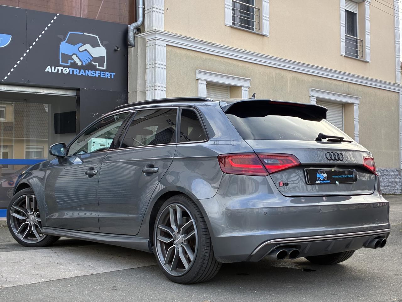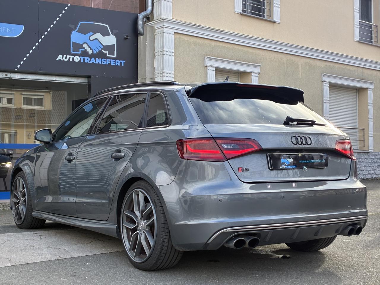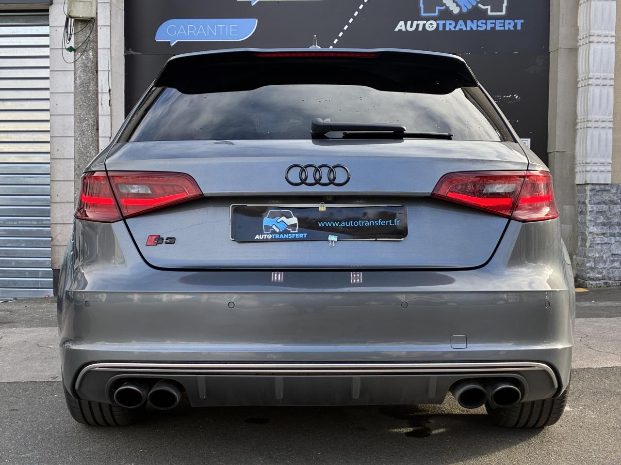 Accoudoir central avant coulissant en longueur, avec vide-poches relevable et inclinaison réglableAirbag genoux conducteurAirbags grand volume pour le conducteur et le passagerAirbags latéraux à l'avant intégrés au dossier des siègesAlarme antivol : avec protection anti-remorquage par capteur d'angle d'inclinaisonAllume-cigare et cendrier amovible, couvercle chromé avec anneaux Audi, allume-cigare sur la console centrale au lieu de la prise 12 volts de sérieAntipatinage (ASR) : empêche le patinage des roues motrices en réduisant la puissance du moteur, assure davantage de stabilité et une meilleure tractionApplications décoratives sur les contre-portes et tableau de bord "Aluminium brossé mat"Audi Drive Select, permet différents réglagesAudi parking system à l'arrière facilitant le stationnement dans les limites du système à l'aide d'un signal sonoreAudi Premium Tracking SystemAudi Sound System avec 10 haut-parleursBecquet de pavillon S3, laqué dans la couleur de la carrosserie, avec inserts aérodynamiques latéraux noir brillantBlocage électronique de différentiel (EDS) : freine automatiquement les roues motrices sur route glissante et inégalement adhérente, assurant ainsi une excellente motricitéBoîte à gants grand volume côté passager avant, éclairéeCache-bagages amovibleCalandre Audi singleframe gris platine avec entretoises horizontales chromées, avec anneaux Audi chromés au centreCarrosserie galvanisée (entièrement galvanisée aux endroits sensibles à la corrosion)Ceintures de sécurité 3 points automatiques pour toutes les placesChâssis Sport S surbaissé de 25 mm, avec suspension et amortisseurs plus fermesCiel de pavillon en tissu noirClé avec emblème S3Climatisation automatique Confort avec réglage asservi à la position du soleilContrôle de ceinture attachée pour toutes les placesContrôle de pression des pneus ( TPMS )Contrôle électronique de stabilisation (ESC) désactivable, avec amplificateur hydraulique de freinage d'urgenceDétecteur de pluie et allumage automatique des projecteursDirection progressive contribuant à une augmentation de la dynamique de conduiteDossier de banquette arrière rabattable en deux parties 40/60 ou complètementFeux arrière avec feux de recul blancs et feux de brouillard arrière, incluant troisième feu stop surélevé et éclairage de plaque à LEDFeux de freinage adaptatifsInscriptions S3 sur la calandre, le capot de coffre, les baguettes des seuils de portes, les étriers de freins avant, le volant Sport, le pommeau de levier de vitesses et le compte-toursLave-essuie-glace 2 vitesses, 4 intervalles de balayage réglablesLève-vitres à l'avant et à l'arrièreLunette arrière dégivrante, avec minuterie; chauffage supplémentaire de l'extrémité inférieure de l'essuie-glace arrièreMiroir de courtoisie côté conducteur et passagerMMI GPS plus avec données de navigationPack aluminium intérieurPack EclairagePare-brise acoustique, améliore l'isolation phonique du pare-brise et réduit les bruits extérieursPare-chocs dans la couleur de la carrosseriePare-chocs laqués dans la couleur de carrosserie avec prises d'air latérales accentuées, extension de bas de caisse ainsi que diffuseur S à l'arrière au design résolument sportifPare-soleil rabattables et pivotants, côtés conducteur et passager avant, avec miroir de courtoisie occultablePédalier en acier inoxydable brosséPoignées de maintien. 4 poignées avec mécanisme amortisseur, rabattables, encastrées dans le pavillonPréparation pour téléphone portable (Bluetooth), commande sur volant multifonction, mains libres et audiostreamingPrise de courant 12 volts sur la console centrale à l'avantProtection antidémarrage électronique, intégrée à la gestion du moteur, activation automatique par la clé du véhiculeProtection latérale anticollision avec barres extrêmement rigides dans les portières et une structure latérale de carrosserie renforcéeRangements dans les contre-portes à l'avant avec casier de rangement pour boissons, rangements dans les contre-portes arrièreRecommandation de repos qui analyse le comportement routier au moyen de différents capteursRégulateur de vitesse avec maintien constant de la vitesse souhaitée à partir d'environ 30 km/hRétroviseur intérieur électrochromeRétroviseurs extérieurs avec clignotants à LED intégrés réglables électriquement et dégivrantsRétroviseurs extérieurs style aluminium avec rappels de clignotant à diodes, asphérique côté conducteur, convexe côté passager avant, dégivrants et escamotables électriquementSièges conducteur et passager avant réglables en hauteurSièges Sport à l'avant avec estampillage SSignal sonore pour oubli d'extinction des feuxSorties d'échappement chromées, visibles et doubles, 2 sorties ovales chromées à gauche et à droiteSystème d'information du conducteur (écran couleur)Système d'information du conducteur avec écran couleur haute résolution de 3,5 poucesSystème de freinage avec antiblocage (ABS) et répartiteur électronique de freinage (EBV) ; amplificateur hydraulique de freinage d'urgence à 2 rapports (Dual Rate)Système de ventilation et chauffage 4 diffuseurs d'air rondsTémoins de contrôle pour, entre autres Airbag, ABS, ESC/ASR, frein de stationnement serré, électronique EDS, phares, clignotants, circuit de freinage, pression d'huile moteur, fermeture du coffre, système électrique du moteurTransmission intégrale permanente avec répartition asymétrique et dynamique de coupleVerrouillage centralisé avec télécommande à fréquence radio intégrée à la clé du véhicule et code modifiableVolant réglable en hauteur et en profondeurVolant Sport 3 branches multifonction en cuir badgé S3 avec méplat et surpiqûres décoratives de couleur contrastéeXénon plus : réglage automatique du site des phares, lave-phares, feux de jour, feux arrière et feux d'éclairage de la plaque d'immatriculation arrière