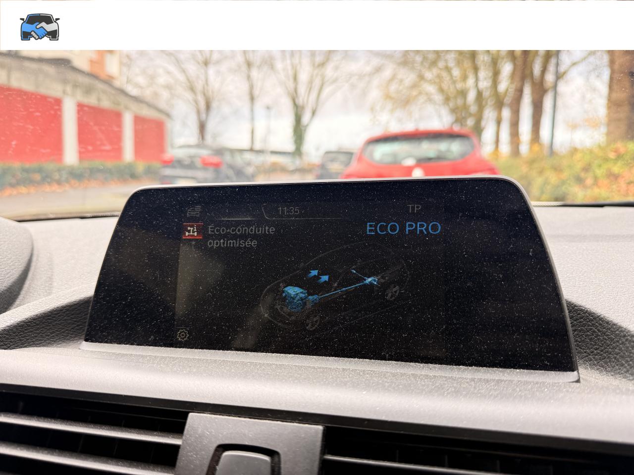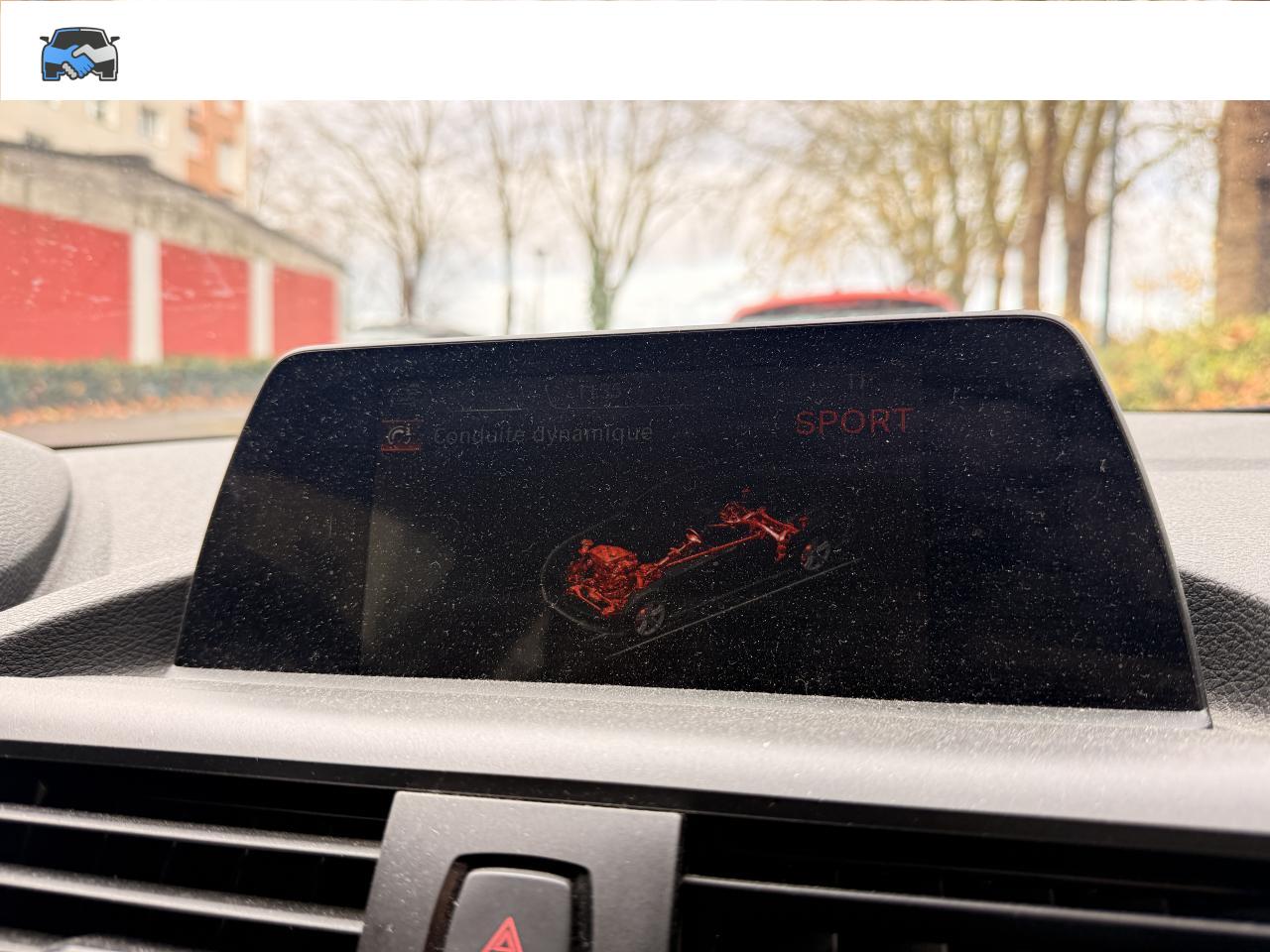 ABS (Antiblocage de roues)Accoudoir central avant coulissantAide au démarrage en côte, pré-charge du circuit de freinage au lever de pied, séchage des disques de freins et compensation du fadingAirbags conducteur et passagerAirbags de tête avant et arrière avec voile de protection contre les débris de verreAirbags latéraux avantAnneaux d'arrimage dans le coffreAntenne de toit « aileron de requin »Anti-démarrage électroniqueAppuis tête ajustablesAssistance au freinage d'urgenceAutoradio BMW Professional CD, 6 haut-parleurs, prise AUX-IN, port audio USB et streaming audio Bluetooth (avec fonction "Music Search")Baguettes de seuil de portes sigléesBanquette arrière 3 places avec dossiers rabattables en deux parties (60/40)BMW TwinPower TurboBoîte de vitesses manuelle 6 rapportsCeintures de sécurité à 3 points (tous les sièges) avec prétensionneur pyrotechnique et limiteur de tension (à l'avant)Clés radiocommandées à mémorisation automatique des réglages "Personal Profile"Climatisation automatique avec filtre microporeux et fonction de recyclage d'airConciergerie (3 ans) En relation avec Pack BMW ConnectedDriveConsole centrale noir laquéeConstruction allégée intelligenteContour de calandre chroméContrôle de freinage en courbe CBCContrôle Dynamique de la Stabilité DSC+Contrôle Dynamique de la Traction DTCDémarrage sans clé via le bouton de démarrage Start/Stop avec contour chroméDésactivation de l'airbag du passager avantDétecteur de pluie et allumage automatique des projecteursDeux porte-boissons dans la console centrale avantDirection Servotronic à assistance variable en fonction de la vitesseEclairage de bienvenue et d'accompagnement "Follow-me-home"Eclairage plafonnier soft-on/soft-off et éclairage du coffreEcran d'information central couleur 6,5'' (16,5 cm) avec commande par "Controller" iDriveFeux arrière avec guides de lumière à LEDFeux de jour à LEDFeux de stop dynamiquesFixations Isofix aux places latérales arrièreFonction d'arrêt et de redémarrage automatique du moteurFreins à disques ventilés à l'avantIndicateur de changement de rapportIndicateur de maintenance CBS tenant compte des conditions de conduiteInformation Trafic en Temps Réel RTTI avec pack connectedDriveInterface Bluetooth et port USBJantes en alliage léger 16'' style 378 à rayons en VKit fumeurKit rangementLimiteur et régulateur de vitesse avec maintien de la vitesse en descenteMesure individuelle de pression des pneumatiquesMesures BMW EfficientDynamicsMiroirs de courtoisie intégrés aux pare-soleilNavigation multimédia BusinessNotice d'utilisation intégréeOrdinateur de bord, Check-Control et indicateur de température extérieurePare-chocs auto-régénérants jusqu'à 4 km/h avec éléments déformables jusqu'à 15 km/hPortail BMW Online (3 ans) En relation avec Pack BMW ConnectedDrivePrise de courant 12 V dans la console centrale avantProjecteurs antibrouillardProtection contre les erreurs de ravitaillementRadars de stationnement arrière PDC avec représentation graphique des obstacles sur l'écran centralRappels de clignotants à LED intégrés aux rétroviseurs extérieursRétroviseurs et buses de lave-glace chauffantsRétroviseurs extérieurs à réglages électriquesSécurité enfants aux portes arrièreSélecteur de mode de conduite - 3 modes : "ECO PRO", "Confort" et "Sport"Sellerie tissu MoveSystème de récupération de l'énergie au freinageTapis de sol en veloursTeinte de carrosserie unieTouches de chrome autour des buses d'aération de la console centrale, de la radio et de la climatisationTouches multifonctions sur le volantTrain arrière multibrasTrain avant à double articulationTriangle de présignalisation avec kit de premiers secoursTroisième feu stop à LEDVerrouillage centralisé avec télécommandeVide-poches ergonomiques dans les portes avantVitrage teinté pour réduire l'échauffement dû à l'ensoleillement