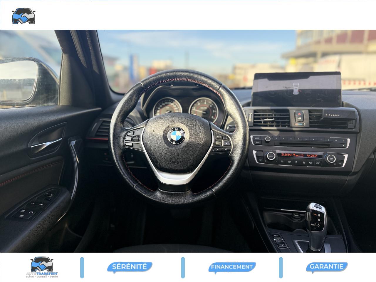 2 Porte-gobelets sur la console centraleAccoudoir central avant coulissantAirbags conducteur et passagerAirbags de tête avant et arrière avec voile de protection contre les débris de verreAirbags latéraux avantAntenne de toit « aileron de requin »Applications chromées autour des touches de radio et climatisationAppuis-tête et ceintures de sécurité 3 points à toutes les placesAutoradio BMW ProfessionalBadge "Sport" sur les ailes avantBoitiers de rétroviseurs extérieurs noir brillantBouton de démarrage « Start/Stop », démarrage du moteur sans cléCeintures de sécurité à enrouleur automatique à l'avant avec prétensionneur et limiteur de tension de la ceintureClés radiocommandées à mémorisation automatique des réglages "Personal Profile"Clés radiocommandées avec application rougeClignotants à LED intégrés aux rétroviseurs extérieursClimatisation automatique tri-zoneCombiné d'instrumentation avec cadrans rougesConstruction allégée intelligenteContrôle Dynamique de la Stabilité DSC avec ABS, CBC et DTC à fonctionnalités étenduesDétecteur de pluie et allumage automatique des projecteursDirection à assistance électriqueDirection Servotronic à assistance variable en fonction de la vitesseDossiers de banquette arrière rabattables asymétriquement (60/40)Eclairage d'ambiance avec deux couleurs au choixEcrous antivolEntourage de prises d'air en noir brillant avec barre horizontale "Titan"Feux de stop bi-intensitéFixations Isofix aux places latérales arrièreFonction d'arrêt et de redémarrage automatique du moteurGrilles de calandre avec 8 barreaux verticaux plus épaisIndicateur de perte de pression des pneumatiques (RPA)Inserts décoratifs brillants "Schwarz"Interface Bluetooth pour téléphone portable avec port audio USBJantes en alliage léger 17" style 380 à rayons en YKit fumeurLames décoratives avant et arrière en noir brillantLève-vitres électriques à l'avant et à l'arrièreOrdinateur de bord, Check-Control et indicateur de température extérieurePoignées de portes couleur carrosseriePrise AUX IN, y compris prise 12 V dans la console centraleProjecteurs antibrouillardRégulateur de vitesse avec fonction de freinageRenforts latéraux dans les portesRepose genou sur la console centrale côté conducteurRétroviseurs extérieurs électriques couleur carrosserie dégivrantSélecteur de mode de conduite avec mode ECO PROSellerie tissu / TrackSeuils de porte chromés "BMW Sport"Shadow Line brillant BMW IndividualSièges avant sportSièges conducteur et passager réglables en hauteurSortie d'échappement simple et ronde avec embout en chrome matSurpiqûres rouges sur le volant SportSystème d'aide au stationnement PDC arrièreSystème de ceinture ergonomique à l'arrière avec ceinture trois points à toutes les placesSystème de récupération de l'énergie au freinageTeinte de carrosserie unieTouches multifonctions sur le volantTriangle de présignalisation avec kit de premiers secoursVerrouillage/déverrouillage centralisé des portes avec anti-démarrage électronique (EWS), capteur d'impact, trappe du réservoir intégrée au verrouillage/déverrouillage centraliséVide-poches ergonomiques dans les portes avant et sous le volantVitres teintées vertesVolant 3 branches, réglable en hauteur et en profondeurVolant Sport gainé cuir