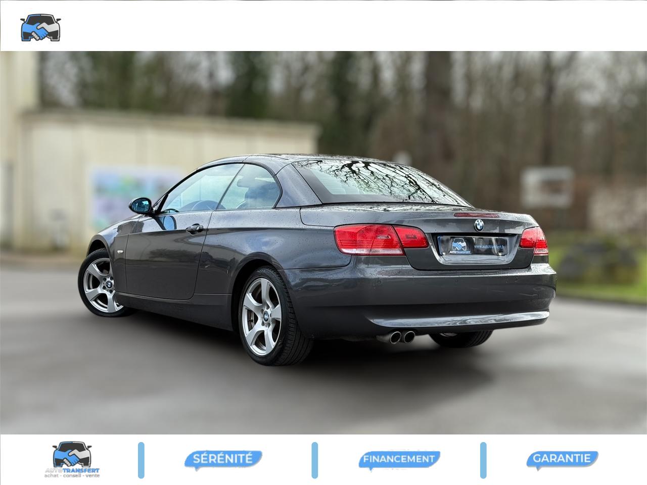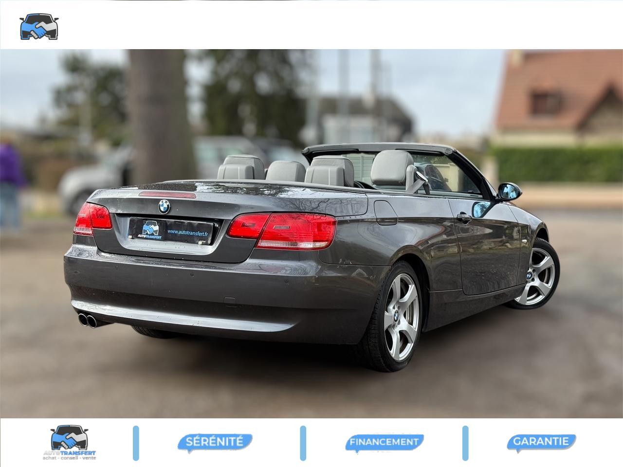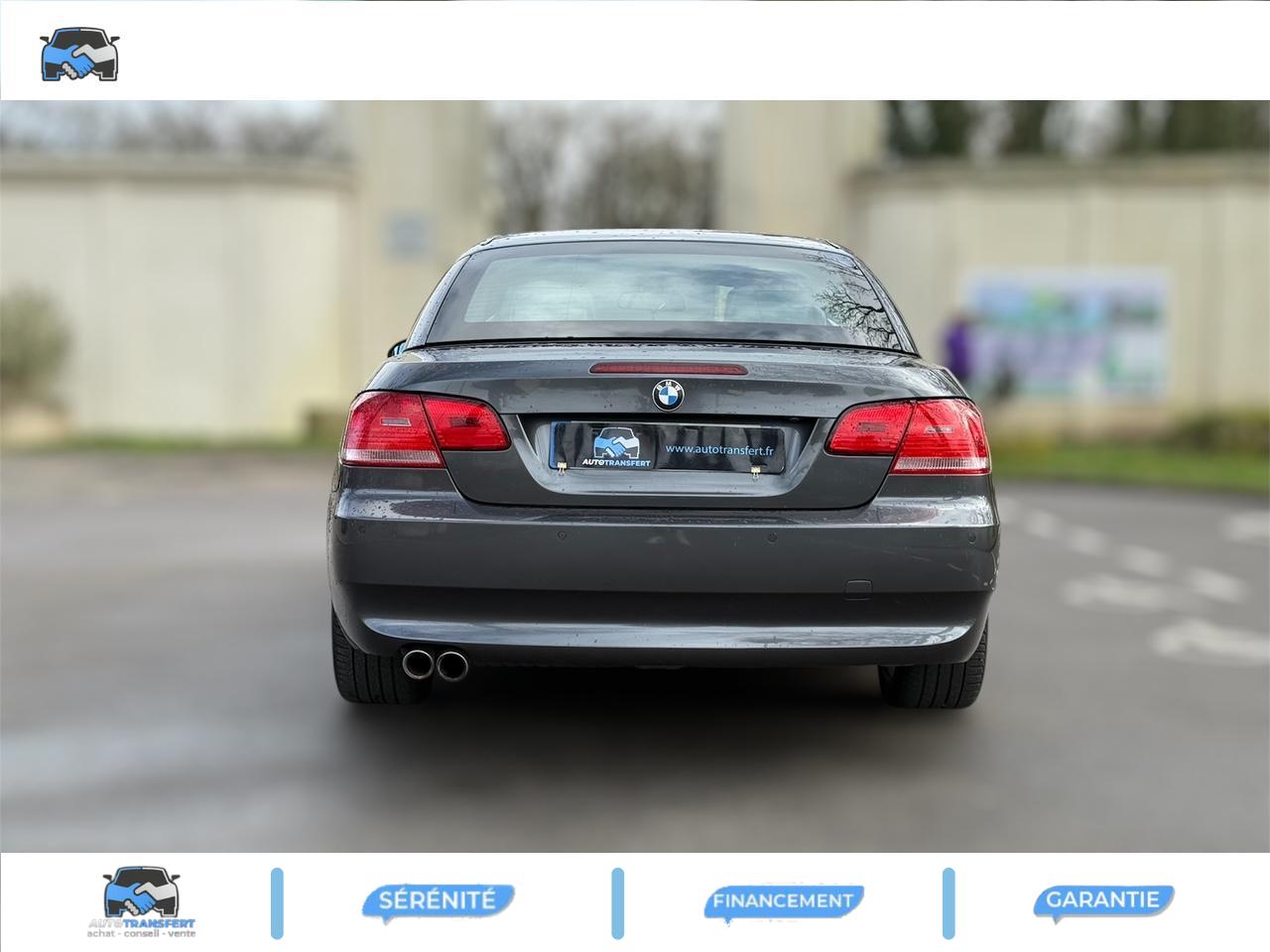 Accès ConfortAccoudoir central avant rabattable avec compartiment de rangement et prise AUX-InAirbag latéral faisant office d'Arbag de tête à l'AVAirbags conducteur et passagerAntidémarrage EWS IVAutoradio BMW ProfessionalBanquette arrière rabattableBoîte de vitesses automatique 6 rapports avec SteptronicBouton de démarrage “Start/Stop”Clignotants blancsClimatisation automatiqueColonne de direction réglable manuellement en hauteur et en longueurCompartiment de rangement dans les revêtement de porteCompartiment de rangement ouvert dans la partie ARDirection assistéeDossiers des sièges AR entièrement rabattablesEclaire diurne avec anneaux lumineuxEssuie-glaces avant automatique avec détecteur de pluie et allumage automatique des feuxFilet de coffre sur le passage de roue gaucheFixation ISOFIX à l'arrièreInserts décoratifs Titan clairJantes en alliage léger rayons en étoile style 185, 8J x 17", pneus 225/45 R17Lave-pharesMultifonctions pour volantOrdinateur de bord avec affichage de la température extérieurePack Eclairage intérieur (avec liseuses AV/AR) Eclairage intérieur AV/AR, temporisateur d'éclairage intérieur soft on/soft off, éclairage de l'espace pour les jambes AV, éclairage des miroirs de courtoisie, éclairage de la boîte &agravPare-soleil avec miroir de courtoisie et cache coulissantPeinture uniePneumatiques RSC à flancs renforcés, permettant le roulage à platPréparation pour changeur de CDProjecteurs antibrouillard, y compris rétroviseurs extérieurs et buses de lave-glace chauffantsProjecteurs au Xénon pour feux de route et feux de croisement (technologie bi-Xénon)Réglage électrique des sièges AV, avec fonction mémoire pour siège conducteurRégulateur de vitesse avec fonction de freinageRétroviseurs extérieurs couleur carrosserieRétroviseurs extérieurs électriques et dégivrantsSellerie cuir DakotaSeuils de portes avec monogramme BMW chroméSortie d'échappement double, ronde et chromée de 72mmSystème d'aide au stationnement PDC, à l'arrièreSystème de navigation Professional avec fonctionnalités étendues iDrive (avec Pack Business)Toit rigide escamodable en trois partie de construction allégée entièrement électriqueTriangle de présignalisation avec trousse de premiers secoursVerrouillage centralisé à télécommandeVitres avant électriques à impulsion et fonction confort