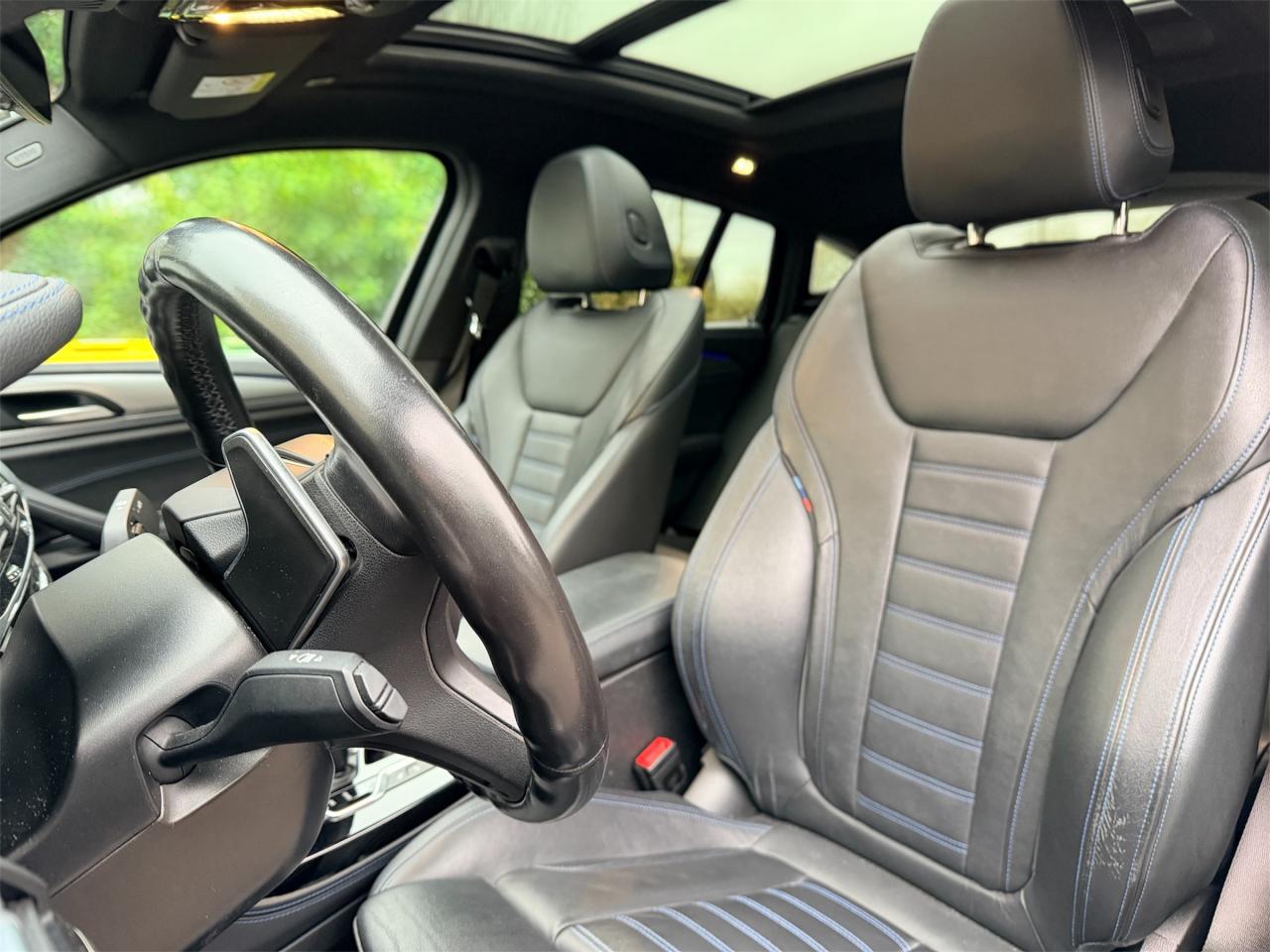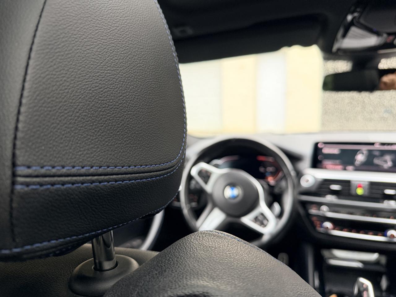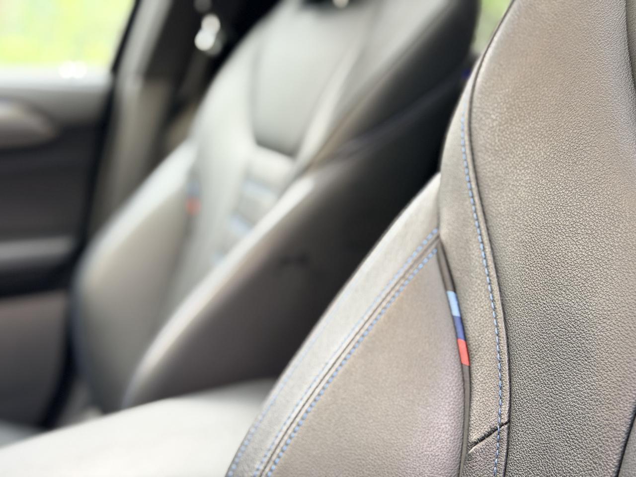 ABS avec aide au freinage d'urgenceAccoudoir central avant et arrièreAirbags conducteur et passagerAirbags de tête avant/arrièreAirbags latéraux avantAntenne de toit « aileron de requin »Appel d'Urgence IntelligentAutoradio BMW Professional, 8 touches de favoris programmables et "Controller" iDrive avec touches de raccourci, compatibilité MP3, double Tuner RDS FM, info-route (TP)Badges latéraux MBMW TwinPower TurboBoîte de vitesses automatique à 8 rapports avec palettes au volantBouton de démarrage Start/Stop sans manipulation de la cléCiel de pavillon anthraciteClé radiocommandée à mémorisation automatique des réglages « Personal Profile »Climatisation automatique 3 zonesColonne de direction réglable en hauteur / profondeurCommande électrique du hayonContrôle dynamique de la stabilité DSCContrôle Dynamique de la Traction (DTC)Détecteur de pluie et allumage automatique des projecteursDéverrouillage électrique du hayon via la poignée ou la clé radiocommandéeDiffuseur aérodynamique avant "Air Curtain"Eclairage d’ambianceFeux de route anti-éblouissementFixations ISOFIX aux places latérales arrières pour sièges enfantFrein de parking électromécaniqueInserts décoratifs Aluminium Rhombicle avec baguette d'accentuation chrome brillant perléJupe arrière intégrant un diffuseur en « Dark Shadow » métalliséKit aérodynamique M avec jupe avant, jupes latérales et enjoliveurs de passage de roue dans la teinte de carrosserieKit EclairageLimiteur et régulateur de vitesse avec maintien de la vitesse en descenteMesure individuelle de pression des pneumatiquesPack Advanced Full LEDPack Aérodynamique MPack BMW ConnectedDrivePoignées de portes couleur carrosserieProjecteurs antibrouillard à LEDRétroviseur intérieur électrochromeRétroviseurs extérieurs couleur carrosserieRétroviseurs extérieurs électriques chauffants, asphérique côté conducteurRétroviseurs extérieurs rabattables électriquement et électrochromatique du côté conducteurSélecteur de mode de conduite - 3 modes : "ECO PRO", "Confort" et "Sport"Sellerie Tissu-cuir 'Vernasca' Schwarz avec sûrpiqures contrastées bleuesSeuils de portes M, repose pied M et pédalier spécifique MShadow Line M brillantSorties d’échappement en chrome brillantSuspension DirectDriveTapis de sol en veloursVolant M gainé cuir