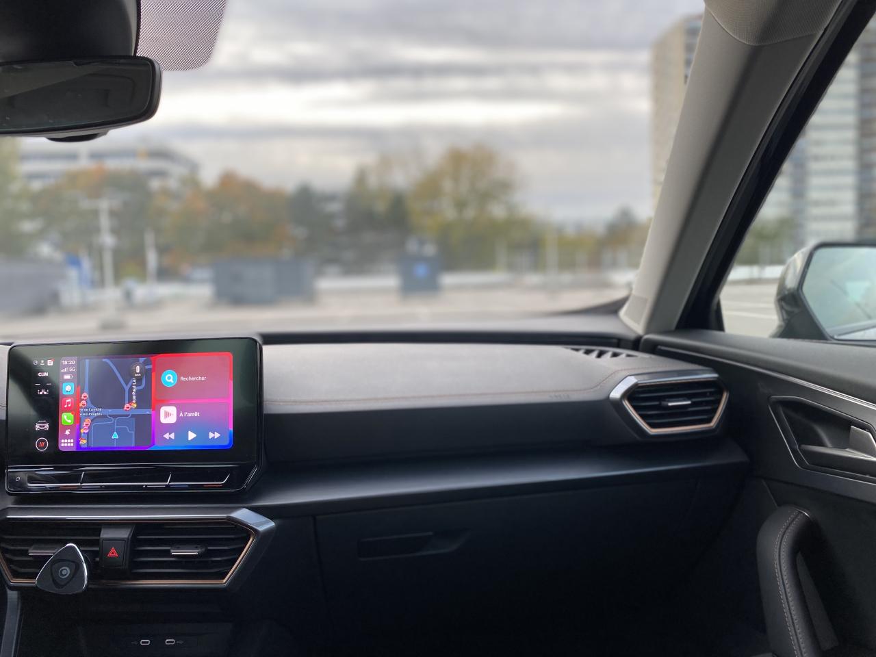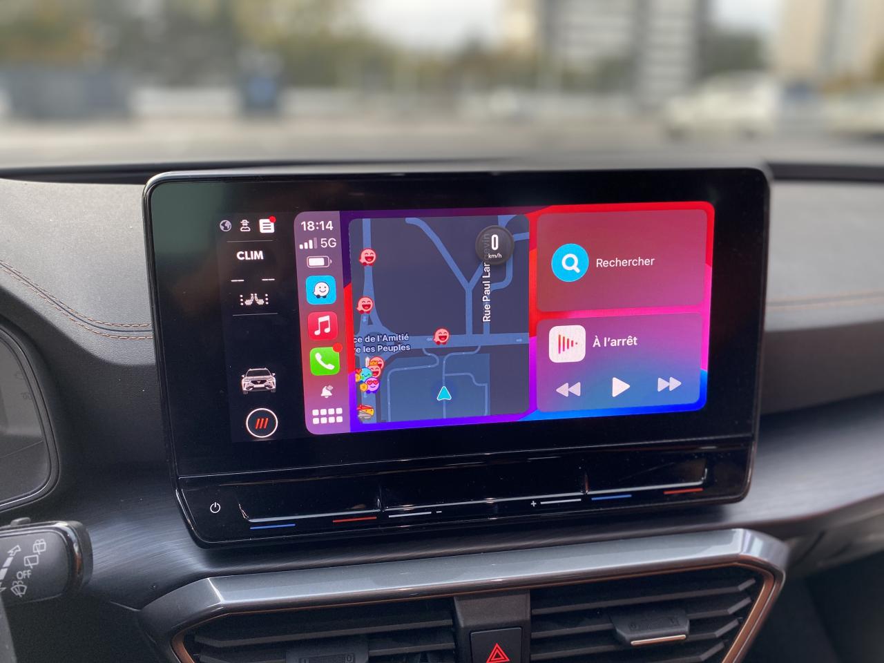 2 prises USB-C éclairées à l'AV et 2 à l'ARAccès et démarrage mains-libresAccoudoir centralAide au stationnement arrièreAirbags frontaux , latéraux et rideauxAppel d'urgence - EcallBandeau arrière "Infinite Light" à LED avec clignotants à défilement et cérémonie de bienvenueCâble de recharge pour prise domestiqueCiel de pavillon noirClimatisation automatique Climatronic tri-zoneConnectivity Box avec chargeur à inductionContre-portes en similicuir noir surpiquéCouleur contrastante Dark Alu (soubassements, élargisseurs d'ailes et coques de rétroviseurs)CUPRA BoxCupra connect Media & InternetDétecteur de pluie et allumage automatique des projecteursDigital Cockpit : combiné d’instruments digital haute résolution couleur de 10,25"Direction dynamiqueDossier AR rabattable 2/3 - 1/3Double-sortie d'échappement Copper rectangulaireEclairage d'ambiance intérieur intelligentEclairage de bienvenue avec projection du logo CUPRA au solFeux de route intelligentsFixations Isofix et Toptether aux sièges arrièreFull Link avec CarPlay sans filHayon électrique + fonction Virtual PedalJante alliage 19" Black SilverLampes de lecture à l'avant et à l'arrièreMiroirs de courtoisie éclairés conducteur et passagerPack Drive Assist LPack extérieur Cupra avec entourages de vitres Noir PianoPack intérieur Copper avec inserts Dark AluPark Assist avec aide au stationnement avantPeinture Blanc CandyProjecteurs antibrouillard avec Cornering Light et Coming HomeProjecteurs Full LEDRadio Numérique DABRails de toit Noir PianoRéglage en hauteur et lombaire des sièges avantRégulateur de vitesse adaptatif et prédictif 'ACC' jusqu’à l’arrêt completRégulation adaptative du chassis DCCRétroviseur intérieur électrochromeSeuils de porte CUPRA rétro-éclairésSièges baquets Cupra en textile NoirSign Assist (reconnaissance des panneaux de signalisation)Système audio 7 HP avec contrôle vocal "Hola Hola"Système de navigation 3D sur écran tactile HD 12"Tapis de sol spécifiques Premium CupraVitres arrière surteintéesVolant sport multifonction chauffant en cuir avec palettes