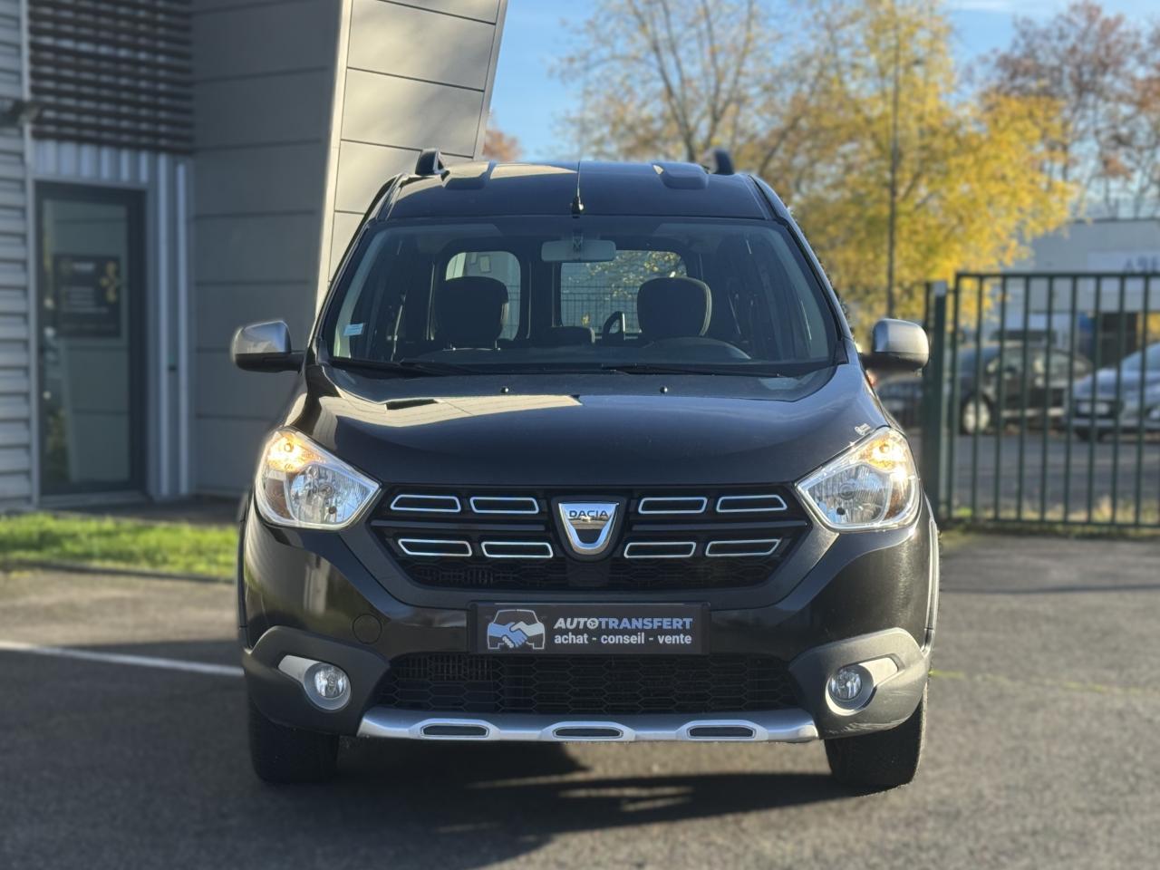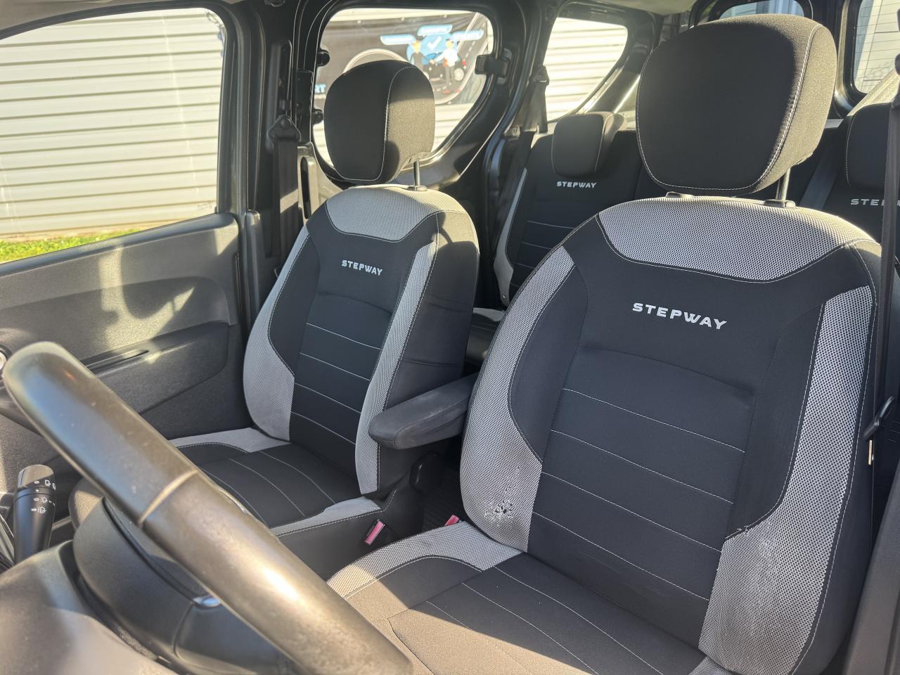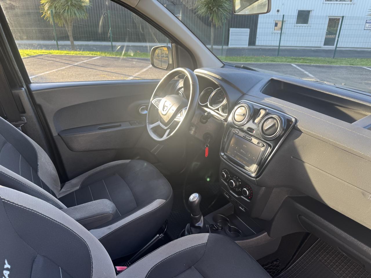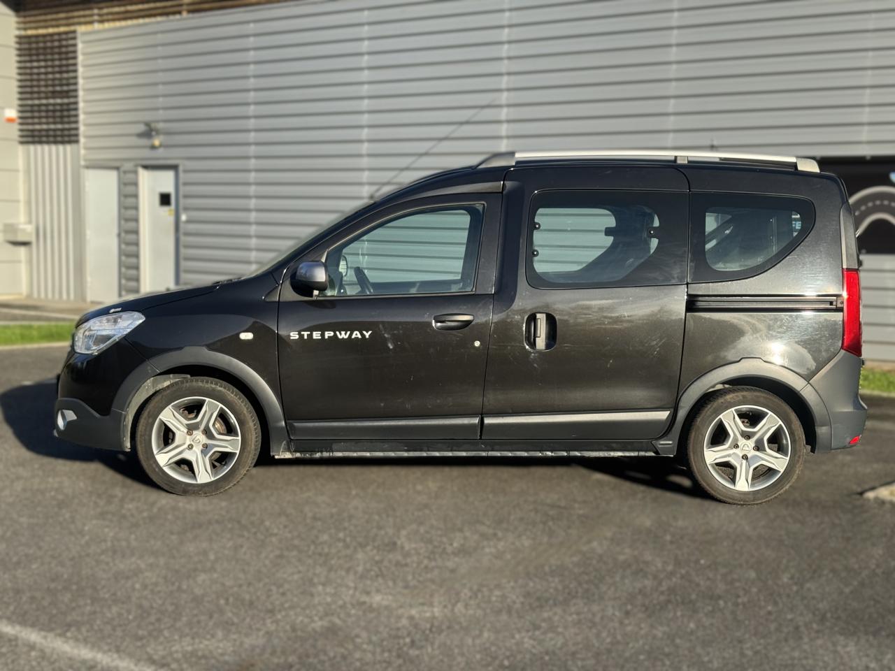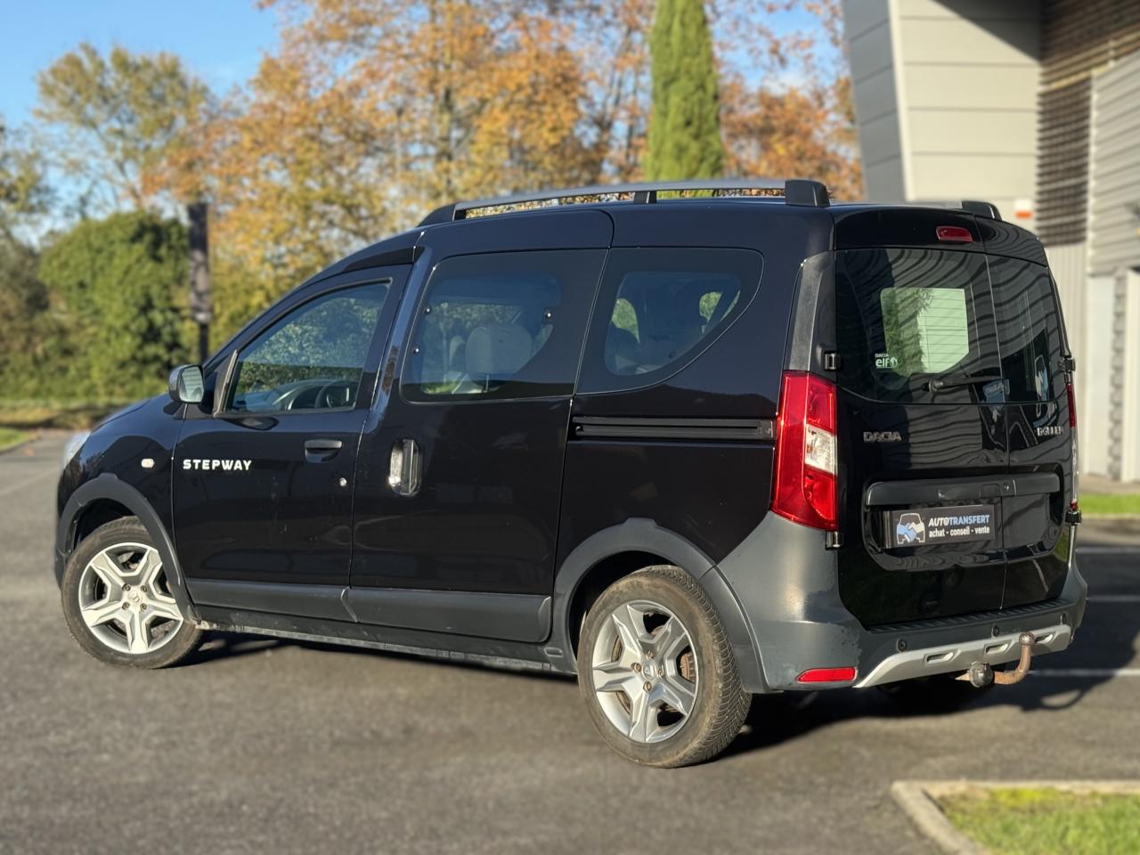 Attelage à rotule monoblocABS avec aide au freinage d'urgenceAccoudoir conducteurAide au démarrage en côteAntidémarrage codéBanquette de 2e rangée 1/3-2/3 dossier rabattable, mise en portefeuilleBarres de toit couleur Dark MetalBoîte à gants ferméeCapucineChauffage avec recyclage d'air et conduits d'air aux places arrièreClimatisation manuelleCondamnation centralisée des portes à distanceDirection assistéeMedia Nav Evolution (écran 7” tactile avec navigation, radio, prises jack et USB, téléphonie Bluetooth® avec commandes au volant, info-trafic TMC)Ordinateur de bordPack ConfortPorte latérale droite coulissante vitréePortes battantes arrière vitréesPrise 12 V à l'arrièrePrise 12V à l'avantProjecteurs antibrouillardRadar de reculRégulateur et limiteur de vitesseSellerie Stepway avec surjet et broderie "Stepway"Système de contrôle de trajectoire (ESC) avec fonction antipatinage (ASR)Système de détection de la pression des pneusSystème de fixation ISOFIX 3 points pour siège enfant aux places latérales arrièreTablettes aviation au dos des sièges avantVolant Dacia 4 branches Soft Feel