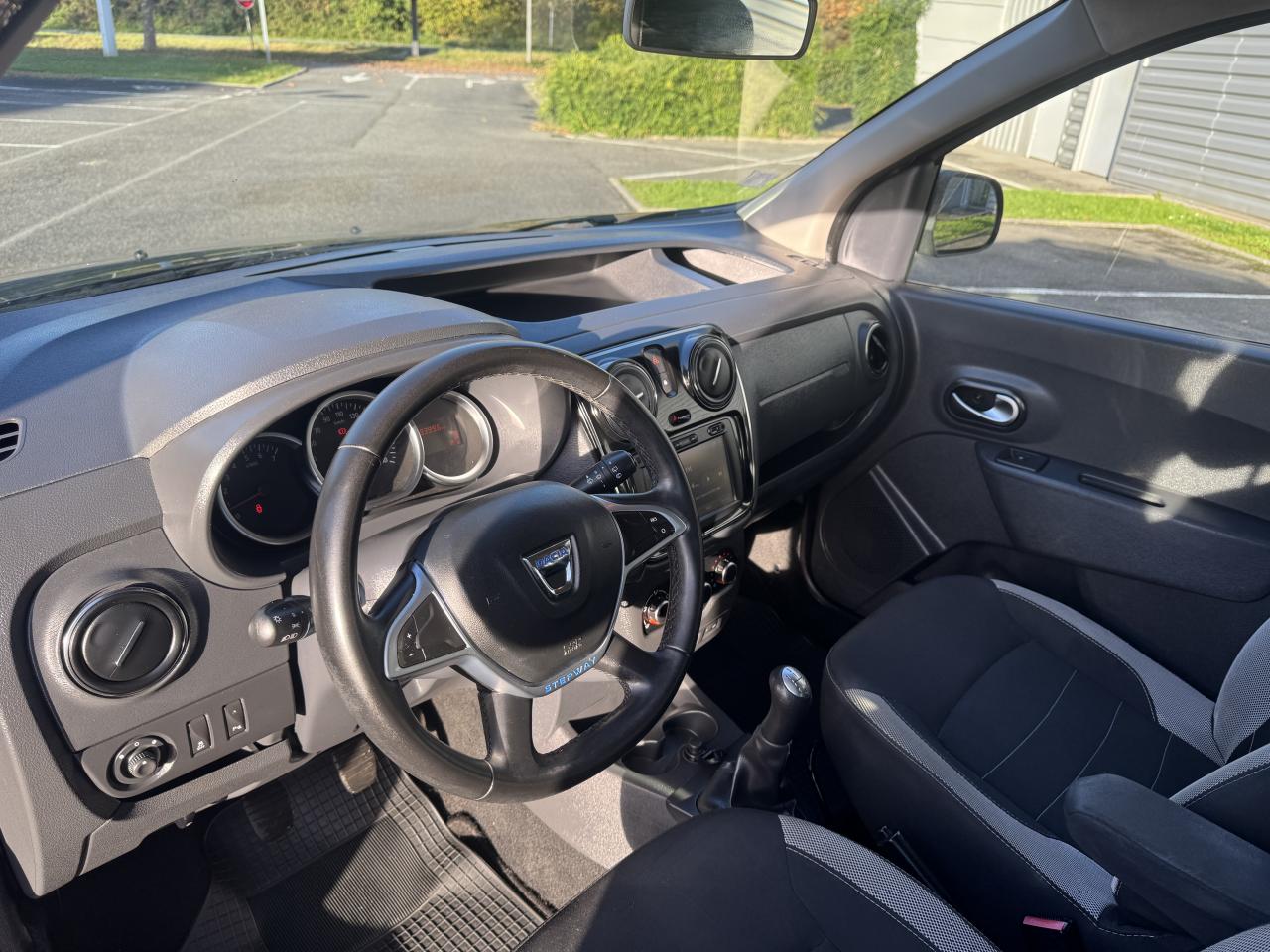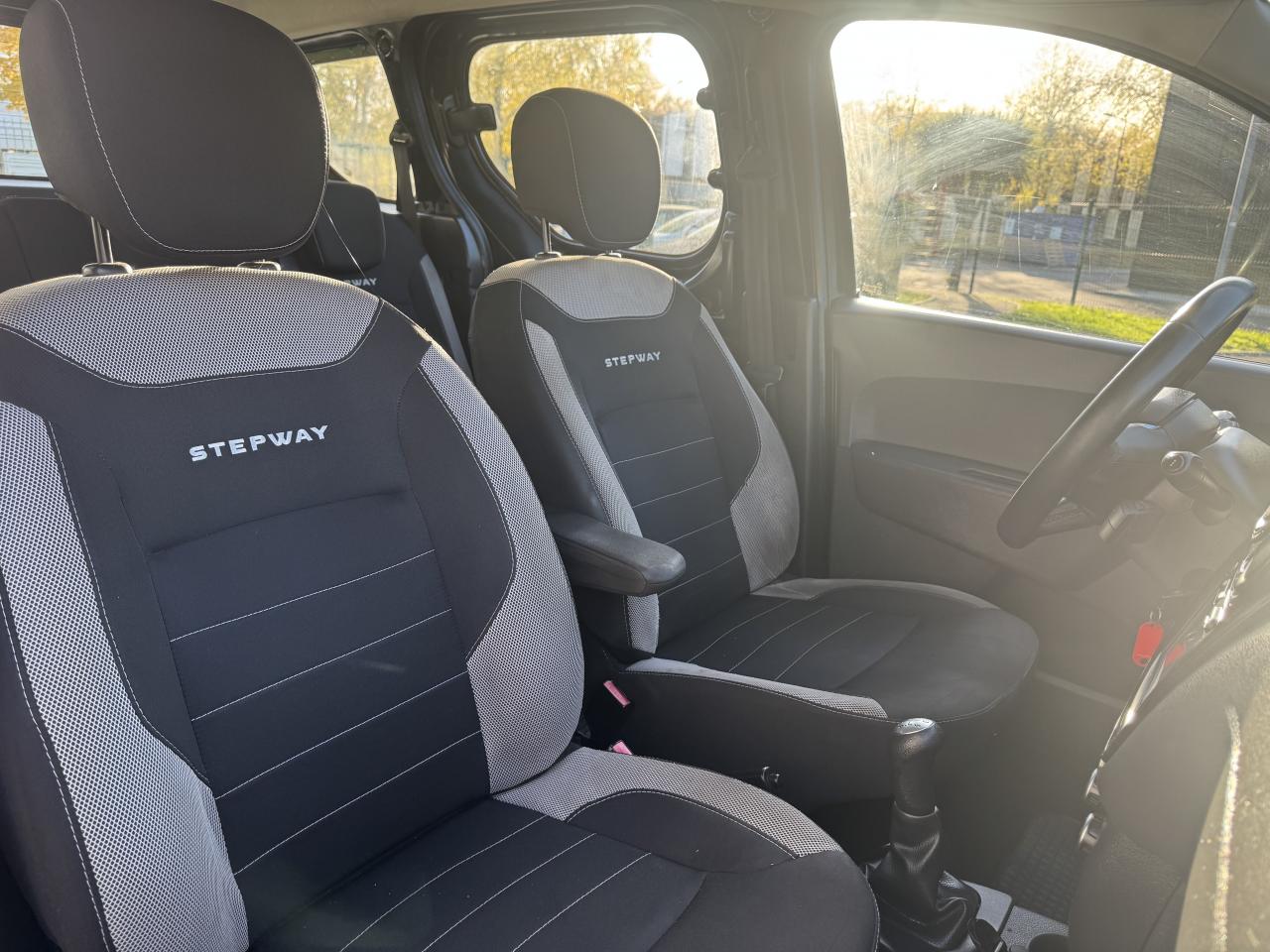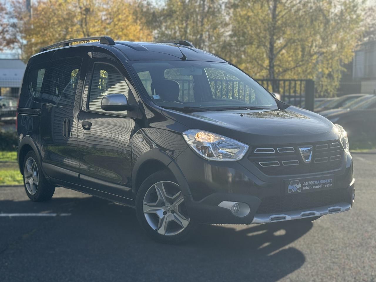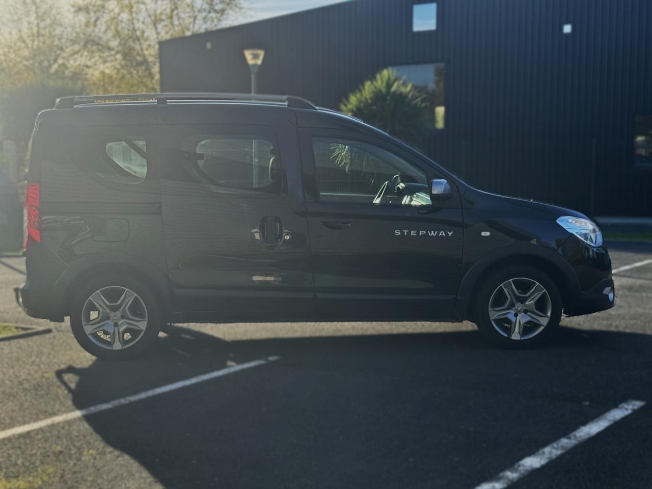 Attelage à rotule monoblocABS avec aide au freinage d'urgenceAccoudoir conducteurAide au démarrage en côteAntidémarrage codéBanquette de 2e rangée 1/3-2/3 dossier rabattable, mise en portefeuilleBarres de toit couleur Dark MetalBoîte à gants ferméeCapucineChauffage avec recyclage d'air et conduits d'air aux places arrièreClimatisation manuelleCondamnation centralisée des portes à distanceDirection assistéeMedia Nav Evolution (écran 7” tactile avec navigation, radio, prises jack et USB, téléphonie Bluetooth® avec commandes au volant, info-trafic TMC)Ordinateur de bordPack ConfortPorte latérale droite coulissante vitréePortes battantes arrière vitréesPrise 12 V à l'arrièrePrise 12V à l'avantProjecteurs antibrouillardRadar de reculRégulateur et limiteur de vitesseSellerie Stepway avec surjet et broderie "Stepway"Système de contrôle de trajectoire (ESC) avec fonction antipatinage (ASR)Système de détection de la pression des pneusSystème de fixation ISOFIX 3 points pour siège enfant aux places latérales arrièreTablettes aviation au dos des sièges avantVolant Dacia 4 branches Soft Feel