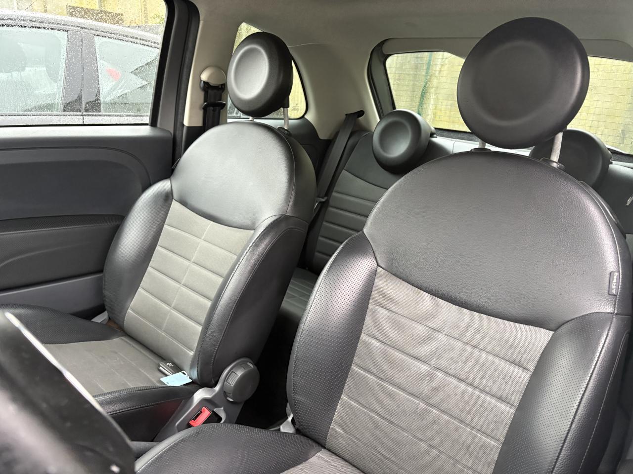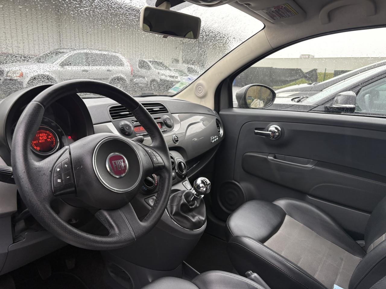 ABS – antiblocage des roues avec répartiteur de freinage EBDAir conditionné avec filtre à pollenAirbags conducteur et passagerAirbags de genouxAirbags de toitAirbags latérauxAppuie-tête à l'avant, réglables en hauteurAssistance au freinage d'urgenceAttaches IsofixAutoradio CD MP3Banquette arrière rabattable 50/50 et appuie-tête arrièreCommandes de l'autoradio au volant (8 fonctions) et volant gainé de cuir (lié au Blue&Me™)Condamnation automatique des ouvrants en roulantCondamnation centralisée à distanceDirection assistée Dualdrive avec fonction"City"Eclairage de coffreJantes en alliage 15” MultispokeKit chromeLogo “500” sur la planche de bordPare-chocs couleur carrosseriePoignée de maintien intérieurePoignées extérieures des portes chroméesRétroviseurs extérieurs électriques couleur carrosserie et indicateur de température extérieureRoue de secours “galette”Système Start/Stop : Système d'extinction/allumage du moteur lors de cours arrêtsVitres avant électriquesVolant réglable en hauteur