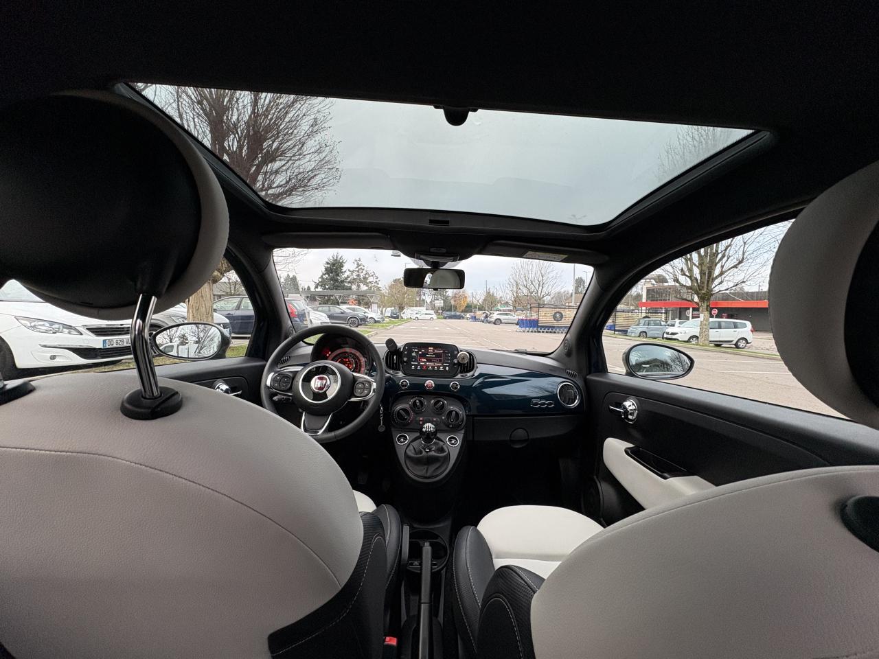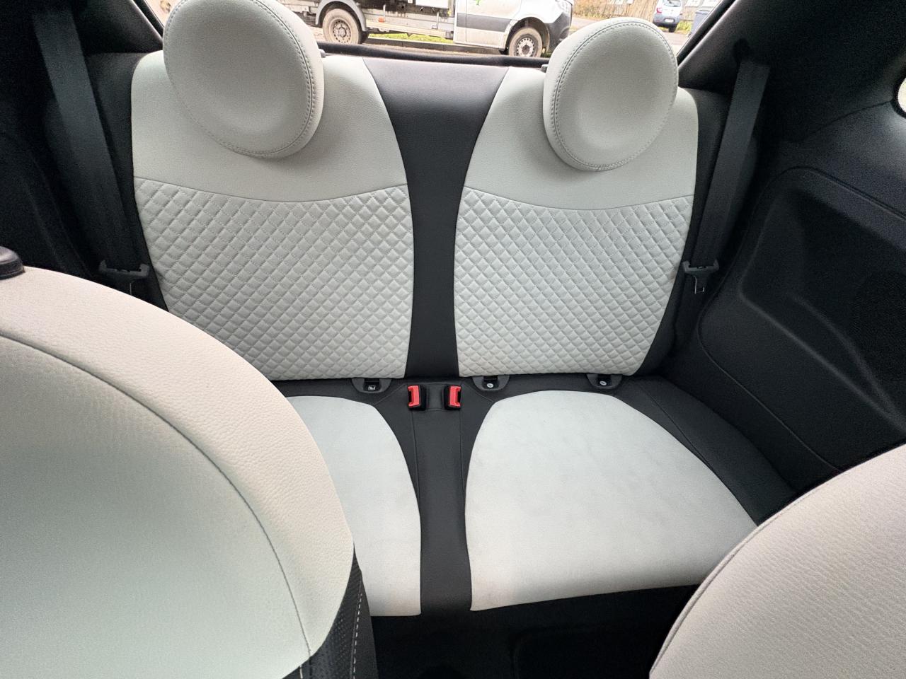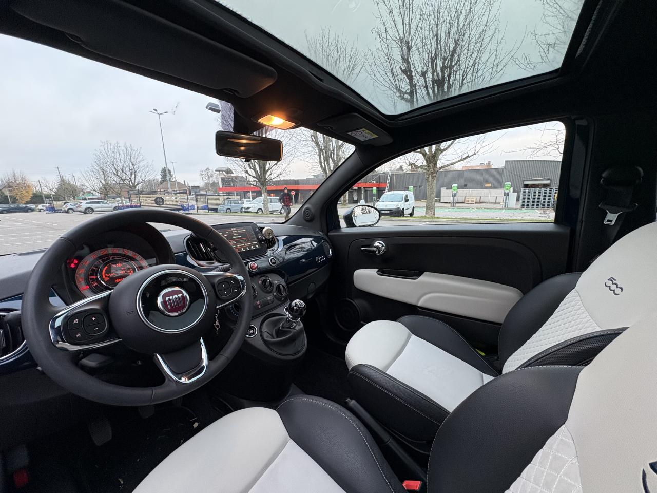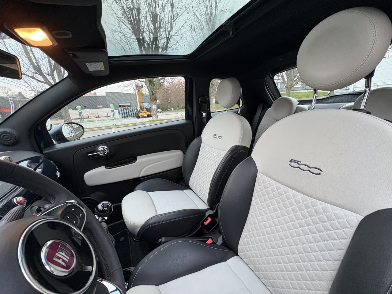 ABS – antiblocage des roues avec répartiteur de freinage EBDAir conditionnéAirbag Fiat de genouxAirbags fiat conducteur et passagerAirbags Fiat de toitAirbags Fiat latéraux avantAppuie-tête à l'avant, réglables en hauteurAssistance au freinage d'urgenceAttaches IsofixBanquette arrière rabattable avec appui-têteCalandre avec insert chroméColoris Pasodoble RedCommandes de l'autoradio au volantCondamnation automatique des ouvrants en roulantCondamnation centralisée à distanceDirection assistée Dualdrive avec fonction"City"Eclairage du coffreESP - contrôle électronique de stabilité avec “Hill Holder"Feux de jour à LEDJantes alliage 15” New LoungeLame décorative arrière chroméeLimiteur de vitessePare-chocs couleur carrosseriePoignées de porte chroméesRégulateur de vitesseRétroviseurs extérieurs couleur carrosserieSellerie tissu matelassé blanc avec parties latérales noires. Logo 500 bordeauxSiège conducteur réglable en hauteurStart/Stop : Système d'extinction/allumage du moteur lors de courts arrêtsSystème Link : intégration Apple CarPlay et compatibilité Android AutoSystème Uconnect 7” HD (Dual Tuner / USB / Bluetooth)Toit vitré panoramique fixe avec pare-soleilVitres avant électriquesVolant réglable en hauteur
