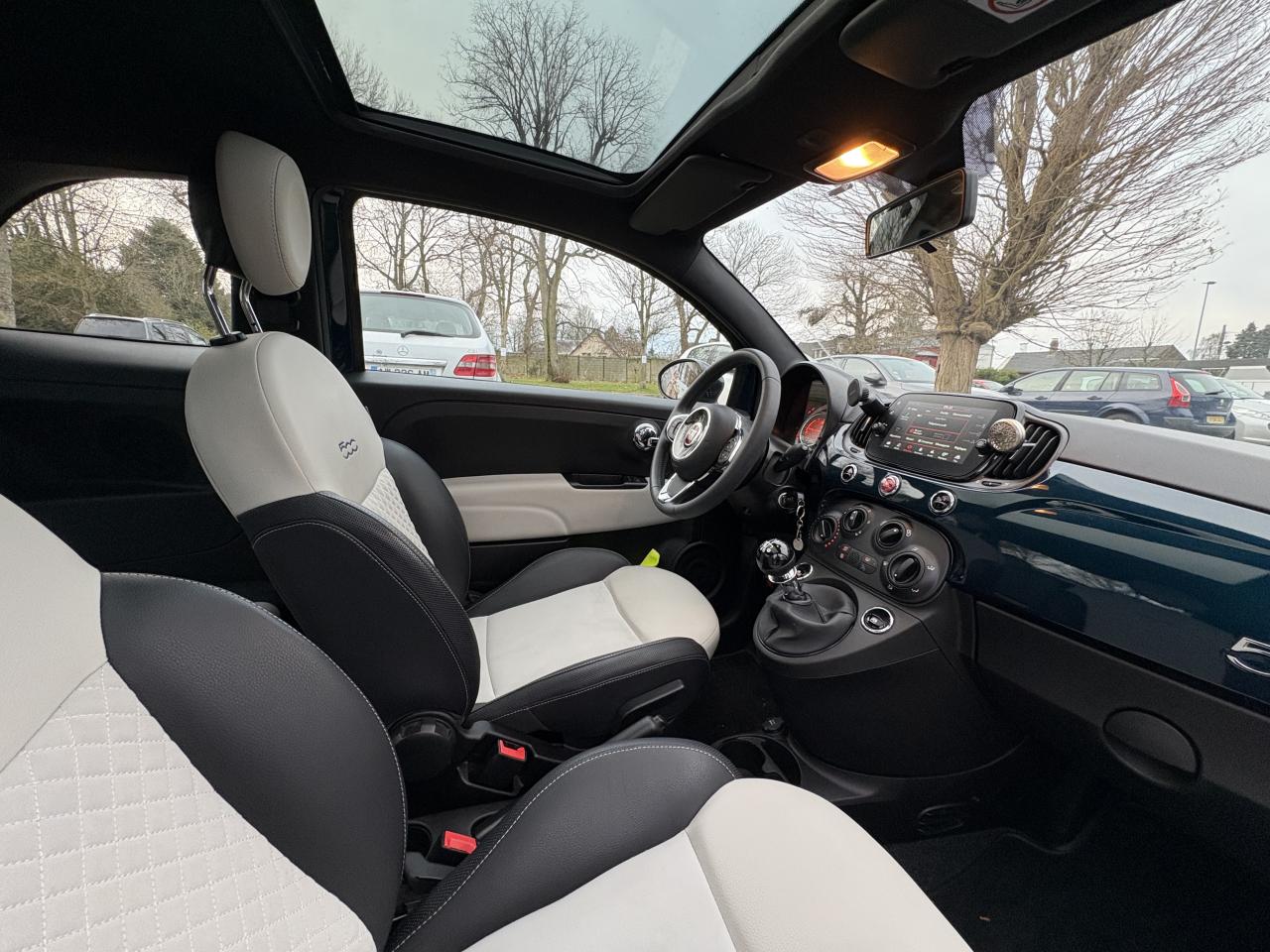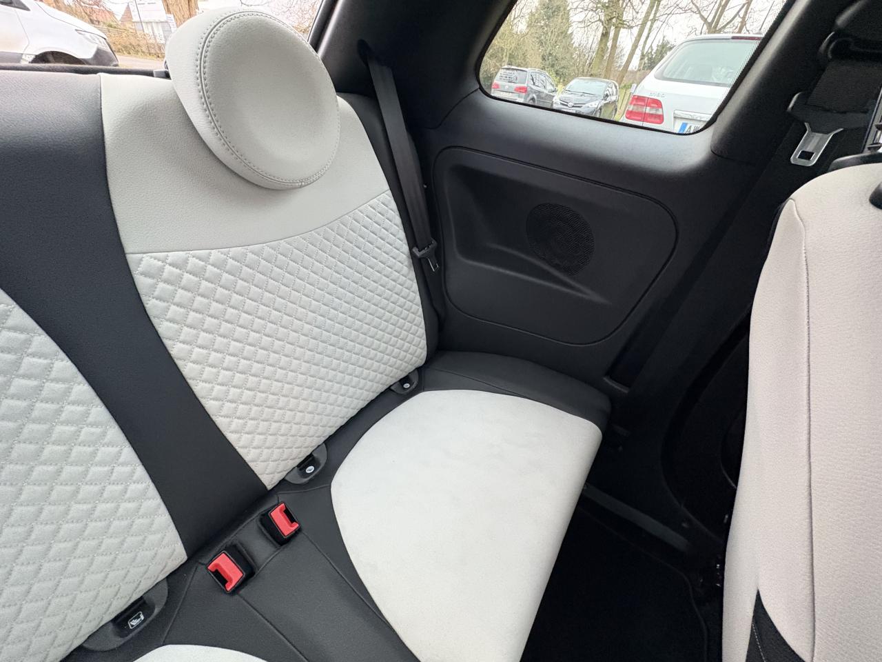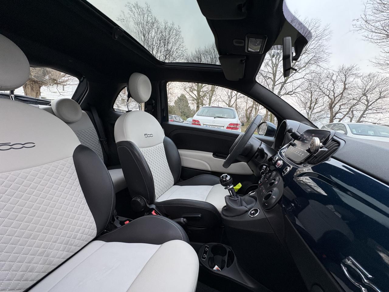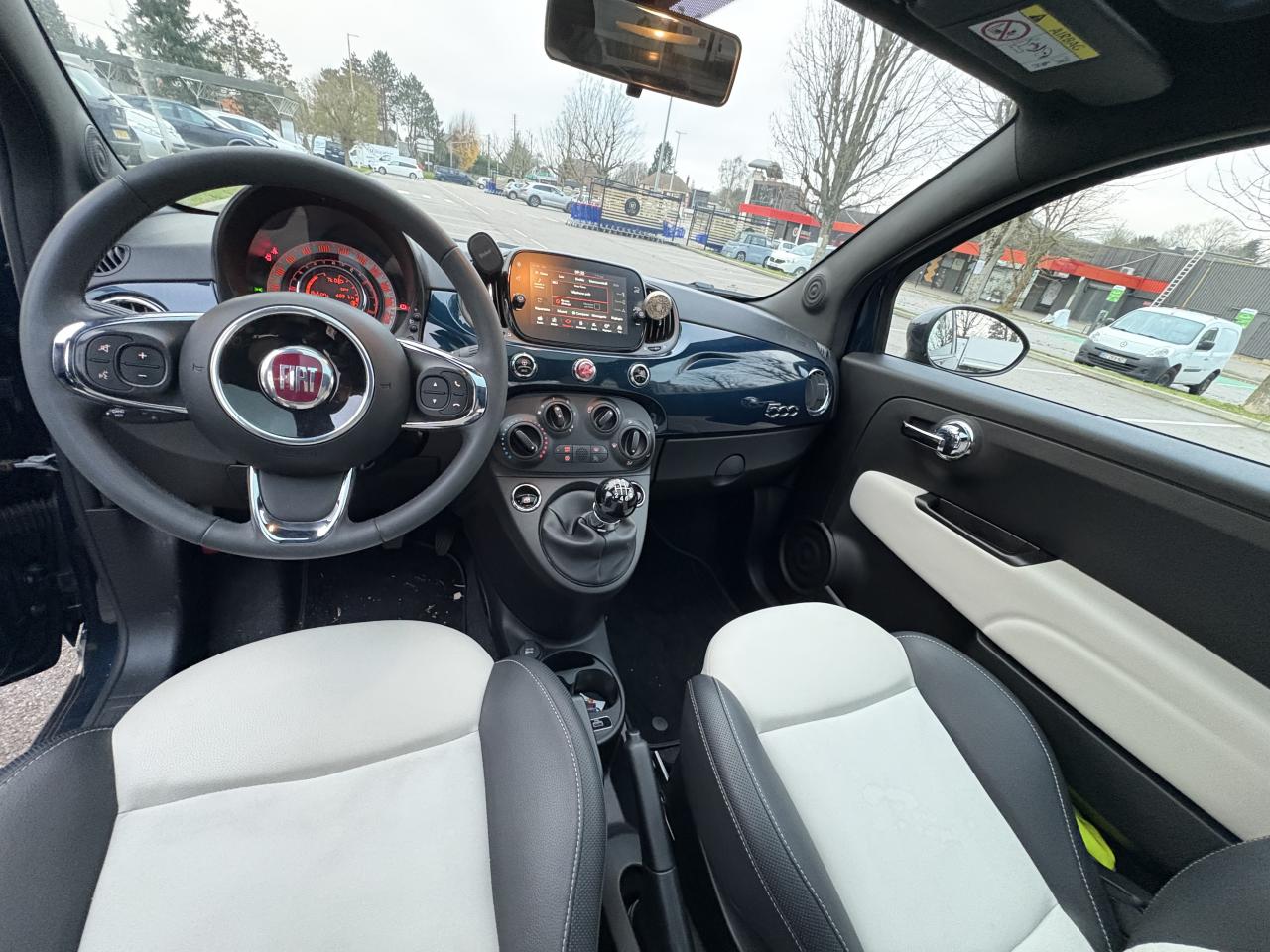ABS – antiblocage des roues avec répartiteur de freinage EBDAir conditionnéAirbag Fiat de genouxAirbags fiat conducteur et passagerAirbags Fiat de toitAirbags Fiat latéraux avantAppuie-tête à l'avant, réglables en hauteurAssistance au freinage d'urgenceAttaches IsofixBanquette arrière rabattable avec appui-têteCalandre avec insert chroméColoris Pasodoble RedCommandes de l'autoradio au volantCondamnation automatique des ouvrants en roulantCondamnation centralisée à distanceDirection assistée Dualdrive avec fonction"City"Eclairage du coffreESP - contrôle électronique de stabilité avec “Hill Holder"Feux de jour à LEDJantes alliage 15” New LoungeLame décorative arrière chroméeLimiteur de vitessePare-chocs couleur carrosseriePoignées de porte chroméesRégulateur de vitesseRétroviseurs extérieurs couleur carrosserieSellerie tissu matelassé blanc avec parties latérales noires. Logo 500 bordeauxSiège conducteur réglable en hauteurStart/Stop : Système d'extinction/allumage du moteur lors de courts arrêtsSystème Link : intégration Apple CarPlay et compatibilité Android AutoSystème Uconnect 7” HD (Dual Tuner / USB / Bluetooth)Toit vitré panoramique fixe avec pare-soleilVitres avant électriquesVolant réglable en hauteur
