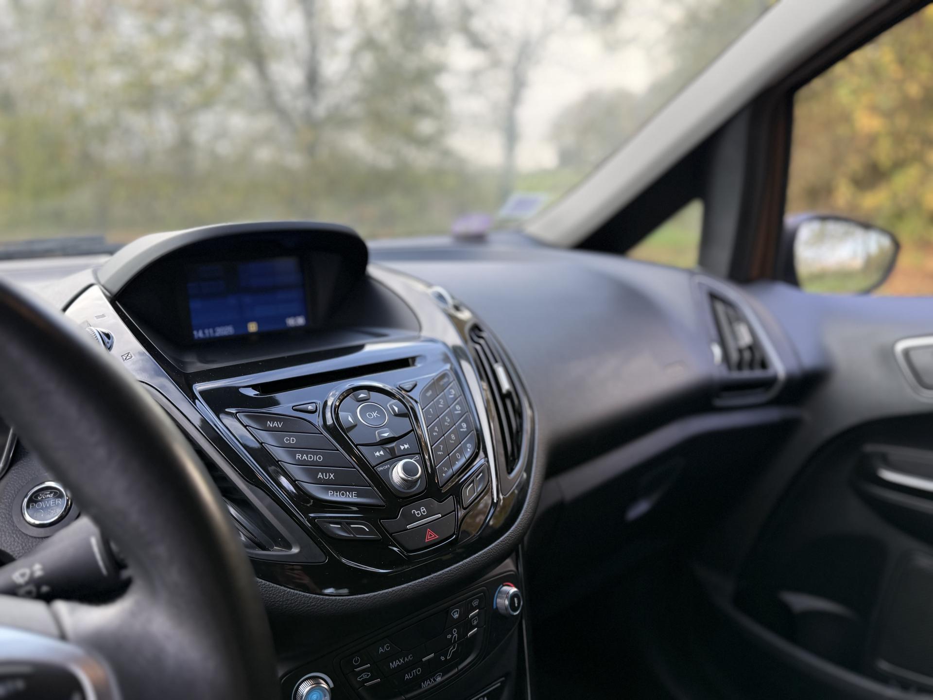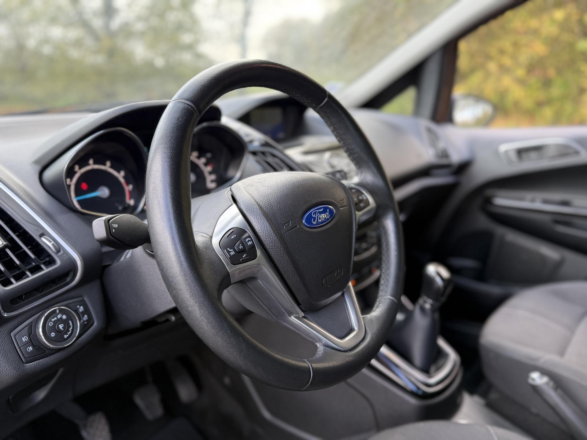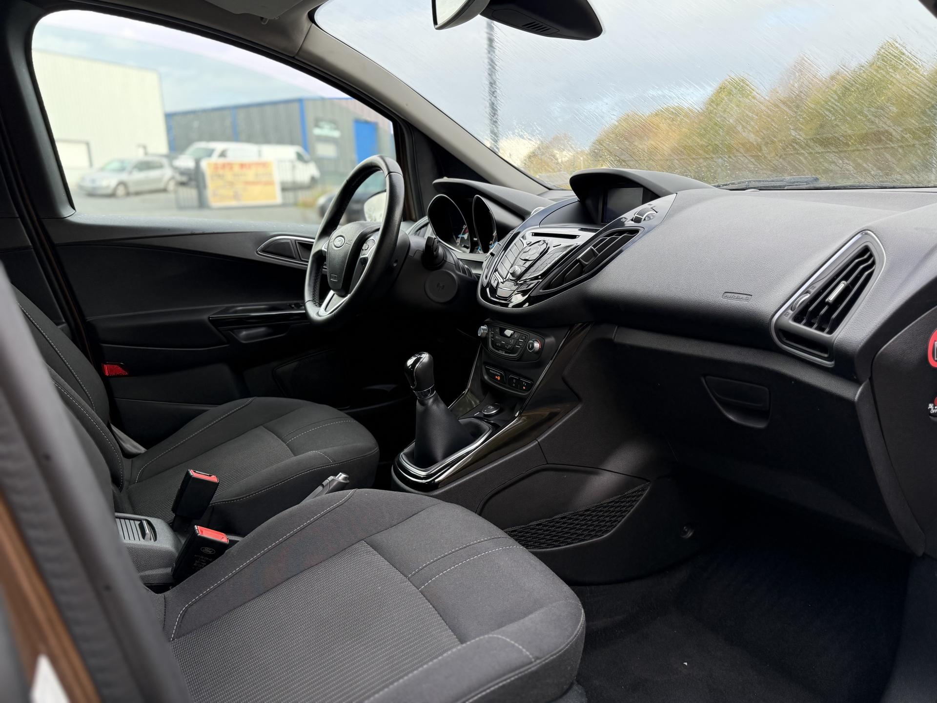 2 Fixations Isofix à l'arrière3 appuie-tête arrièreAccoudoir central arrièreAccoudoir siège conducteurAirbag genoux conducteurAirbags frontaux, latéraux (thorax) et rideauxAlerte de ceinture de sécurité conducteur et passagerAnti-patinageAssistance au freinage d'urgenceAudio Pack 6 : Radio CD/MP3, 6 hauts-parleurs, USB, prise auxiliaire, commandes au volant, écran matriciel 3", Ford SYNC incluant le kit Bluetooth avec commandes vocales et Ford SOS (appel d'urgence)Banquette rabattable d'une main - 60/40Barre stabilisatrice avantBoîte à gants éclairéeBoucliers couleur carrosserieChauffage auxiliaireClimatisation automatiqueColonne de direction réglable en hauteur / profondeurConsole centrale Premium avec espace de rangement, porte-bouteilles, rangement CD et prise 12V à l'avantContrôle vectoriel de coupleCrochets d'arrimageDéclenchement automatique des feux de détresse lors d'un freinage d'urgenceDésactivation de l'airbag du passager avantDirection assistée électrique (EPAS)Dossier de siège passager rabattableEclairage à extinction progressiveEclairage d'ambiance (plafond)Eclairage d'ambiance (plancher)Eclairage de coffreEclairage de courtoisie avant et arrièreEcoMode (système d'aide à la conduite économique)Entourage des poignées de portes intérieures façon chromeESP + HLA (aide au démarrage en côte)Essuie-glaces avant automatique avec détecteur de pluie et allumage automatique des feuxExtinction différée des pharesFermeture globale des 4 vitres électriques avec la télécommandeFord Easy Acces: Système d'ouverture avec portes avant conventionnelles, porte arrière coulissantes et montant central intégré aux portesGarnissage tissu Ebony noirGrille de calandre Noir Piano avec entourage chroméJantes alliage 16" 10 branchesKit de réparation pneumatiqueLampes de lecture à l'avantLèche-vitres chroméMy KeyOrdinateur de bordPeinture non métalliséePlancher du coffre réglable en hauteurPoignée de hayon couleur carrosseriePoignées de portes couleur carrosseriePommeau de levier de vitesses en cuirPorte-lunettesPrise 12 V à l'arrièreProjecteurs antibrouillardProjecteurs halogènes avec feux de jour à LEDRégulateur de vitesseRépétiteurs de clignotantsRétroviseur de surveillance des enfantsRétroviseur intérieur électrochromeRétroviseurs extérieurs réglables électriquement couleur carrosserieSangles de fixation pour trousse de premier secours et espace de rangement pour triangle de signalisationSiège conducteur avec poche aumônièreSiège conducteur avec réglage lombaireSiège conducteur réglable en hauteur manuellementSiège passager avant à réglage manuelSystème de protection intelligent (IPS)Système de surveillance de pression des pneusSystème intelligent de charge par régénérationSystème Stop & StartTapis de sol arrièreTapis de sol avantTrappe EasyFuel sans bouchon avec détrompeur de carburantVerrouillage centralisé (2 clés rétractables)Vitres avant et arrière électriquesVolant 3 branches multifonctionsVolant gainé cuir