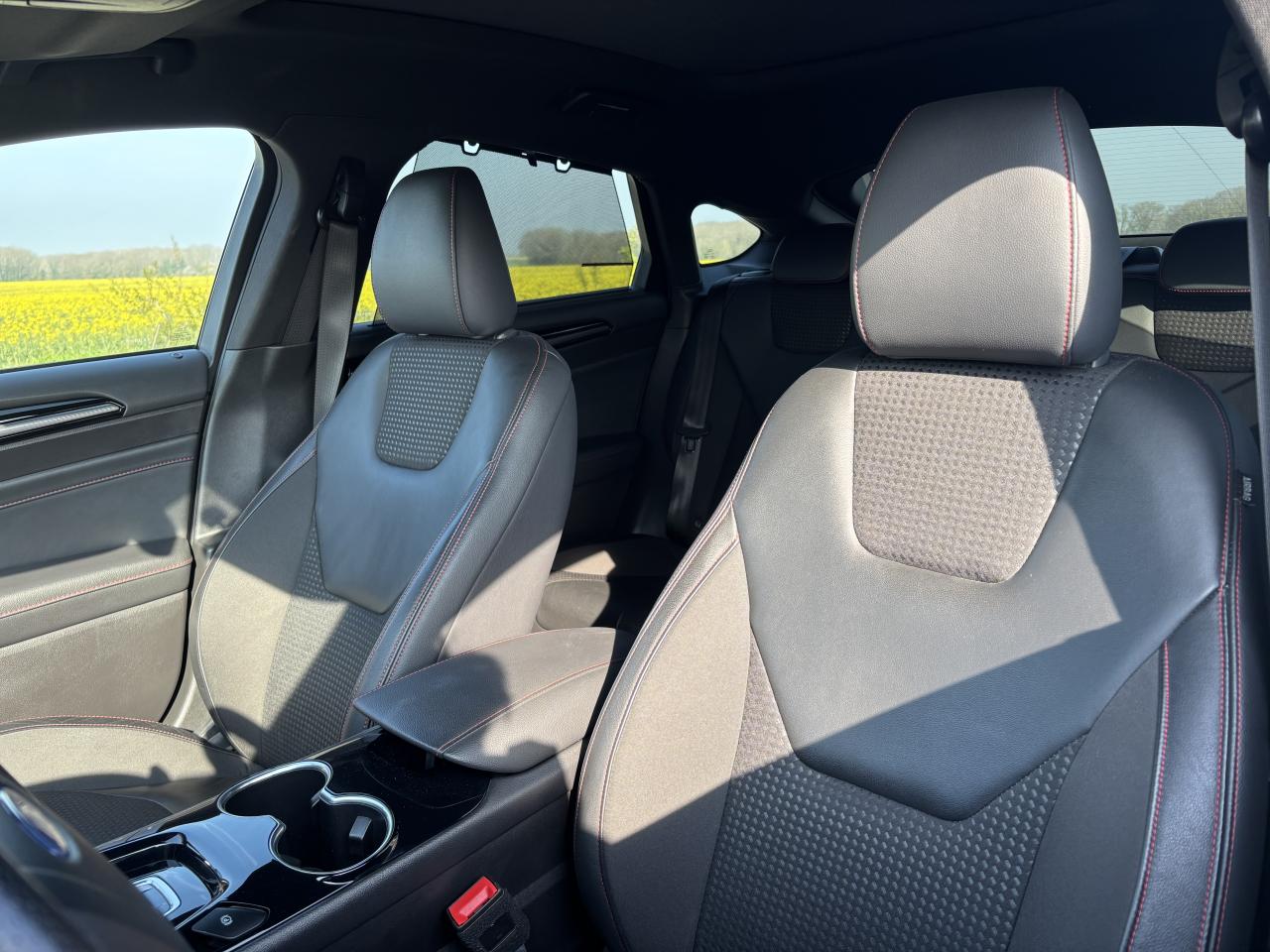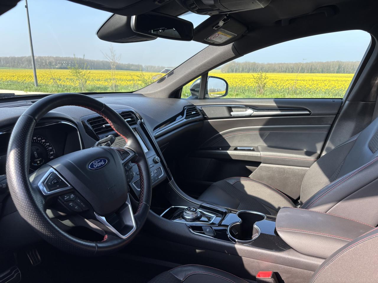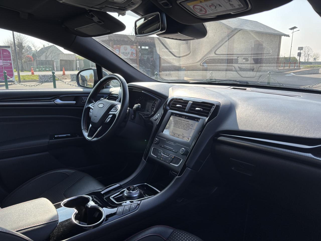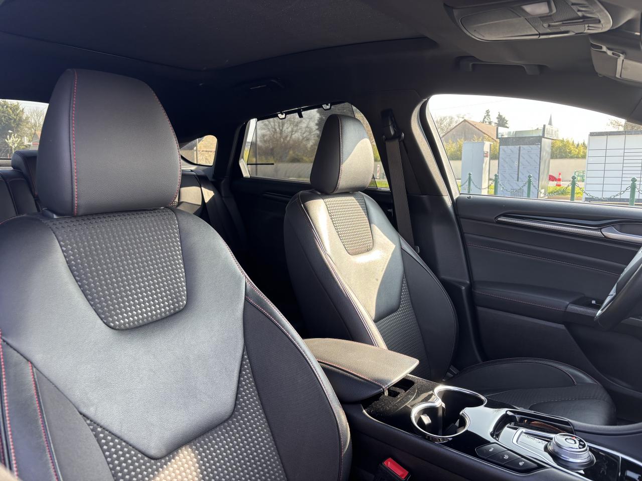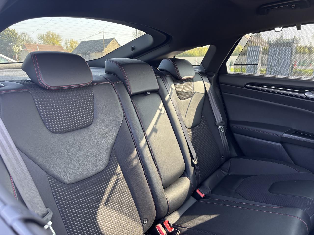 Active Park Assist : système de stationnement semi-automatiqueAide au maintien dans la voie avec avertisseur de franchissement de ligne et correction de trajectoireAide au stationnement avant/arrièreAllumage automatique des projecteursAssistance au Freinage d'Urgence avec allumage automatique des feux de détresseBLIS : Surveillance des angles morts et rétroviseur extérieur photosensible côté conducteurCaméra de reculClimatisation automatique bi-zoneE-Shifter - Sélecteur de vitesse rotatifEntourage des vitres noirFeux de jour à LEDFeux de route intelligents (passage feux de croisement/route automatique)Frein de parking électriqueHayon de coffre à ouverture et fermeture électriquesKeyfree System - Système d'entrée et de démarrage mains libresKit de carrosserie ST-LineLimiteur de vitesse intelligentPare-brise chauffantPédalier sport en aluminiumProjecteurs antibrouillardRégulateur de vitesse adaptatif avec fonction Stop & GoSièges avant chauffantsSuspension sportVolant avec cuir perforé et surpiqûres rouges