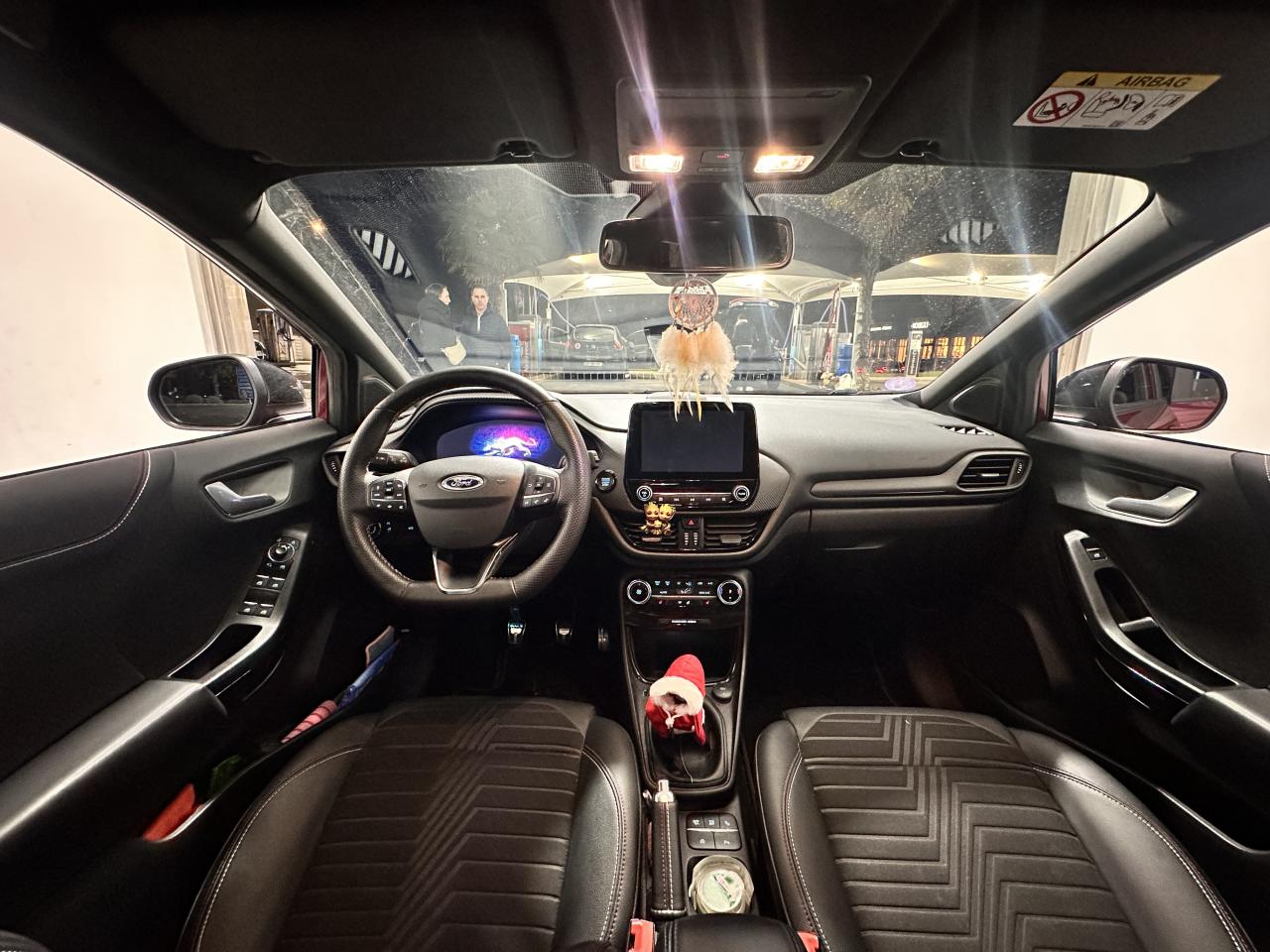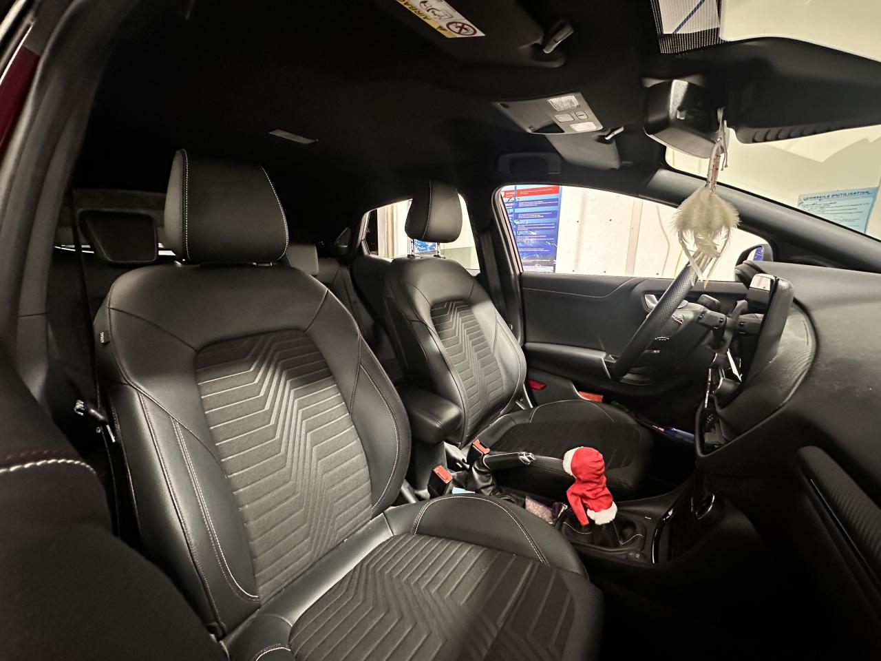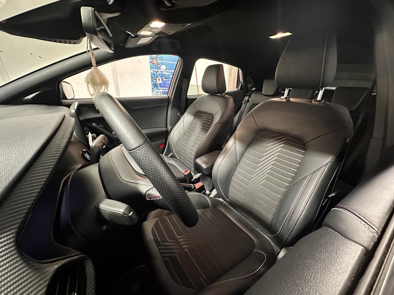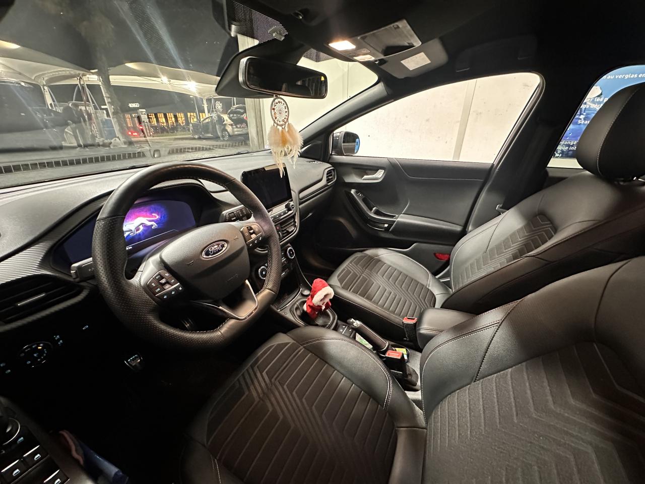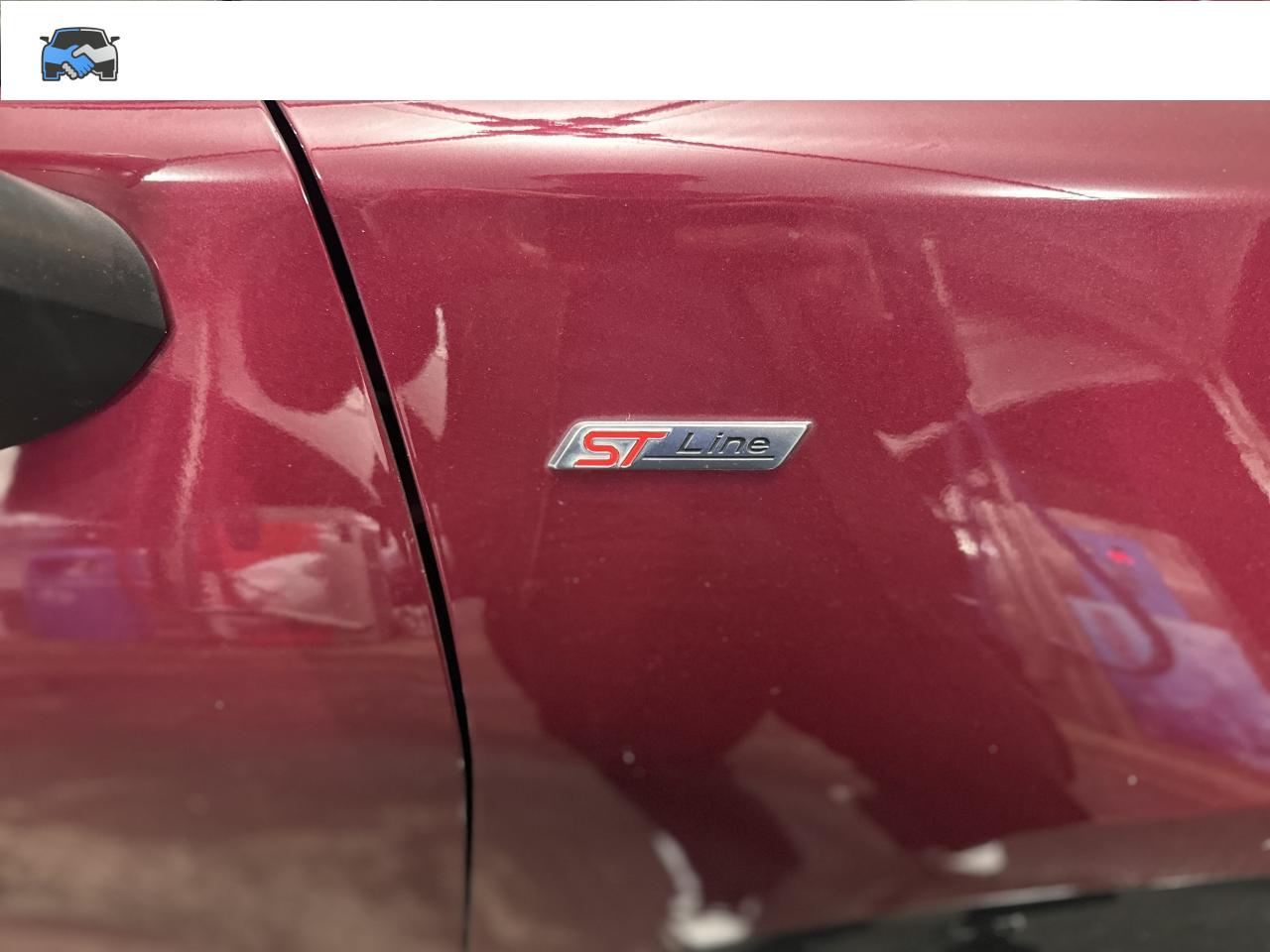 5 Modes de conduite sélectionnables (normal, eco, sport, faible adhérence, trail)Aide au démarrage en côteAide au maintien dans la voie avec détection des bas-côtésAide au stationnement arrièreAllumage automatique des projecteursAvertisseur de freinage d'urgenceBadges ST-LineCaméra de reculDirection assistée électriqueEclairage d'ambiance intérieurFeux arrière à LEDFeux de jour à LEDFeux de route intelligents (passage feux de croisement/route automatique)Frein à disques à l'avantHayon électrique mains libres avec KeyFree et bouton Ford PowerJantes alliage 18" finition Black MattKit de réparation pneumatiqueLimiteur de vitesse intelligentPack HiverPlaques de seuil de portes avant éclairéesSiège conducteur réglable en hauteur avec soutien lombairesSiège passager réglable en hauteur avec soutien lombaireSortie d'échappement chroméeSystème de Navigation Europe et points d'intérêt MichelinSystème MyKey (seconde clé programmable)Système Stop & StartTrappe à carburant Ford EasyFuelVitres arrière surteintéesVitres électriques avant et arrière avec descente et remontée à impulsionVolant à méplat 3 branches ST-Line avec surpiqûres rouges Ruby