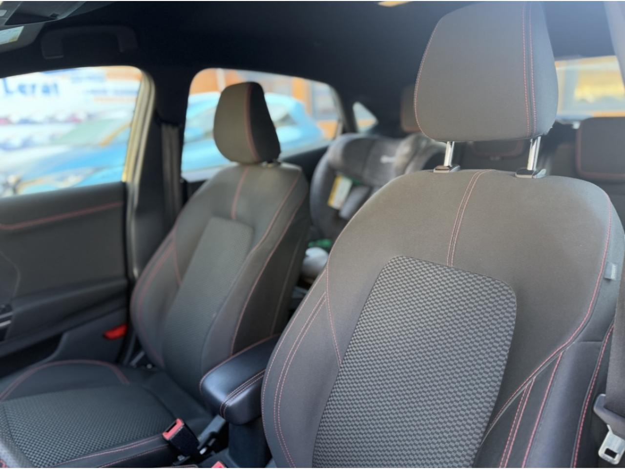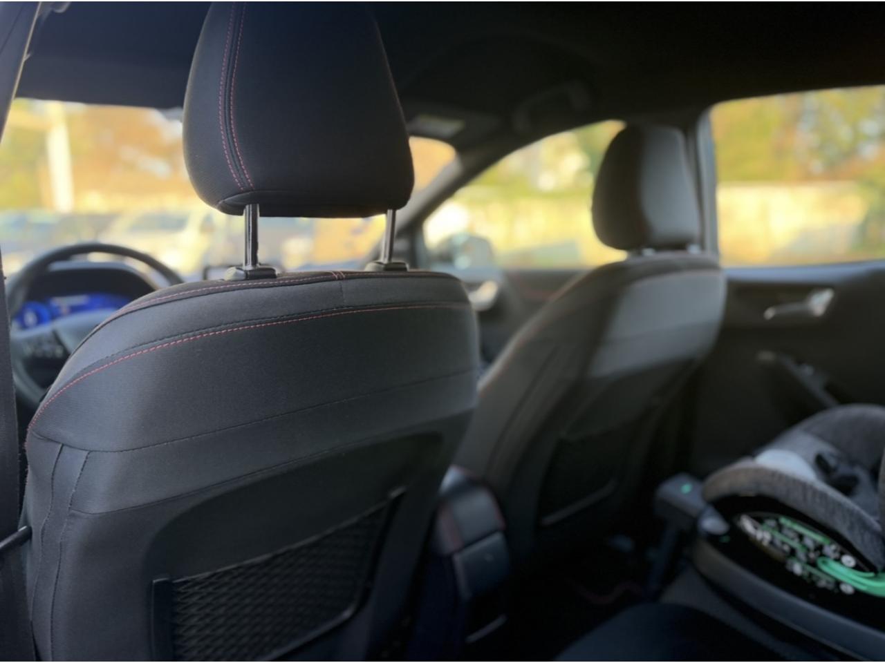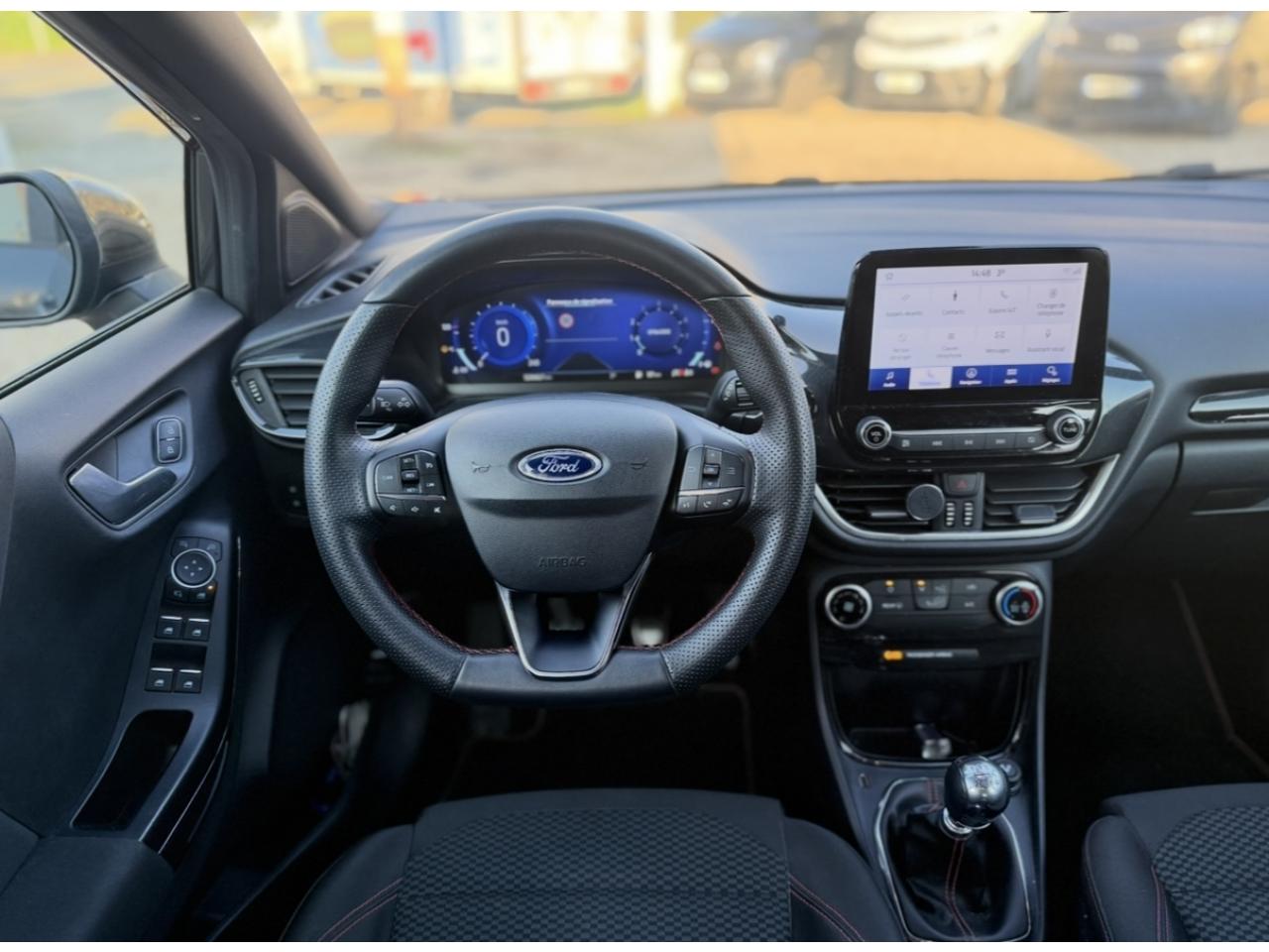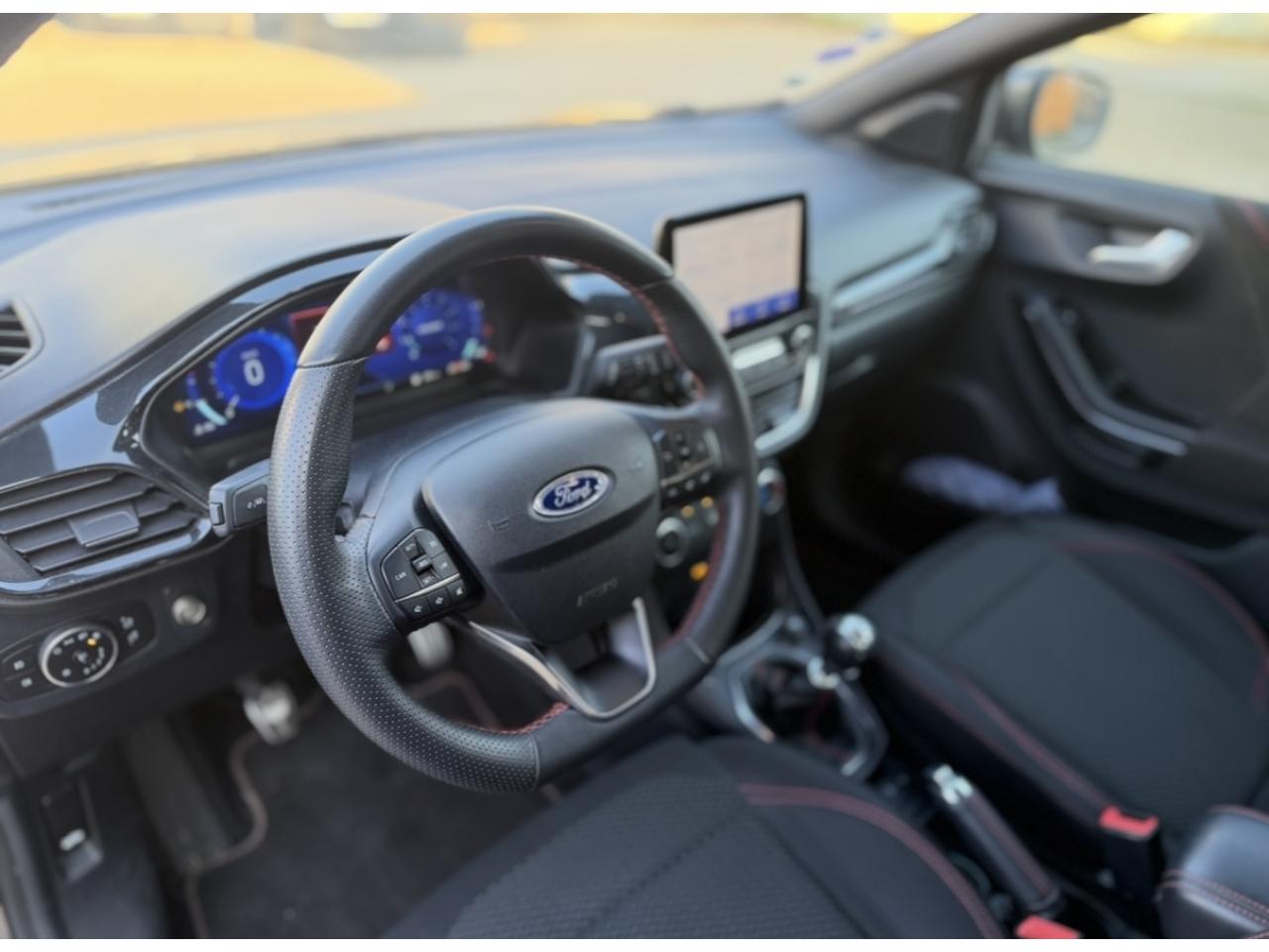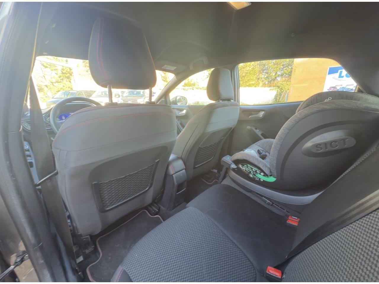 2 Fixations Isofix à l'arrière3 appuie-tête arrière5 ceintures de sécurité 3 points5 Modes de conduite sélectionnables (normal, eco, sport, faible adhérence, trail)Aide au démarrage en côteAide au maintien dans la voie avec détection des bas-côtésAide au stationnement arrièreAirbags frontaux, latéraux (thorax) et rideauxAlerte d'oubli de ceintures avant/arrièreAlerte de franchissement Involontaire de ligneAllumage automatique des projecteursAntipatinageAssistance au freinage d'urgenceBadges ST-LineBanquette arrière rabattable 40/60Bas de caisse couleur carrosserieBecquet arrière couleur carrosserieBouton de démarrage "Ford Power"Climatisation manuelleCombiné d'instrumentation numérique 12,3" avec EcomodeCombiné d'instrumentation TFT couleur 4,2" avec EcomodeConsole centrale avant avec deux porte-gobelets rétroéclairésConsole centrale avec accoudoir et rangementsContour des vitres latérales en noir finition brillanteCorrecteur électronique de trajectoire ESPDésactivation de l'airbag du passager avantDirection assistée électriqueEclairage d'ambiance intérieurFeux arrière à LEDFeux de jour à LEDFeux de route intelligents (passage feux de croisement/route automatique)FordPass Connect avec modem embarqué et fonction eCallFrein à disques à l'avantGrille de calandre ST-LineJantes alliage 17" 5x2 branches finition Black MachinedKit carrosserie ST-LineKit de réparation pneumatiqueLevier de frein à main gainé de SensicoLevier de vitesses gainé de SensicoLimiteur de vitesse intelligentPalettes au volantPare-chocs couleur carrosseriePeinture non-métallisée Bleu AbyssePhares avant antibrouillard avec fonction d'éclairage d'anglePlancher de coffre ajustablePrise 12 V sur console centrale avantRégulateur de vitesseRétroviseurs extérieurs électriques couleur carrosserie, dégivrant et rabattables avec rappels de clignotantsSellerie tissu noir CourtSiège conducteur réglable en hauteur avec soutien lombairesSortie d'échappement chroméeSuspensions sportSystème audio Ford SYNC 3 avec écran tactile 8", commandes vocales, 2 ports USB, alerte contresens, compatible AppLink, Apple CarPlay et Android auto, 6 hauts-parleursSystème de freinage antiblocage (ABS)Système de Navigation Europe et points d'intérêt MichelinSystème de prévention de collision avec freinage post-collision et détection piétonsSystème de surveillance de pression des pneusSystème MyKey (seconde clé programmable)Tapis de sol avant avec surpiquresTrappe à carburant Ford EasyFuelVitres électriques avant et arrière avec descente et remontée à impulsionVolant à méplat 3 branches ST-Line avec surpiqûres rouges