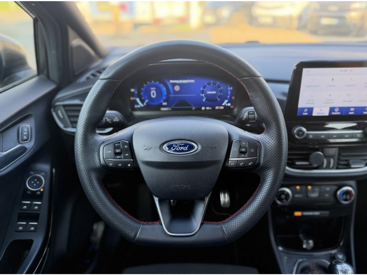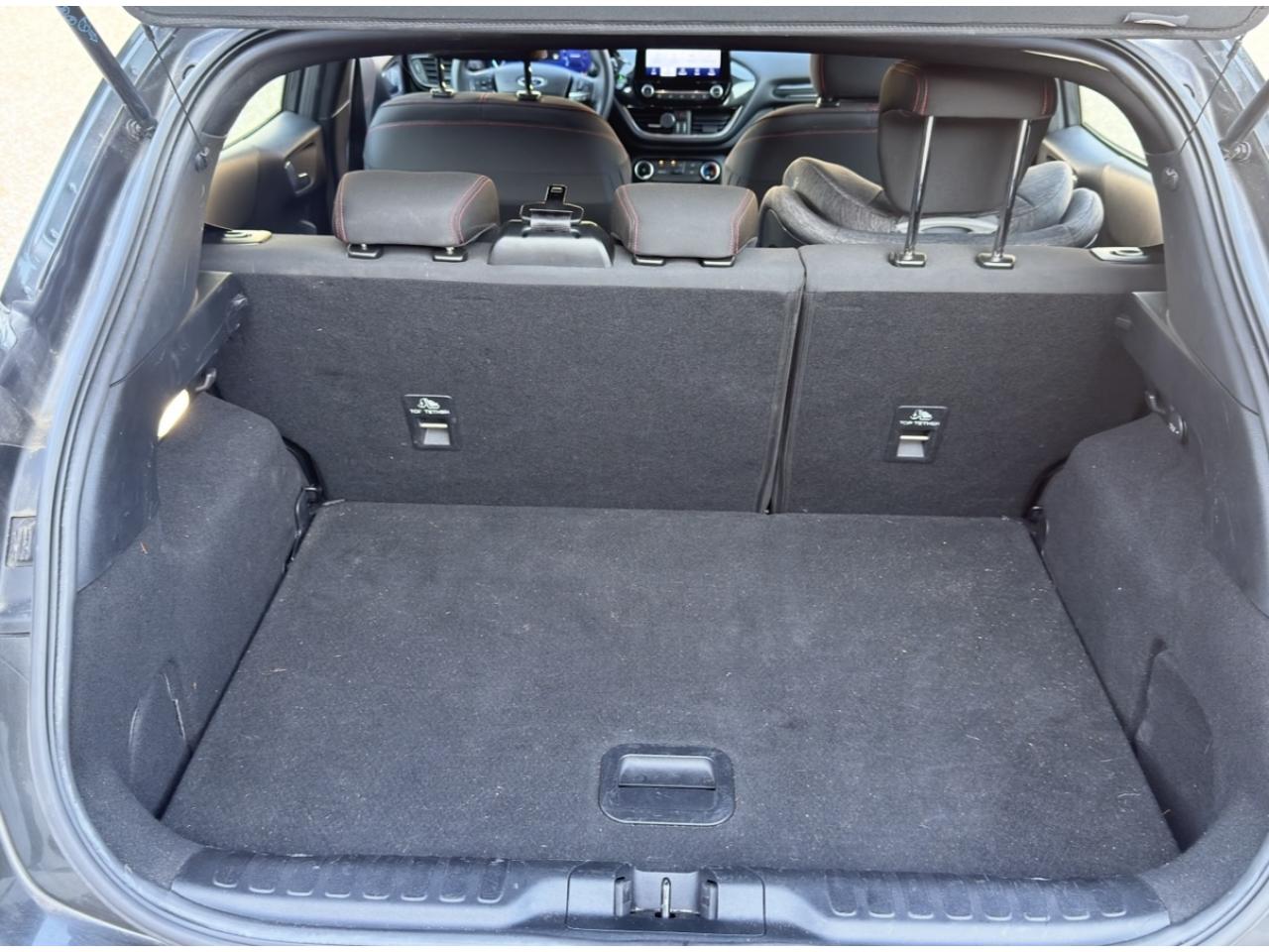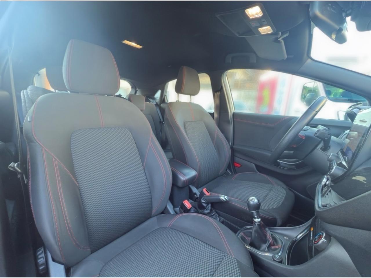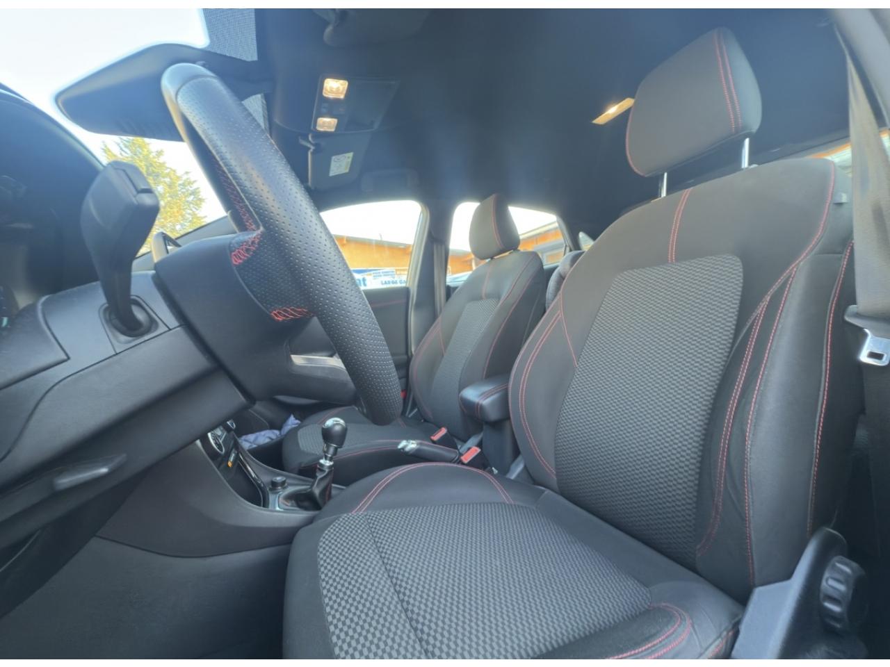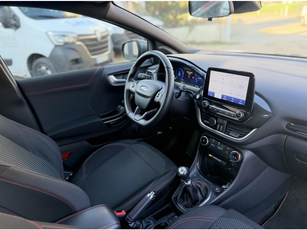 2 Fixations Isofix à l'arrière3 appuie-tête arrière5 ceintures de sécurité 3 points5 Modes de conduite sélectionnables (normal, eco, sport, faible adhérence, trail)Aide au démarrage en côteAide au maintien dans la voie avec détection des bas-côtésAide au stationnement arrièreAirbags frontaux, latéraux (thorax) et rideauxAlerte d'oubli de ceintures avant/arrièreAlerte de franchissement Involontaire de ligneAllumage automatique des projecteursAntipatinageAssistance au freinage d'urgenceBadges ST-LineBanquette arrière rabattable 40/60Bas de caisse couleur carrosserieBecquet arrière couleur carrosserieBouton de démarrage "Ford Power"Climatisation manuelleCombiné d'instrumentation numérique 12,3" avec EcomodeCombiné d'instrumentation TFT couleur 4,2" avec EcomodeConsole centrale avant avec deux porte-gobelets rétroéclairésConsole centrale avec accoudoir et rangementsContour des vitres latérales en noir finition brillanteCorrecteur électronique de trajectoire ESPDésactivation de l'airbag du passager avantDirection assistée électriqueEclairage d'ambiance intérieurFeux arrière à LEDFeux de jour à LEDFeux de route intelligents (passage feux de croisement/route automatique)FordPass Connect avec modem embarqué et fonction eCallFrein à disques à l'avantGrille de calandre ST-LineJantes alliage 17" 5x2 branches finition Black MachinedKit carrosserie ST-LineKit de réparation pneumatiqueLevier de frein à main gainé de SensicoLevier de vitesses gainé de SensicoLimiteur de vitesse intelligentPalettes au volantPare-chocs couleur carrosseriePeinture non-métallisée Bleu AbyssePhares avant antibrouillard avec fonction d'éclairage d'anglePlancher de coffre ajustablePrise 12 V sur console centrale avantRégulateur de vitesseRétroviseurs extérieurs électriques couleur carrosserie, dégivrant et rabattables avec rappels de clignotantsSellerie tissu noir CourtSiège conducteur réglable en hauteur avec soutien lombairesSortie d'échappement chroméeSuspensions sportSystème audio Ford SYNC 3 avec écran tactile 8", commandes vocales, 2 ports USB, alerte contresens, compatible AppLink, Apple CarPlay et Android auto, 6 hauts-parleursSystème de freinage antiblocage (ABS)Système de Navigation Europe et points d'intérêt MichelinSystème de prévention de collision avec freinage post-collision et détection piétonsSystème de surveillance de pression des pneusSystème MyKey (seconde clé programmable)Tapis de sol avant avec surpiquresTrappe à carburant Ford EasyFuelVitres électriques avant et arrière avec descente et remontée à impulsionVolant à méplat 3 branches ST-Line avec surpiqûres rouges