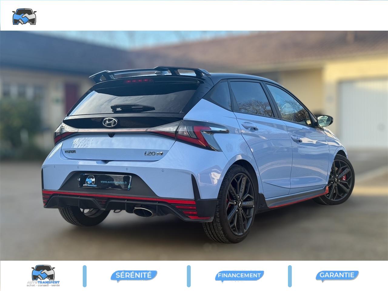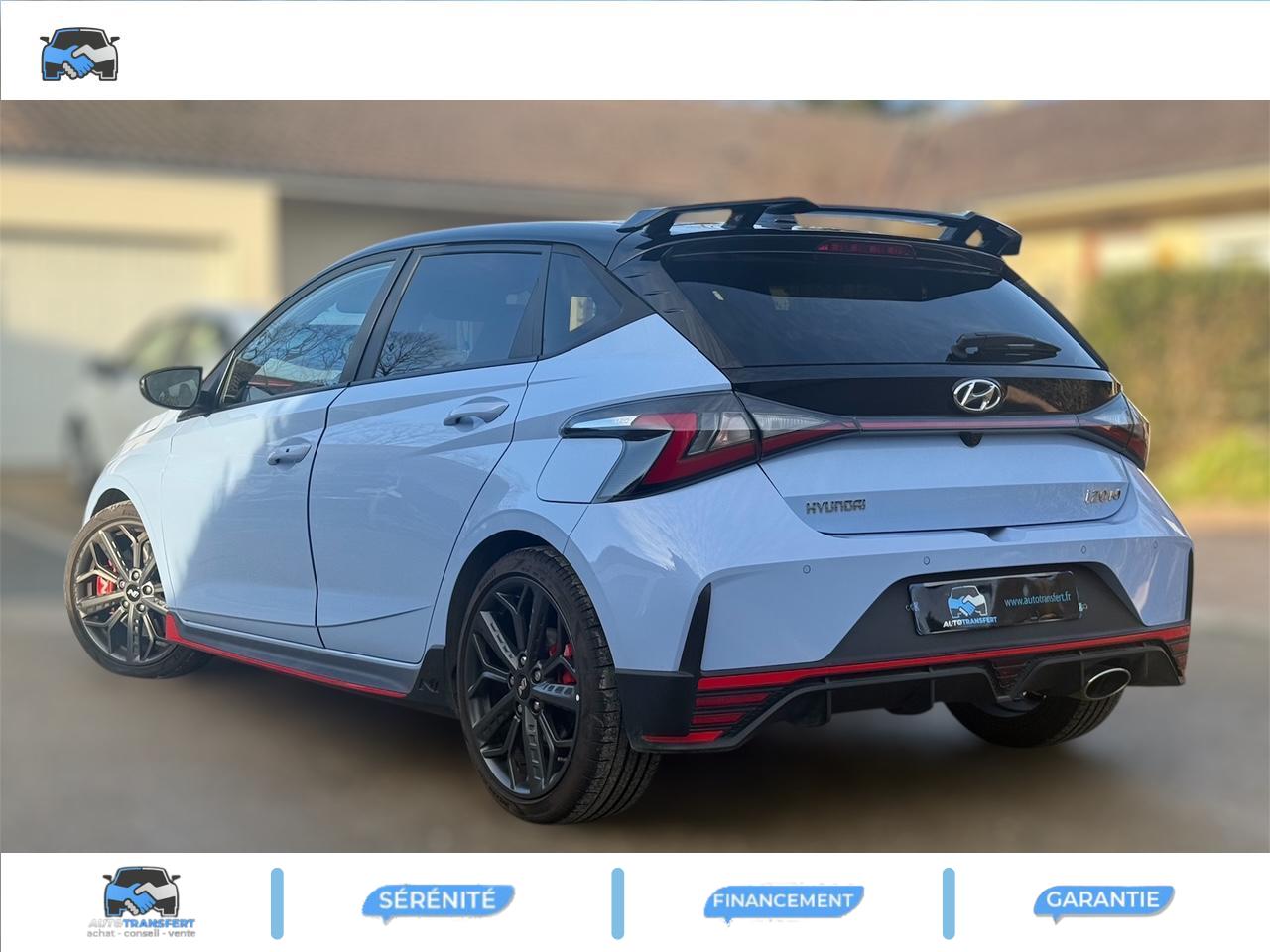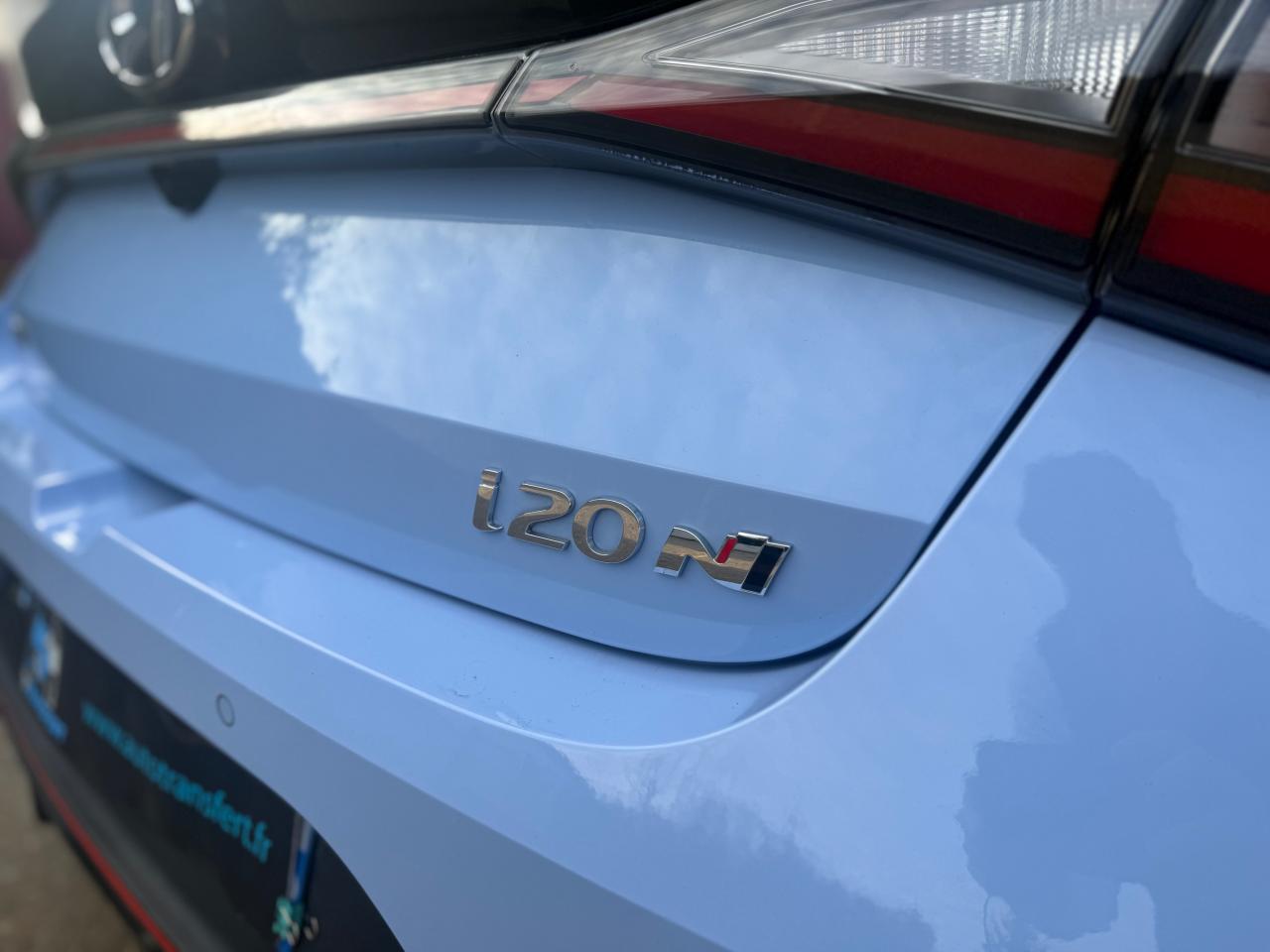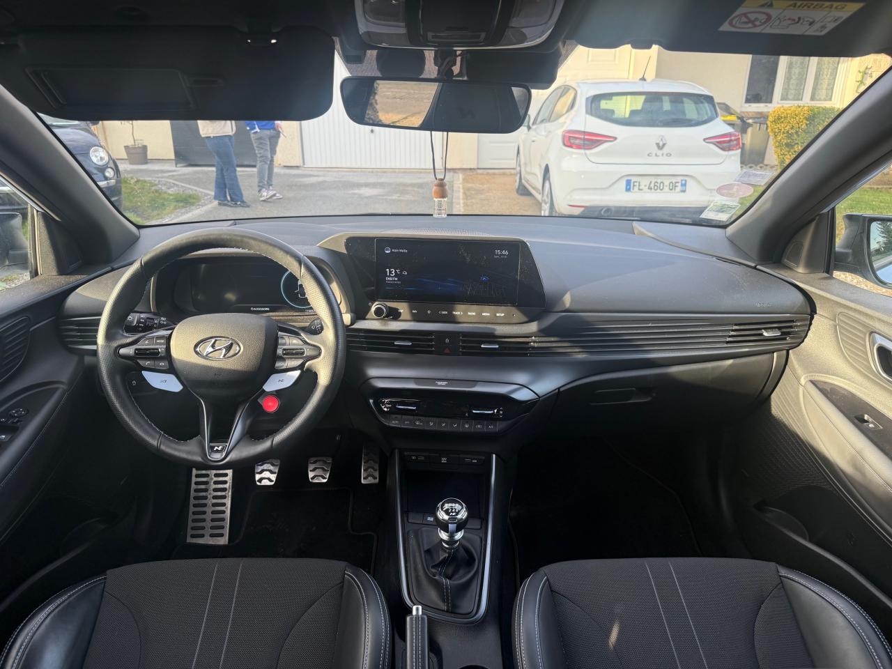 Accès et démarrage mains-libresAccoudoir central avant coulissantAide au démarrage en côteAide au stationnement avant/arrièreAirbags frontaux conducteur et passager (déconnectable côté passager)Airbags latéraux avantAirbags rideaux avant et arrièreAlerte de non-bouclage de la ceinture de sécurité à toutes les placesAlerte de présence de passager arrièreAllumage automatique des projecteursAntidémarrageAppuie-tête avant et arrière règlables en hauteurAssistance au maintien de voieBanquette arrière rabattable 40/60Becquet i20 NCaméra de reculCapteur de pluieCiel de toit noirClimatisation automatique avec désembuage automatiqueCommandes au volantCompatibilité Apple CarPlay et Android AutoCompteurs numériques 10,25''Connexion BluetoothConsole de rangement sous l'accoudoir avantContrôle de la pression des pneumatiquesContrôle de trajectoire électronique (ESP & VSM)Détecteur de fatigue du conducteurDifférentiel mécanique à glissement limité (essieu avant)eCall : appel d'urgence automatique aux services de secours avec géolocalisation du véhiculeEclairage d'accueil et d'accompagnementEclairage d’ambianceEcran couleur tactile 10,25''Feux antibrouillard avant intégréFeux arrière à LEDFeux avant bi-LED avec éclairage additionnel en virageFeux de jour et feux de position à LEDFeux de route intelligentsFreinage d'urgence autonome avec reconnaissance piétons et cyclistesIndicateur de changement de rapportIntérieur noir intégral avec surpiqures et inserts décoratifs "Performance Blue"Jantes alliage 18"Levier de vitesses NLimiteur de vitesse intelligentMiroirs de courtoisie éclairés conducteur et passagerMode de conduite paramétrable "N Custom"Modes de conduiteNavigation Europe avec programme de mise à jour de la cartographiePare-brise acoustiquePédalier façon aluminiumPlancher de coffre modulablePoignées de portes intérieures grain métalPorte-gobelets avantPrises USB de recharge avant et arrièreRéception radio numérique (DAB)Reconnaissance des panneaux de limitation de vitesseRégulateur de vitesseRépétiteurs de clignotants intégrés aux rétroviseurs extérieursRétroviseur intérieur électrochromeRétroviseurs extérieurs électriques et dégivrantsRétroviseurs rabattables électriquementRev Matching (Synchronisation du régime moteur)Sécurité enfants sur portes arrièreSellerie tissu-cuirServices connectés BlueLink avec carte SIMServices connectés Hyundai LiveSiège conducteur réglable en hauteurSièges baquets NSystème antiblocage des roues ABSSystème audio premium Bose, 7 haut-parleurs, amplificateur et subwooferSystème audio RDS compatible MP3 avec connexion USBSystème de Launch Control (Aide aux départs arrêtés)Système de valve d’échappement à ouverture variableSystème Isofix aux places latérales ARToit et rétroviseurs contrastés Phantom BlackVerrouillage automatique des portes en roulantVerrouillage centralisé à distanceVitres arrière et lunette arrière surteintéesVitres électriques (séquentielle côté conducteur)Vitres électriques avant et arrièreVolant cuir perforé NVolant réglable en hauteur et en profondeur