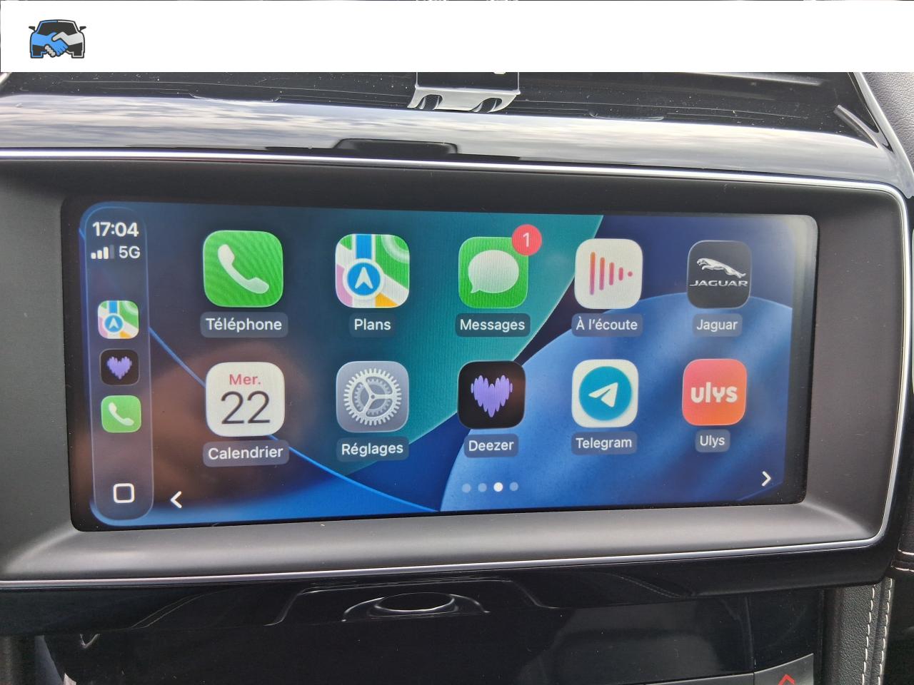 Assistance au démarrage en côteCaméra de reculClimatisation automatique bi-zoneConnectivité BluetoothÉcran tactile Touch Pro 10’’Jaguar Drive Control avec mode Eco, Normal, Dynamic et HiverJaguar Smart Key System, avec démarrage sans cléNavigation ProOuïes latérales chrome satiné avec le badge R-SportPalettes de changement de vitesses en chromeProjecteurs antibrouillardRails de coffreRégulateur de vitesse intelligent avec lecture des panneaux de signalisationSièges en Cuir Taurus perforéSièges SportSystème audio Jaguar - 6 HP - 80WTransmission automatique électronique à 8 rapports avec commandes séquentielles Jaguar Sequential ShiftTMVolant multifonctions en cuir pleine fleur avec touches chromées et badge 'R-Sport'