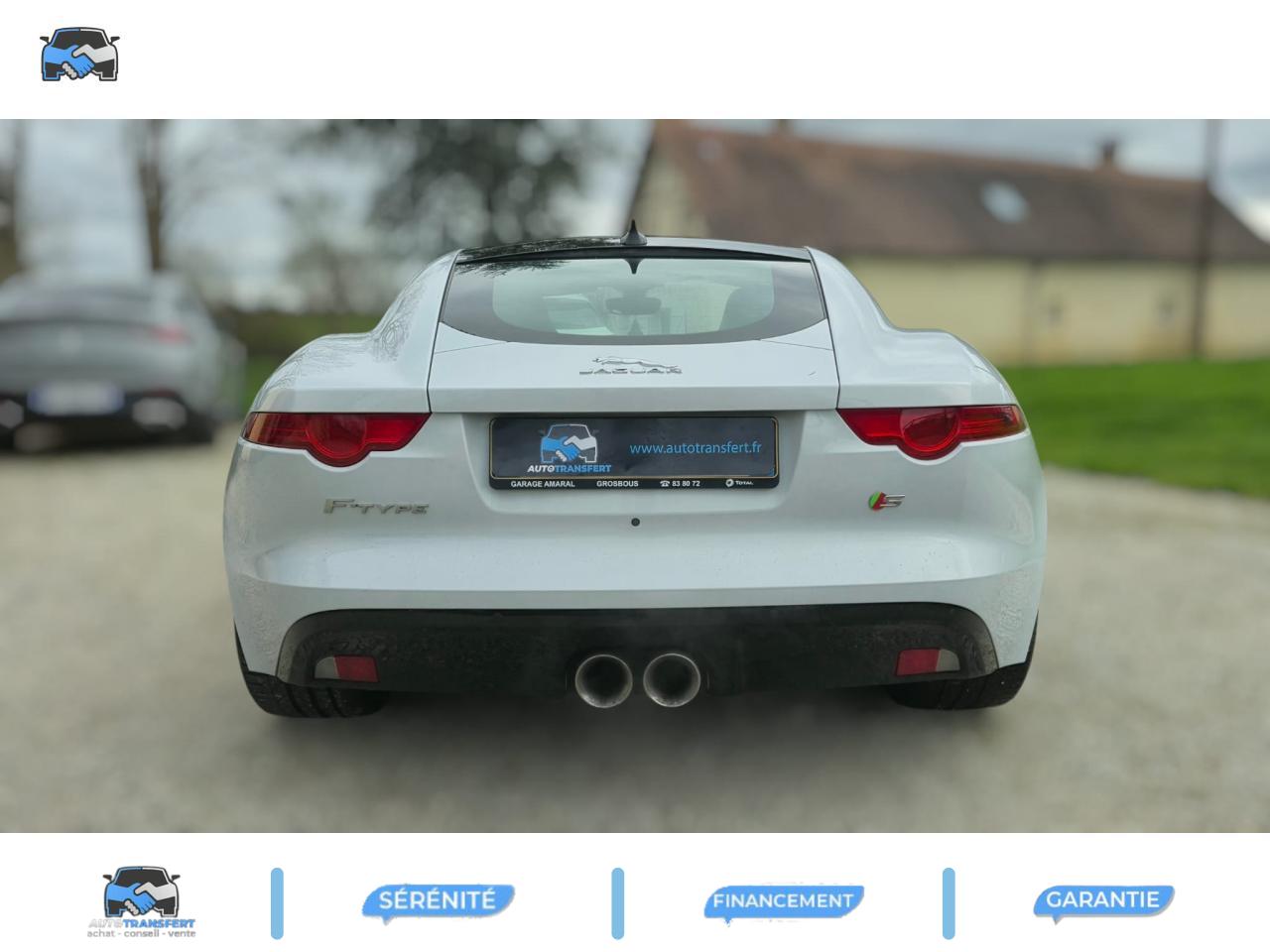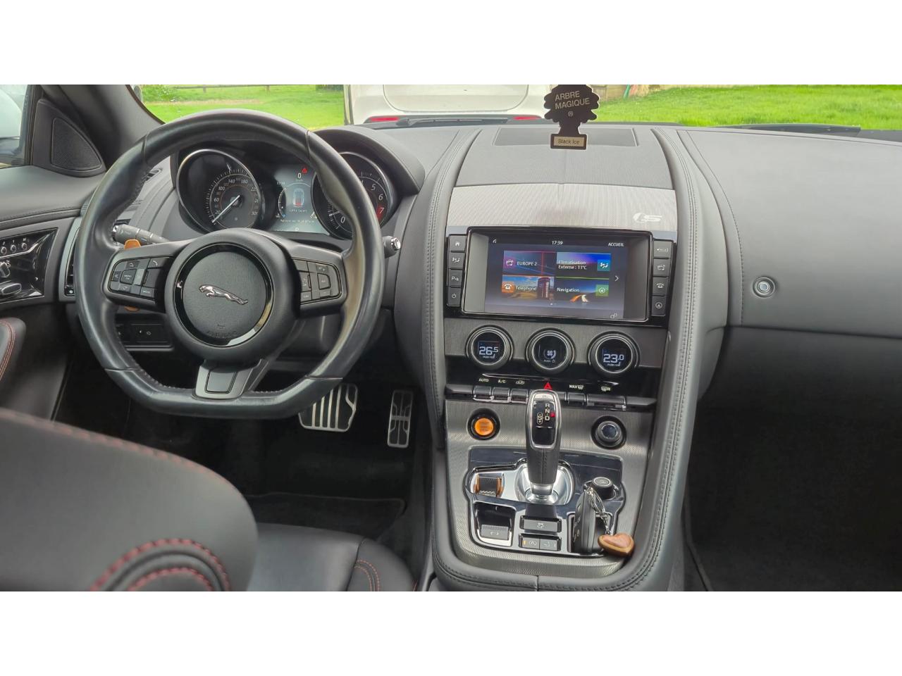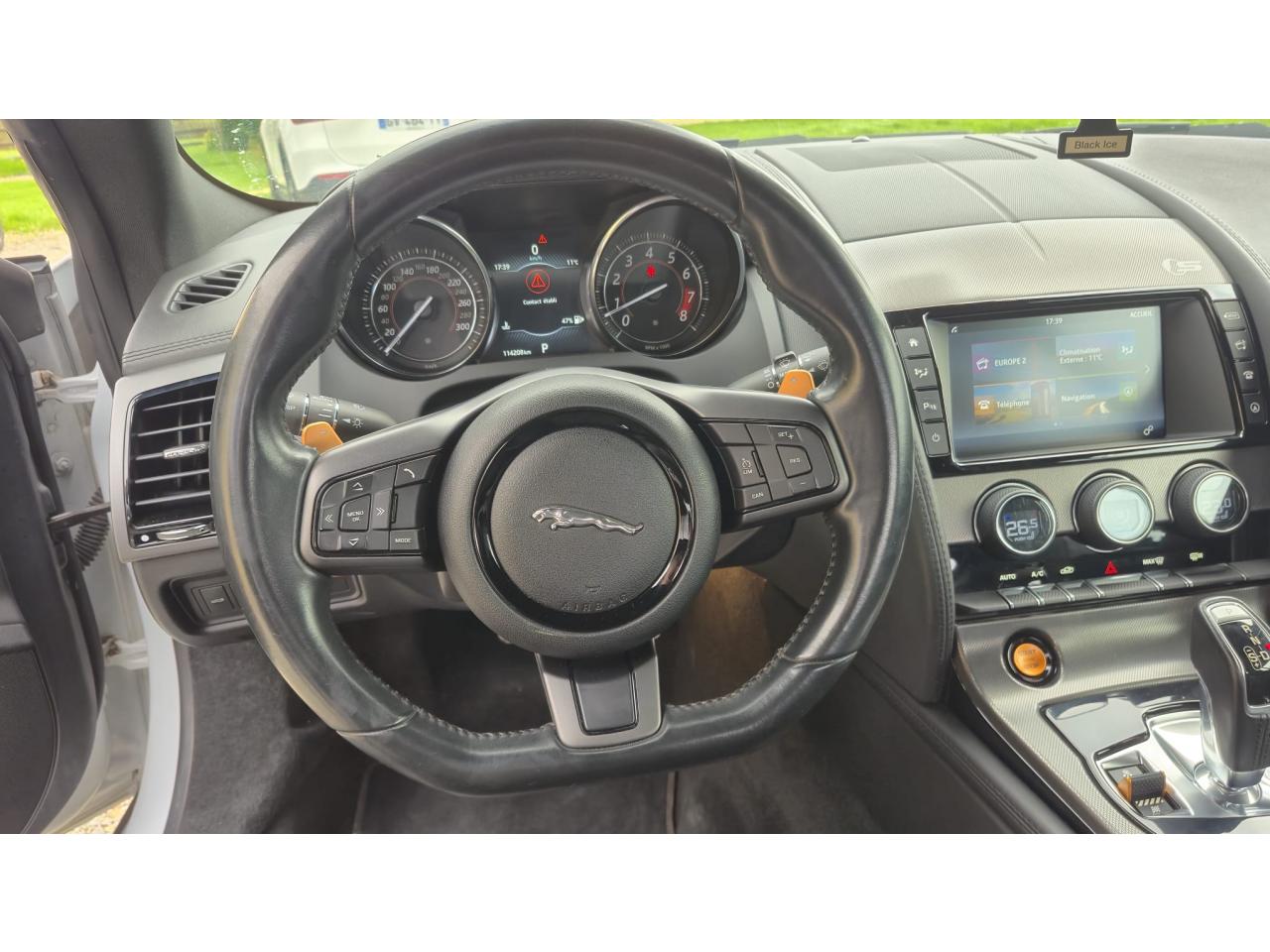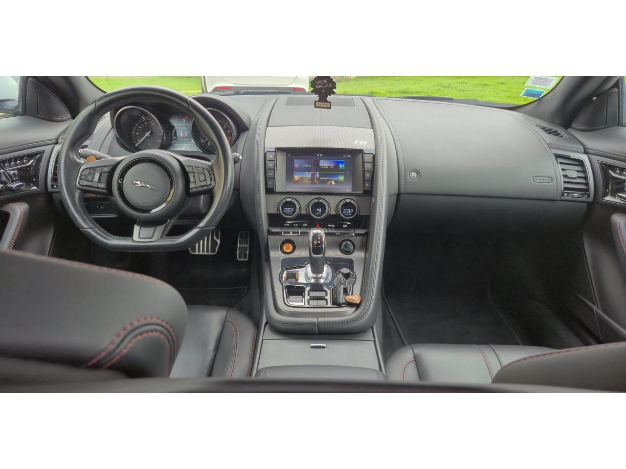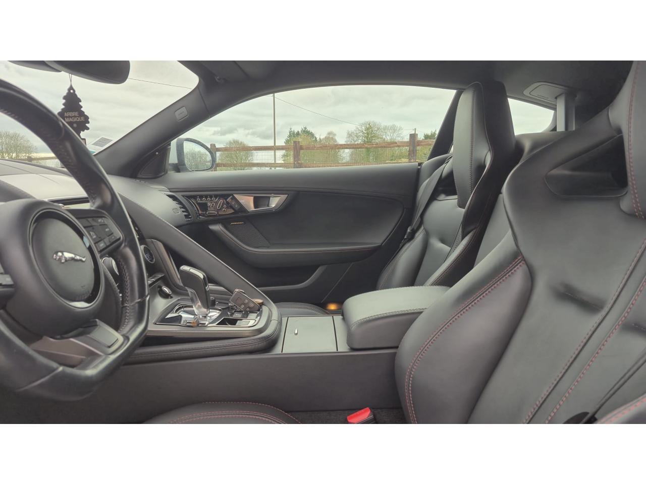 2 Prises 12VAllumage automatique des projecteursClimatisation automatique avec ouïes centrales escamotables électriquementColonne de direction réglable électriquementContrôle de pression des pneus ( TPMS )Contrôle dynamique de la stabilité DSC déverrouillableDifférentiel à glissement limitéDifférentiel ouvertDouble porte-verreDouble sortie d'échappement centraleDynamique de conduite configurable avec menu spécifique via l'écran tactileEchappement Sport actifEclairage intérieur ambiant modulable - 5 tons : du bleu phosphorescent au rougeEcran tactile 8'' à affichage couleurEssuie-glace à déclenchement automatiqueEtriers de freins noirsFilet de rangement entre les 2 siègesFinition Dark Hex Aluminium avec logo ‘‘S''Finition Ignis sur les palettes du volant, les boutons de démarrage et de mode de conduiteFinition noire brillante sur les appendices avant et arrièreFinition noire brillante sur les grilles de calandre et le bas de pare-chocs arrièreFinition noire brillante sur les ouïes d'aération du capotFinition noire brillante sur pare-chocs et sur les ouïes latéralesFrein de stationnement électronique - desserrage automatique au démarrageFreins Haute Performance (380mm à l'avant et 325mm à l'arrière)Interface media avant avec prise auxiliaire et prise USBJaguar Smart Key System, avec démarrage sans cléLève-vitres électriques à impulsionLogo ‘‘S'' sur l'arrièreLogo F-TYPE sur l'arrièreOrdinateur de bord avec affichage central de 5''Phares Xenon avec feux de jour à LED et lave-phares / Feux arrière à LEDPoignées de portes escamotablesRadio AM/FM et lecteur CD/MP3Rétroviseur intérieur électrochromeRétroviseurs extérieurs chauffants, réglables électriquement avec rappel de clignotantsSélecteur de vitesse séquentiel et palettes montées au volantSpoiler arrière à déploiement automatiqueSuspensions Sport à amortissement adaptatifSystème ABS, aide au freinage d'urgence et répartiteur électronique de la force de freinageSystème audio Jaguar 180W à 6 haut-parleursSystème de Réparation de Pneu JaguarTechnologie Stop/StartTransmission automatique ‘QuickShift' à 8 rapports avec mode Hiver et mode DynamiqueVolant 3 branches en cuir avec palettes Ignis