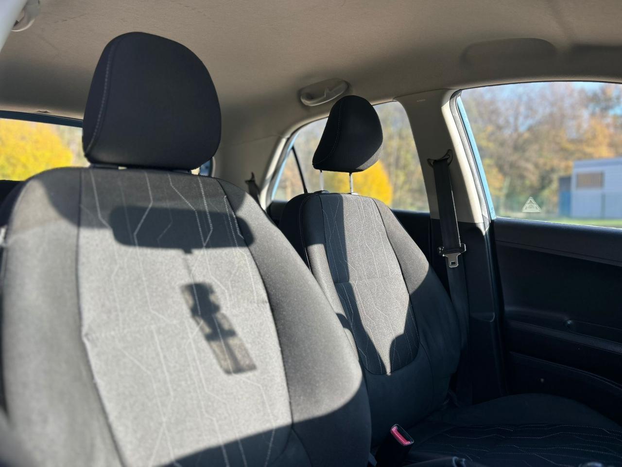 4 haut-parleursAirbags frontaux conducteur et passager (déconnectable côté passager)Airbags latéraux conducteur et passagerAirbags rideaux avant et arrièreAllumage automatique des feux de détresseAntidémarrage codéApplications type métal sur bouton de frein à main et poignées de tirage intérieuresApplications type métal sur le volant et la planche de bordAppuie-tête avant et arrière règlables en hauteurAssistance au freinage d'urgenceBanquette arrière rabattable 60:40 (plancher plat)Becquet de toit avec troisième feu stop intégréBoucliers de couleur carrosserie spécifiquesCache-bagagesCalandre avec décorations aspect chromeCeintures de sécurité arrière 3 points (X3)Ceintures de sécurité avant à prétensionneurs, limiteur d'effortClimatisation manuelleCommandes de l'autoradio au volantCompte-toursCondamnation centralisée à distance avec clé rétractableDirection à assistance électrique (MDPS)Double porte-gobelet rétractableEclairage dans le coffreEspaces de rangement sous le plancher de coffreEssuie-glaces avant à intermittenceEssuie-vitres arrière avec lave-glaceFeux antibrouillard arrièreFreinage ABS avec répartiteur électronique de freinage (EBD)Jantes acier 14" avec enjoliveursKit de dépannage en cas de crevaisonLecteur CD / MP3Lève-vitres électriques avantOrdinateur de bordOuverture de la trappe à essence de l'intérieur du véhiculePare-soleil avec miroirs de courtoisie conducteur et passagerPhares avant diurnesPlafonnier à l'avantPoches aumônières à l'arrière des sièges conducteur et passagerPoignées de portes extérieures aspect chromePrise 12 volts sur la console centrale avantPrise auxiliaire AUX / USBPrise auxiliaire iPodProjecteurs antibrouillardRangement sous le siège passagerRétroviseurs extérieurs couleur carrosserieSellerie tissu “Ebony Black” / “Alpine Grey”Siège conducteur réglable en hauteurSystème de téléphonie mains libres Bluetooth avec commandes au volant (téléphone non fourni)Système de verrouillage automatique des portes en roulantSystème ISOFIX à 3 points d'ancrage sur sièges arrièreVitres teintéesVolant et pommeau de levier de vitesses gainés cuirVolant réglable en hauteur