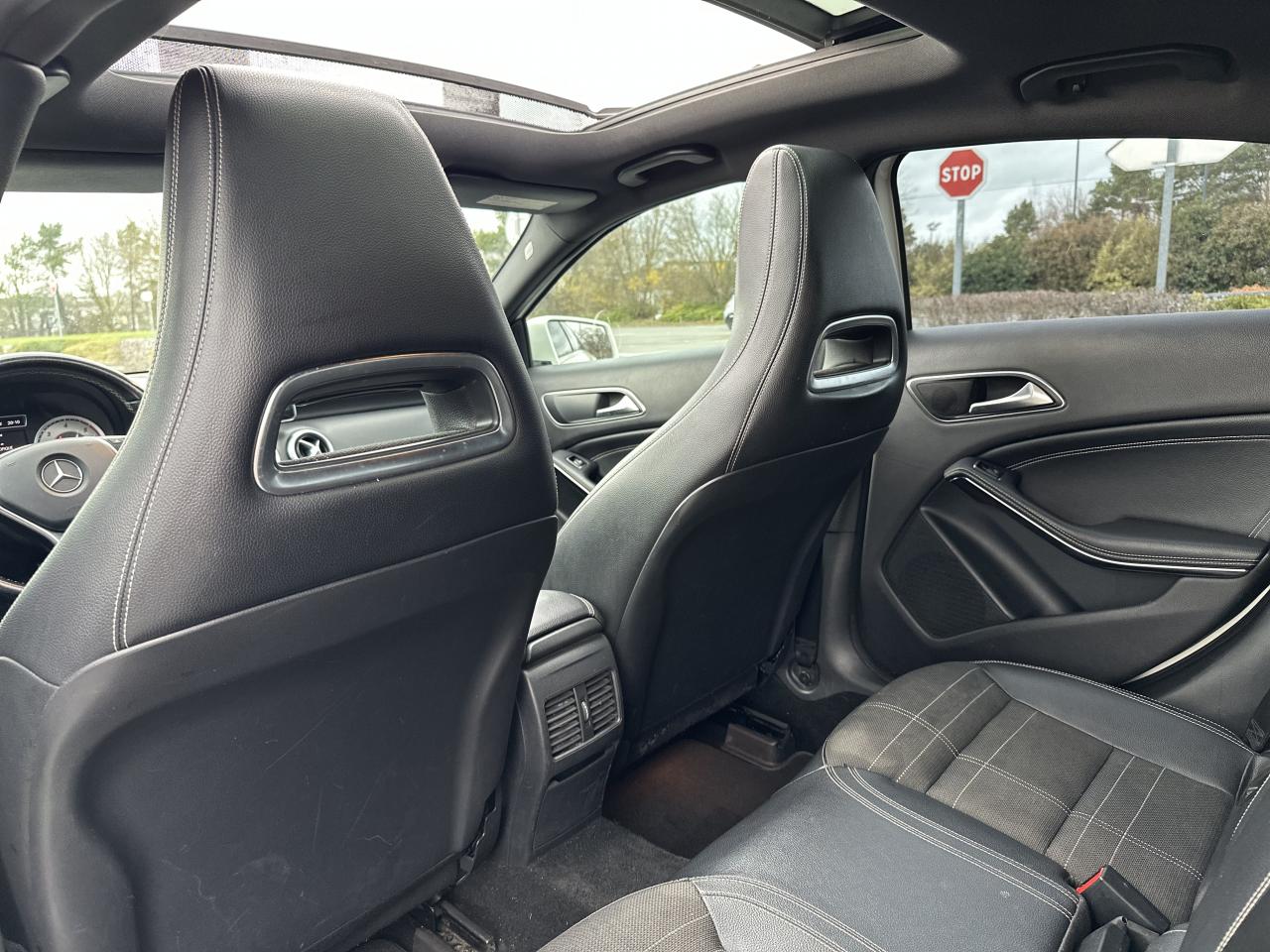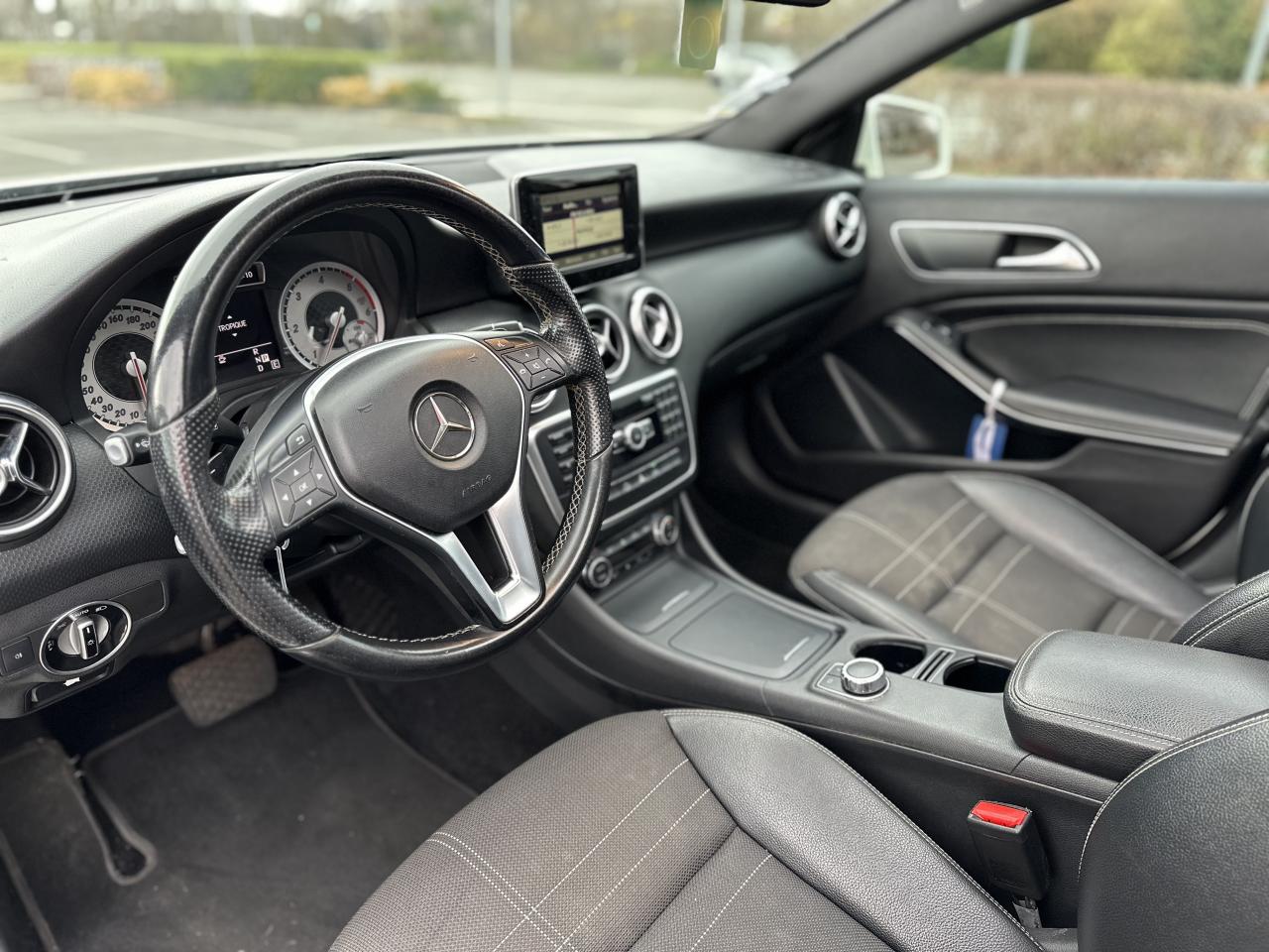 ABS (antiblocage de roues) et BAS (freinage d'urgence assisté)Éléments décoratifs intérieurs et buses d'aération chromésAccoudoir avant avec vide-pochesADAPTATIVE BRAKE avec fonction HOLD (aide au démarrage en côte)Airbag genoux conducteurAirbags bassin intégrés aux sièges conducteur et passager avantAirbags frontaux à plusieurs seuils de déclenchement pour le conducteur et le passager avantAirbags latéraux et airbags rideauxAllumage automatique des projecteursAttention Assist : système de détection de somnolenceAvertisseur de perte de pression des pneusBaguette de ligne de ceinture chroméeBanquette arrière rabattable 1/3-2/3BAS (freinage d'urgence assisté)Boîte à gants éclairéeBoîte automatique à double embrayage 7 rapports 7G-DCT avec palettes de commandes au volantCaméra de recul avec lignes de guidageCeintures de sécurité à 3 points à toutes les placesCiel de pavillon en tissu noirCiel de pavillon noirClé design chroméeClignotant avec fonction confortClimatisation automatique confort THERMOTRONIC à 2 zones avec affichage digital et réglages séparés conducteur/passagerCOLLISION PREVENTION ASSIST : système d'avertissement des risques de collisionColonne de direction réglable mécaniquement en hauteur et en profondeurConnexion Bluetooth pour téléphone portable et clavier numérique intégréDétecteur d'occupation du siège passager avantDirection paramétrique asservie à la vitesseEclairage de secours en cas d'accidentESP (régulation de comportement dynamique)Feux arrière de brouillardFeux de stop adaptatifsFiltre à particulesFonction d'arrêt/redémarrage "Stop/Start ECO" avec commutateur de désactivation manuelleFonction sécurité piéton avec capot actifFrein de parking électriqueIndicateur de température extérieureIndicateur dynamique de maintenance (ASSYST PLUS)Interface USB dans l'accoudoir central avantISOFIX : fixations des sièges-enfants arrière (places extérieures)Jantes alliage 43 cm (17") design 5 doubles branches bicolores avec pneus 225/45 R17Kit anti-crevaison TIREFITLève-vitres électrique (x4) à commande séquentielle et dispositif anti-pincementOrdinateur de bordPack d'éclairage intérieurPack Urban ExtérieurPack Urban IntérieurPare-chocs couleur carrosserieProjecteurs Bi-Xénon avec lave-phares, feux de jour,feux de position, clignotants, feux arrière et feux de stationnement à technologie LEDRétroviseurs et poignées de portes de couleur carrosserieRétroviseurs extérieurs électriques chauffants et asphériques avec rappels de clignotant intégrésRétroviseurs extérieurs rabattables électriquement et rétroviseurs extérieur gauche et intérieur jour/nuit automatiqueRadio Audio 20 avec écran couleur 15 cm (5,8"), double tuner et lecteur CD compatible MP3/WMA/AACSécurité enfant avec verrouillage manuel des portes arrière et électrique des vitres arrièreSiège conducteur réglable manuellement en hauteurSièges avant avec design spécifique et réglages manuel de l'inclinaison des assises et de la hauteur du siège passagerSièges Sport intégrauxSuspensions et train de roulement confortTEMPOMAT (régulateur de vitesse) et SPEEDTRONIC (limiteur de vitesse)Verrouillage centralisé à télécommande avec fonction verrouillage automatique désactivableVitres teintées vertesVolant multifonctions à 12 touches