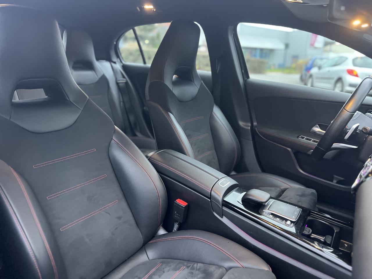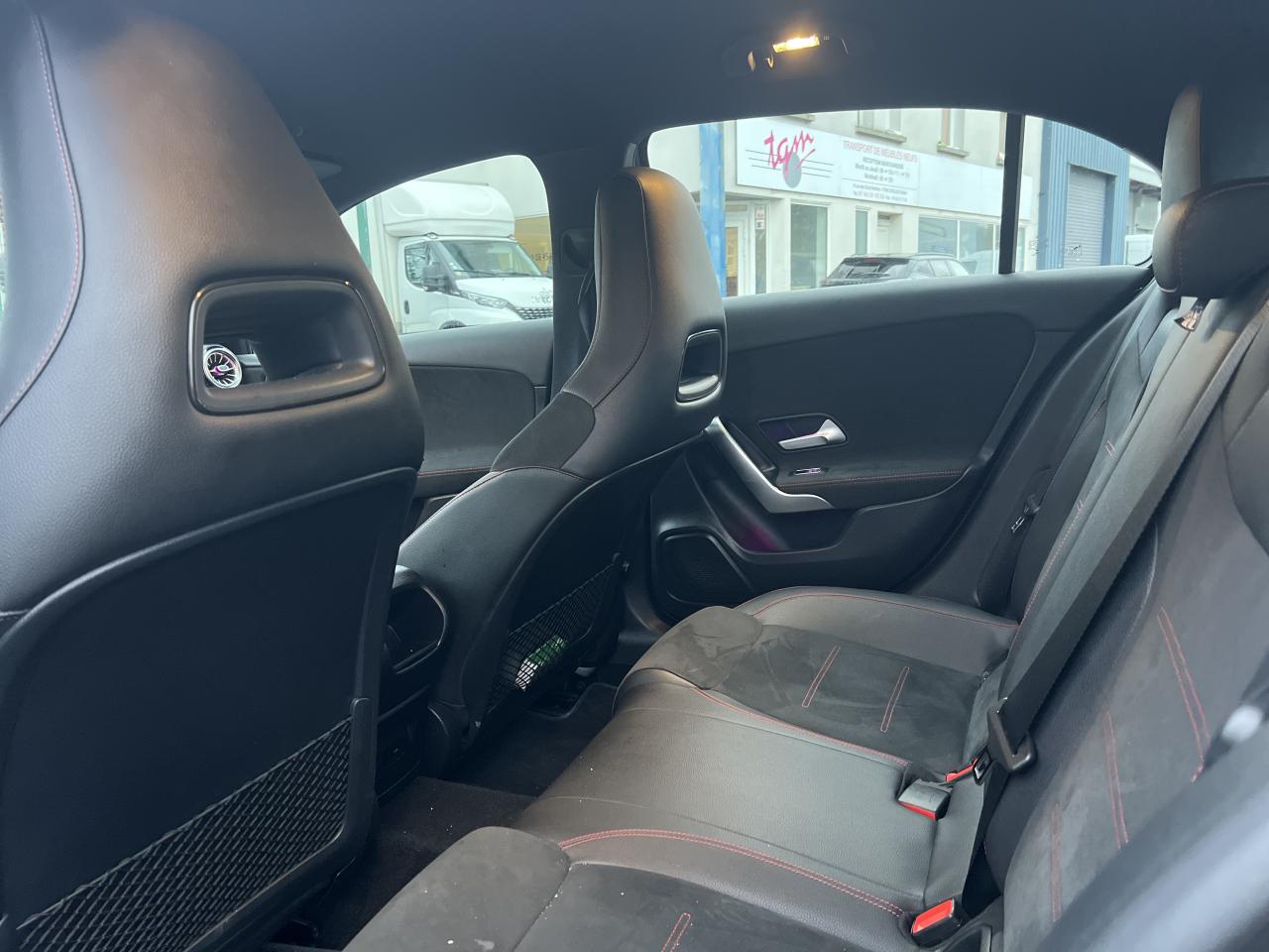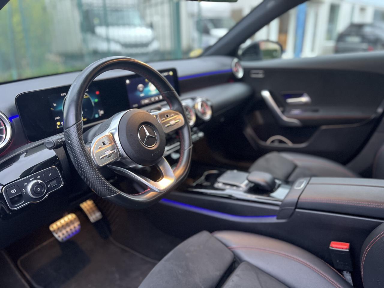 ABS (antiblocage de roues), ASR (antipatinage) et BAS (freinage d'urgence assisté)Accoudoir central avantADAPTIVE BRAKE avec fonction HOLD et aide au démarrage en côte, préremplissage et séchage des freins par freinage en cas de pluieAffichage du non bouclage des ceintures de sécurité aux places arrièreAirbag frontaux conducteur et passagerAirbag genoux conducteurAirbags latéraux (thorax / bassin) avantAirbags rideauxAttention Assist : système de détection de somnolenceAvertisseur de franchissement de ligne actifBaguettes de ligne de ceinture et entourages de vitres chromésBaguettes de seuil avec monogramme "Mercedes-Benz"Boîte à gants éclairéeBoîte de vitesses à double embrayage 8G-DCTBuses de ventilation noires avec cerclage chroméCalandre diamant avec pastilles chromées et lamelle avec insert chroméCaméra de recul avec lignes de guidageCapot moteur actif pour la protection des piétonsCiel de pavillon en tissu noirClimatisation automatique THERMATIC à 1 zone avec filtre à charbons actifs contre la poussière, la suie et le pollenConnexion Bluetooth pour téléphone portableConsole centrale Noir brillantDésactivation automatique de l’airbag passager avantDirection paramétrique asservie à la vitesseDossier AR rabattable 40/20/40Double porte-gobelet dans la console centraleDYNAMIC SELECT avec les programmes de conduite « ECO », « Confort », « Sport » et « Individual »Essieu arrière à bras combinésEtriers de freins avant avec monogramme Mercedes-Benz et disques perforésFeux de stop adaptatifsFilets à bagages au dossier des sièges AVFrein de stationnement électriqueFreinage d'urgence assisté actifGarnitures intérieures en microfibre DINAMICA/similicuir ARTICOI-Size et Top Tether pour les sièges arrière extérieursInserts décoratifs en microfibre DINAMICAInterface USB-C dans le vide-poches et dans la console centrale arrièreJantes alliage AMG 45,7 cm (18'') à 5 doubles branches gris titane et argentJupe arrière AMG avec insert décoratif chroméJupe avant AMG avec splitter en finition chromeKit anti-crevaison TIREFITKit carrosserie AMG composé de jupe avant, protections de bas de caisse et jupe arrièreModule de communication LTE pour l'utilisation des services Mercedes me connectPack AdvantagePack visibilitéPavé tactile TouchpadPédalier sport AMG en acier inoxydable brossé avec picots en caoutchoucPeinture noirePré-équipement pour l'autopartage via l'application Mercedes me Car SharingPré-équipement pour Live Traffic Information (service gratuit pendant 3 ans après activation Mercedes me)Pré-équipement pour réglages et suivi du véhicule à distance (service gratuit pendant 3 ans après activation Mercedes me)Prise 12V dans le vide poche de la console centraleProjecteurs hautes performances à technologie LEDRainsensor (Capteur de pluie et de luminosité)Réception radio numérique (DAB)Reconnaissance des panneaux de limitation de vitesseSiège conducteur avec réglages de la hauteur et de l'approche du siège, de l'inclinaison du dossier, de l'inclinaison de l'assise, de la profondeur de l'assiseSièges avant sport intégrauxSorties d'échappement apparentes en chrome (non fonctionnelles)Système d'Appel d'Urgence Mercedes-BenzSystème de commande vocale et assistant personnel activable grâce à "Hey Mercedes"Système de contrôle de la pression des pneusSystème de stabilisation en cas de vent latéralSystème multimédia MBUX avec fonctionnalités élargies (profils personnalisés, fonctions prédictives, borne Wifi, webradio)Tapis de sol AMGTEMPOMAT (régulateur et limiteur de vitesse)Train de roulement confort avec châssis surbaisséVolant sport multifonction à 3 branches en cuir Nappa, avec méplat, perforations au niveau de la zone de préhension, boutons tactiles Touch-Control, cache chromé et surpiqûres rouges