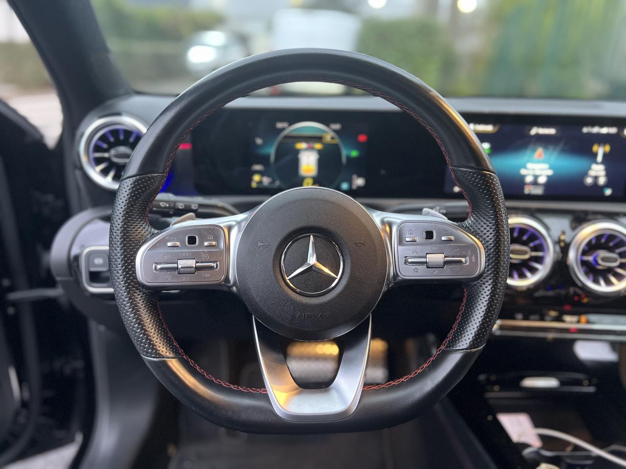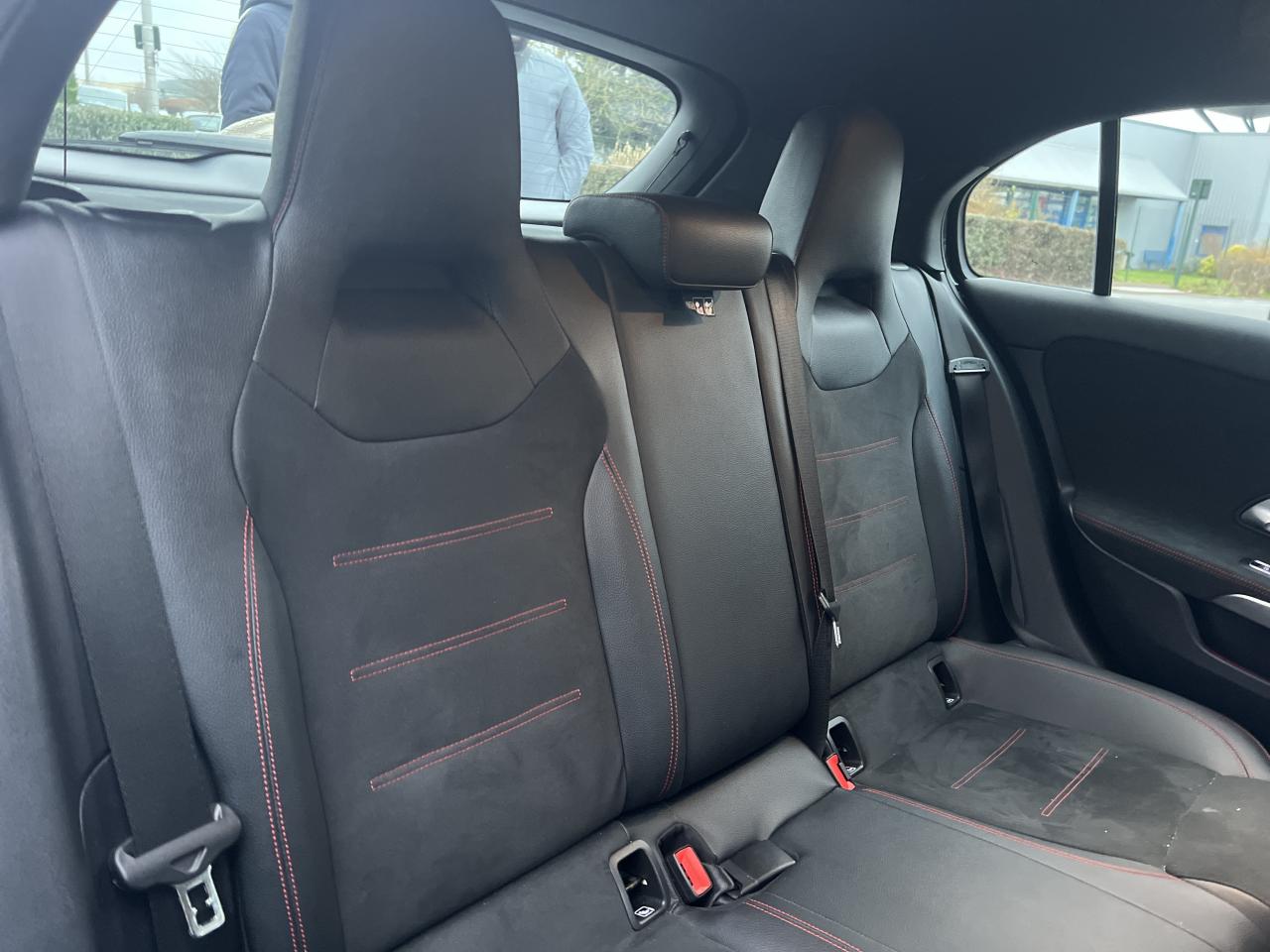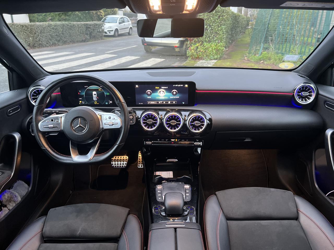 ABS (antiblocage de roues), ASR (antipatinage) et BAS (freinage d'urgence assisté)Accoudoir central avantADAPTIVE BRAKE avec fonction HOLD et aide au démarrage en côte, préremplissage et séchage des freins par freinage en cas de pluieAffichage du non bouclage des ceintures de sécurité aux places arrièreAirbag frontaux conducteur et passagerAirbag genoux conducteurAirbags latéraux (thorax / bassin) avantAirbags rideauxAttention Assist : système de détection de somnolenceAvertisseur de franchissement de ligne actifBaguettes de ligne de ceinture et entourages de vitres chromésBaguettes de seuil avec monogramme "Mercedes-Benz"Boîte à gants éclairéeBoîte de vitesses à double embrayage 8G-DCTBuses de ventilation noires avec cerclage chroméCalandre diamant avec pastilles chromées et lamelle avec insert chroméCaméra de recul avec lignes de guidageCapot moteur actif pour la protection des piétonsCiel de pavillon en tissu noirClimatisation automatique THERMATIC à 1 zone avec filtre à charbons actifs contre la poussière, la suie et le pollenConnexion Bluetooth pour téléphone portableConsole centrale Noir brillantDésactivation automatique de l’airbag passager avantDirection paramétrique asservie à la vitesseDossier AR rabattable 40/20/40Double porte-gobelet dans la console centraleDYNAMIC SELECT avec les programmes de conduite « ECO », « Confort », « Sport » et « Individual »Essieu arrière à bras combinésEtriers de freins avant avec monogramme Mercedes-Benz et disques perforésFeux de stop adaptatifsFilets à bagages au dossier des sièges AVFrein de stationnement électriqueFreinage d'urgence assisté actifGarnitures intérieures en microfibre DINAMICA/similicuir ARTICOI-Size et Top Tether pour les sièges arrière extérieursInserts décoratifs en microfibre DINAMICAInterface USB-C dans le vide-poches et dans la console centrale arrièreJantes alliage AMG 45,7 cm (18'') à 5 doubles branches gris titane et argentJupe arrière AMG avec insert décoratif chroméJupe avant AMG avec splitter en finition chromeKit anti-crevaison TIREFITKit carrosserie AMG composé de jupe avant, protections de bas de caisse et jupe arrièreModule de communication LTE pour l'utilisation des services Mercedes me connectPack AdvantagePack visibilitéPavé tactile TouchpadPédalier sport AMG en acier inoxydable brossé avec picots en caoutchoucPeinture noirePré-équipement pour l'autopartage via l'application Mercedes me Car SharingPré-équipement pour Live Traffic Information (service gratuit pendant 3 ans après activation Mercedes me)Pré-équipement pour réglages et suivi du véhicule à distance (service gratuit pendant 3 ans après activation Mercedes me)Prise 12V dans le vide poche de la console centraleProjecteurs hautes performances à technologie LEDRainsensor (Capteur de pluie et de luminosité)Réception radio numérique (DAB)Reconnaissance des panneaux de limitation de vitesseSiège conducteur avec réglages de la hauteur et de l'approche du siège, de l'inclinaison du dossier, de l'inclinaison de l'assise, de la profondeur de l'assiseSièges avant sport intégrauxSorties d'échappement apparentes en chrome (non fonctionnelles)Système d'Appel d'Urgence Mercedes-BenzSystème de commande vocale et assistant personnel activable grâce à "Hey Mercedes"Système de contrôle de la pression des pneusSystème de stabilisation en cas de vent latéralSystème multimédia MBUX avec fonctionnalités élargies (profils personnalisés, fonctions prédictives, borne Wifi, webradio)Tapis de sol AMGTEMPOMAT (régulateur et limiteur de vitesse)Train de roulement confort avec châssis surbaisséVolant sport multifonction à 3 branches en cuir Nappa, avec méplat, perforations au niveau de la zone de préhension, boutons tactiles Touch-Control, cache chromé et surpiqûres rouges